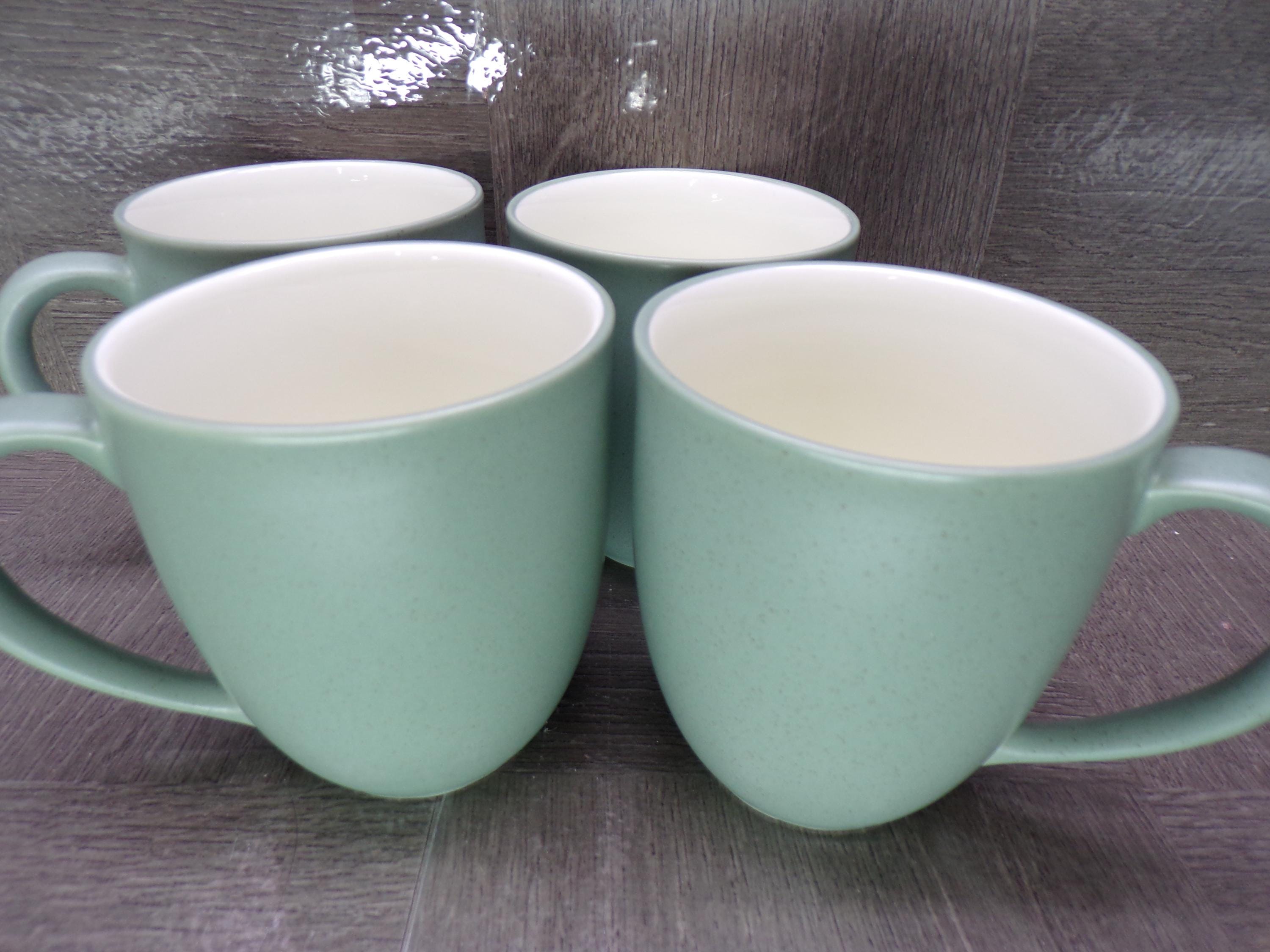 2602 Noritake Stoneware Colorwave #8485 Green 4" 11 oz Mugs Set of 4 White Interior - Great Condition
