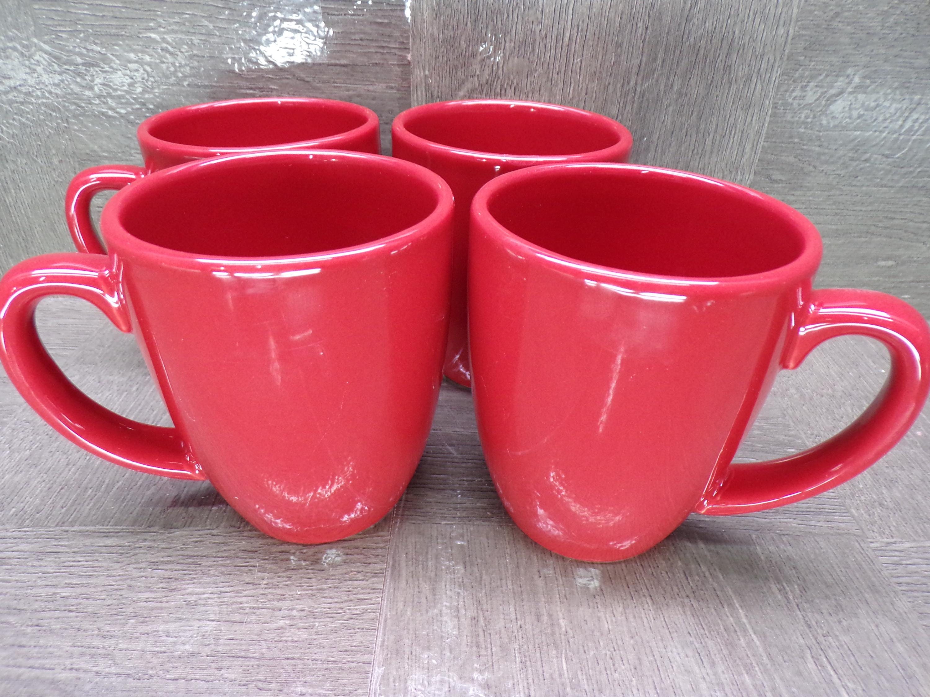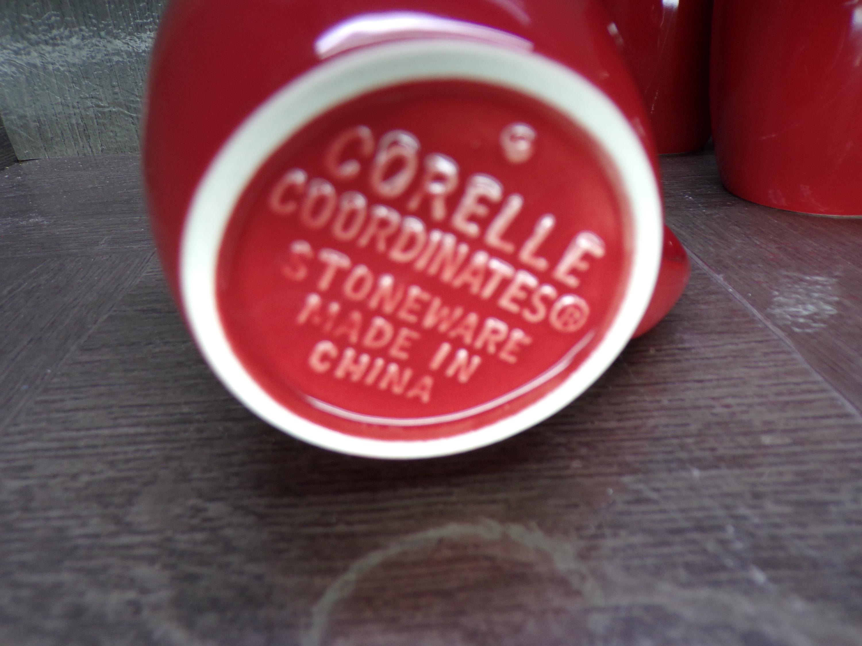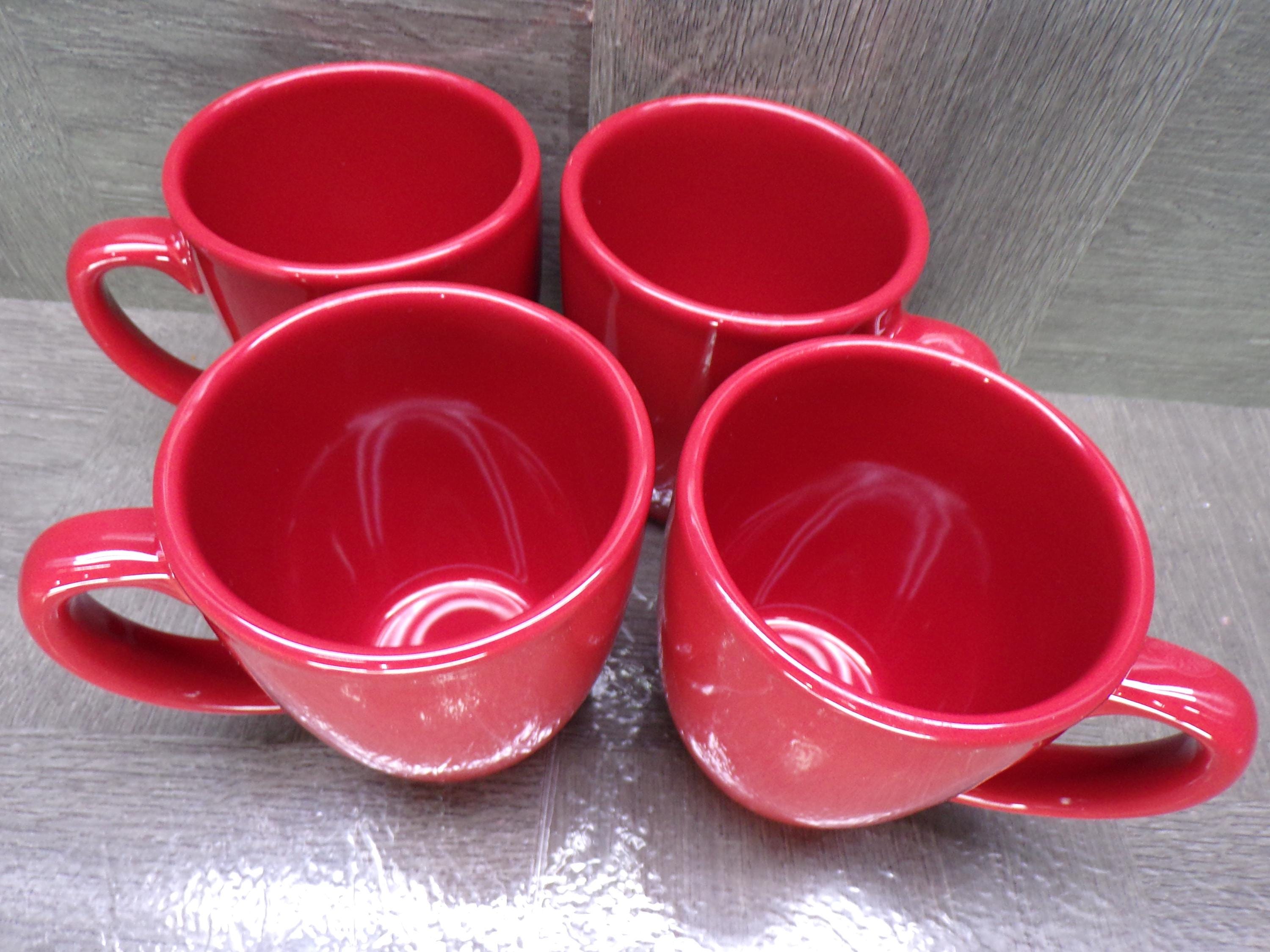2602 Set of 4 Corelle Coordinates Stoneware Burgundy Red Coffee Mugs 11 oz - Excellent Condition