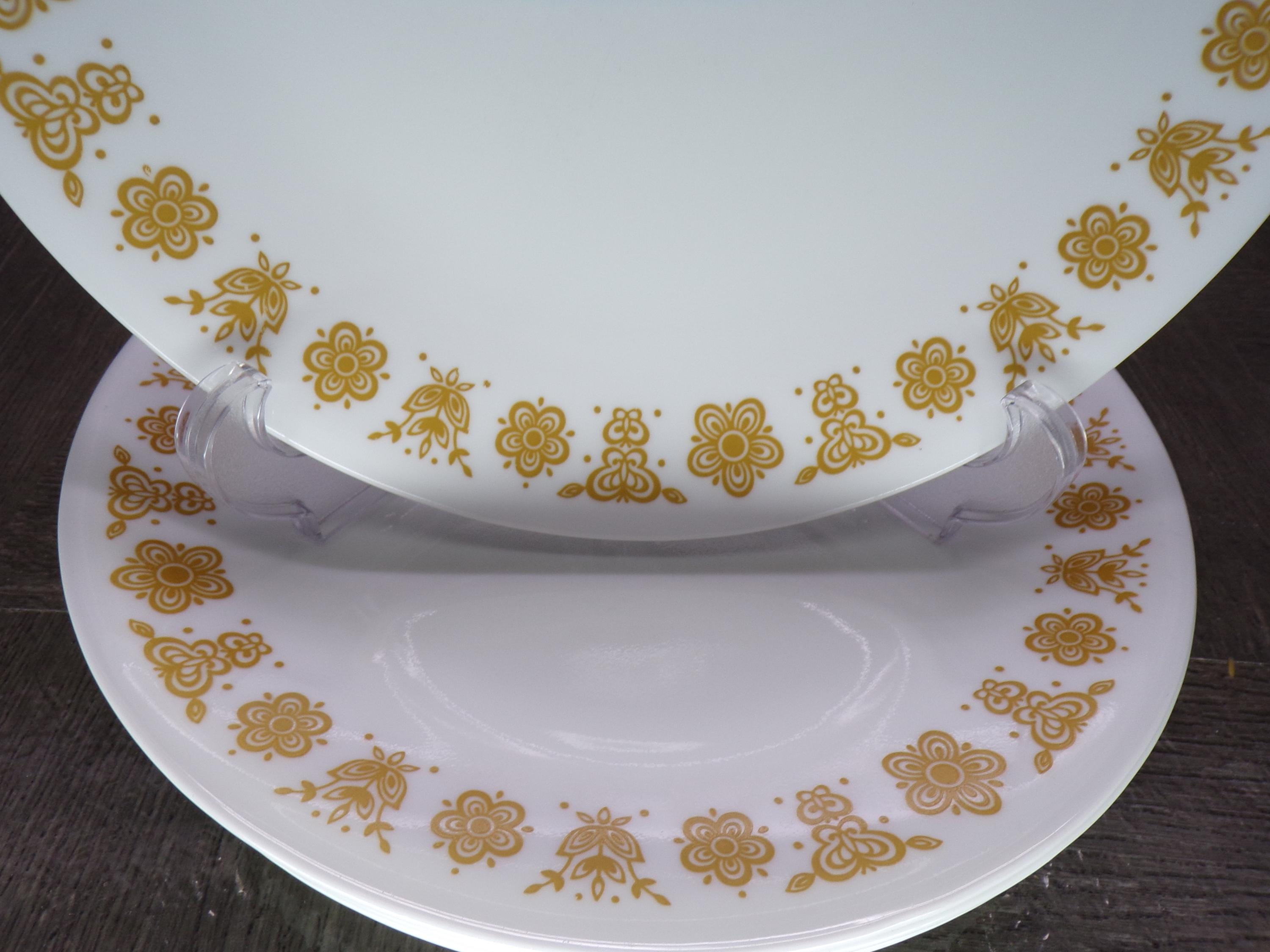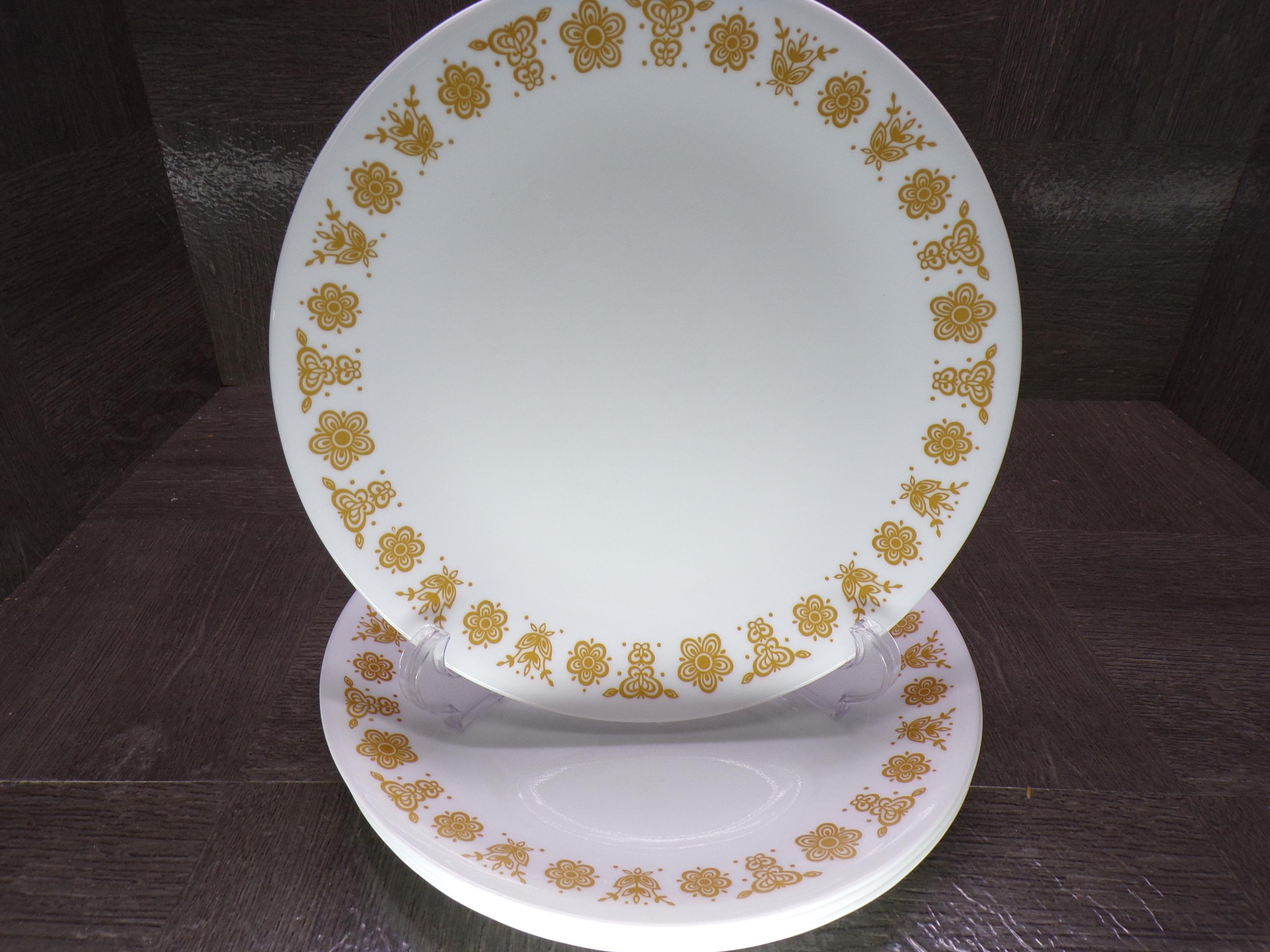 2602 Corelle Butterfly Gold Floral Vintage 1970's Retired 8.5" Salad / Lunch Plates Set of 5 - Great Condition Light Scratches