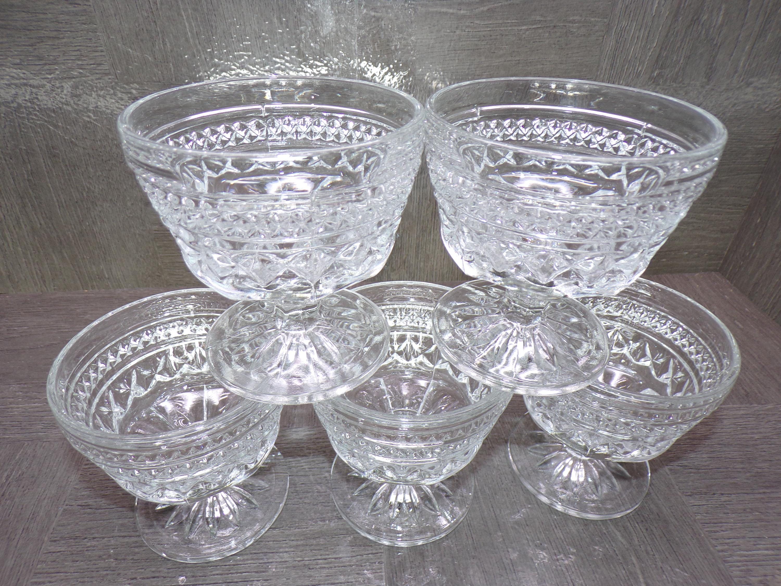 2602 Anchor Hocking Wexford Crystal 3.5" Footed Sherbet Dessert Cups Set of 5 - Great Condition