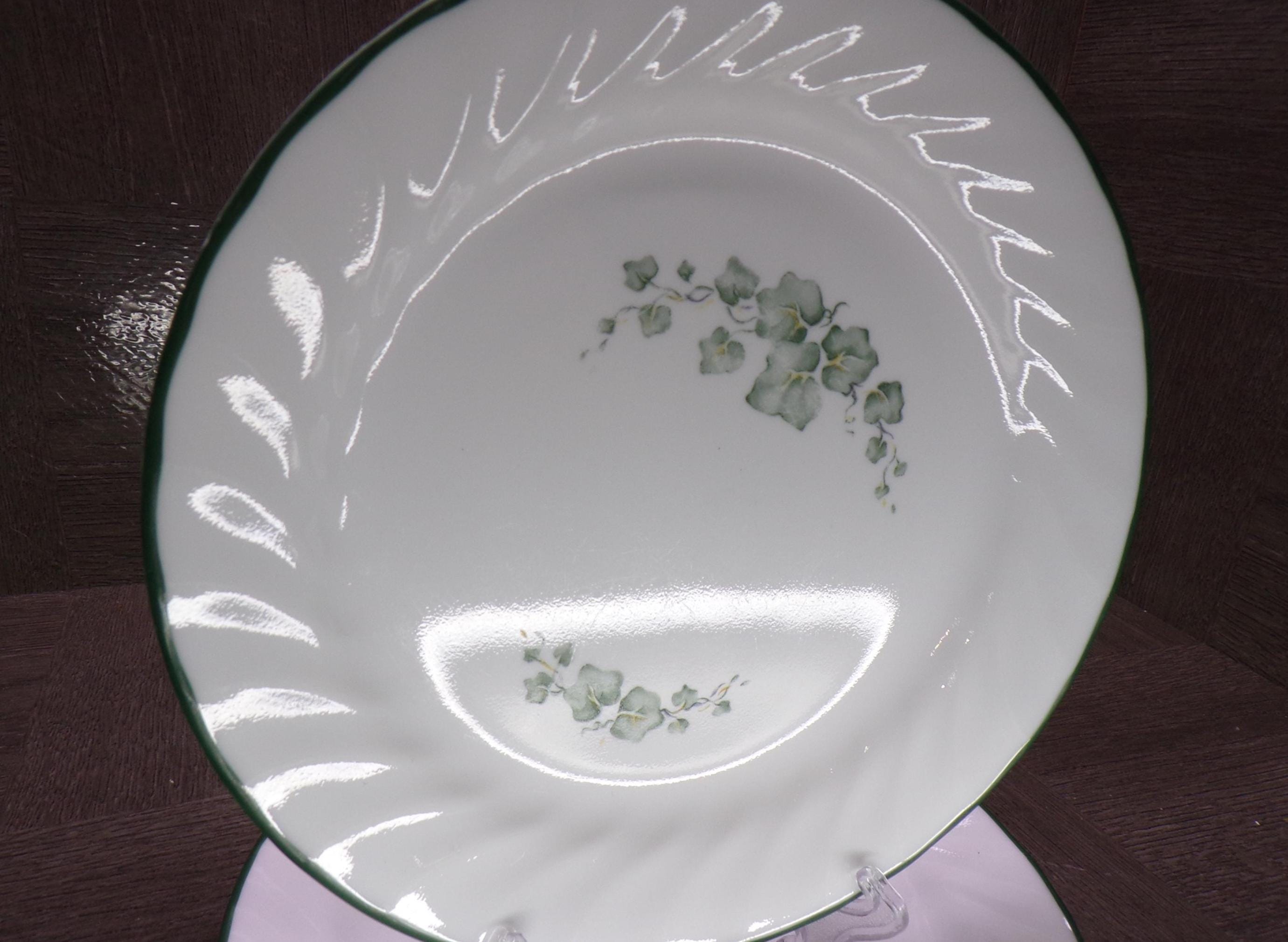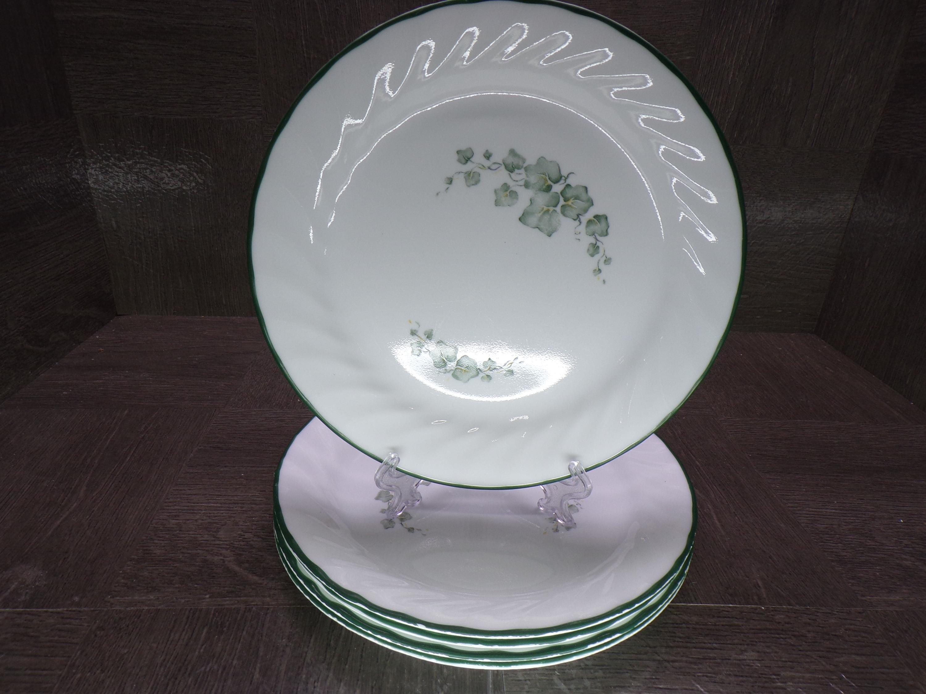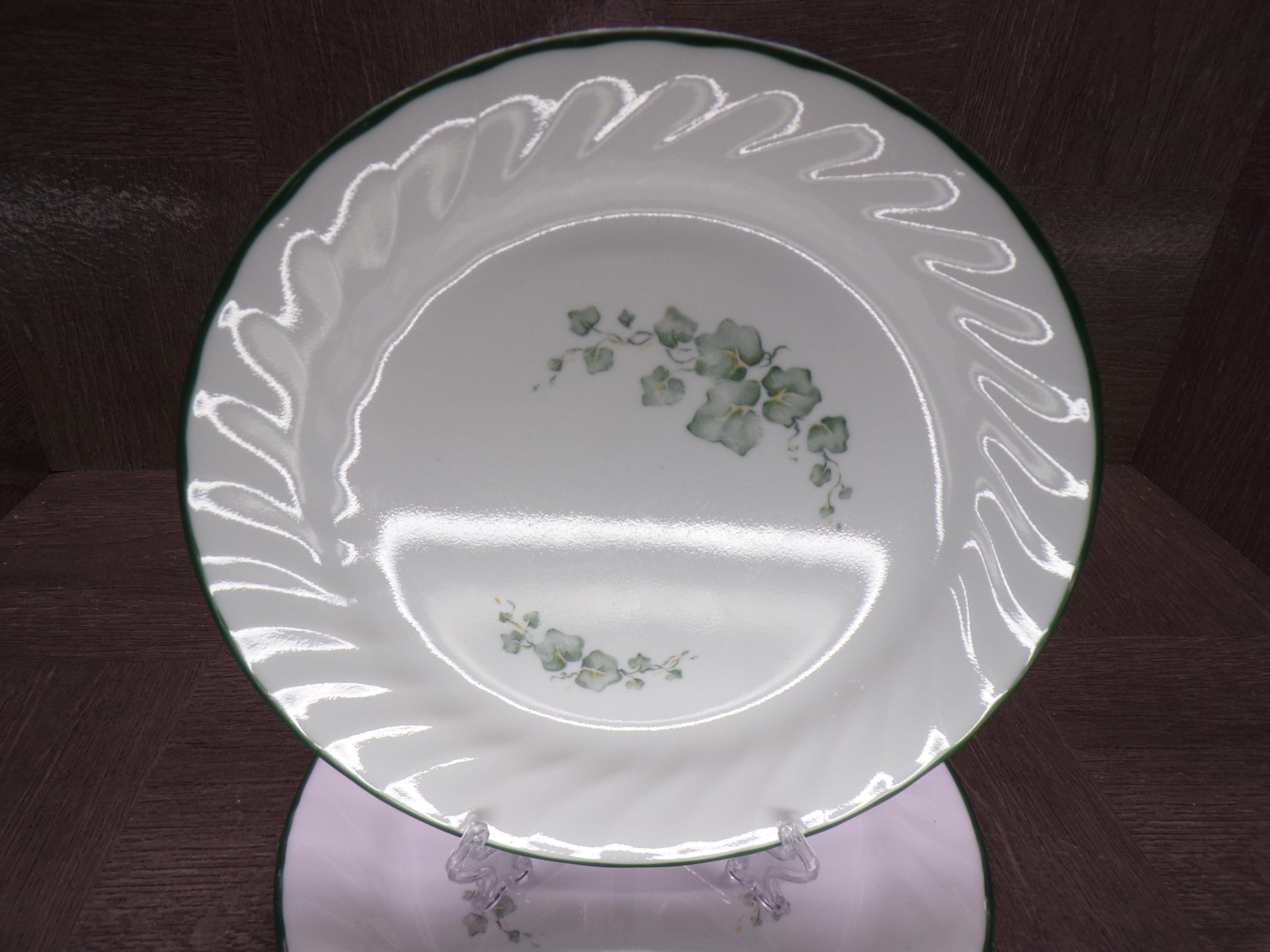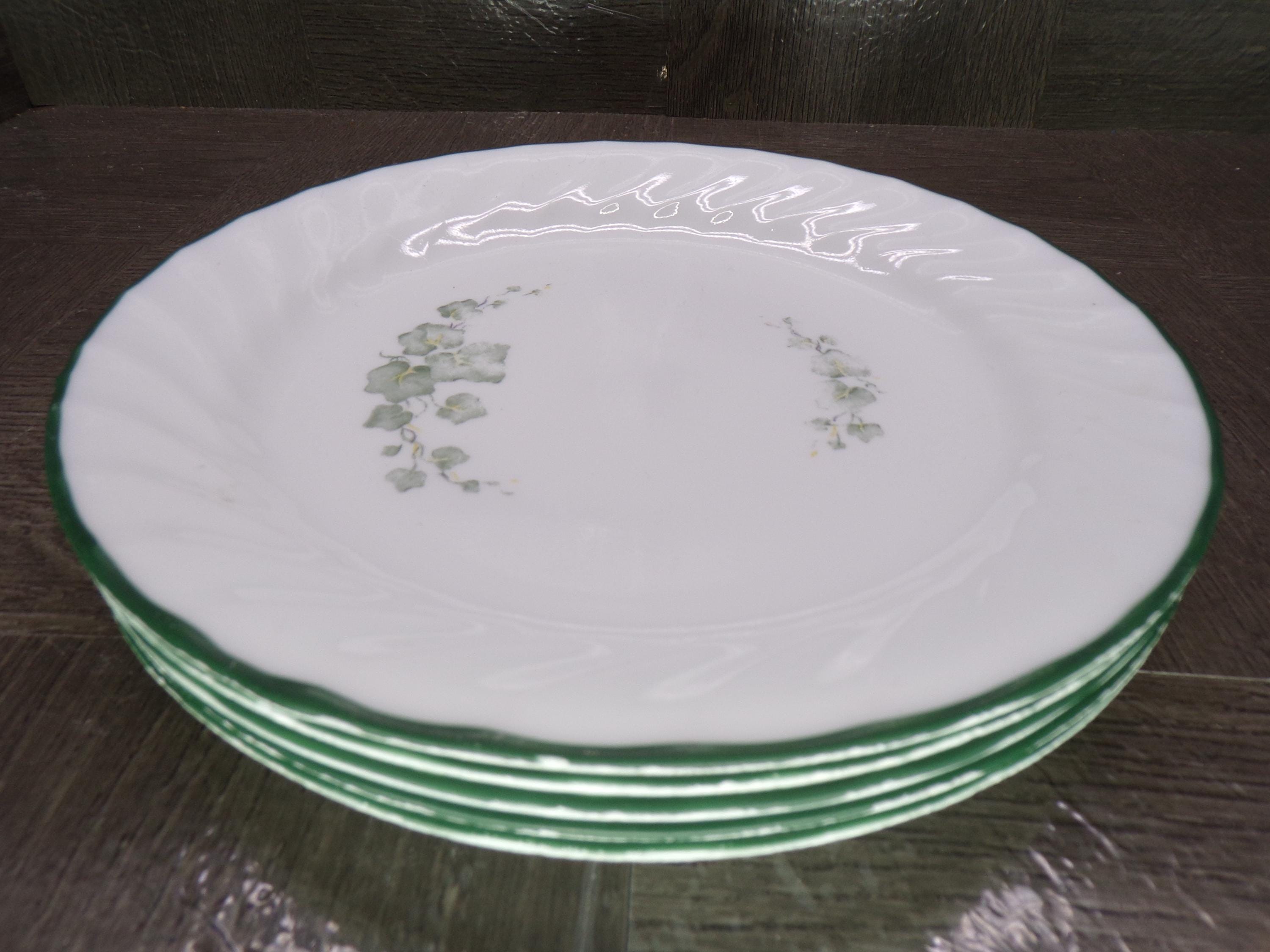 2602 Corelle Callaway Green Ivy Swirl Vintage 7.25" Bread Plates Set of 5 - USA- Good Condition Green Edges have Some Chips