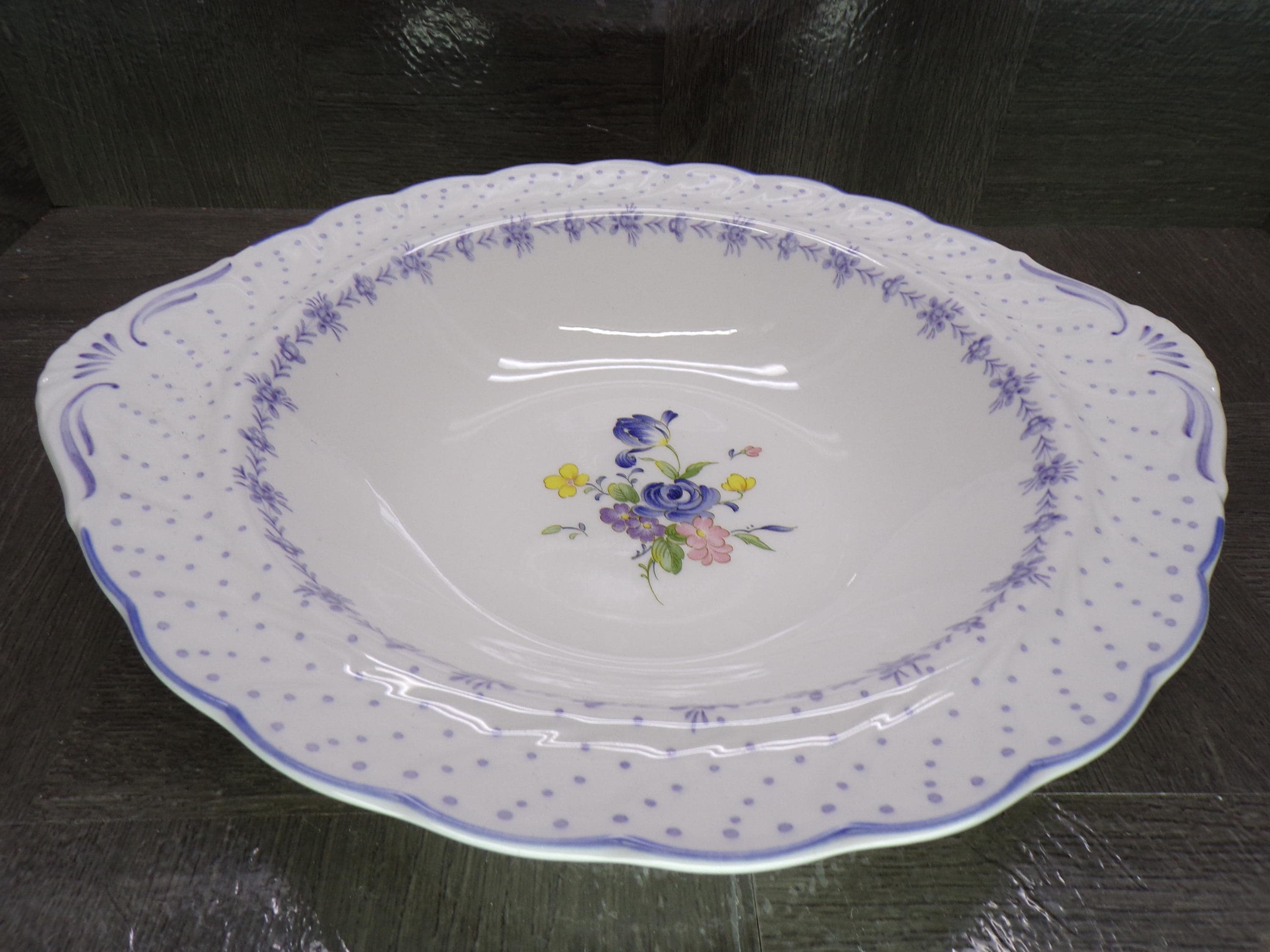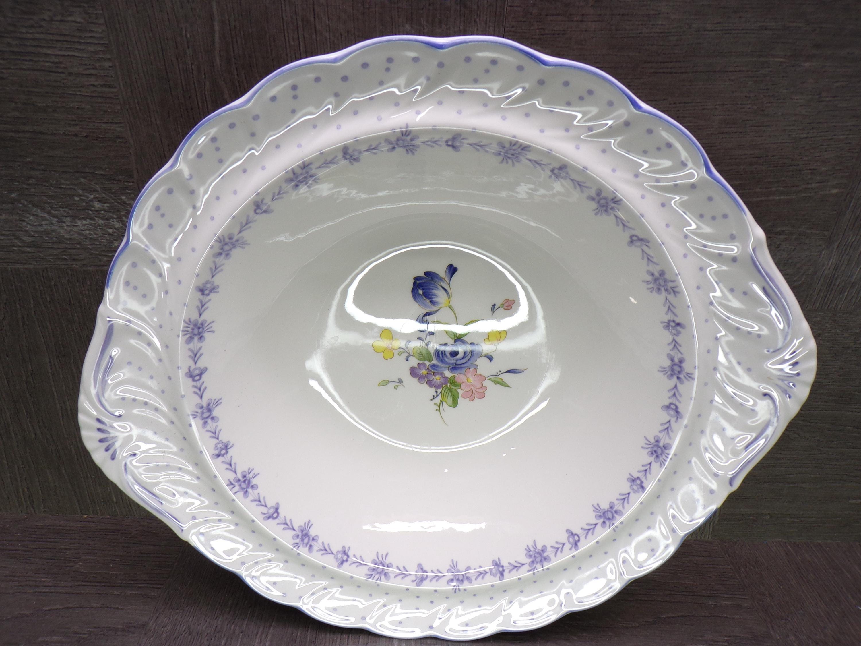 2602 Nikko Blossomtime Blue Peony Swirl 10" Vegetable Serving Bowl - Fine Bone China - Excellent Condition