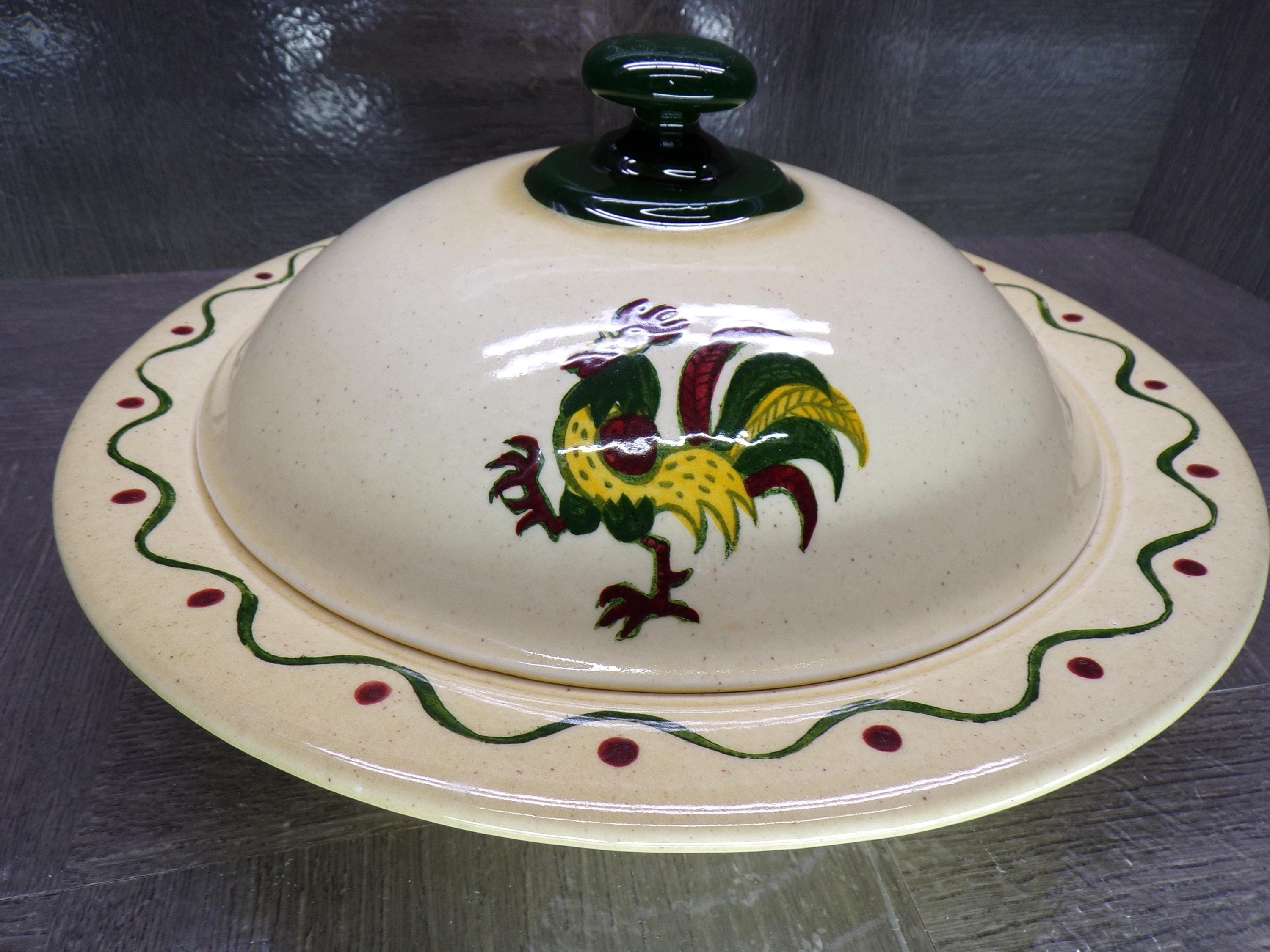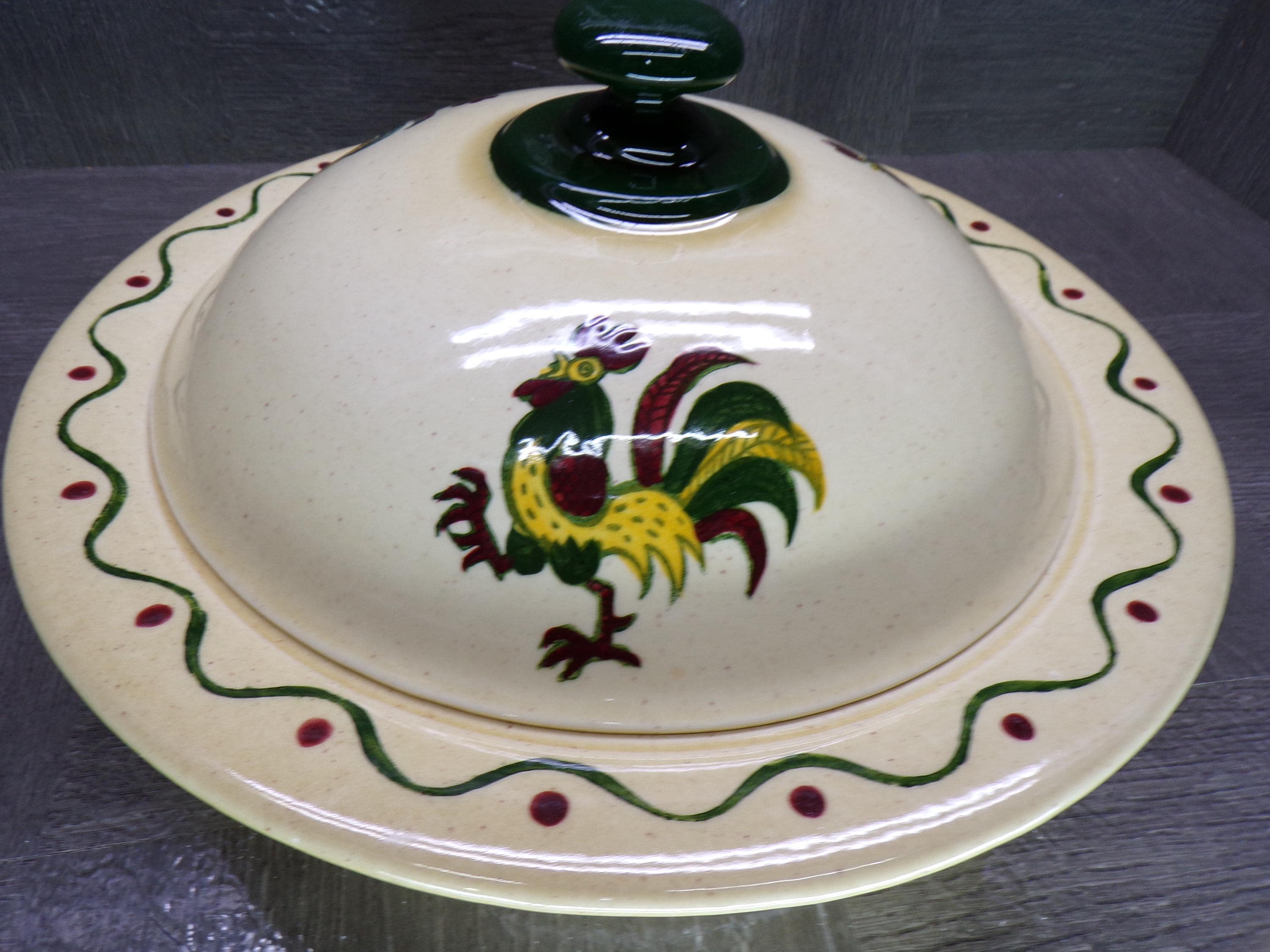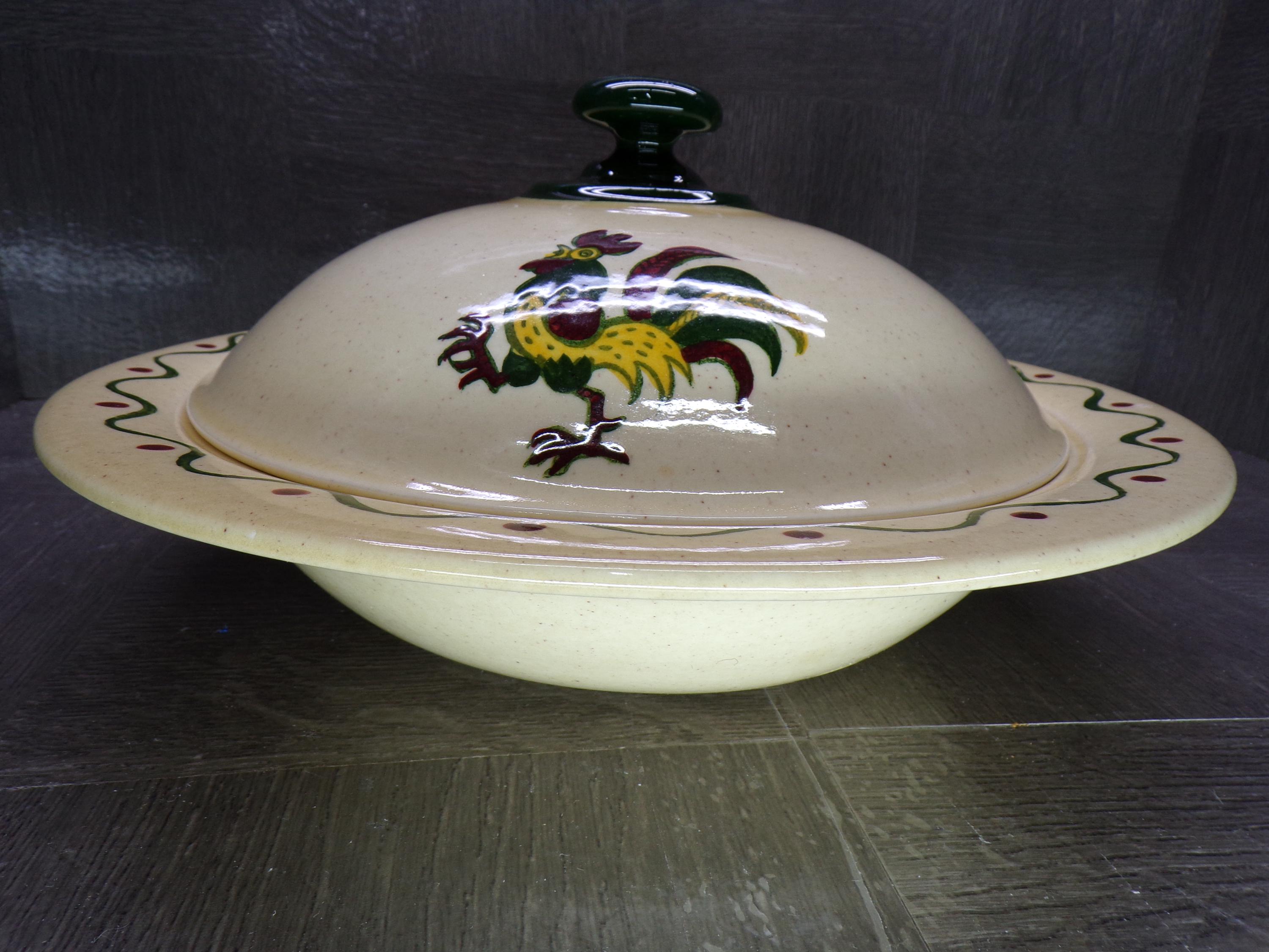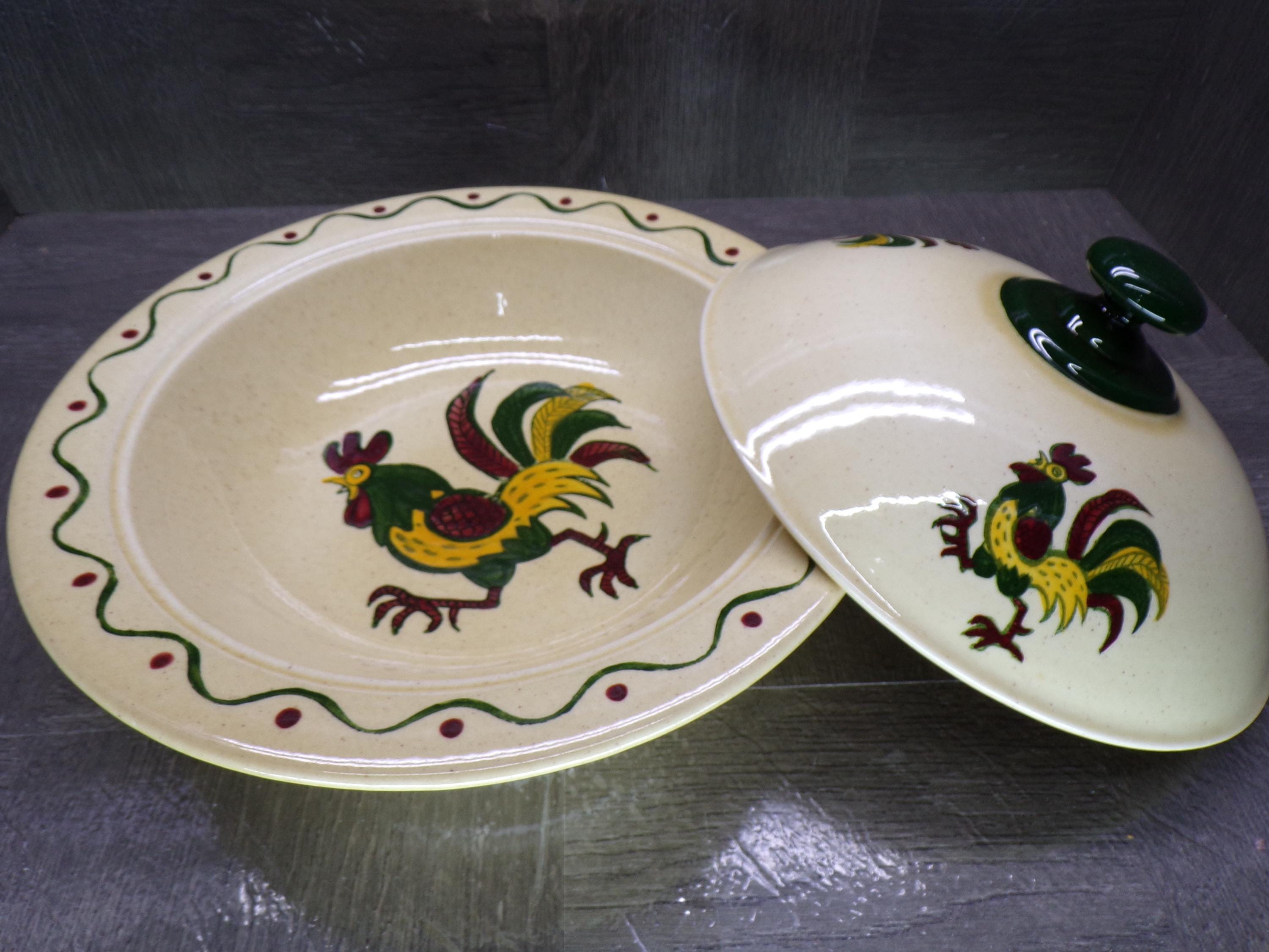 2602 California Provincial Poppytrail 1950's Vintage Hand-painted Vintage Rooster 10" Covered Vegetable Serving Bowl - Great Condition