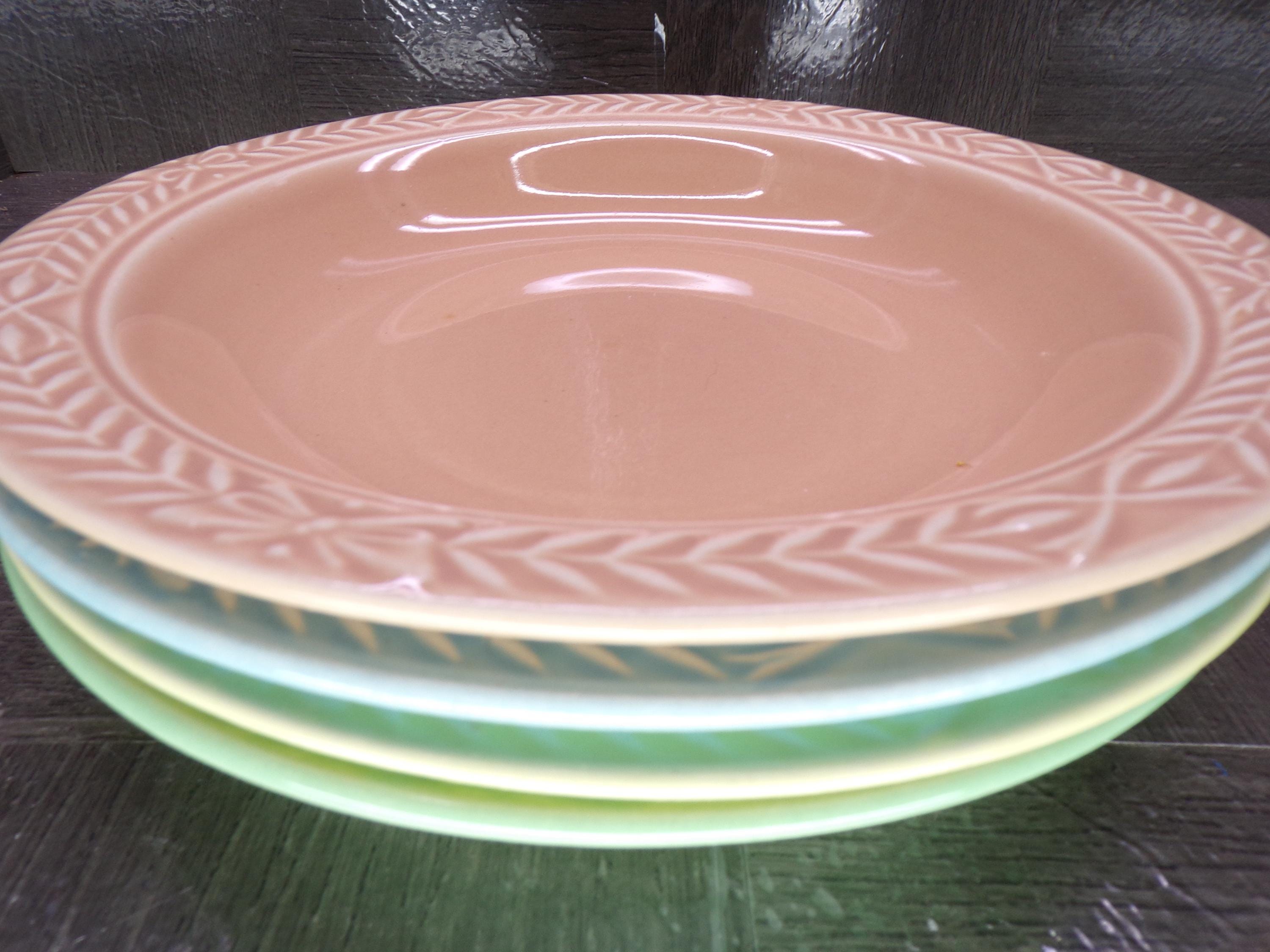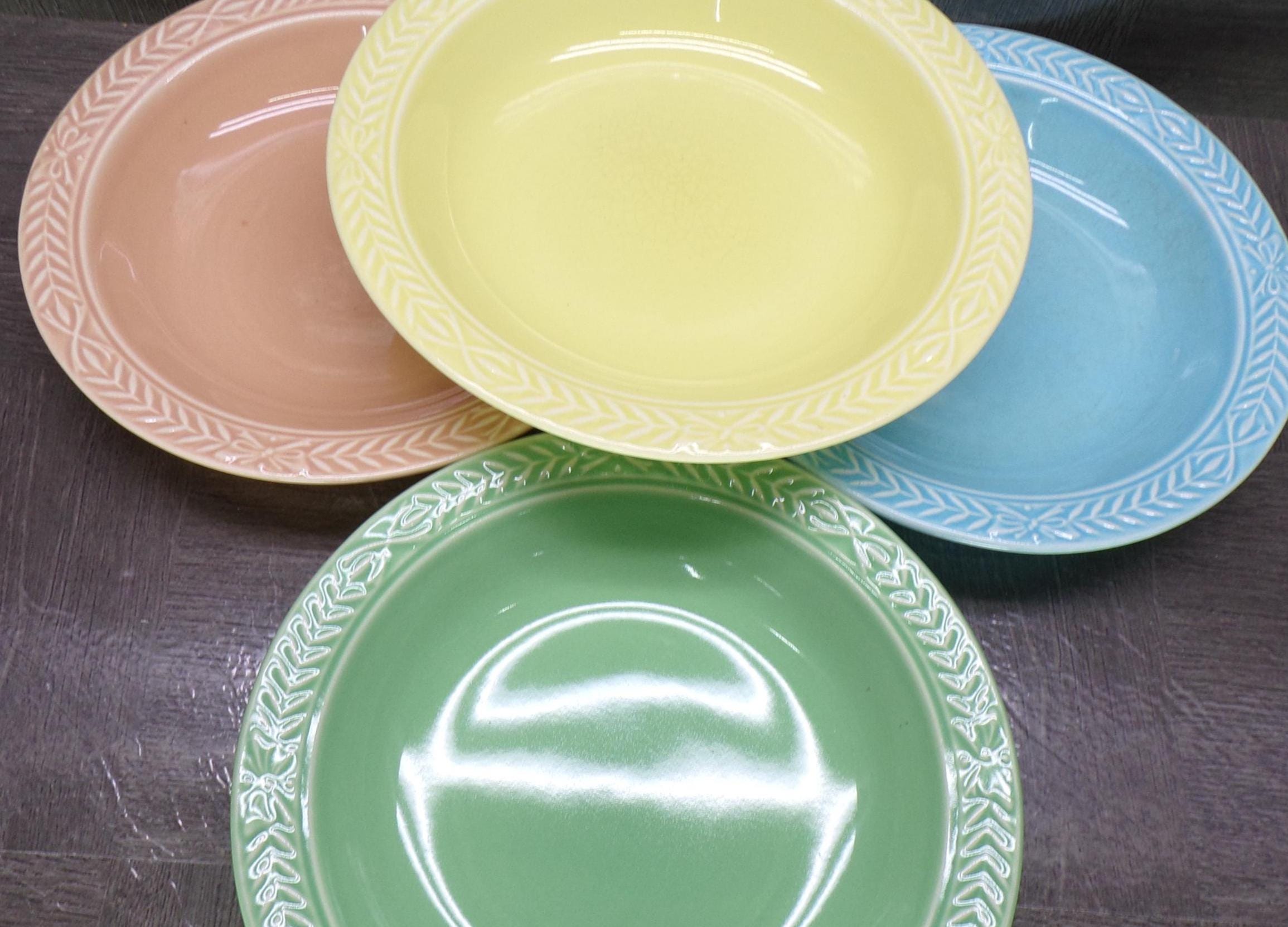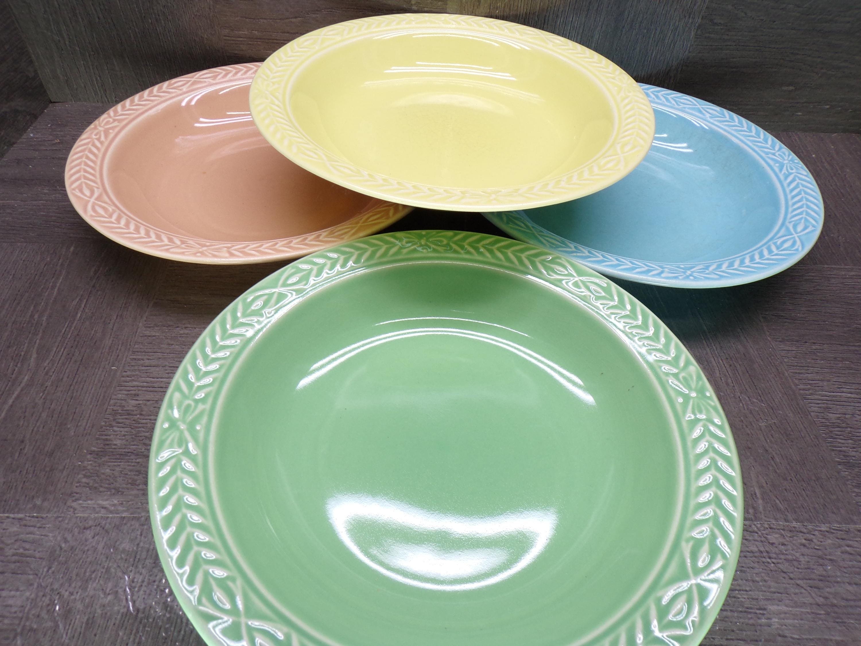 2602 Universal Cambridge Laurella Mixed Colors Vintage Stoneware 7.75" Cereal Bowls Set of 4 - Great Condition