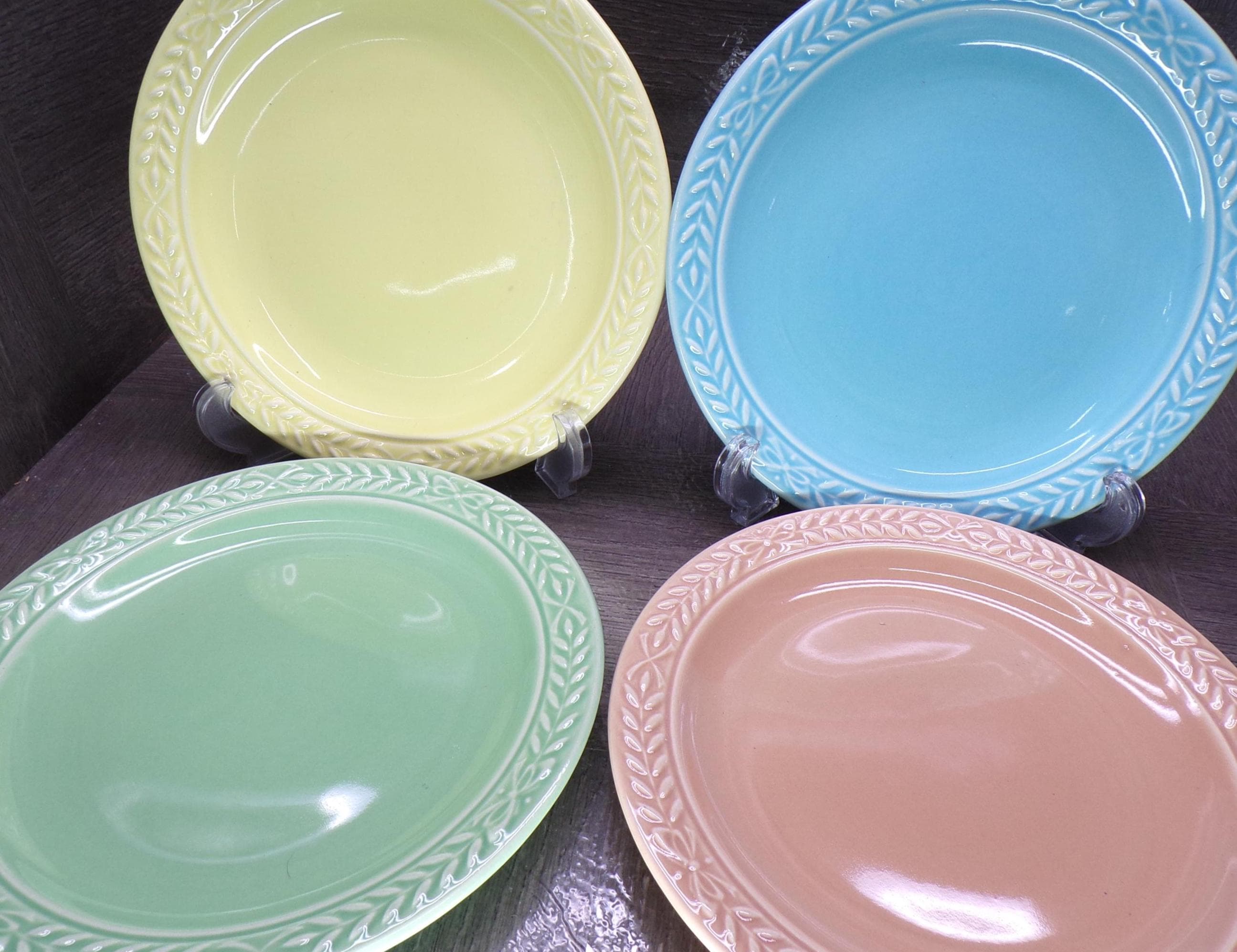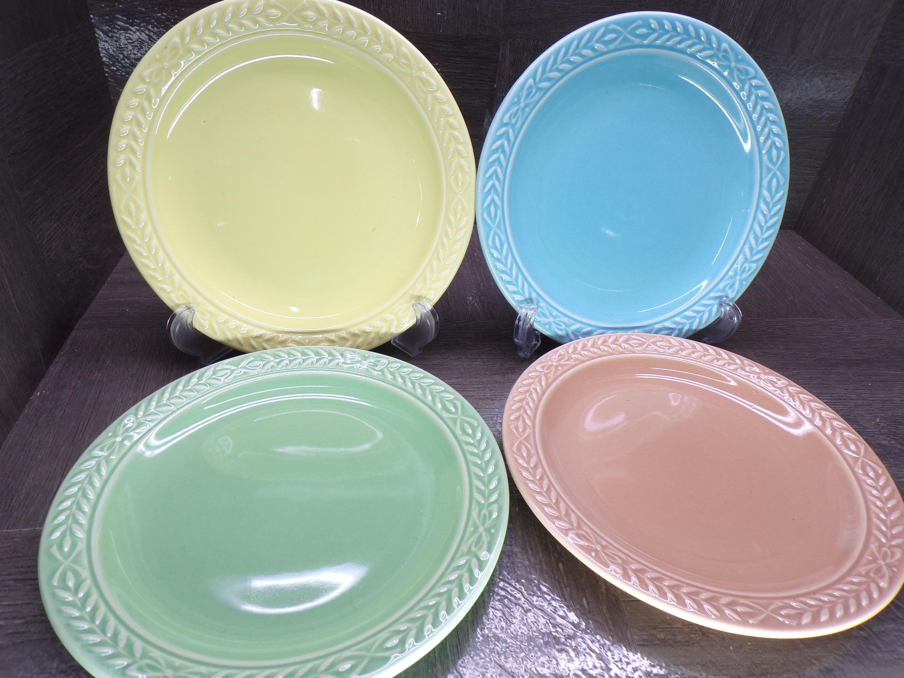 2602 Universal Cambridge Laurella Mixed Colors Vintage Stoneware 7.5" Snack Plates Set of 4 - Great Condition