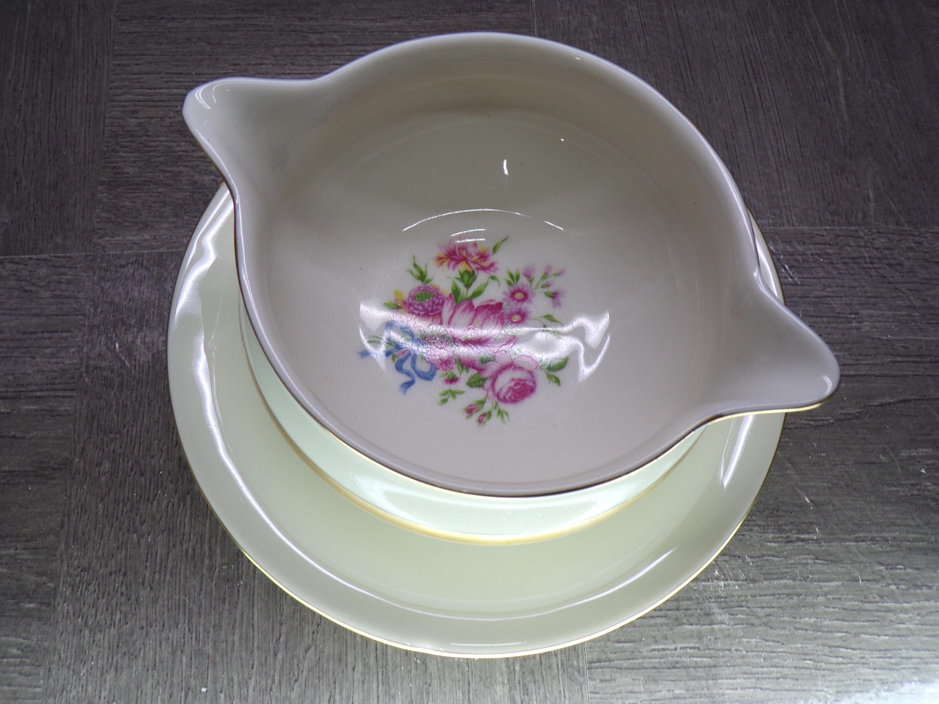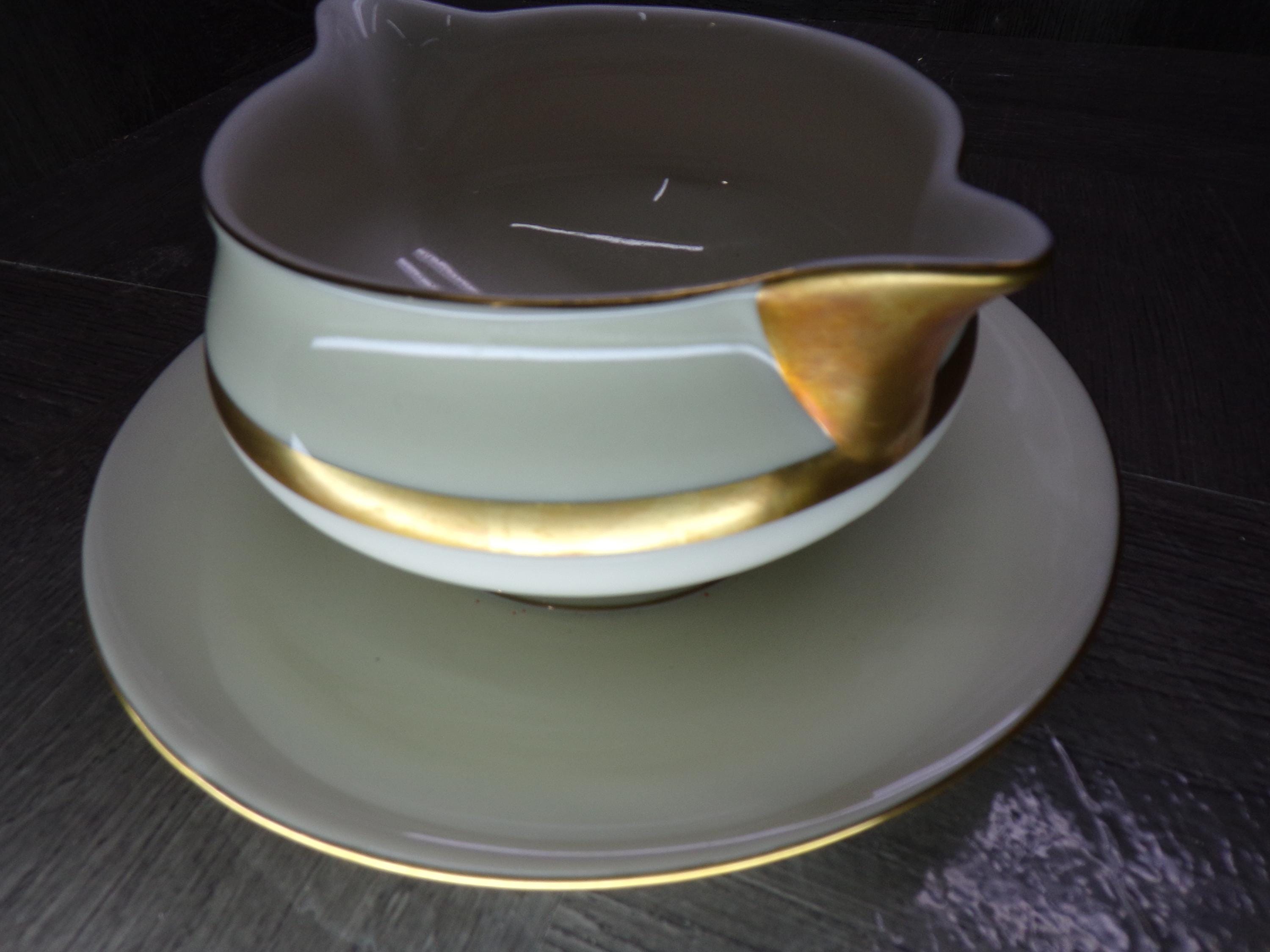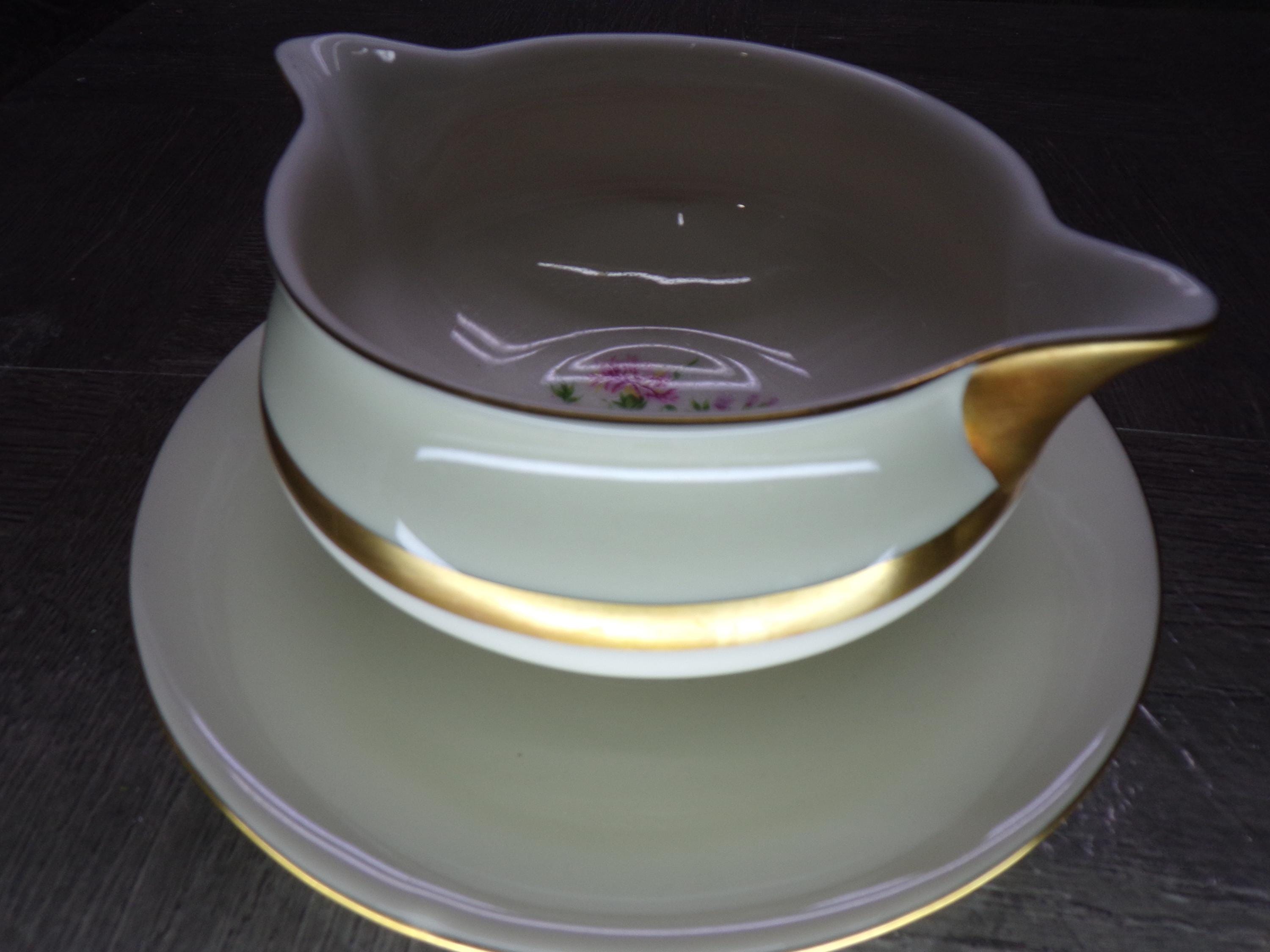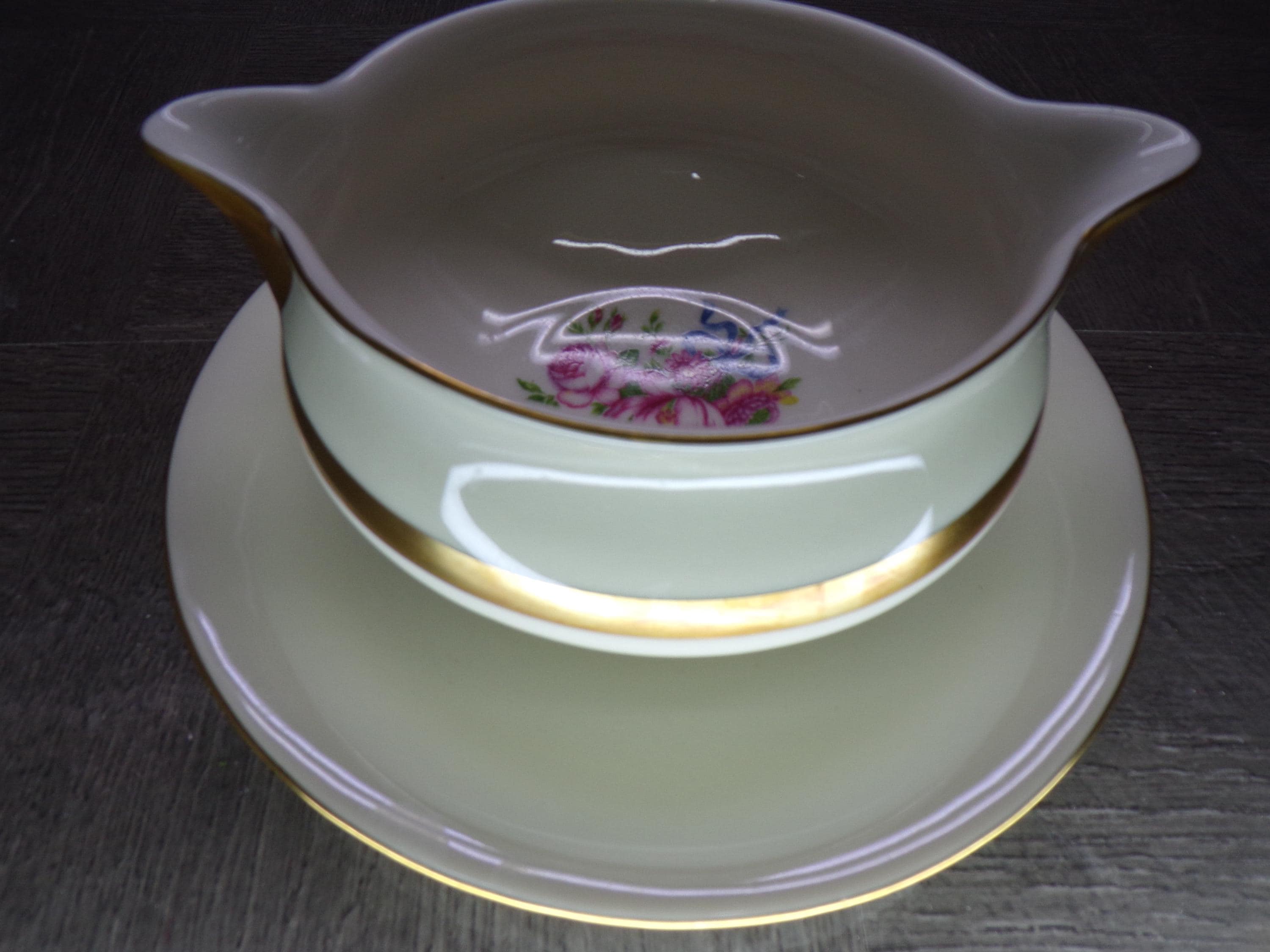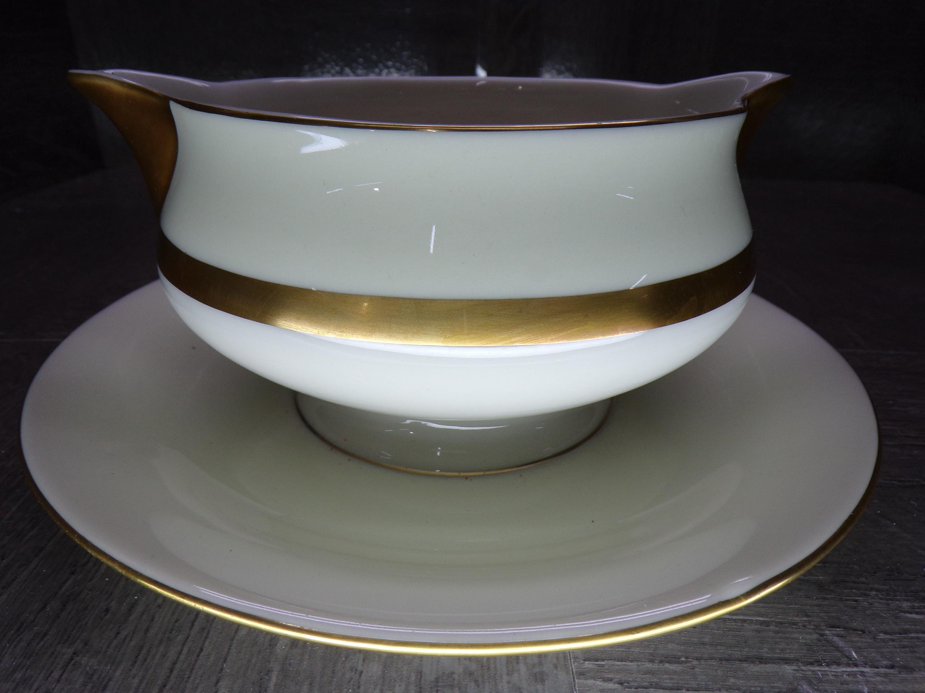 2602 Theodore Haviland New York Kenmore Gravy Boat w/ Attached Underplate - Good Condition w/ a Few Scratches on the Gold Accent