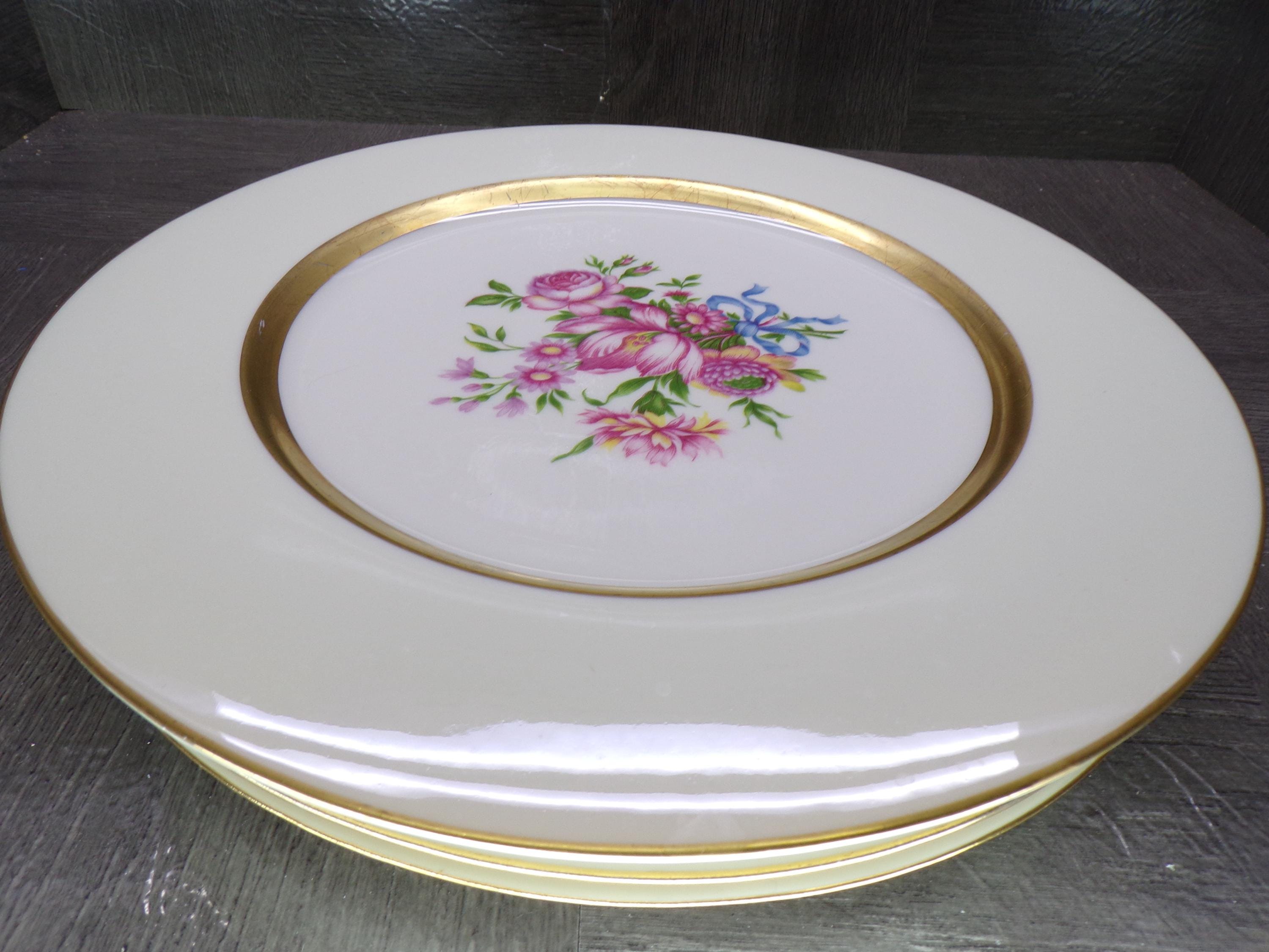 2602 Theodore Haviland New York Kenmore 10.5" Dinner Plates Set of 4 - Great Condition w/ a Few Scratches on the Gold Accent