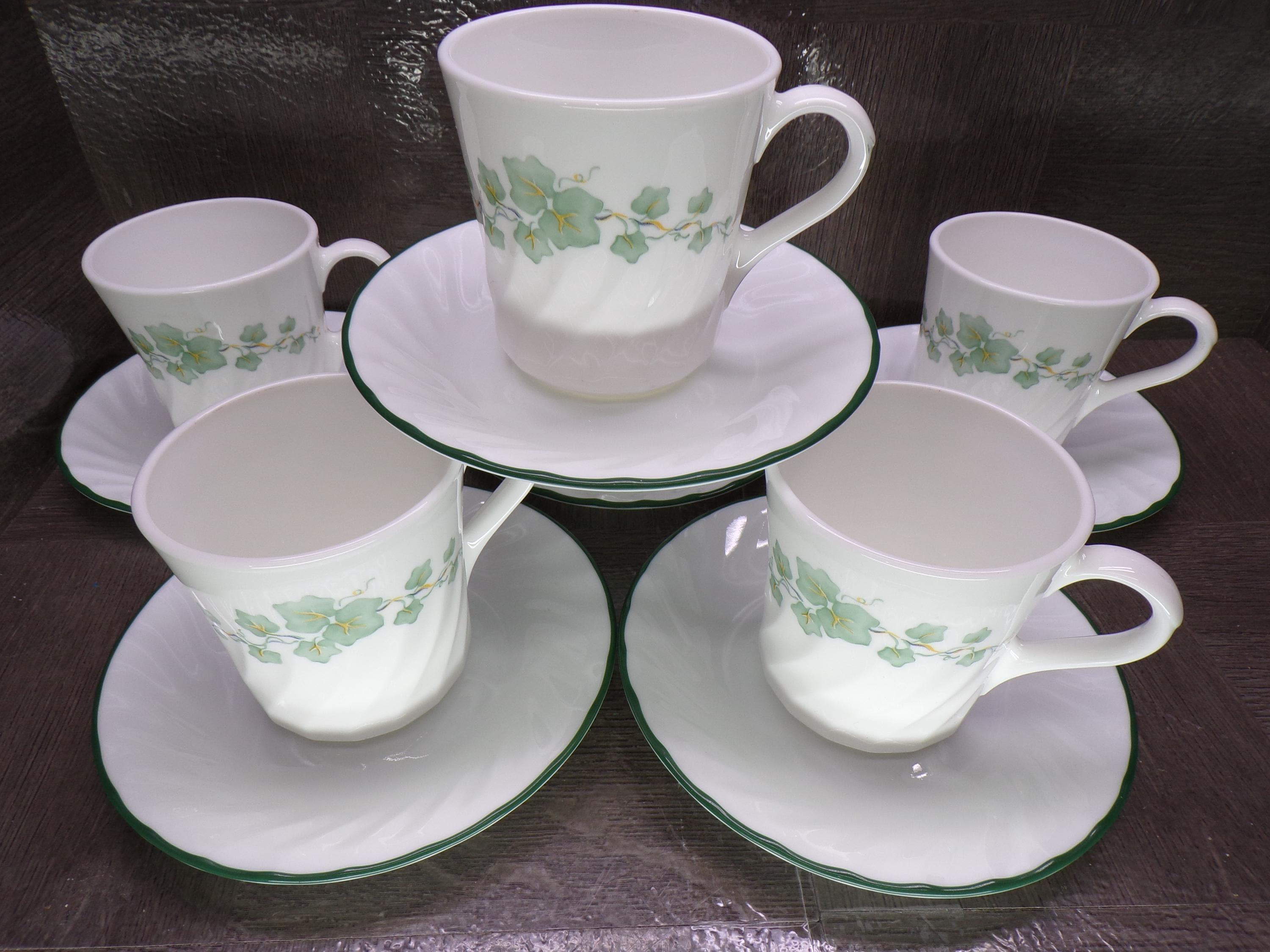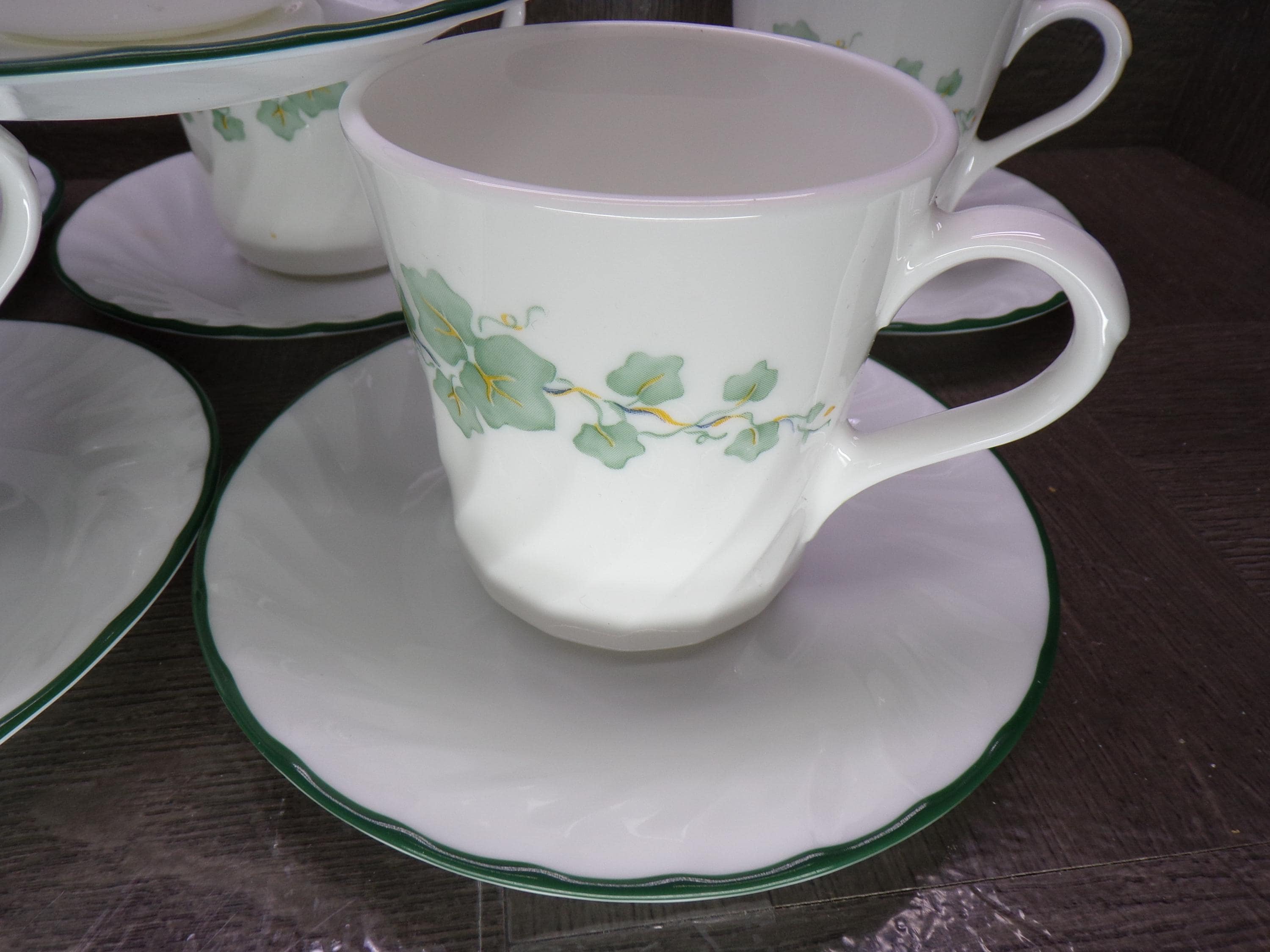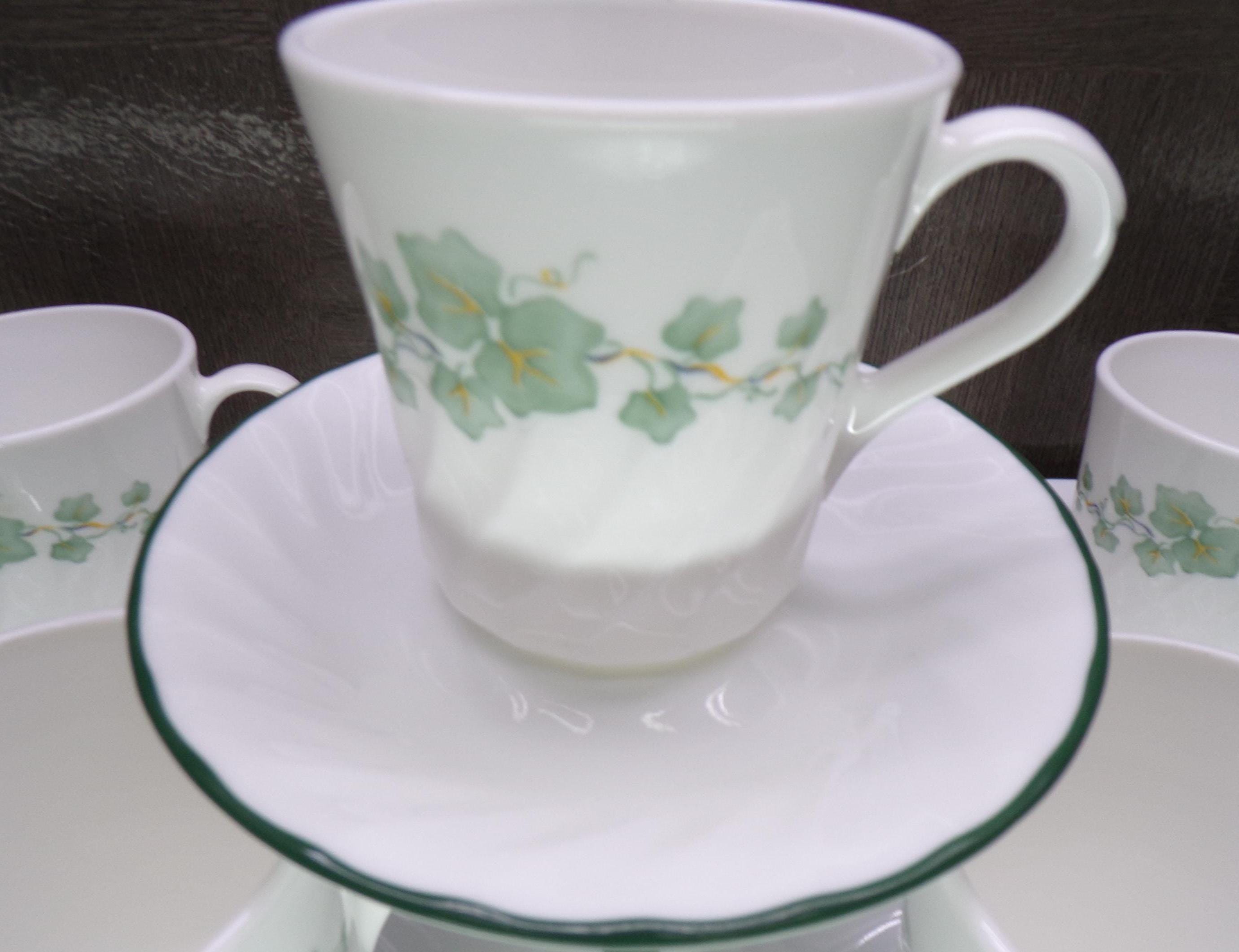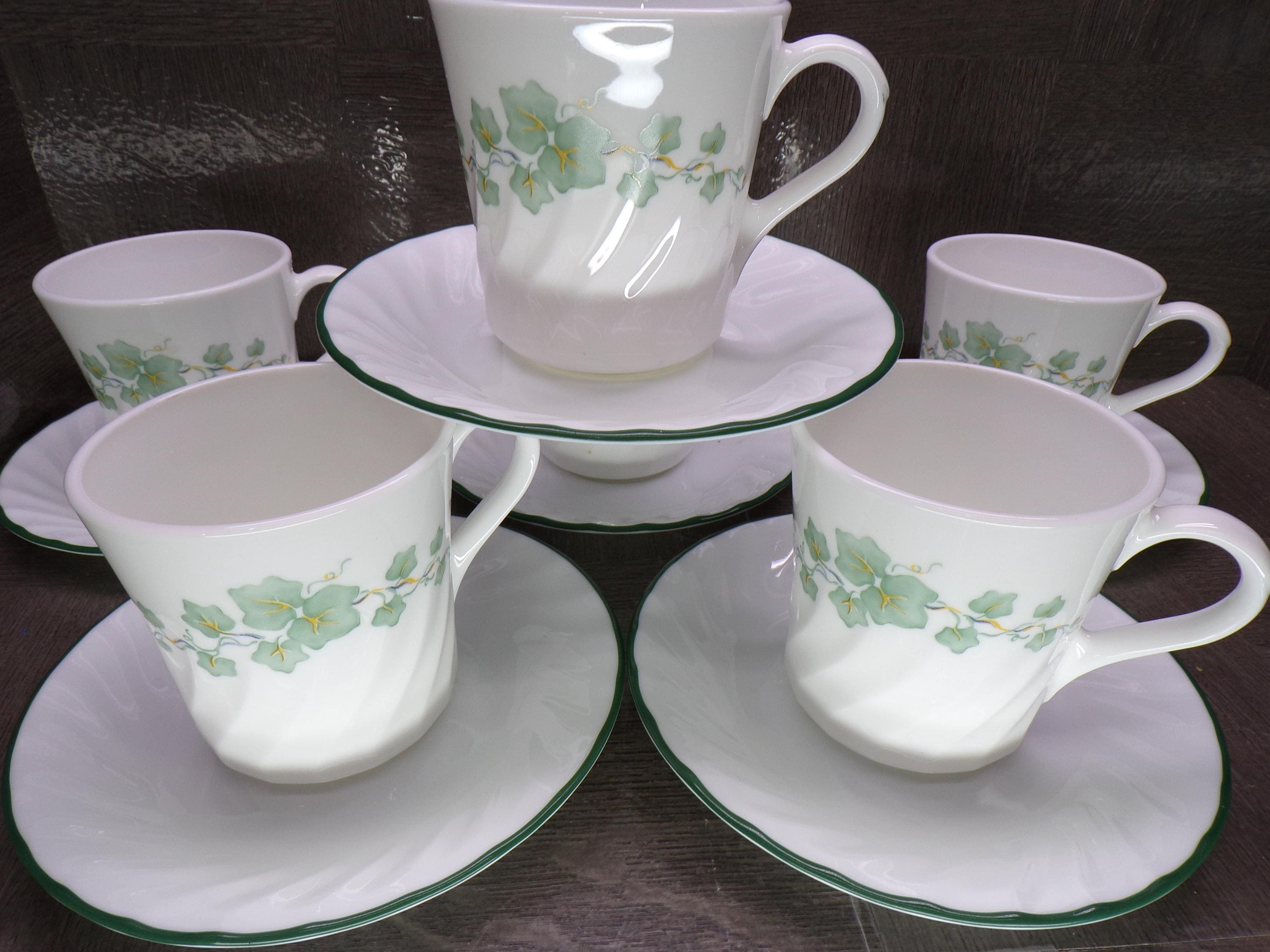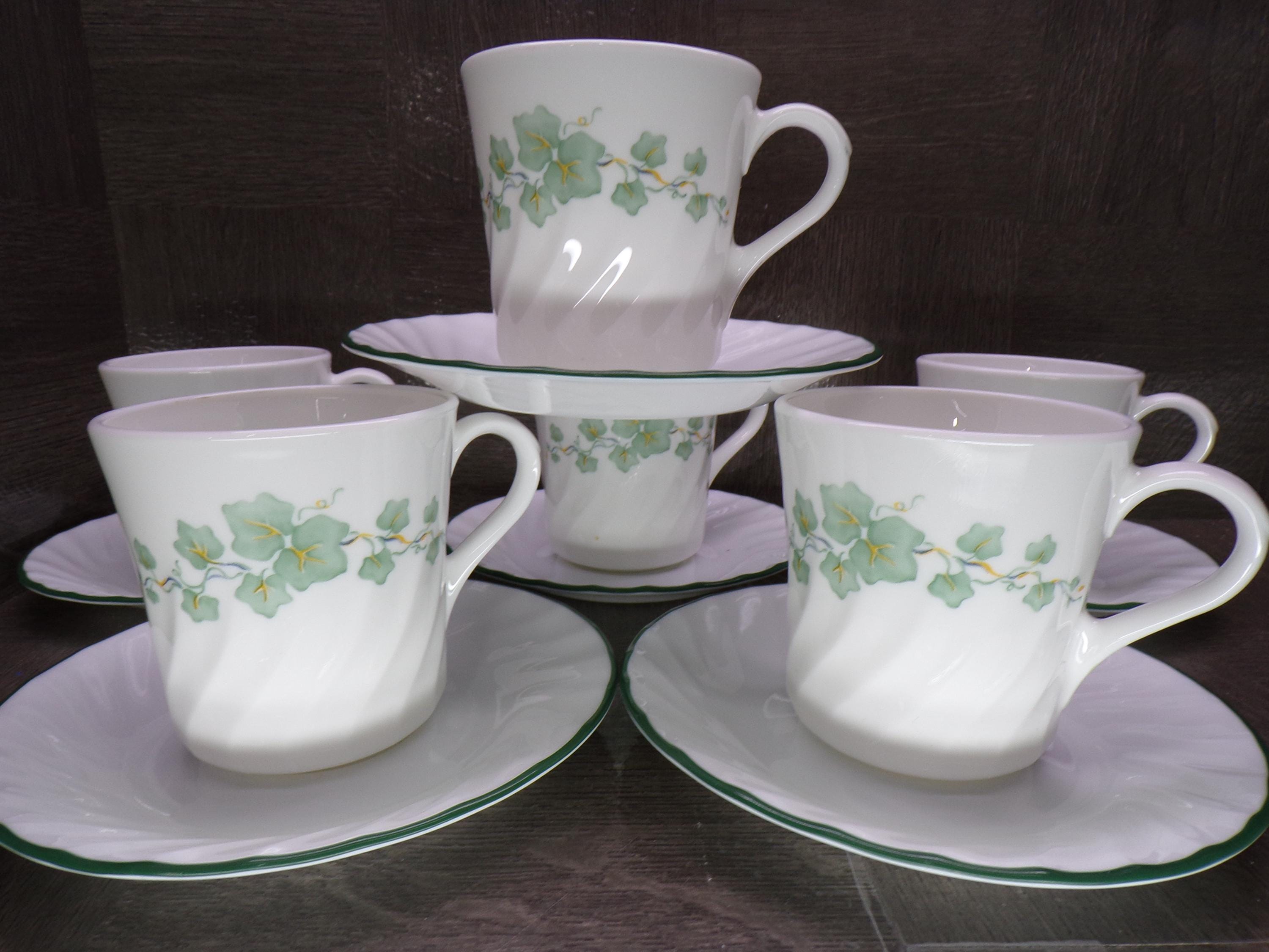 2602 Corelle Coordinates Callaway Green Ivy Swirl with Green Rim 12 pc Set (6) Cups & (6) Saucers - Excellent Condition