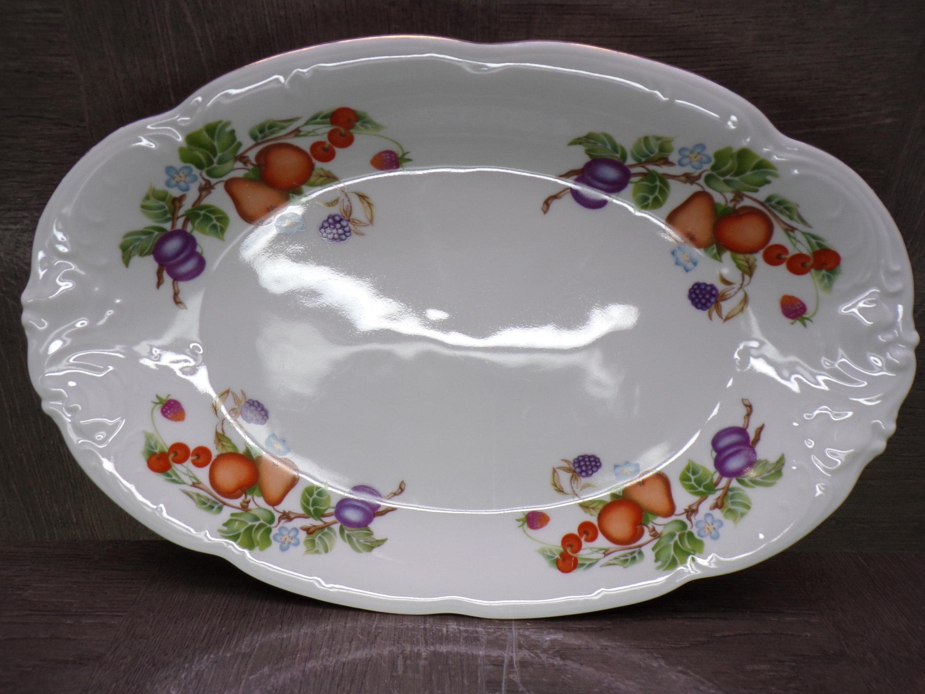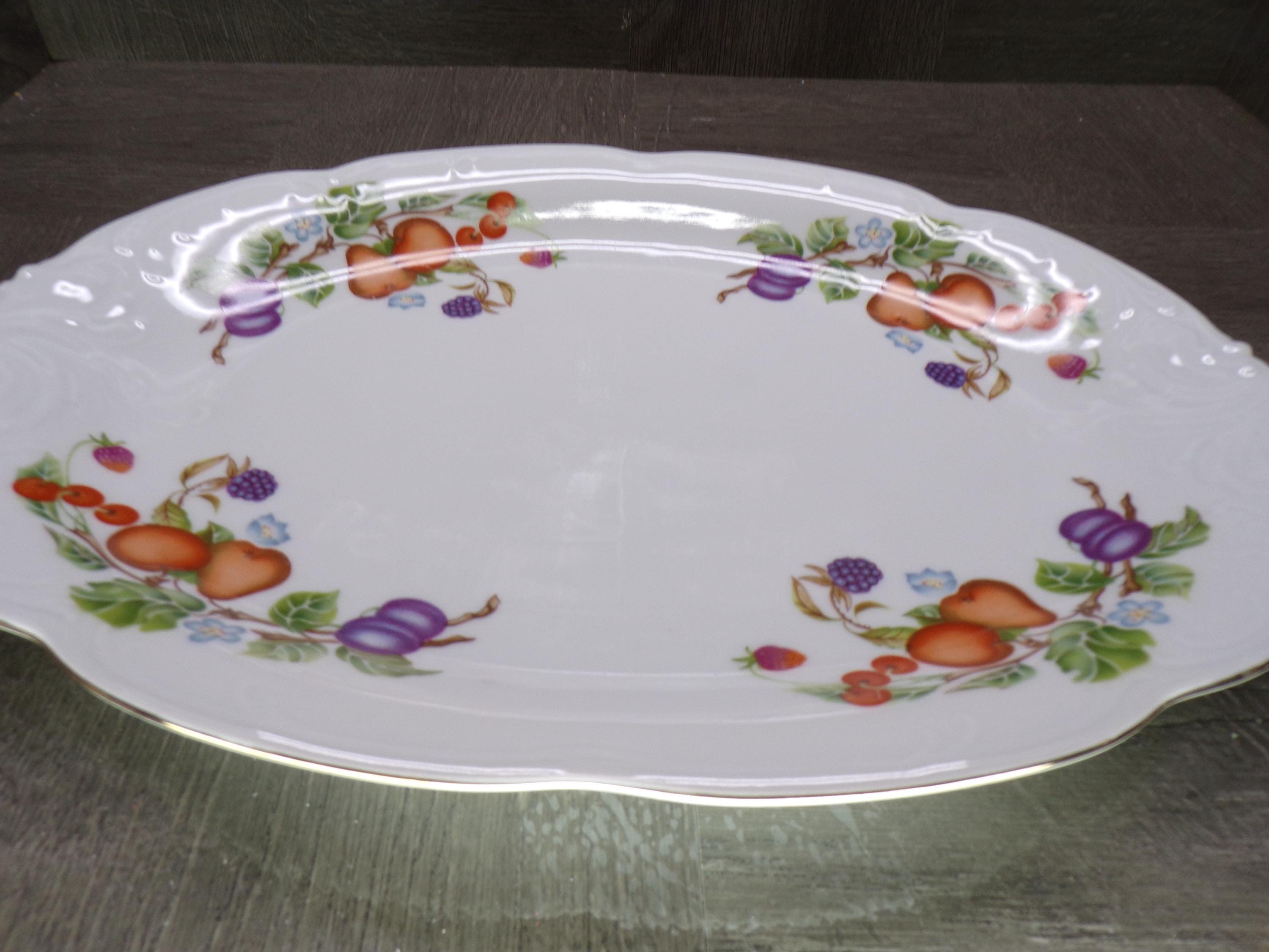 2602 Wawel 13" x 9" Oval Fruit Garland Platter w/ Gold Rim Made in Poland - Great Condition