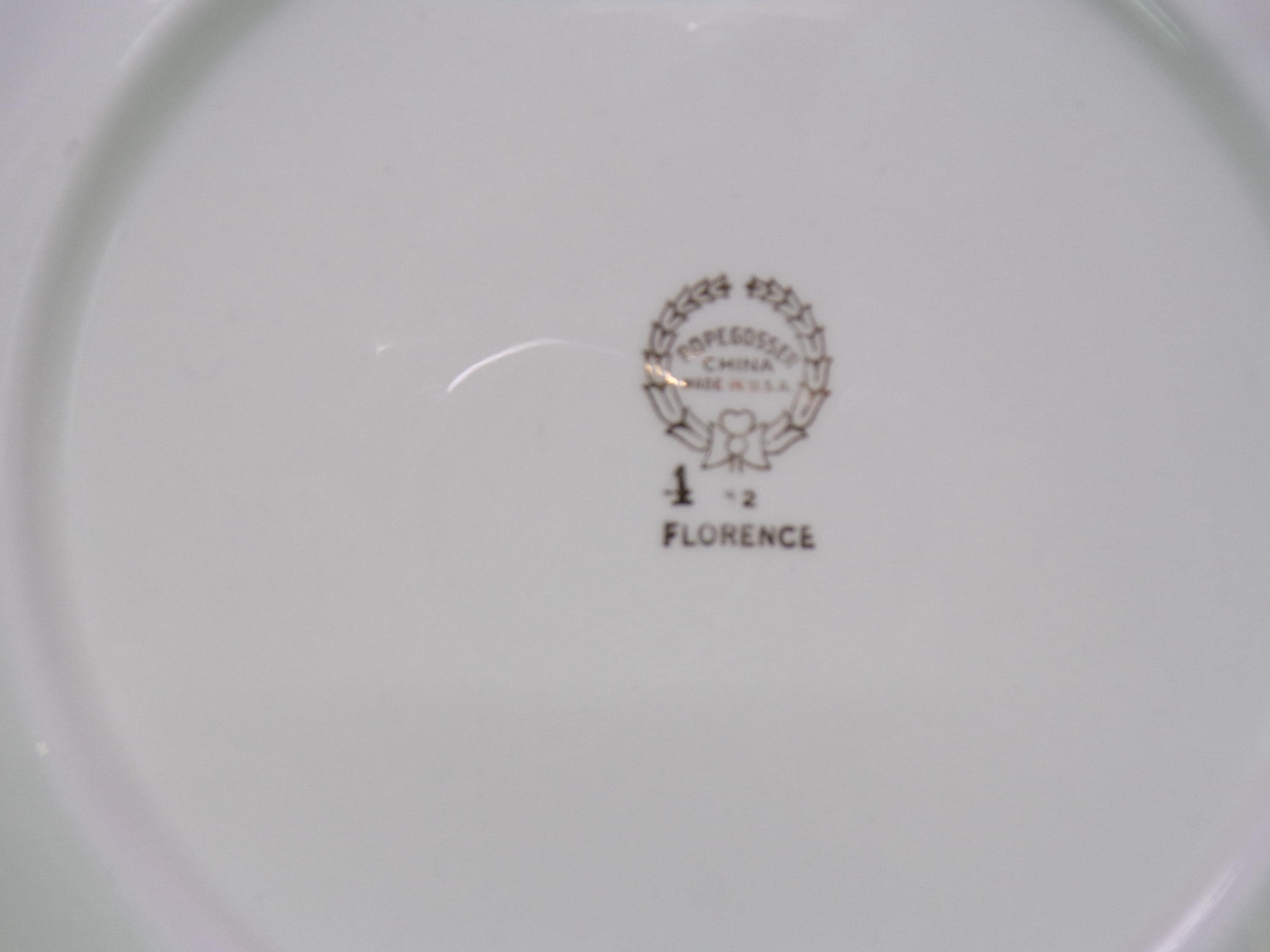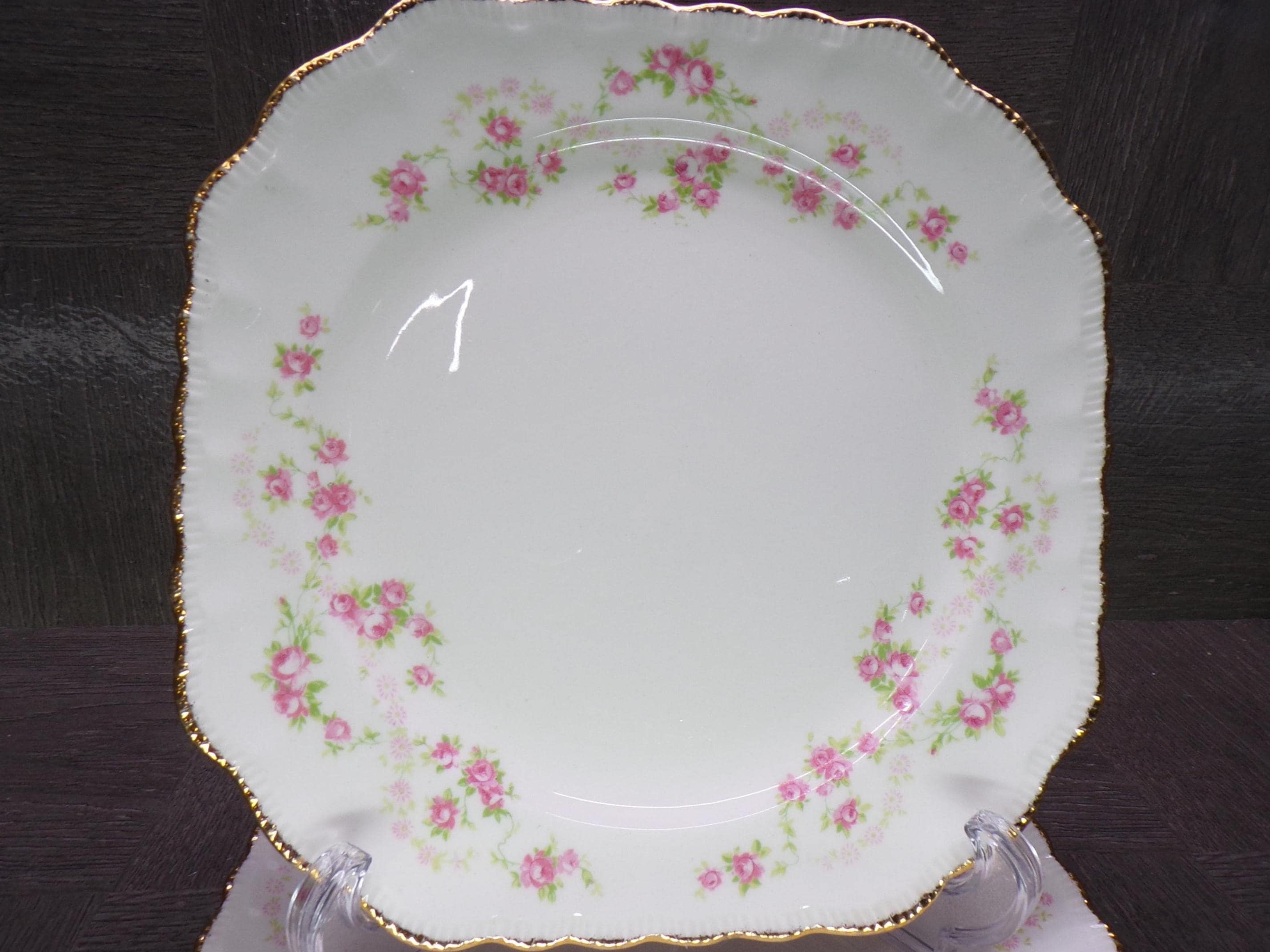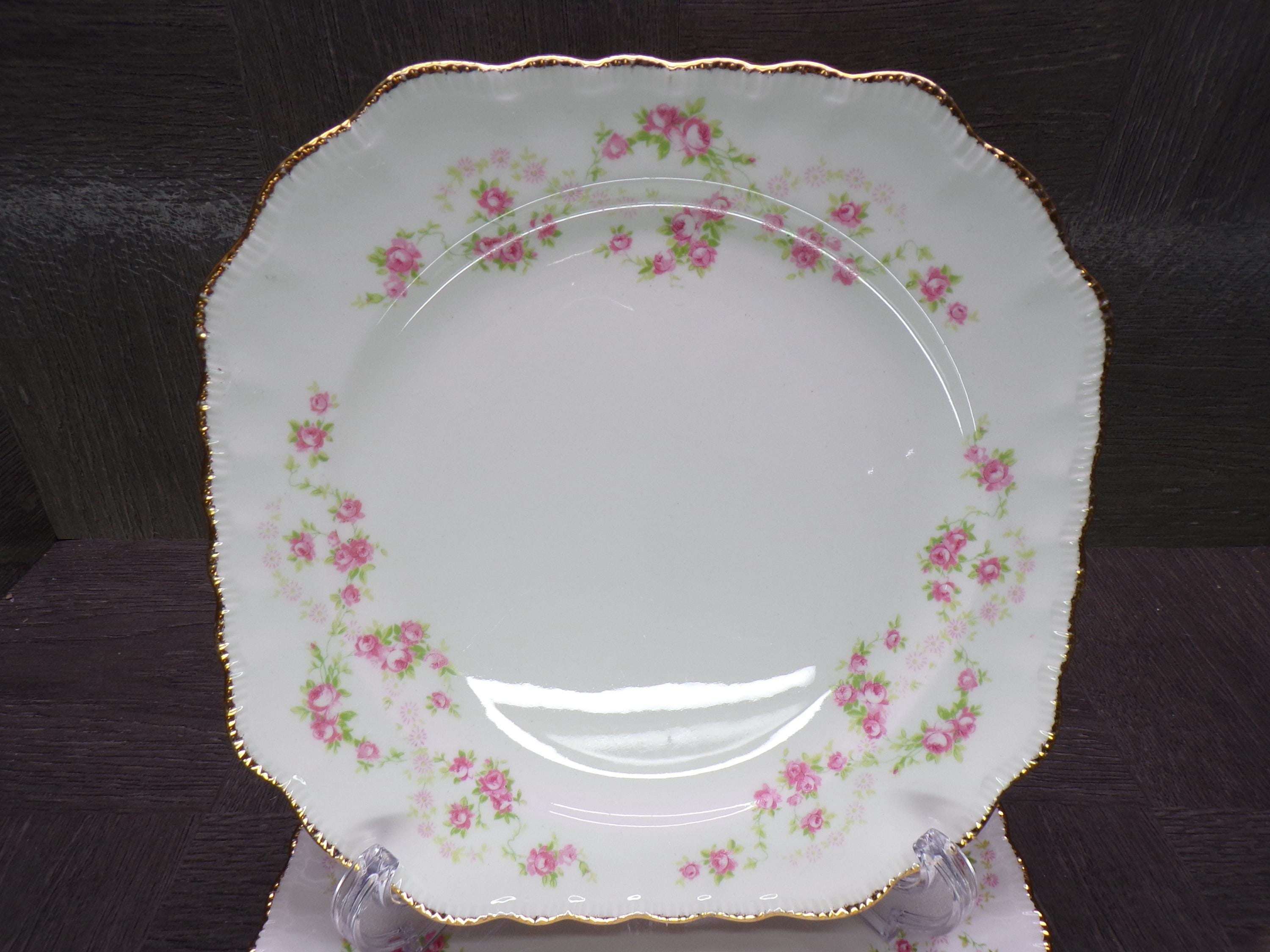 2602 Pope-Gosser Florence Vintage 7.5" Salad / Snack Plates Set of 4 Pink Rose China w/ Gold Rim Made in USA - Great Condition