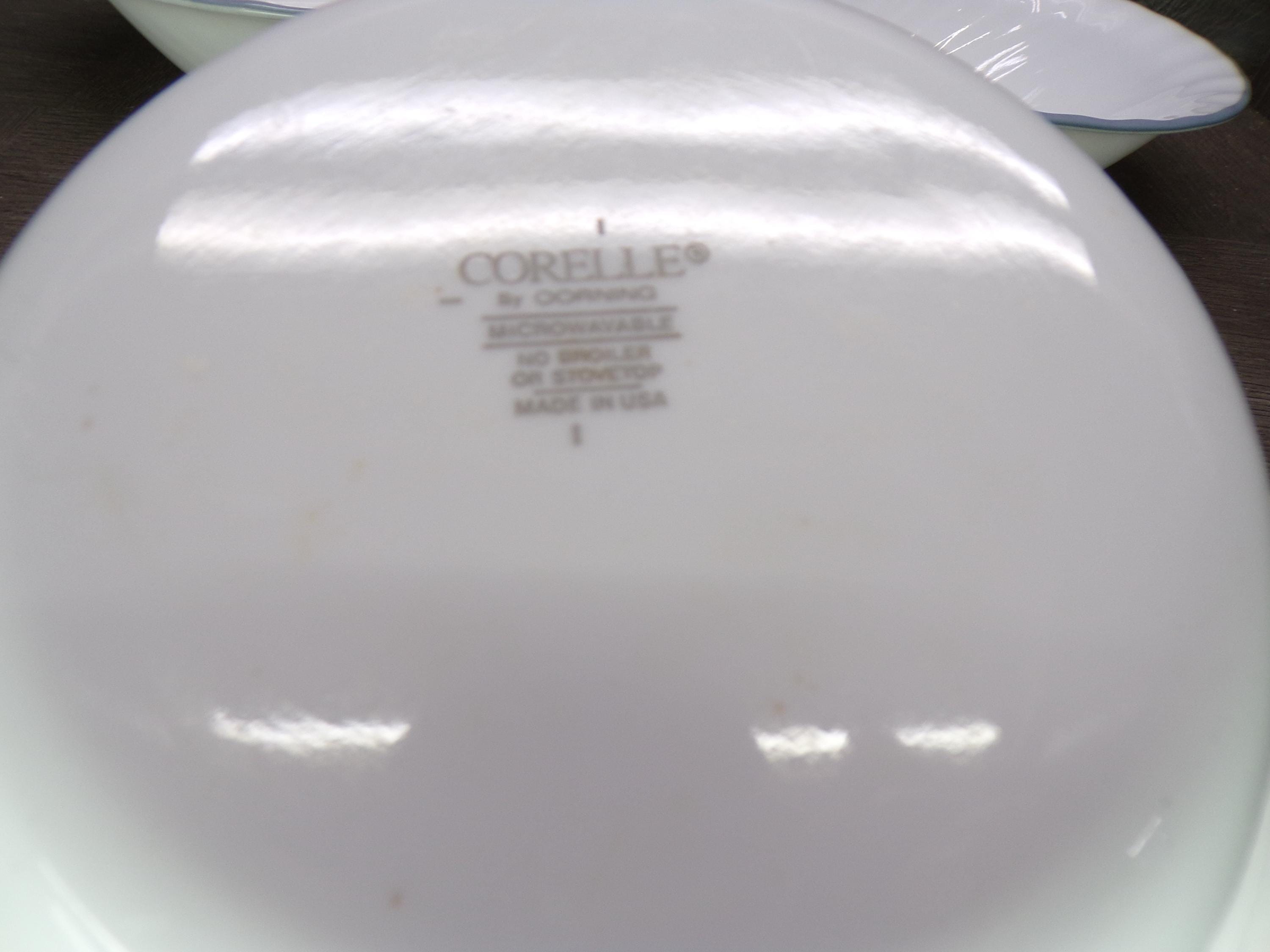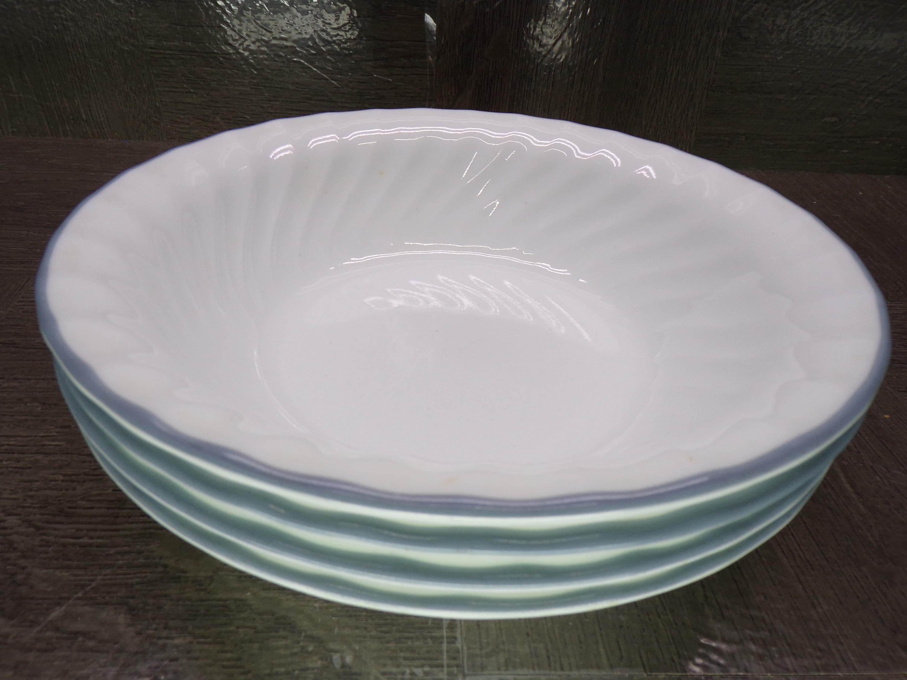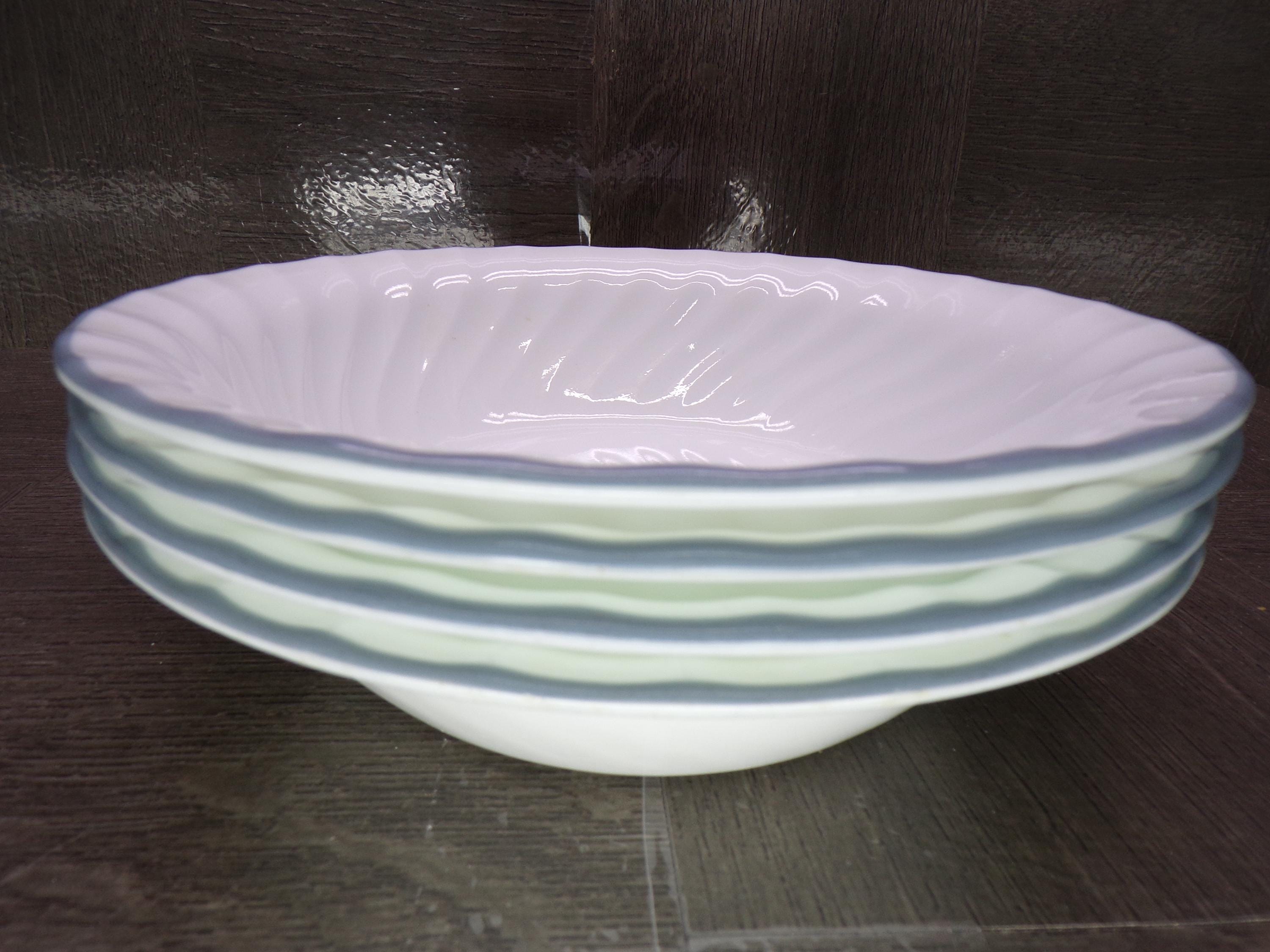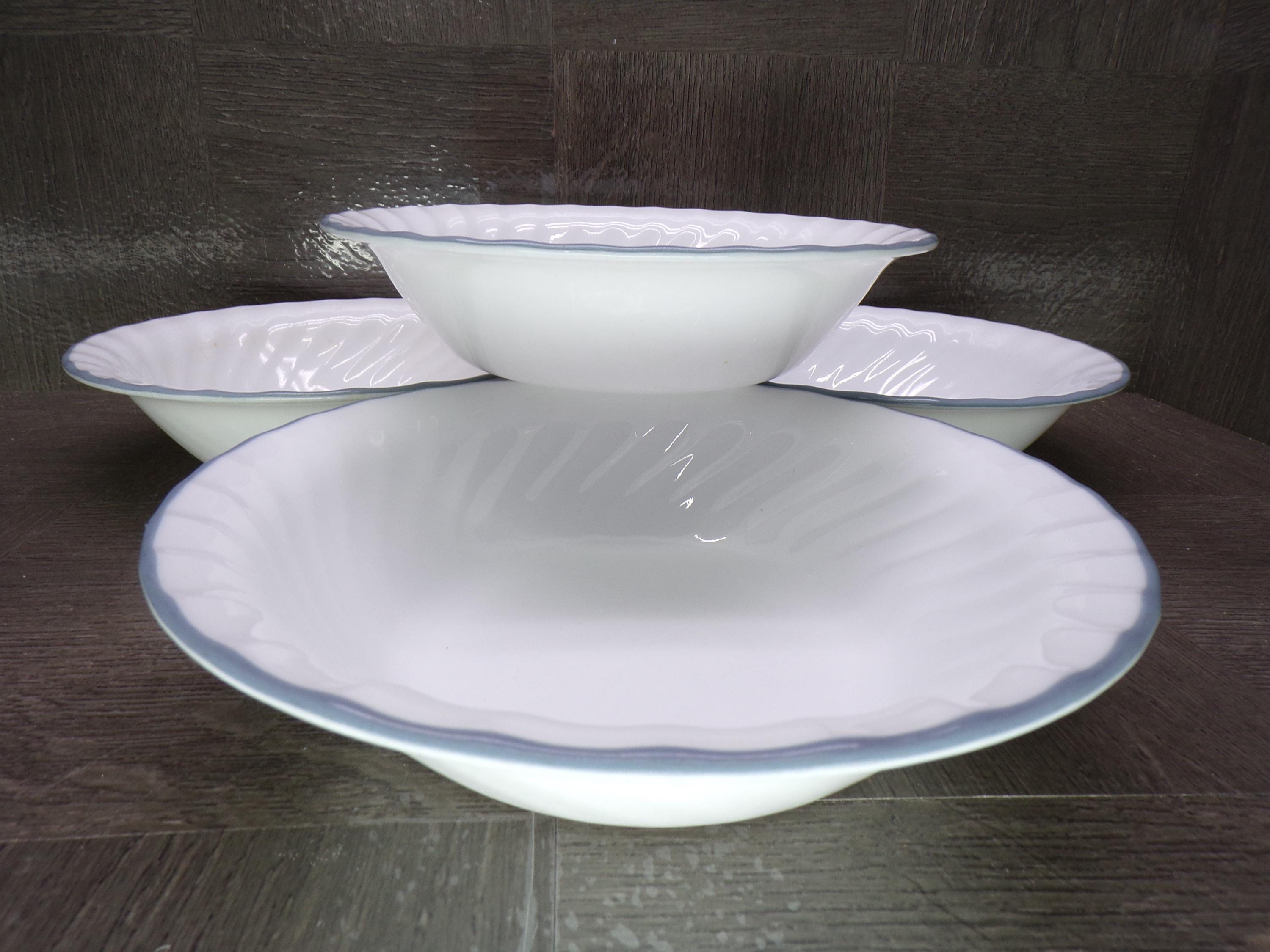 2602 Corelle Vitrelle White Swirl 7" Light Blue Rim Cereal Bowls Set of 4 - Good Condition