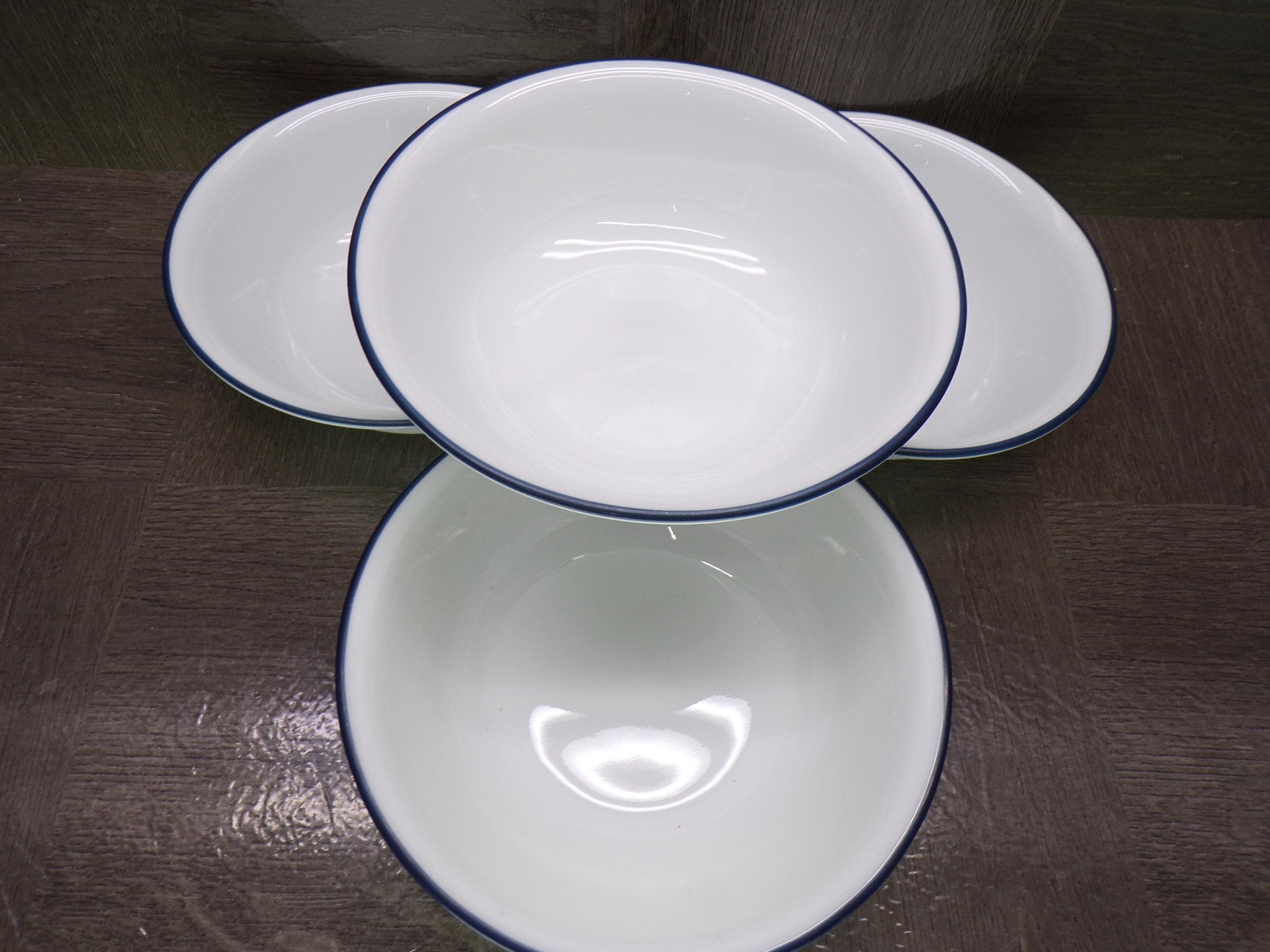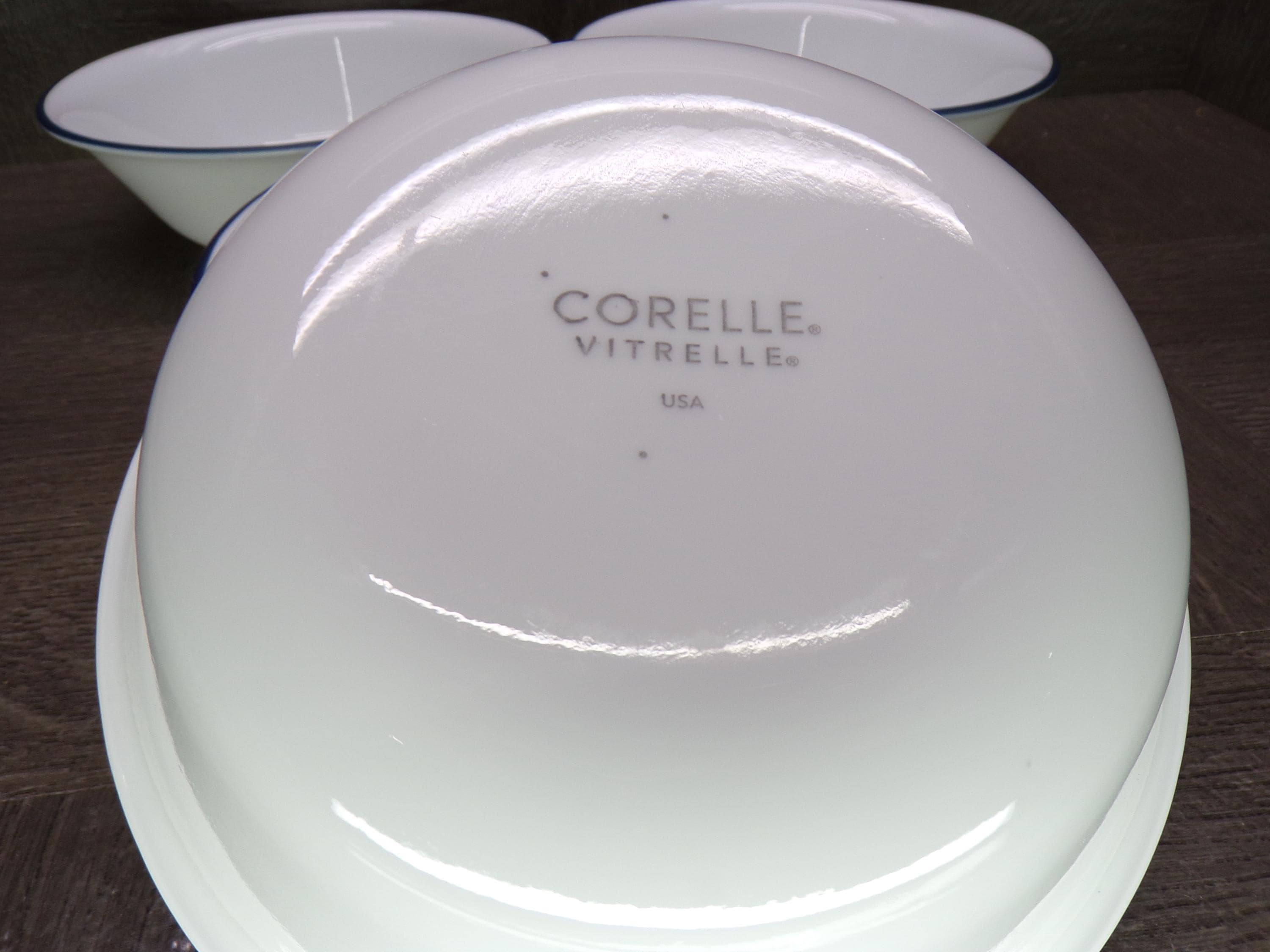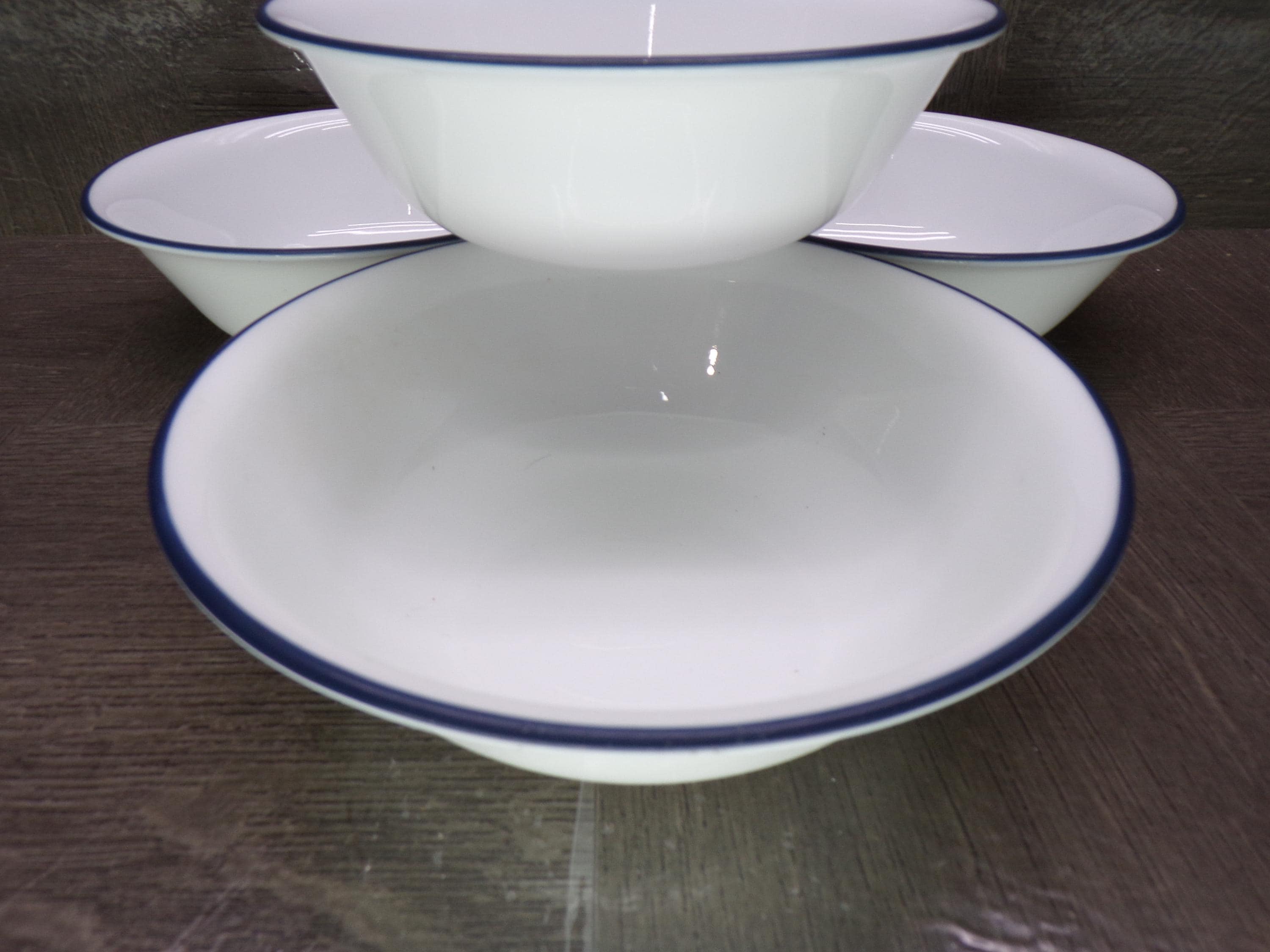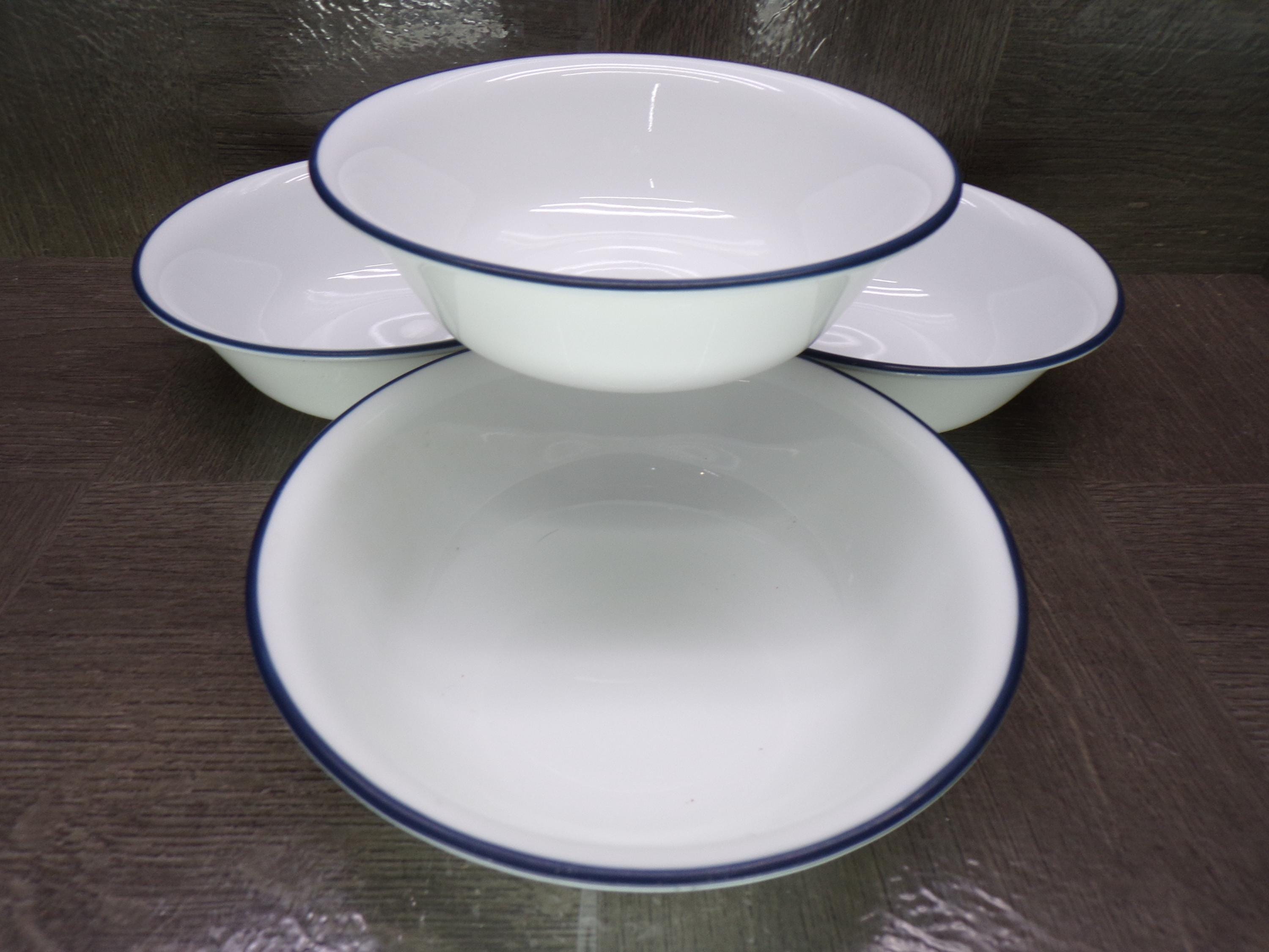 2602 Corelle Vitrelle White 6.25" Navy Blue Rim Cereal Bowls Set of 4 - Great Condition