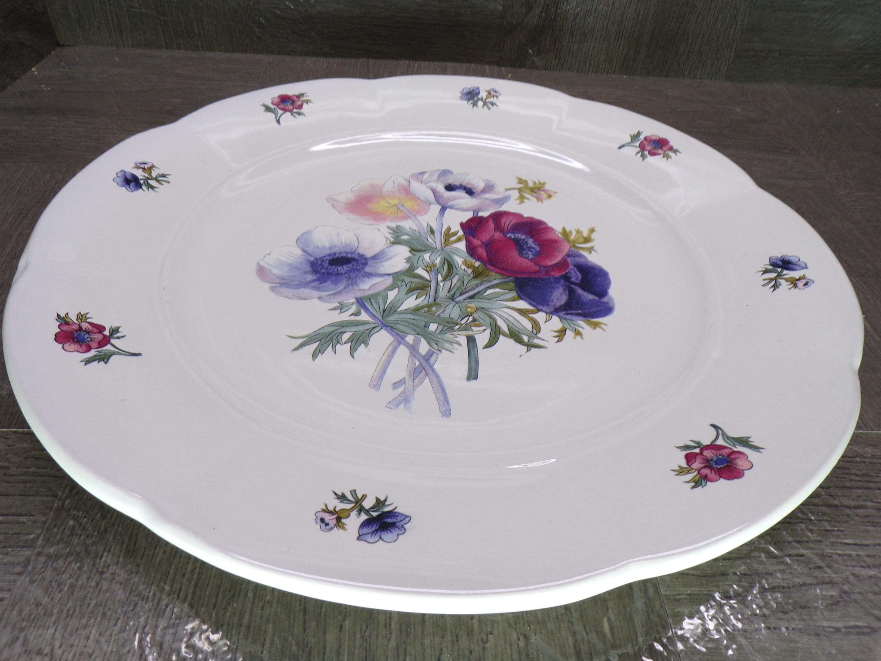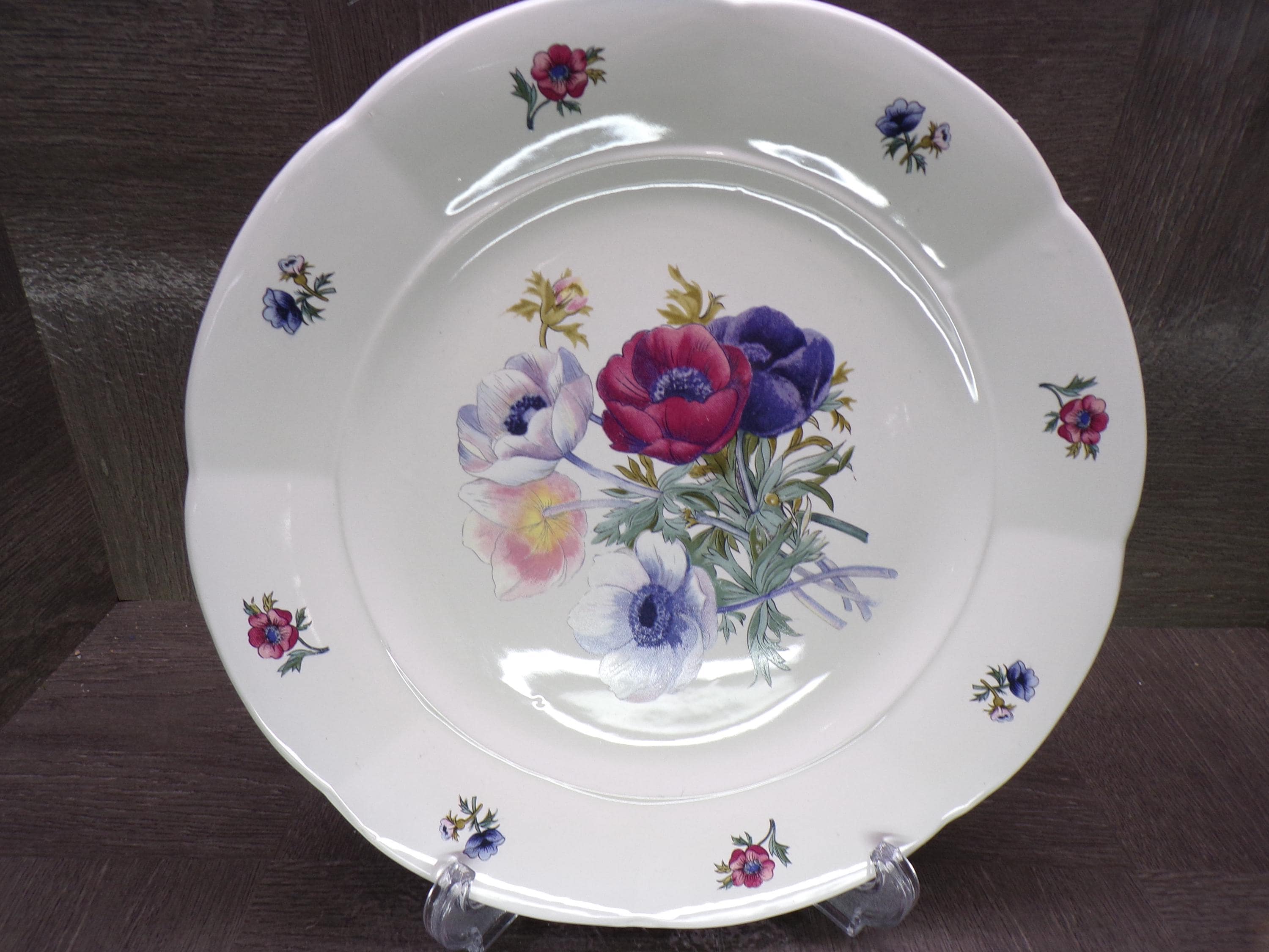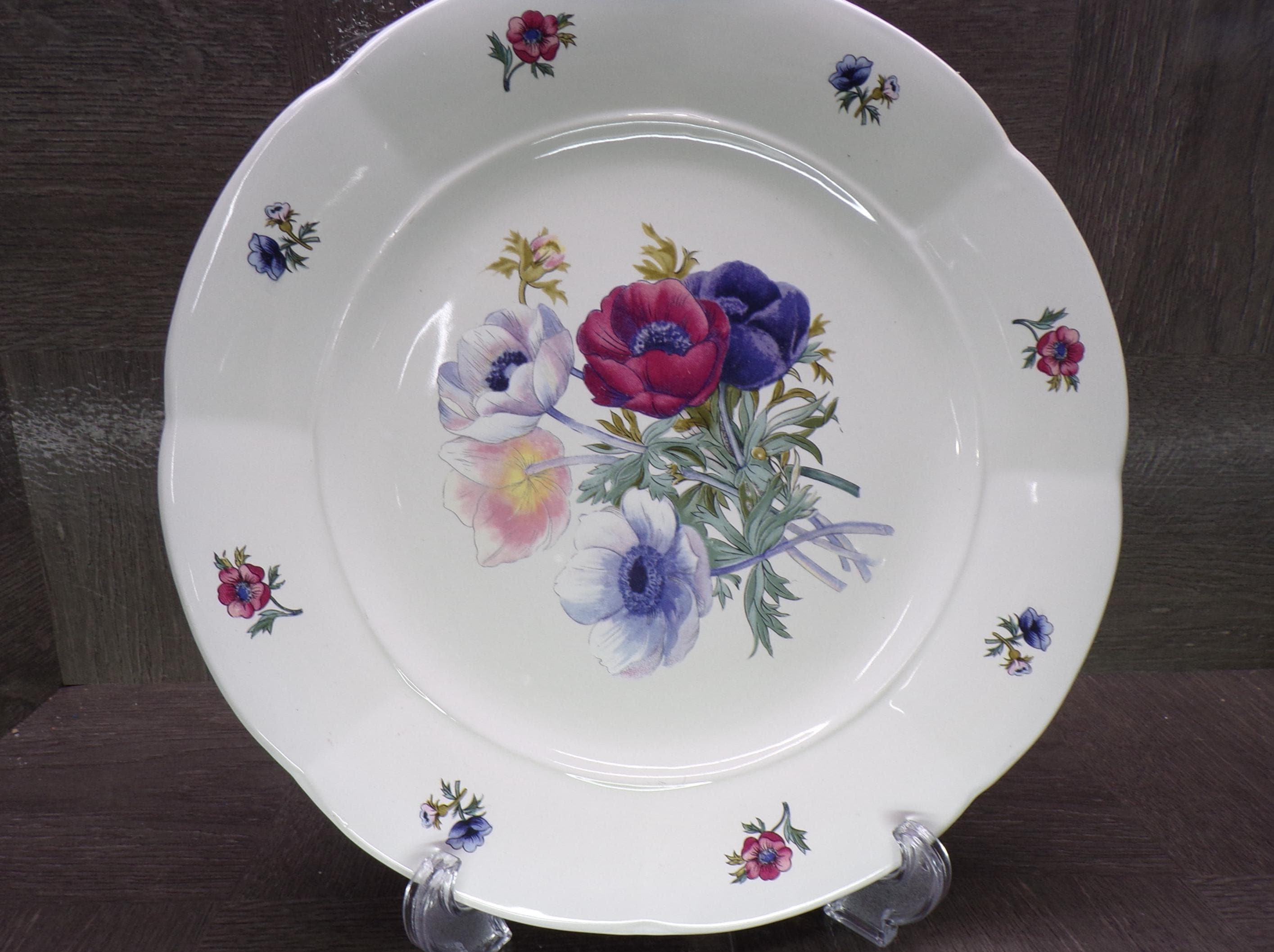 2602 Gibson Meridian One Vintage 1996-2000 Discontinued 10.5" Dinner Plate Blue, Red, Purple Floral - Excellent Condition