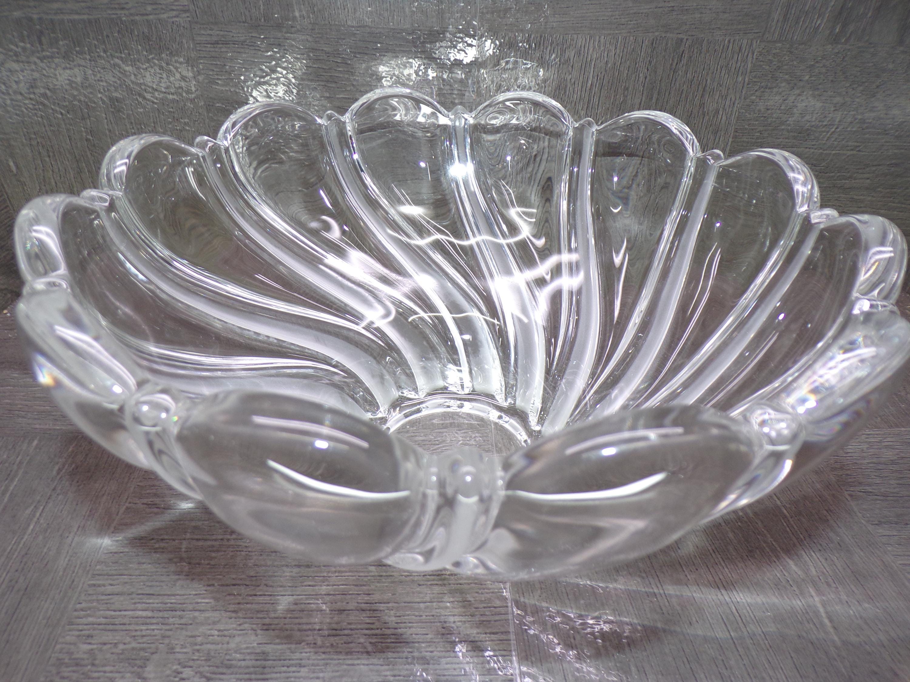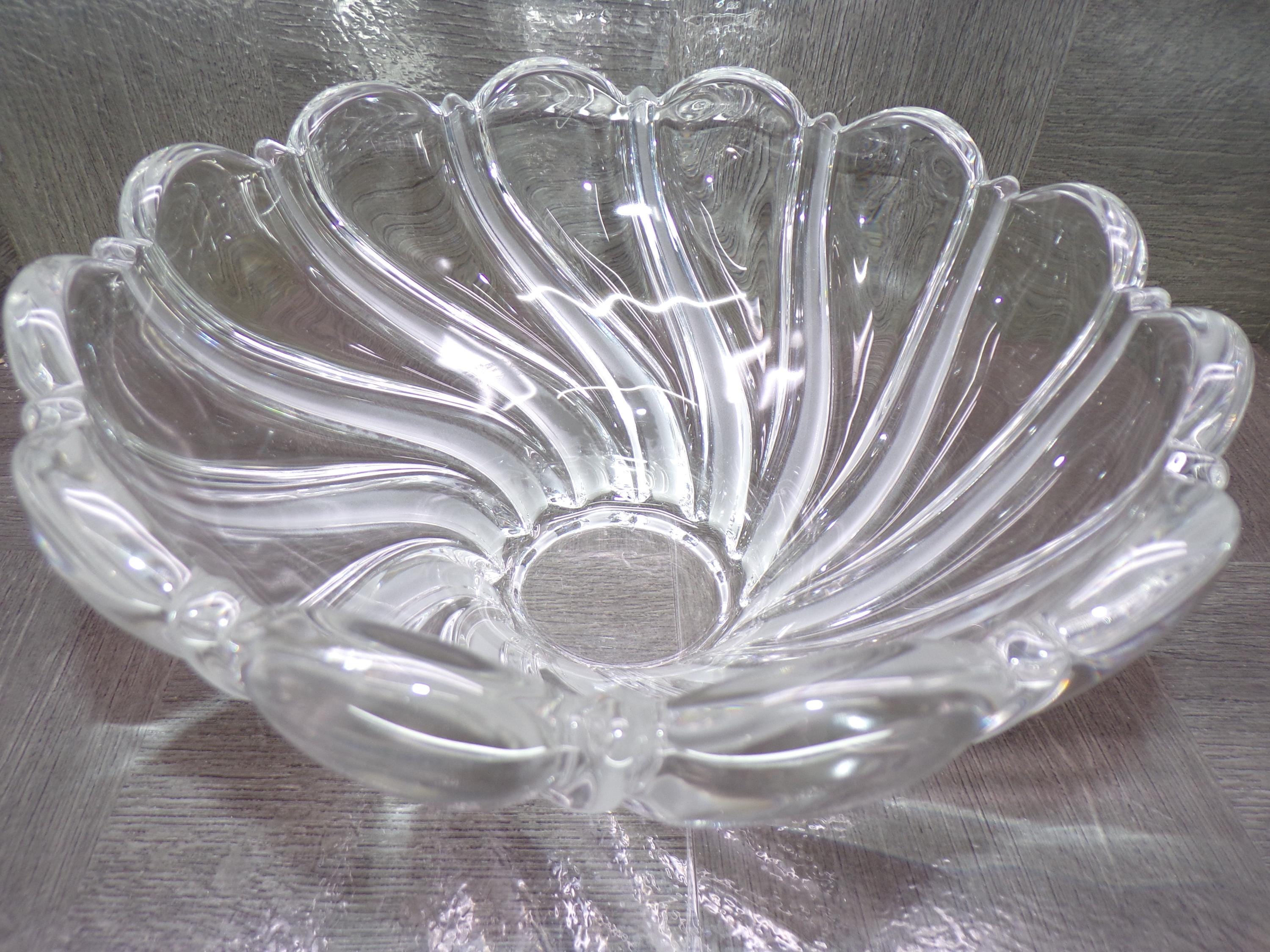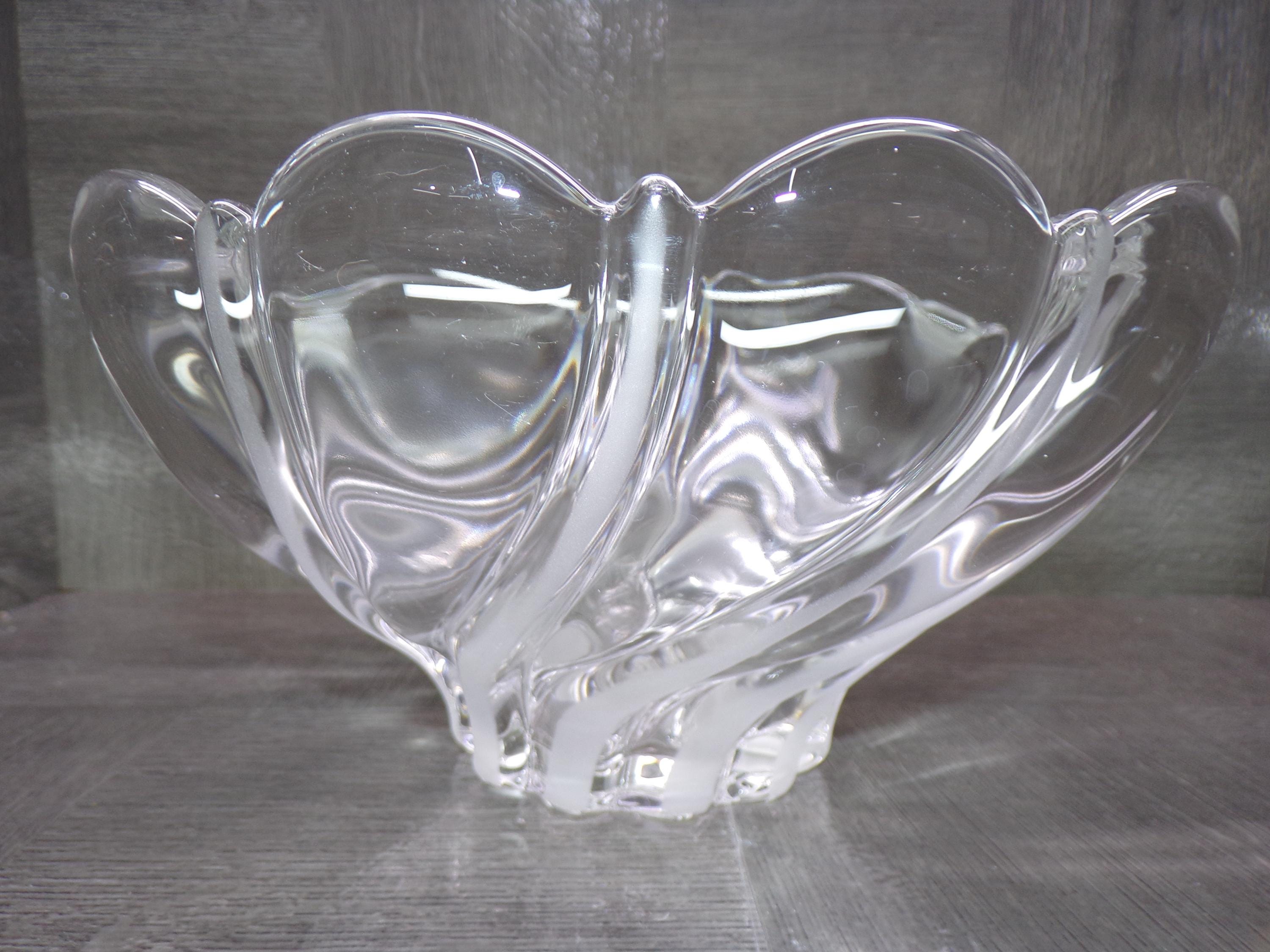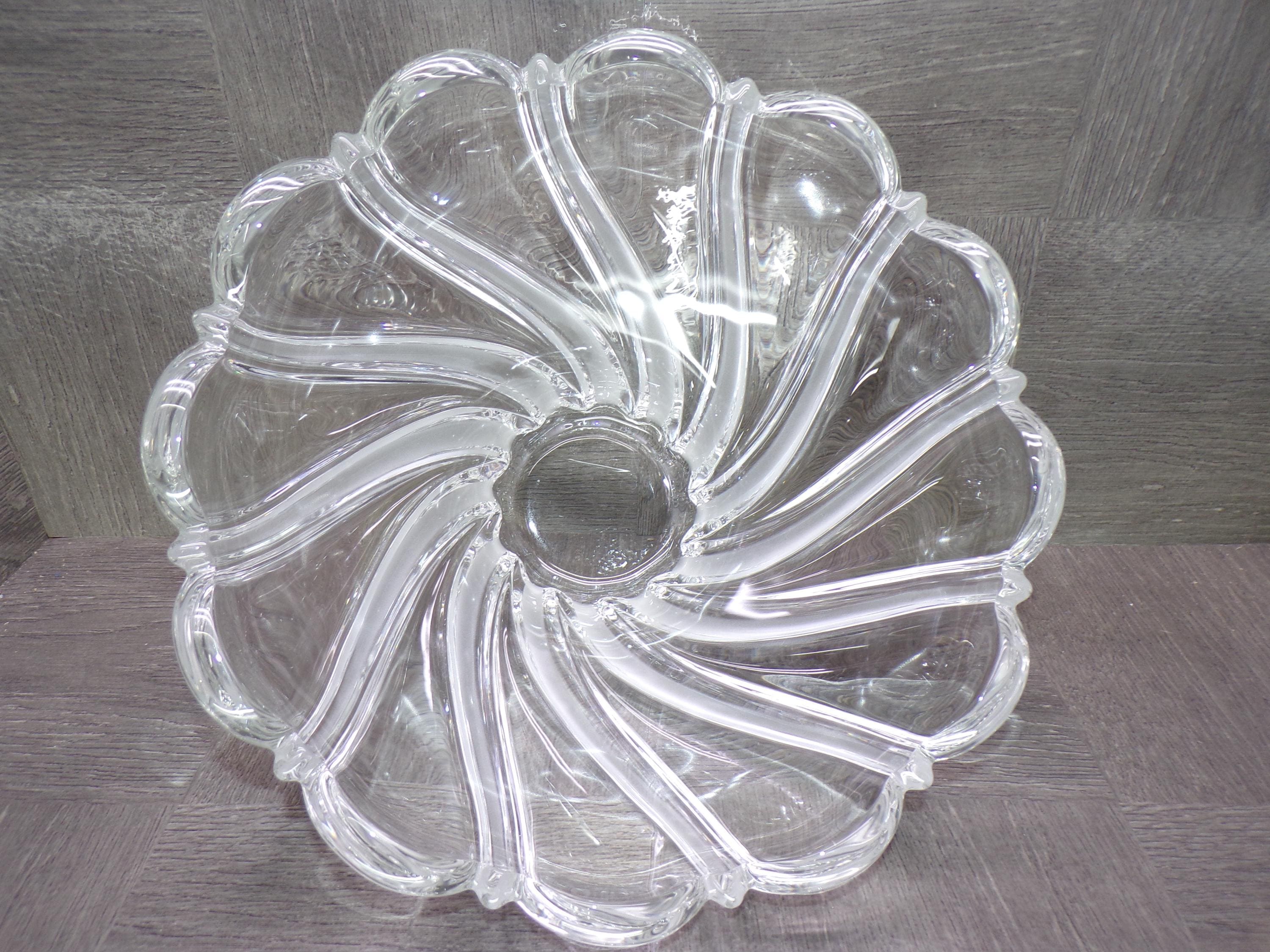 2602 Mikasa Peppermint Swirl Vintage 10" x 5" Tall Clear / Frosted Lead Crystal Bowl - Great Condition