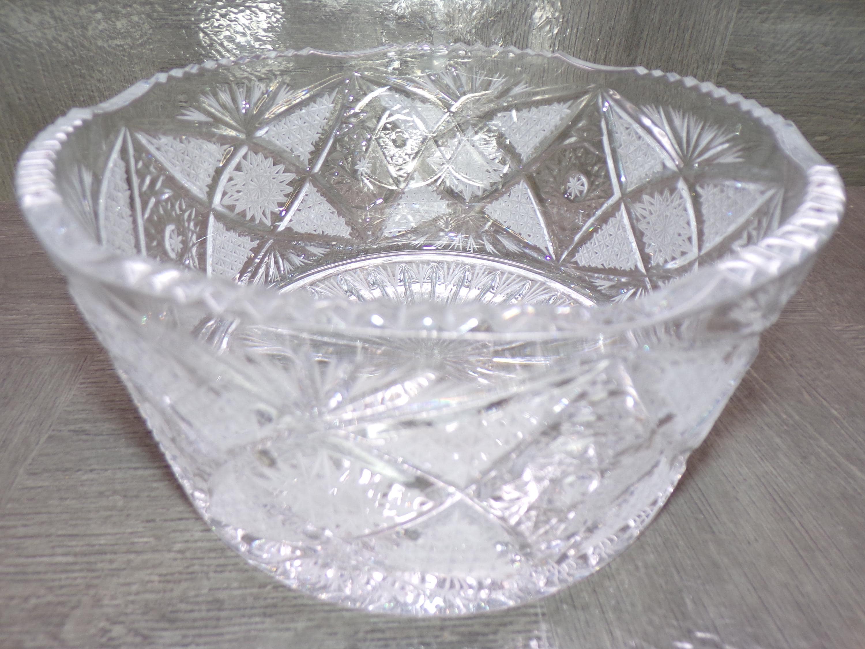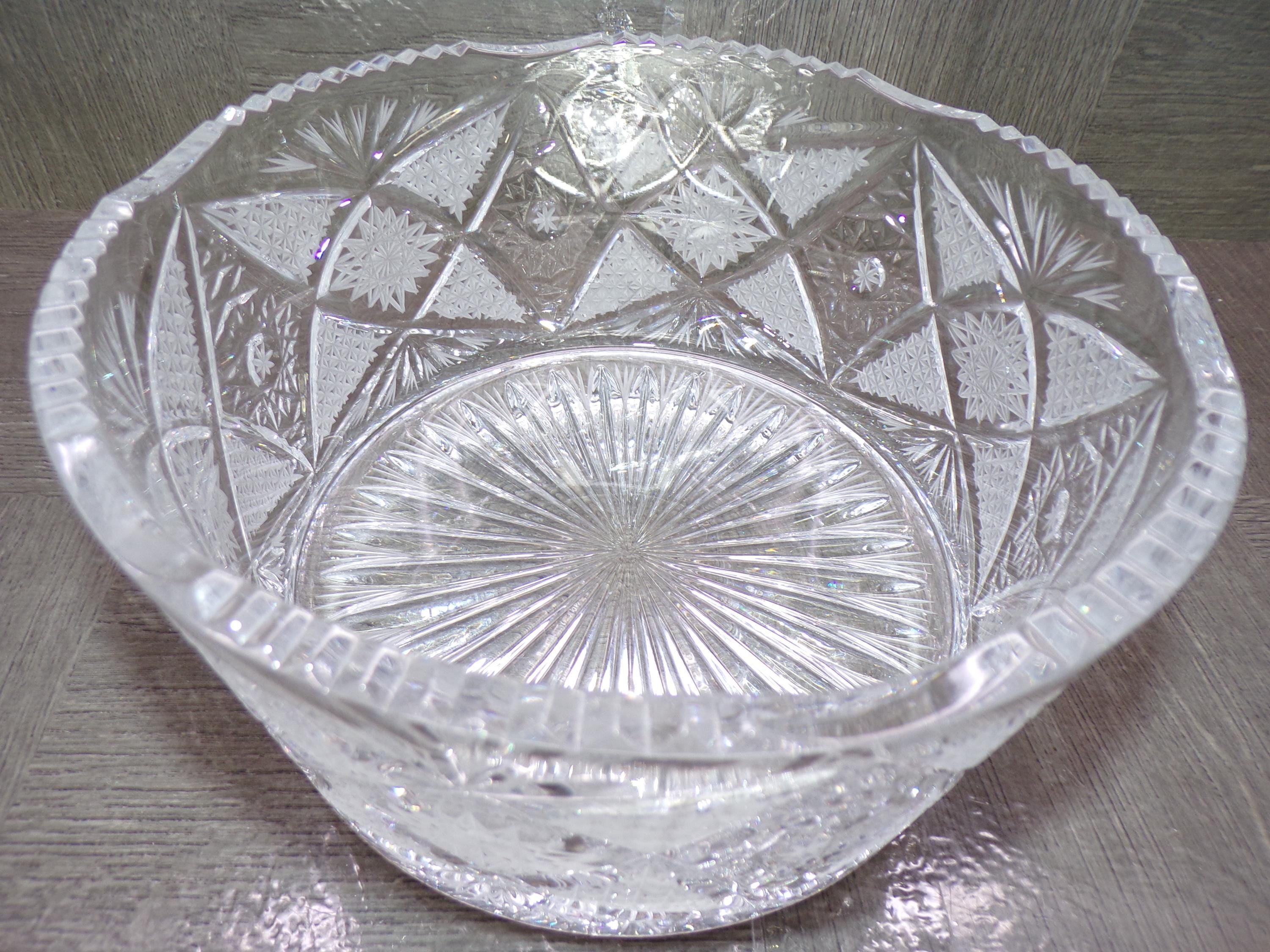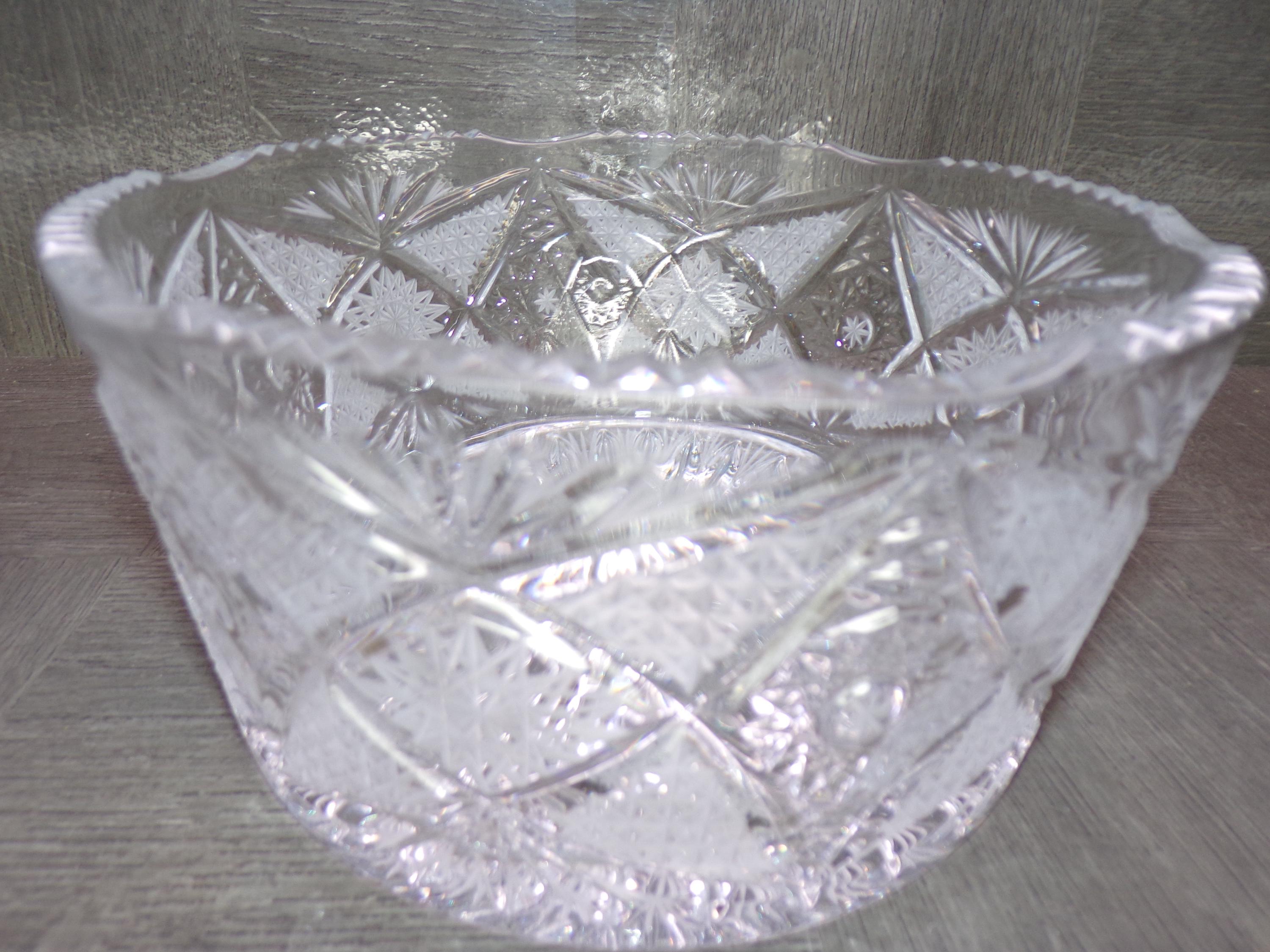 2602 American Brilliant Period Bohemian Crystal 7.5" Bowl - Hand-cut Geometric Motifs including Hobstars, Fans & Banded Miters - Great Cond.