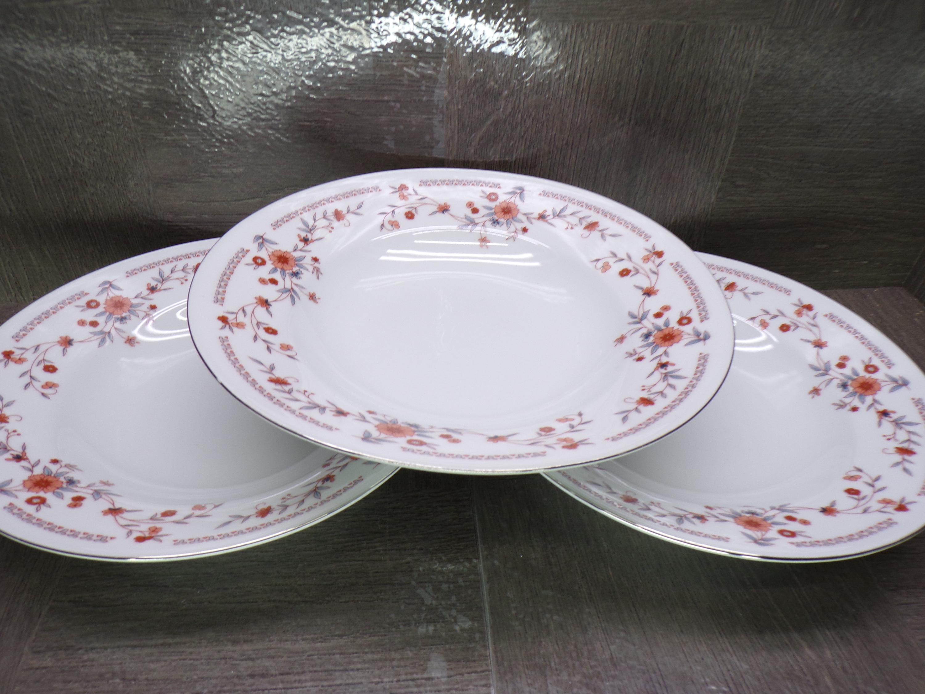 2602 Dynasty Fine China #1007 Copenhagen 8" Bowls Set of 3 Beautiful Pink & Blue Floral - Great Cond. Light Scratches