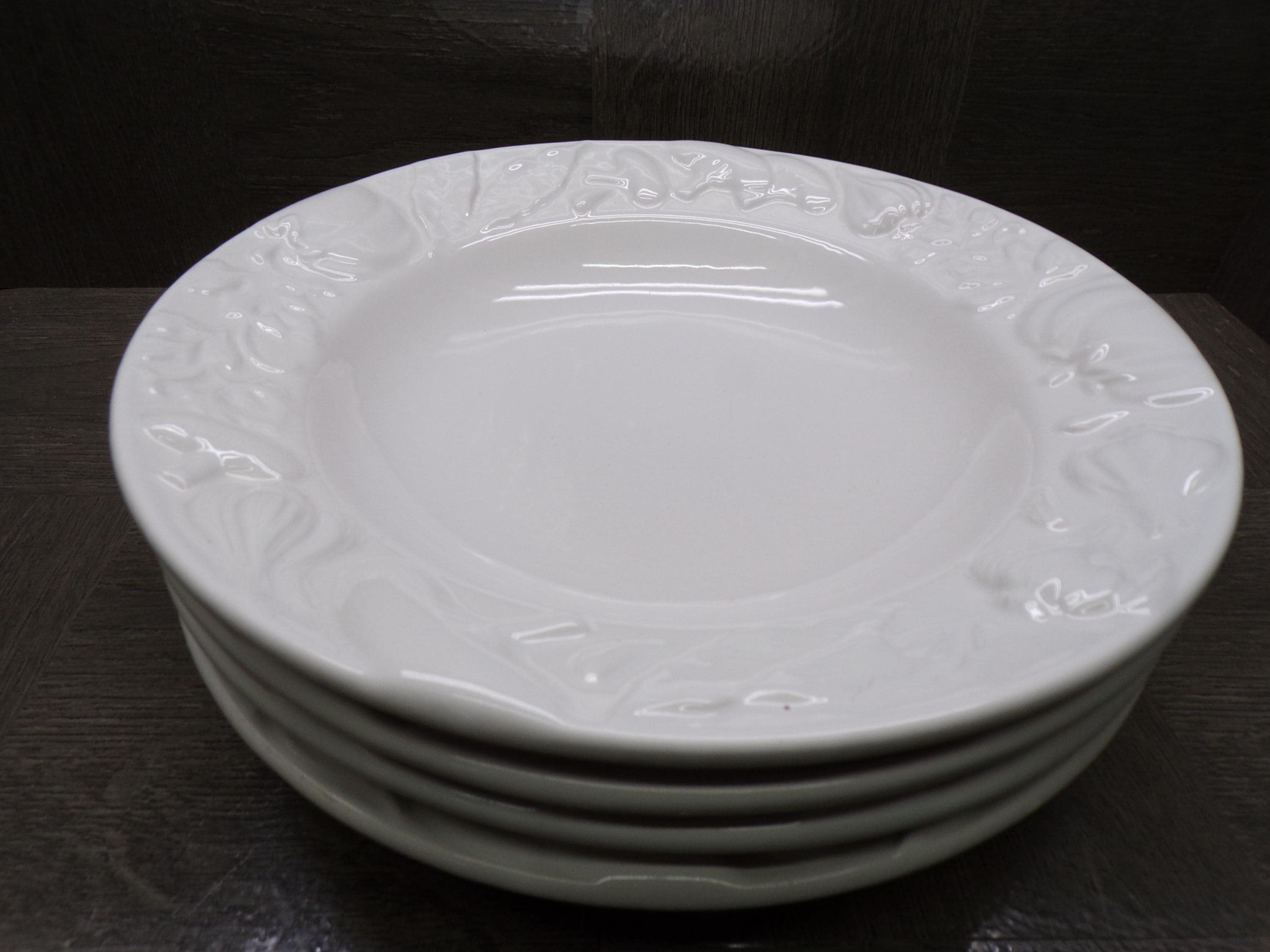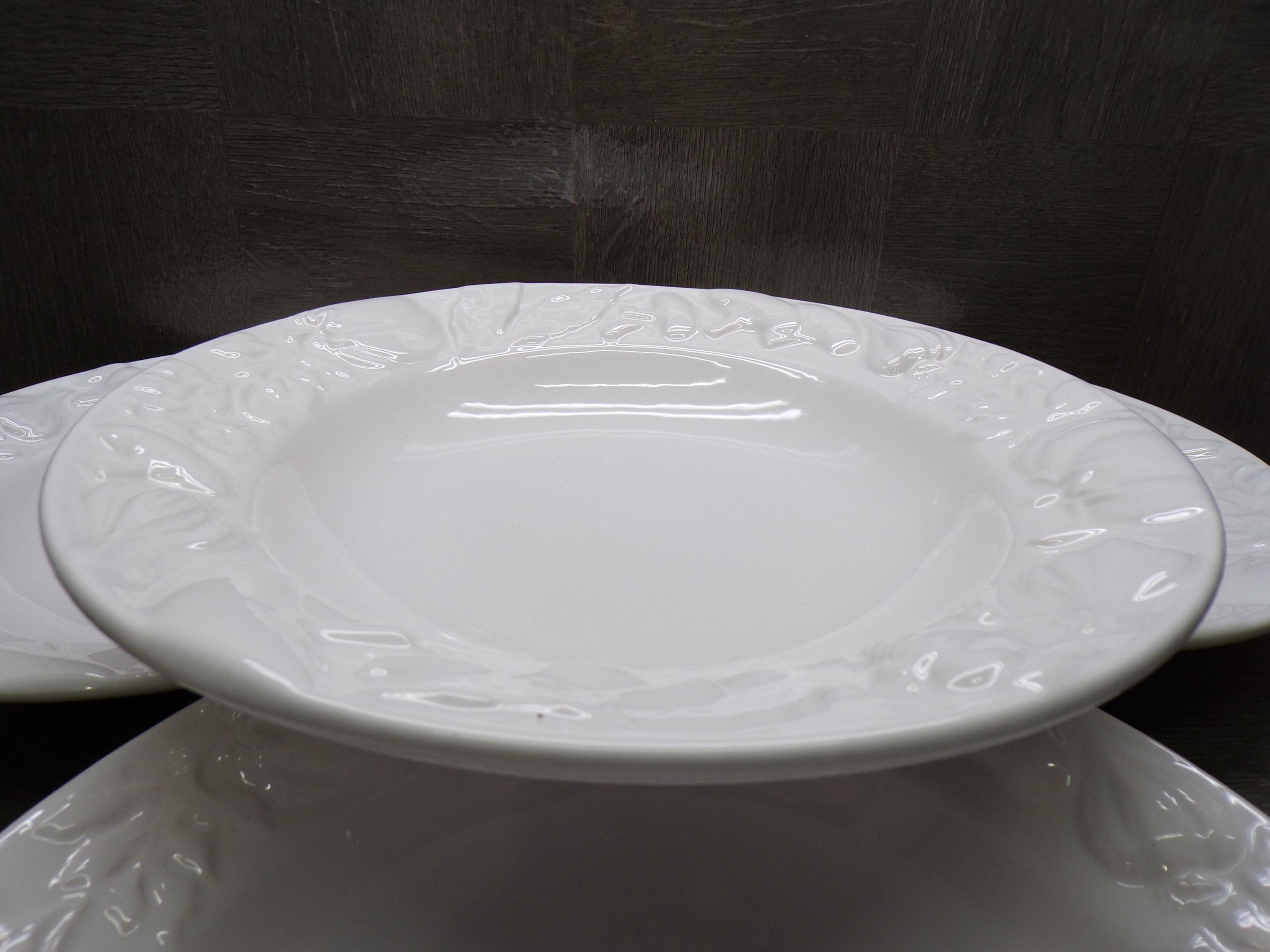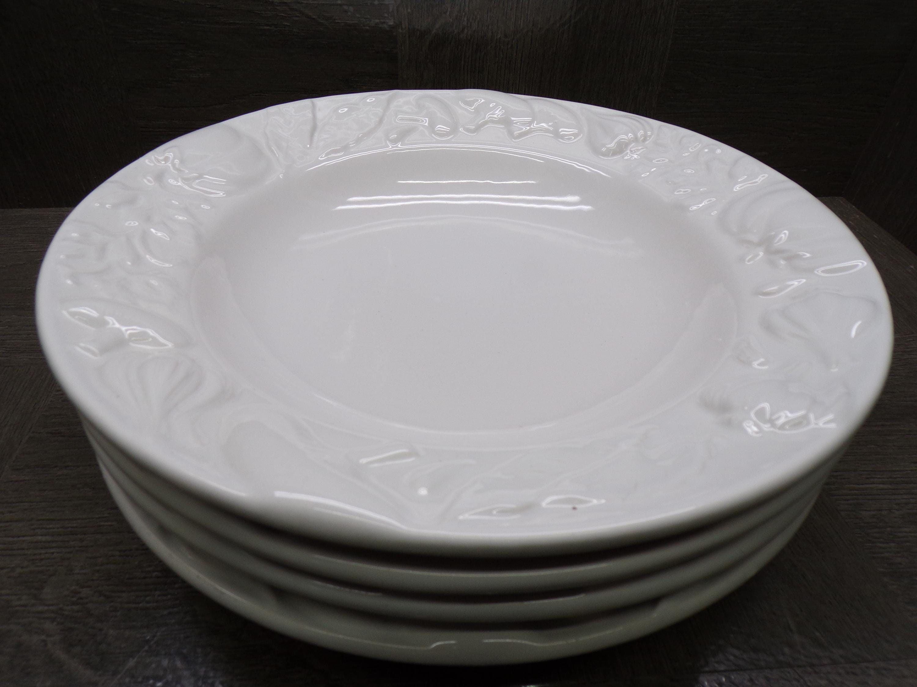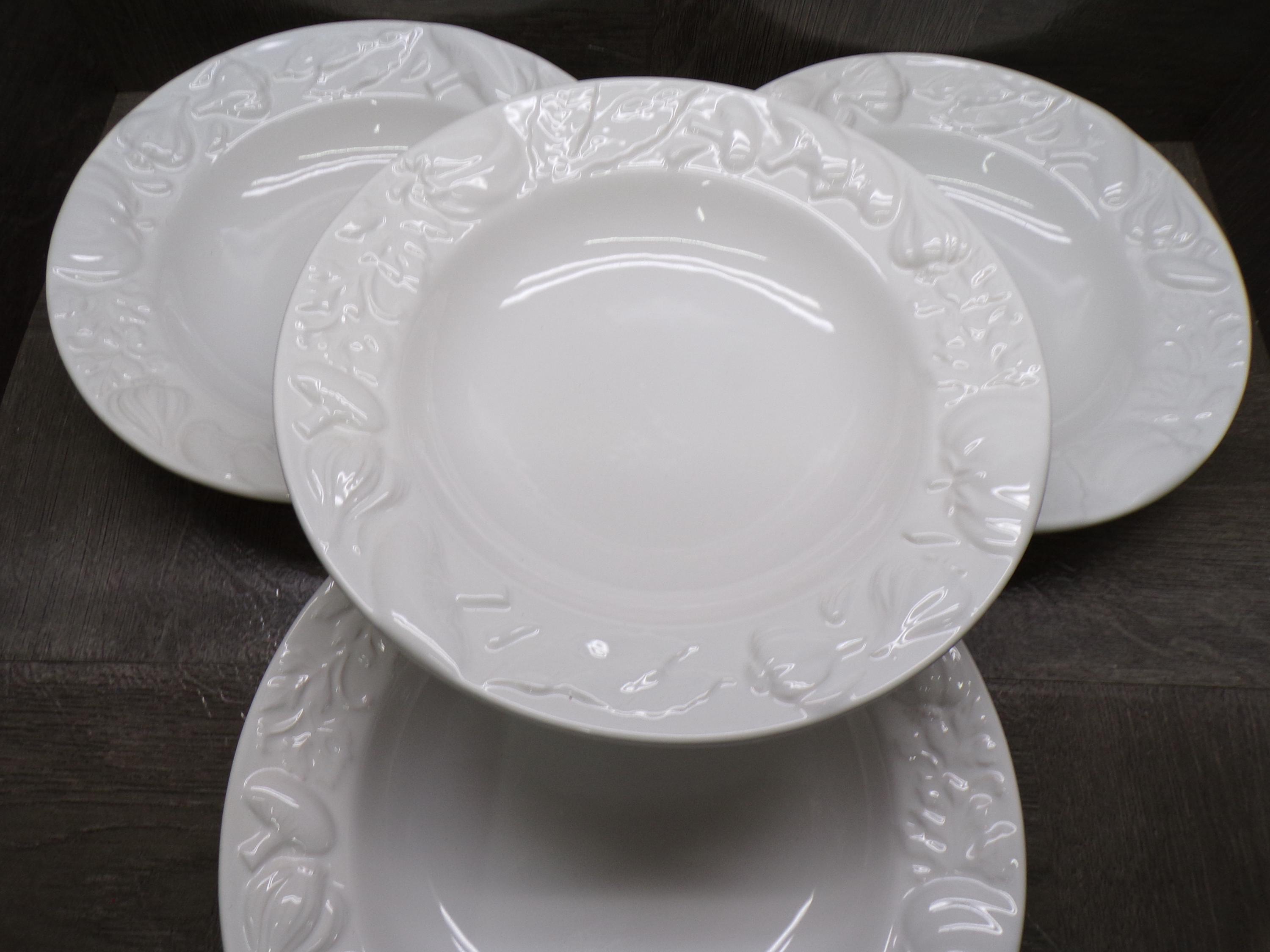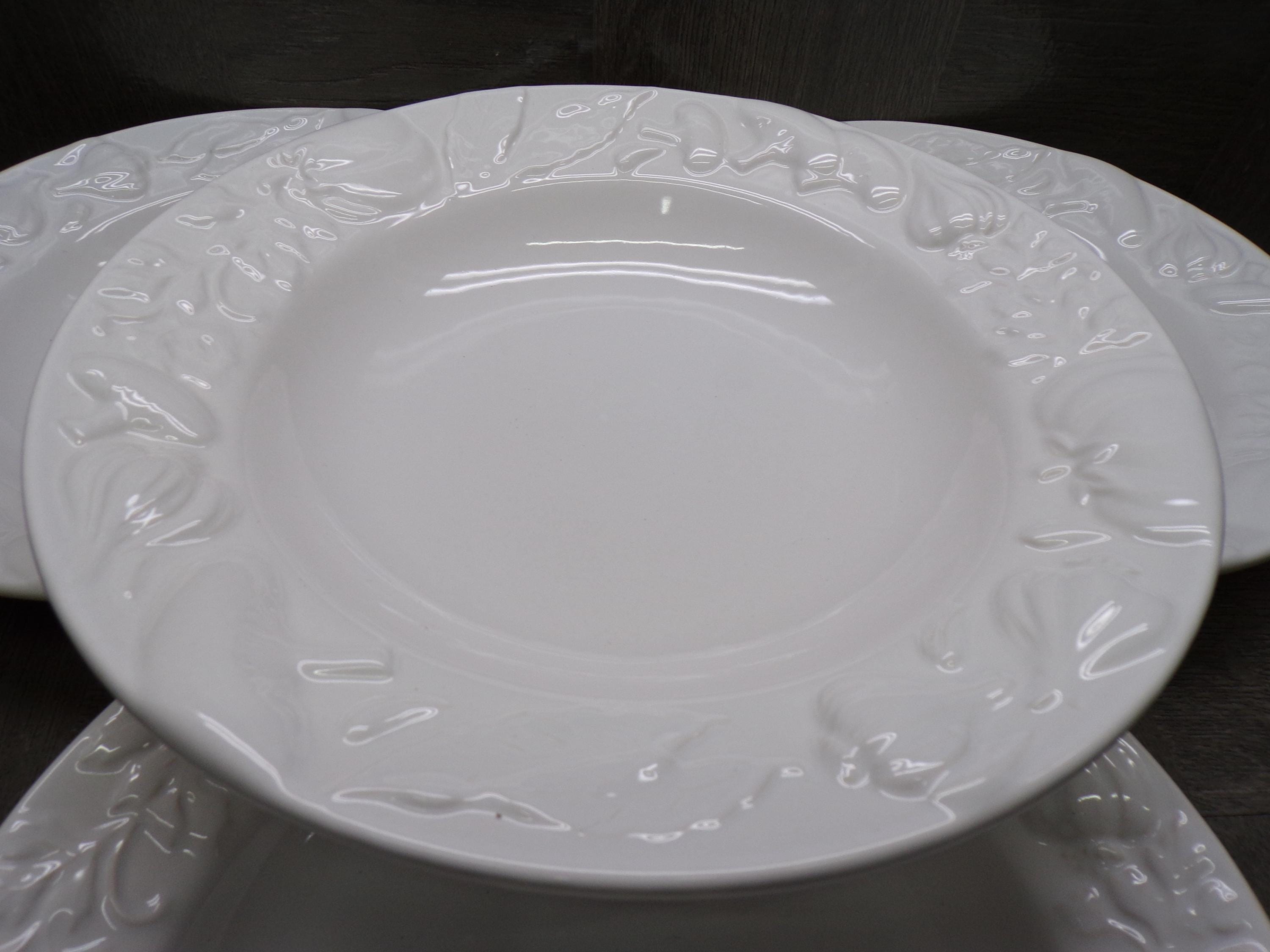 2602 Fapor FOP6 10" Vintage Pasta Bowls Set of 4 White Stoneware with Embossed Vegetables Made in Portugal - Great Condition