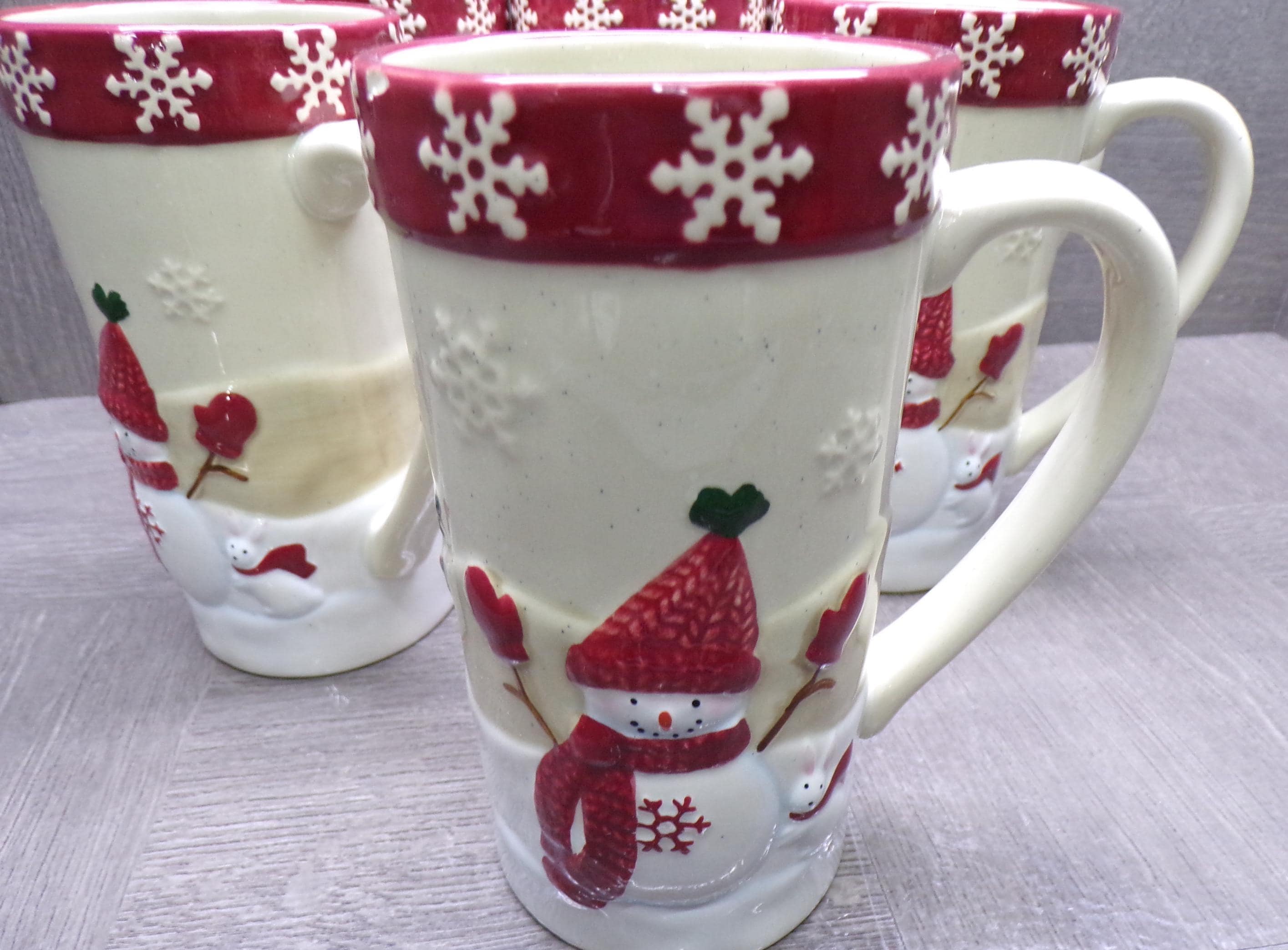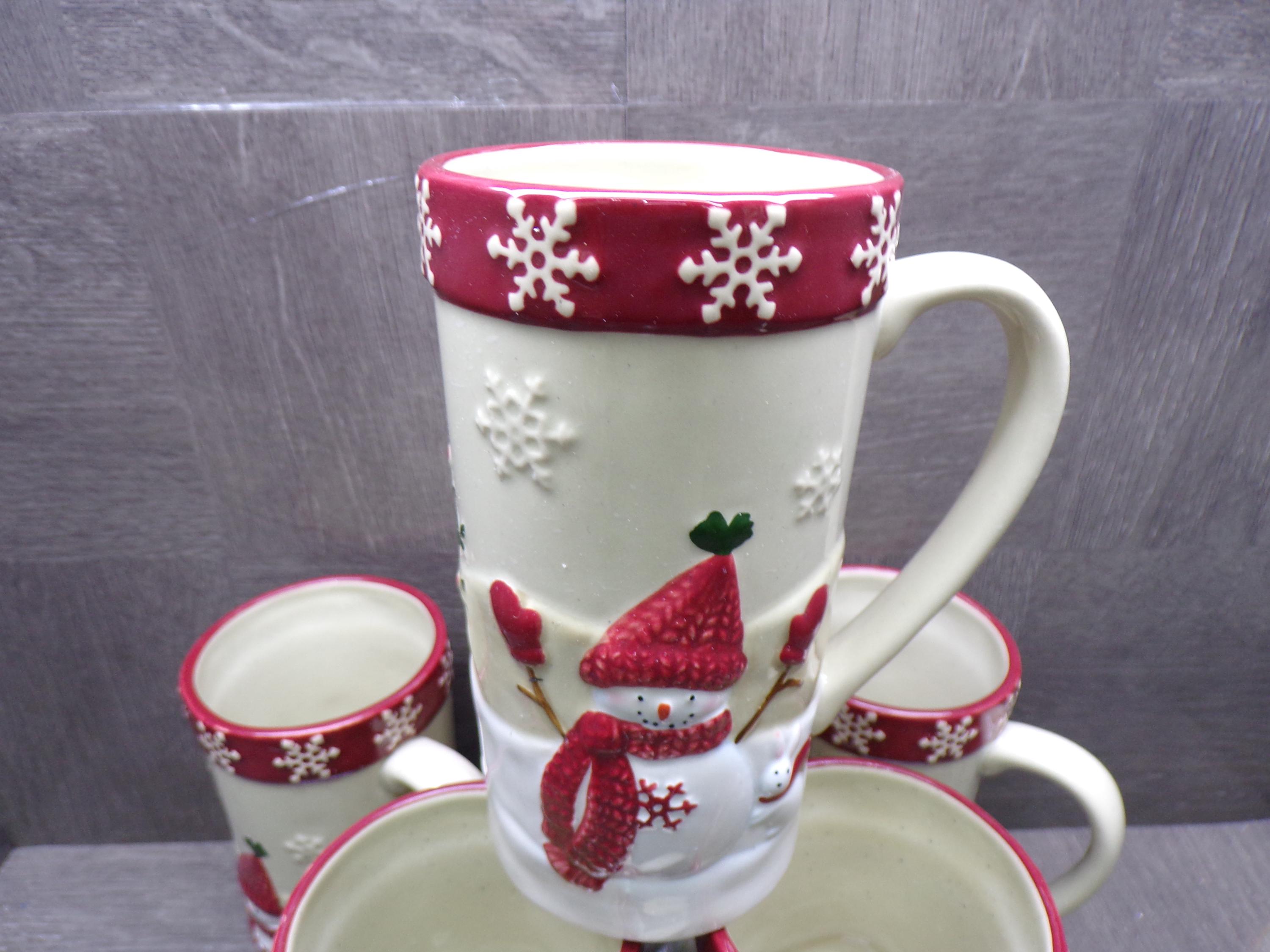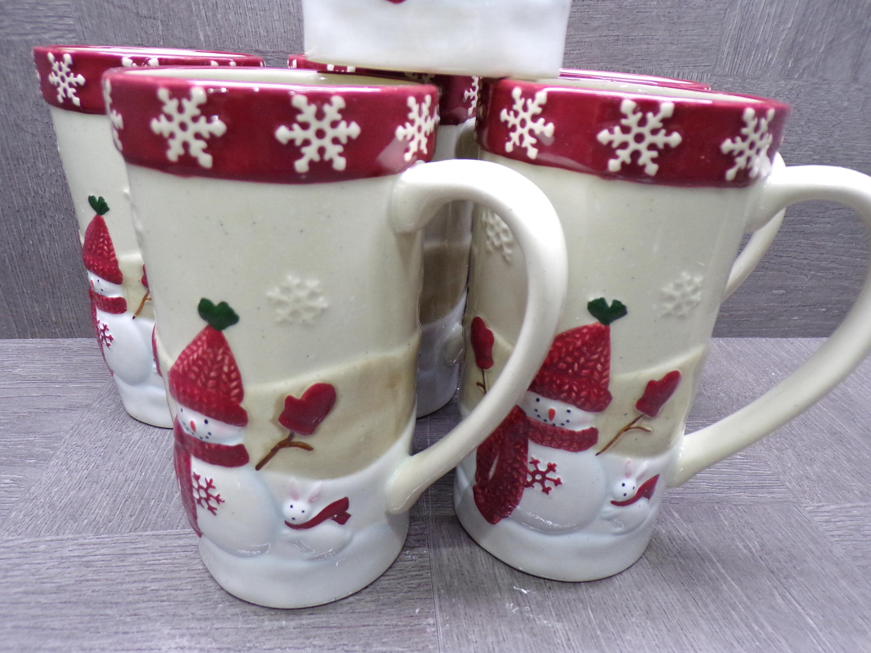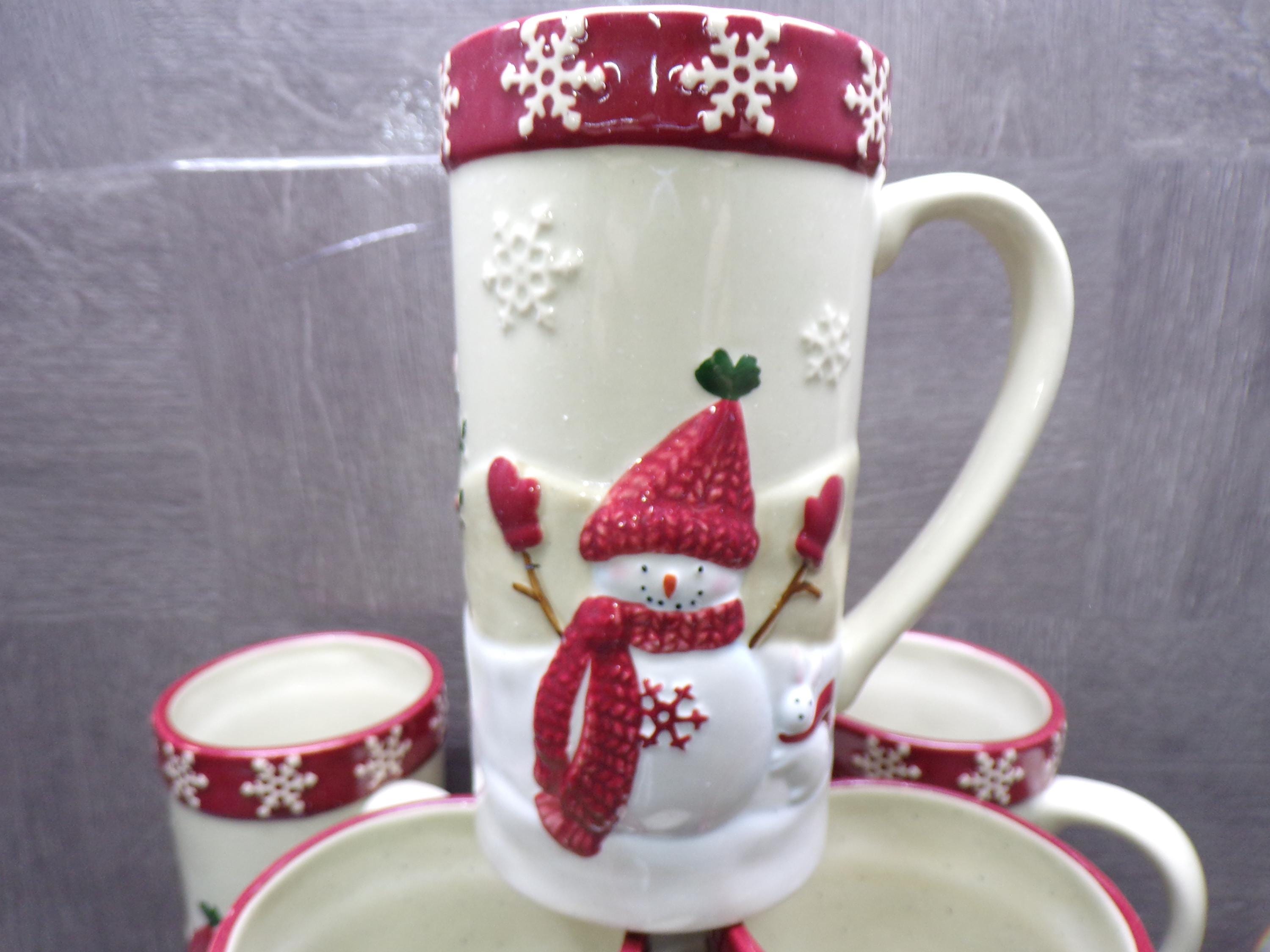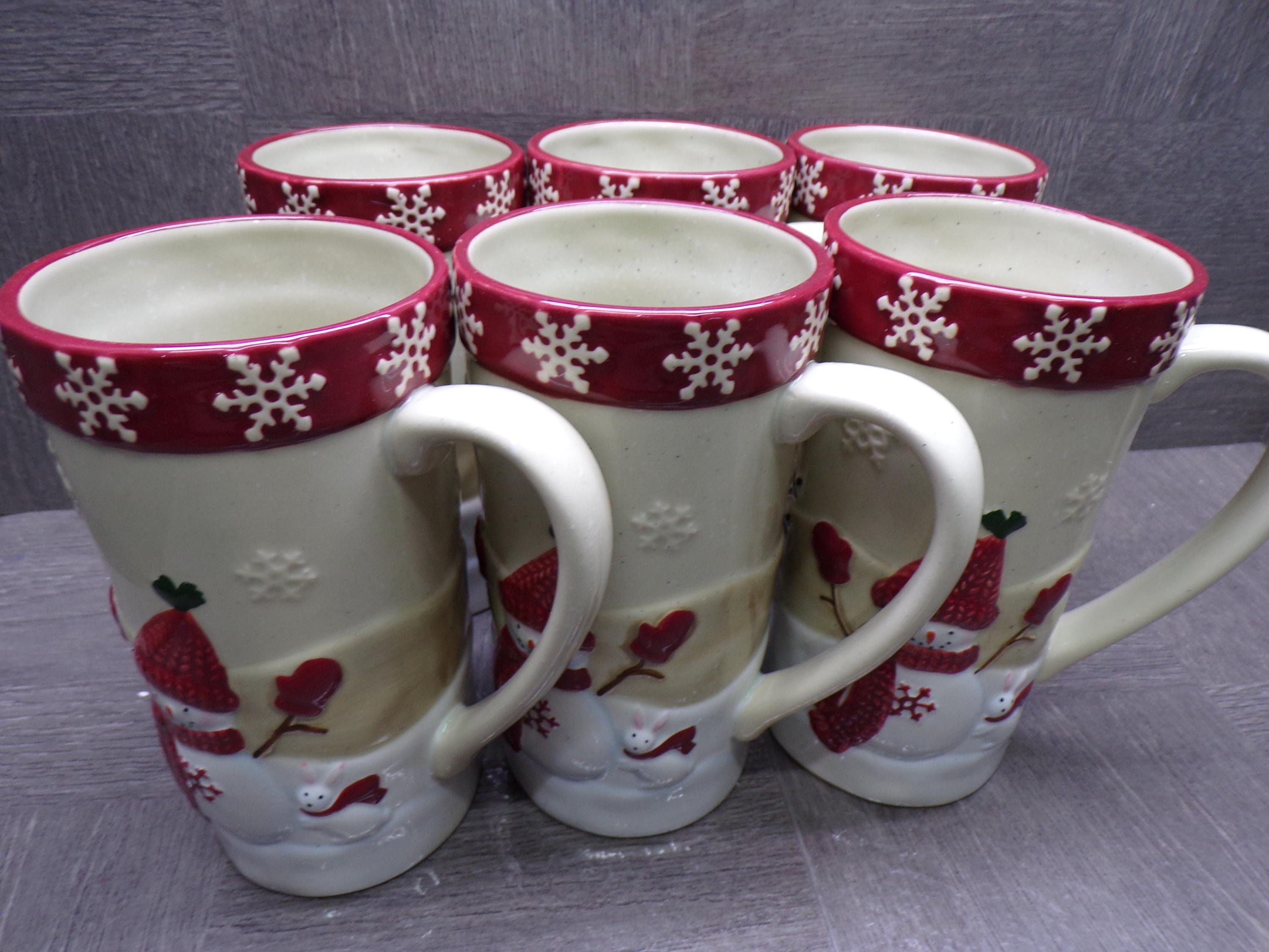 2602 St. Nicholas Square Winter Wishes 6" Snowman Christmas Latte Mugs Set of 6 - Excellent Condition