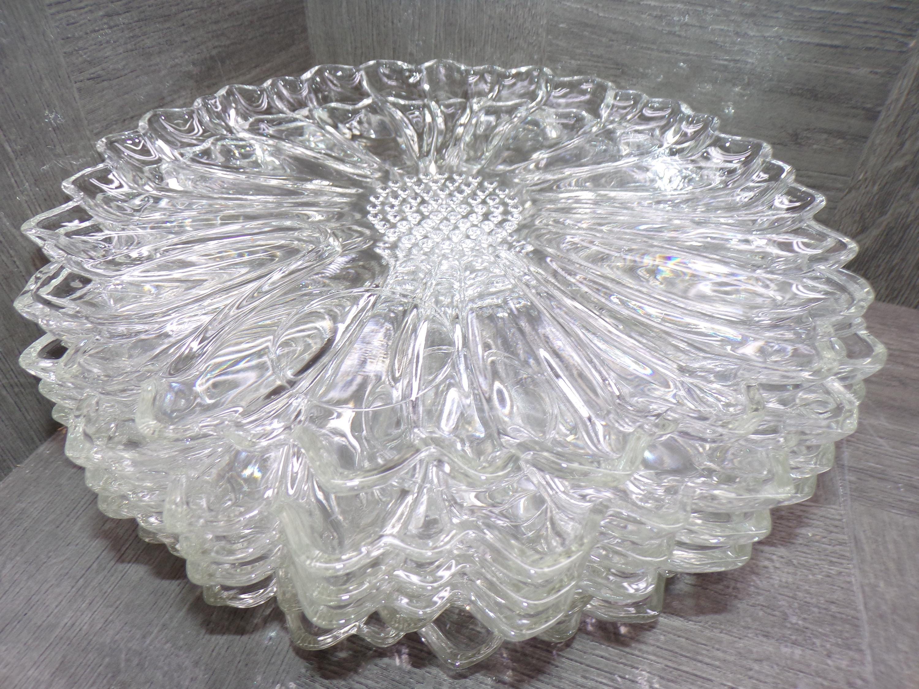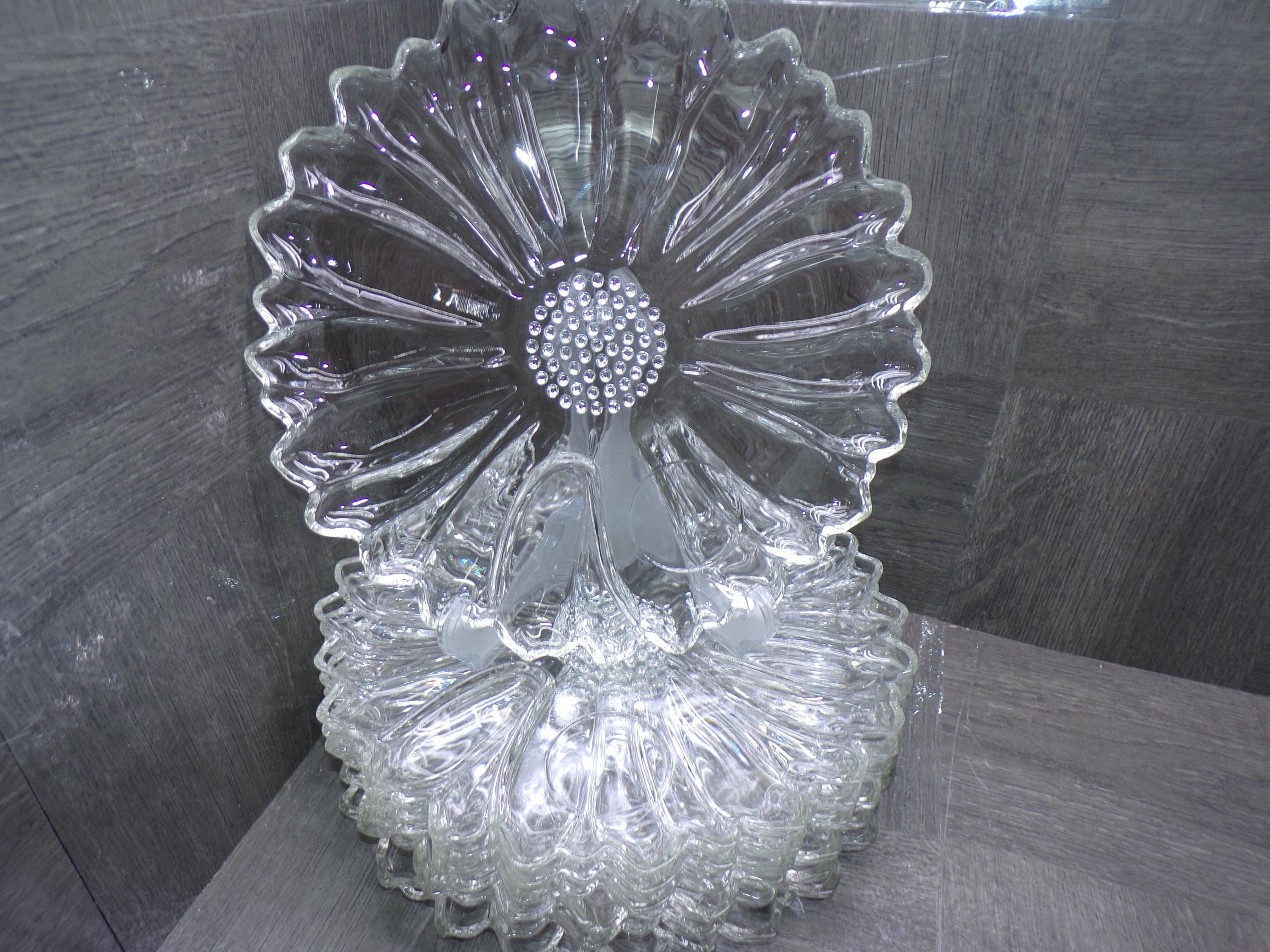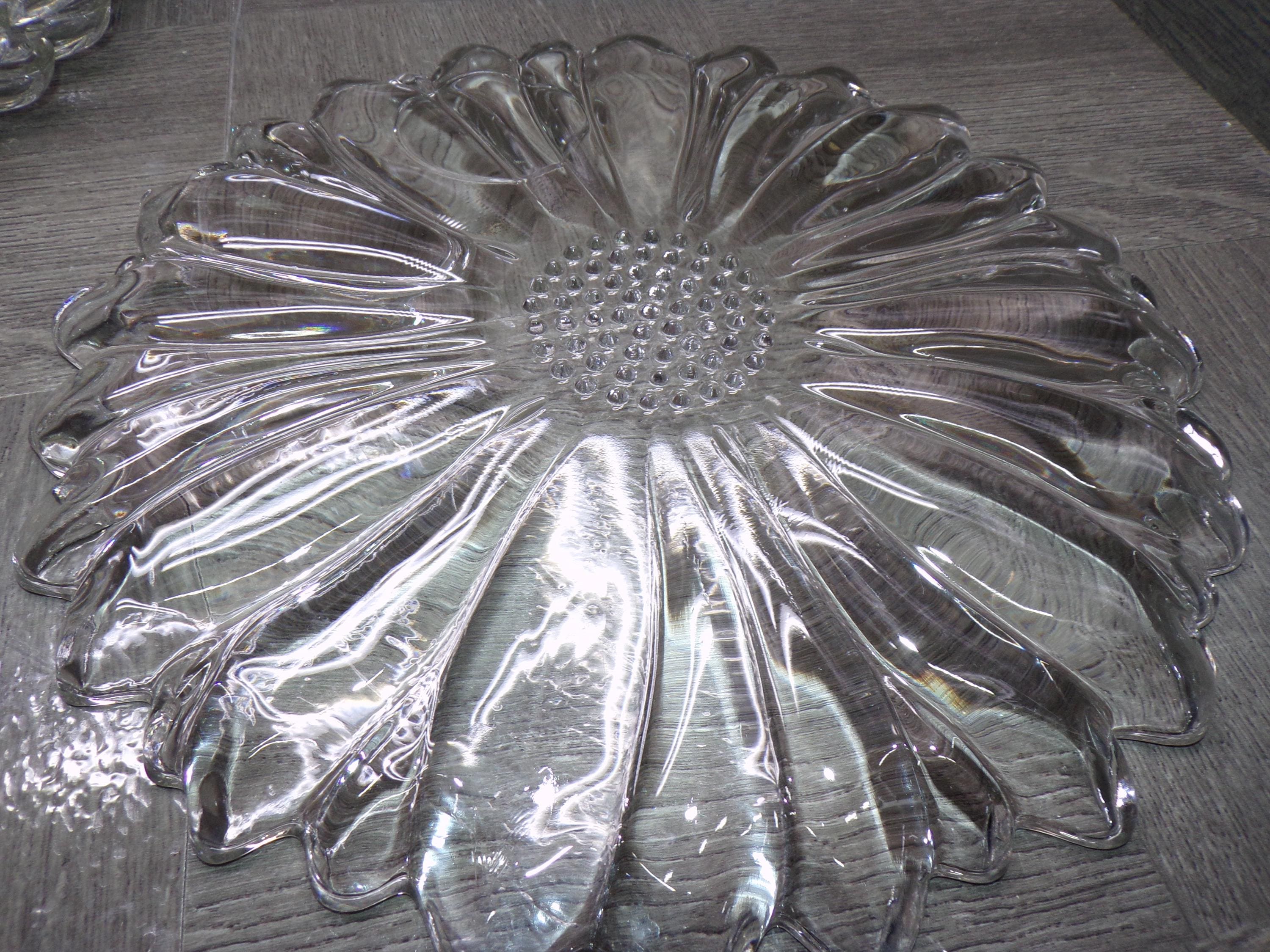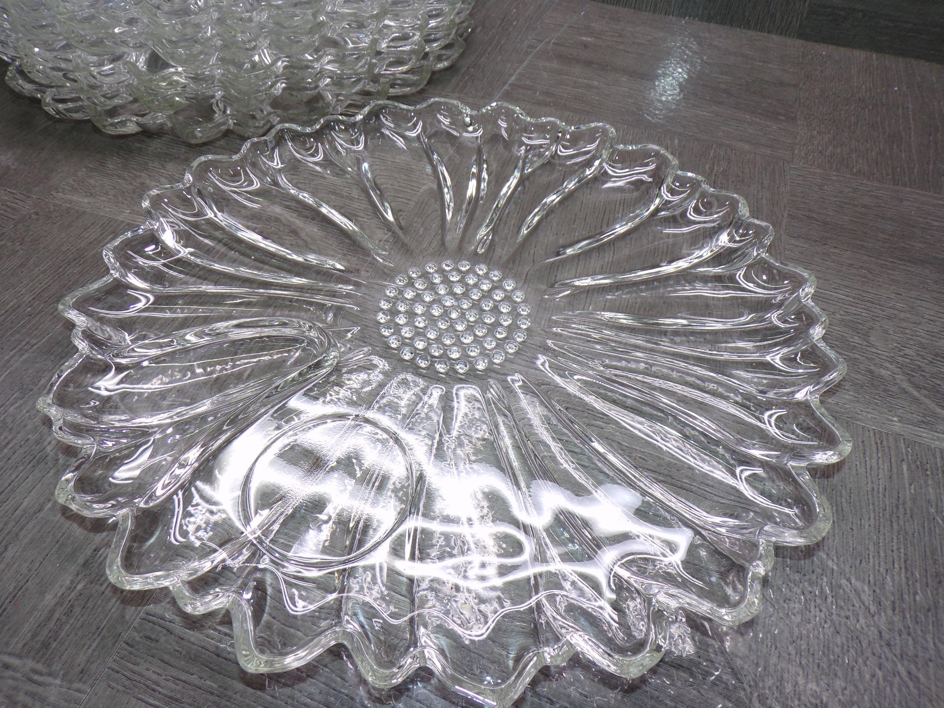 2602 Hazel Atlas 10" Vintage Clear Glass Sunflower Luncheon Snack Dinner Plates Set of 7 - Great Condition