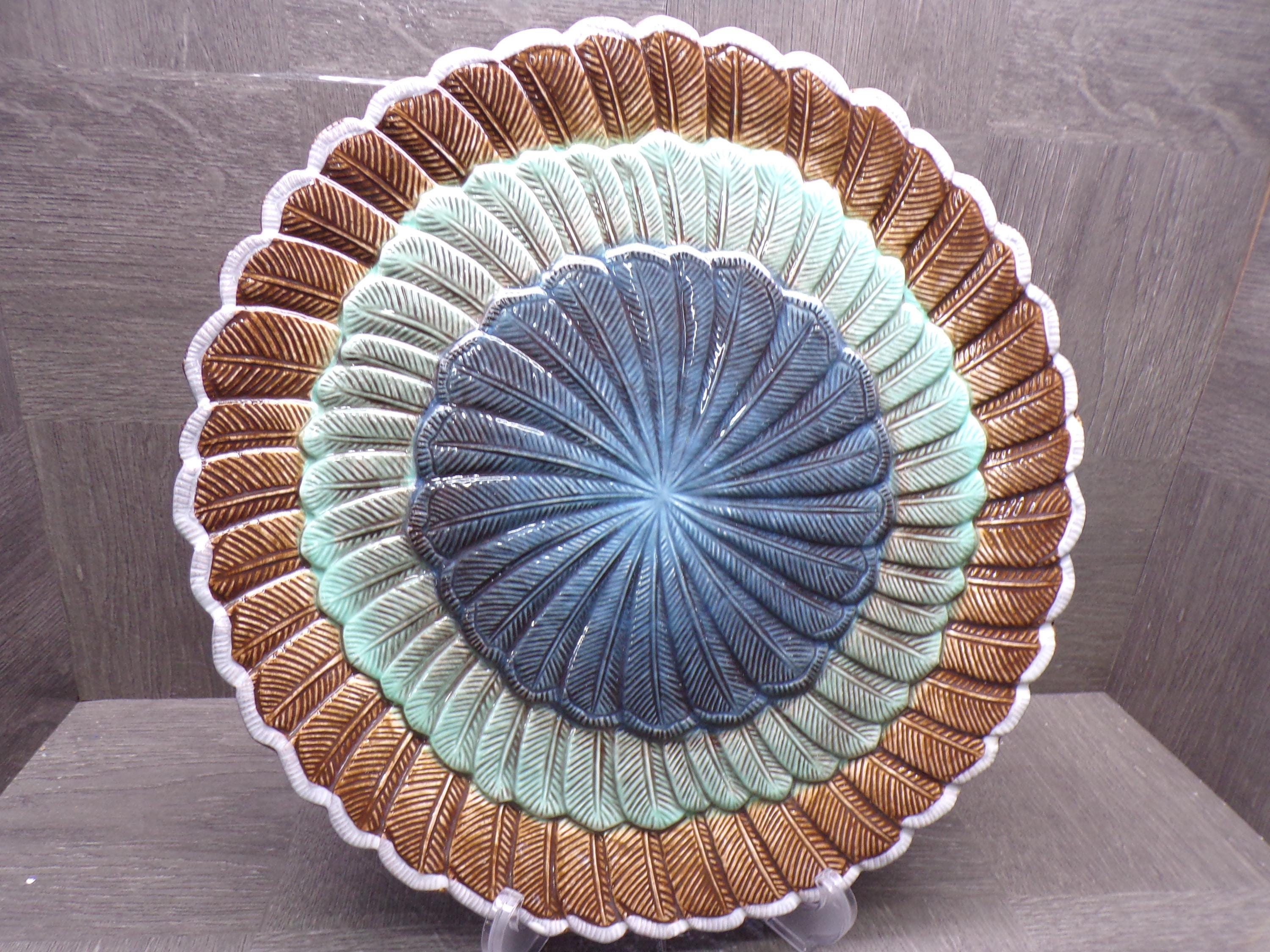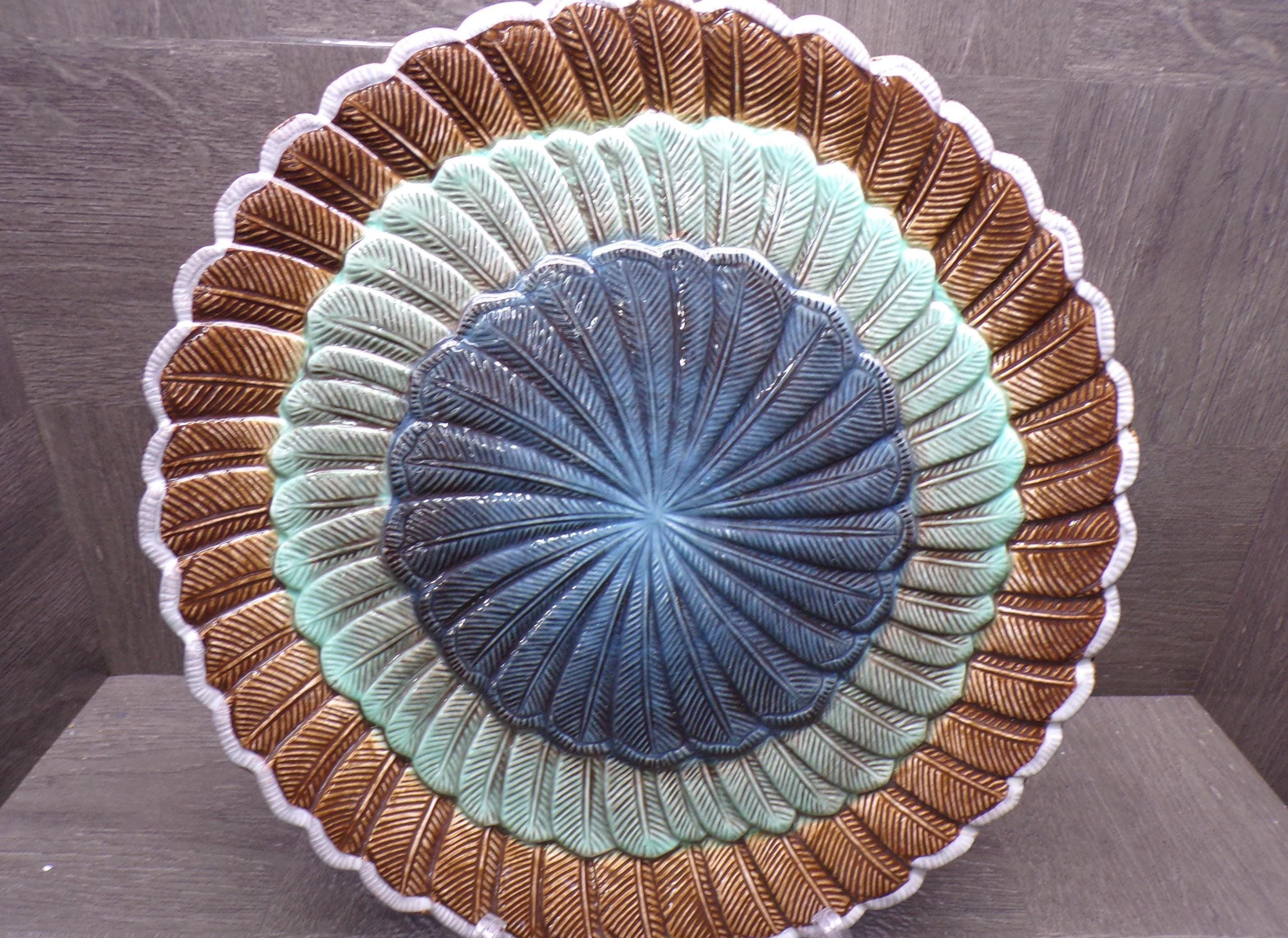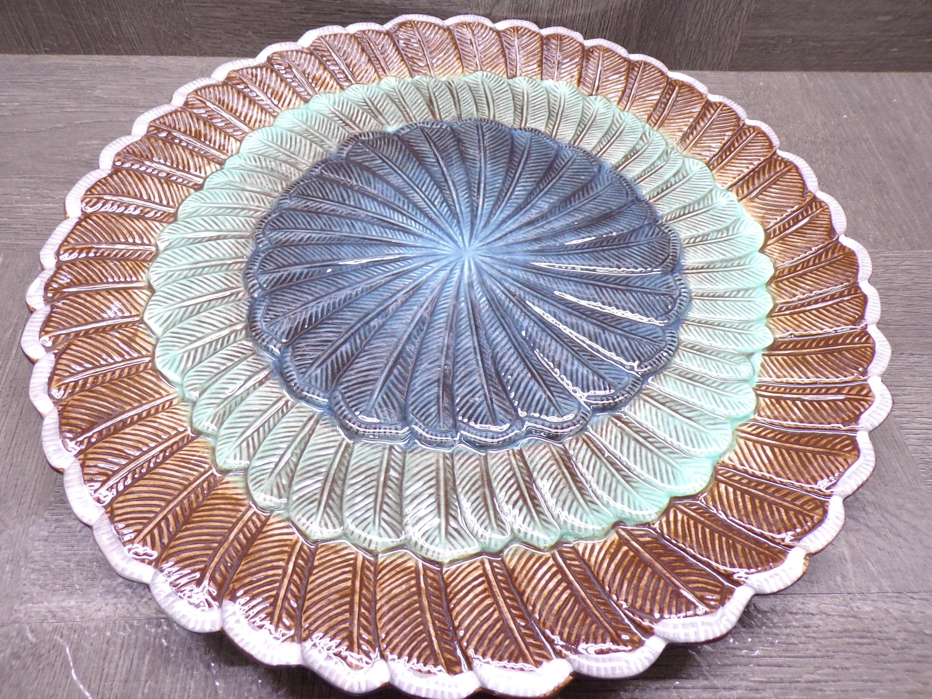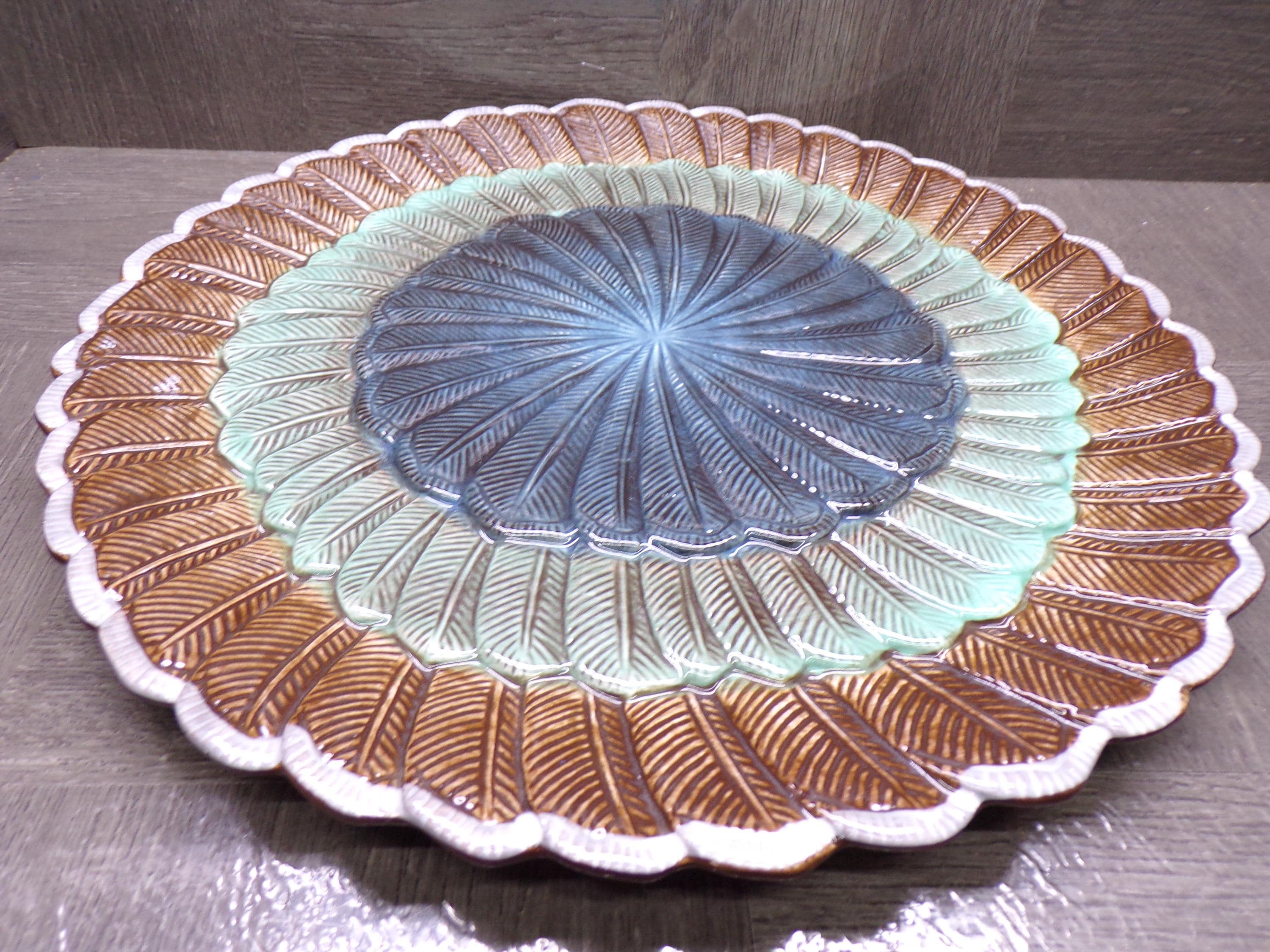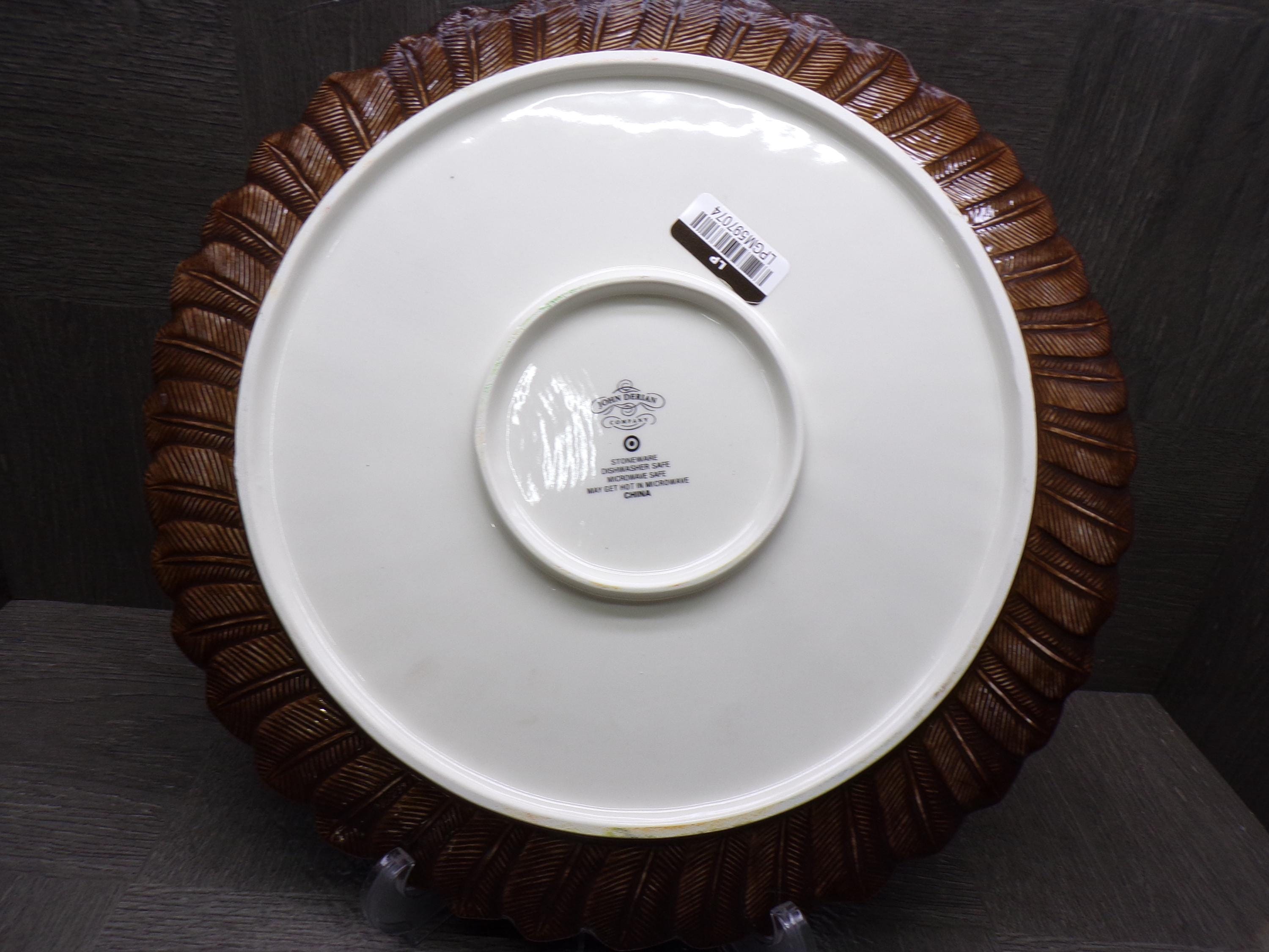 2602 John Derian Company Beautiful Feather Pattern 13" Stoneware Serving Tray Platter - Excellent Condition