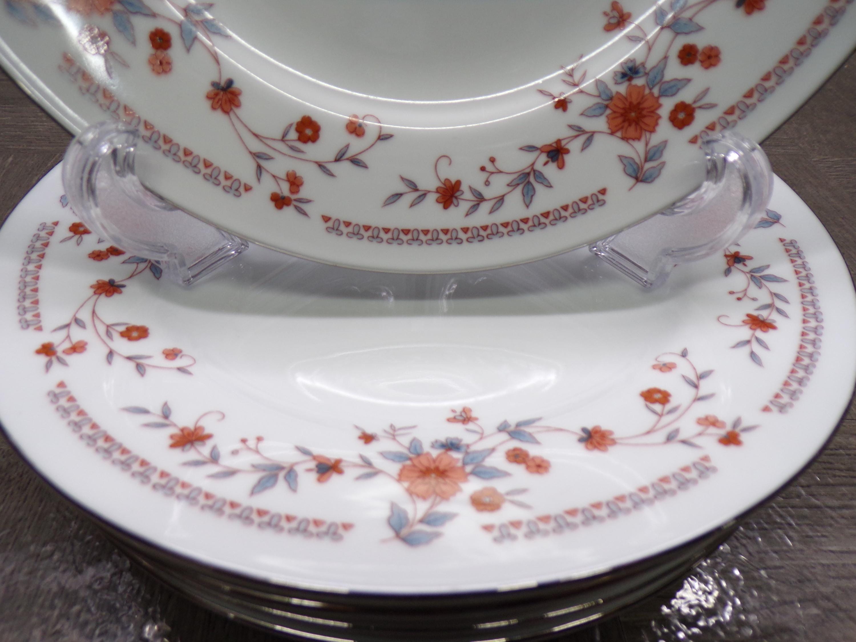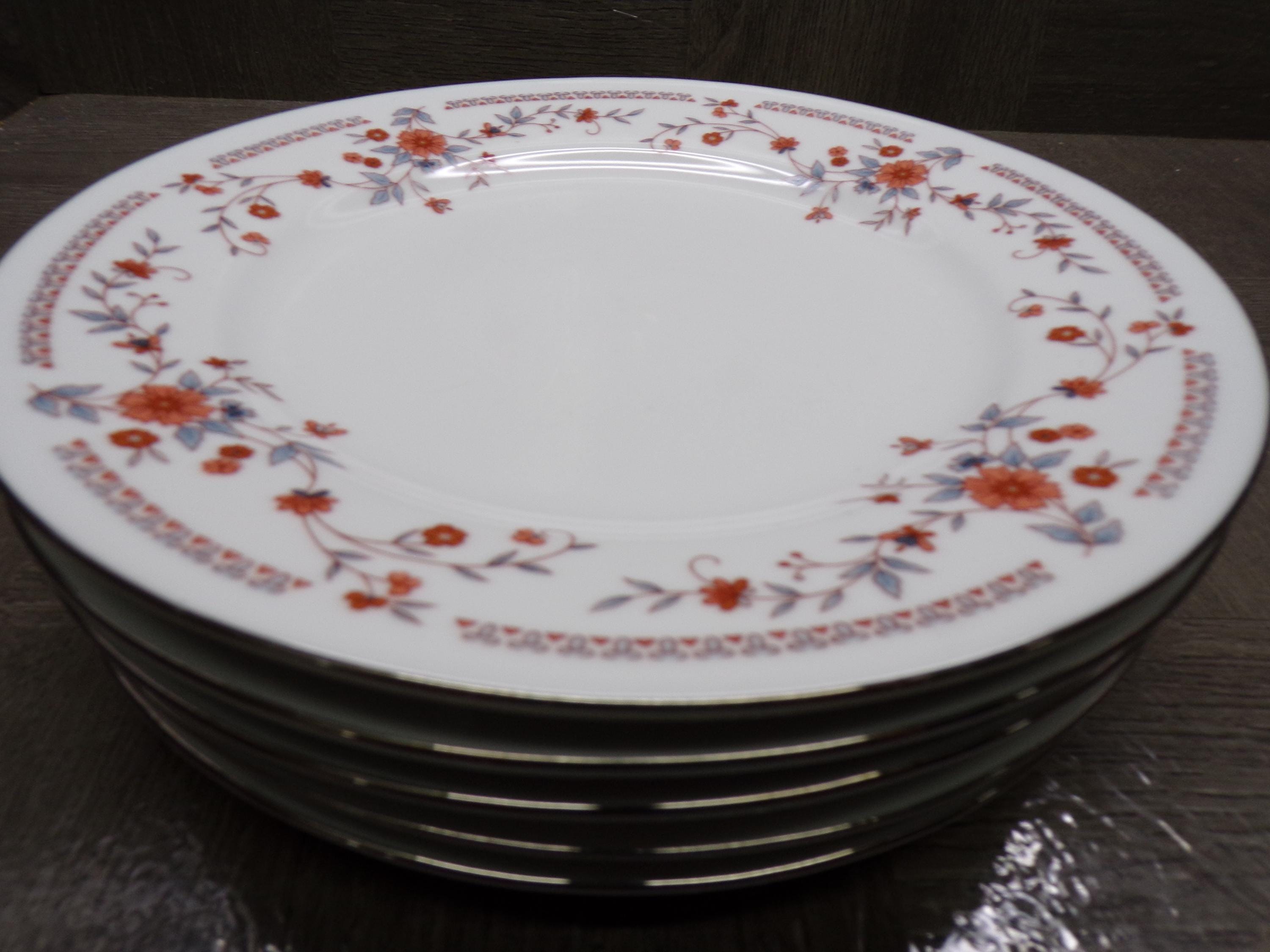 2602 Dynasty Fine China #1007 Copenhagen 8" Salad / Snack Plates Set of 5 Beautiful Pink & Blue Floral - Great Cond. Light Scratches