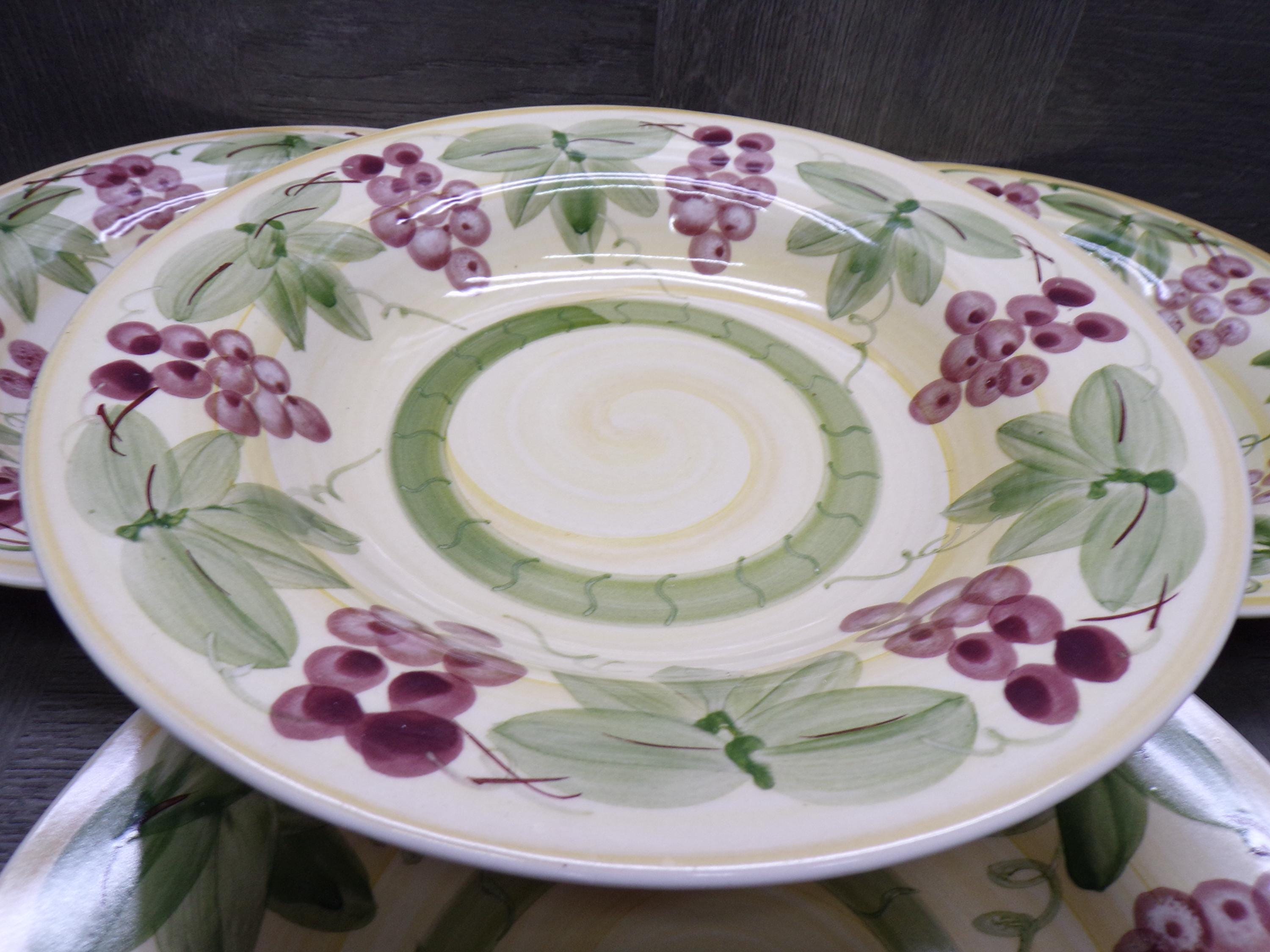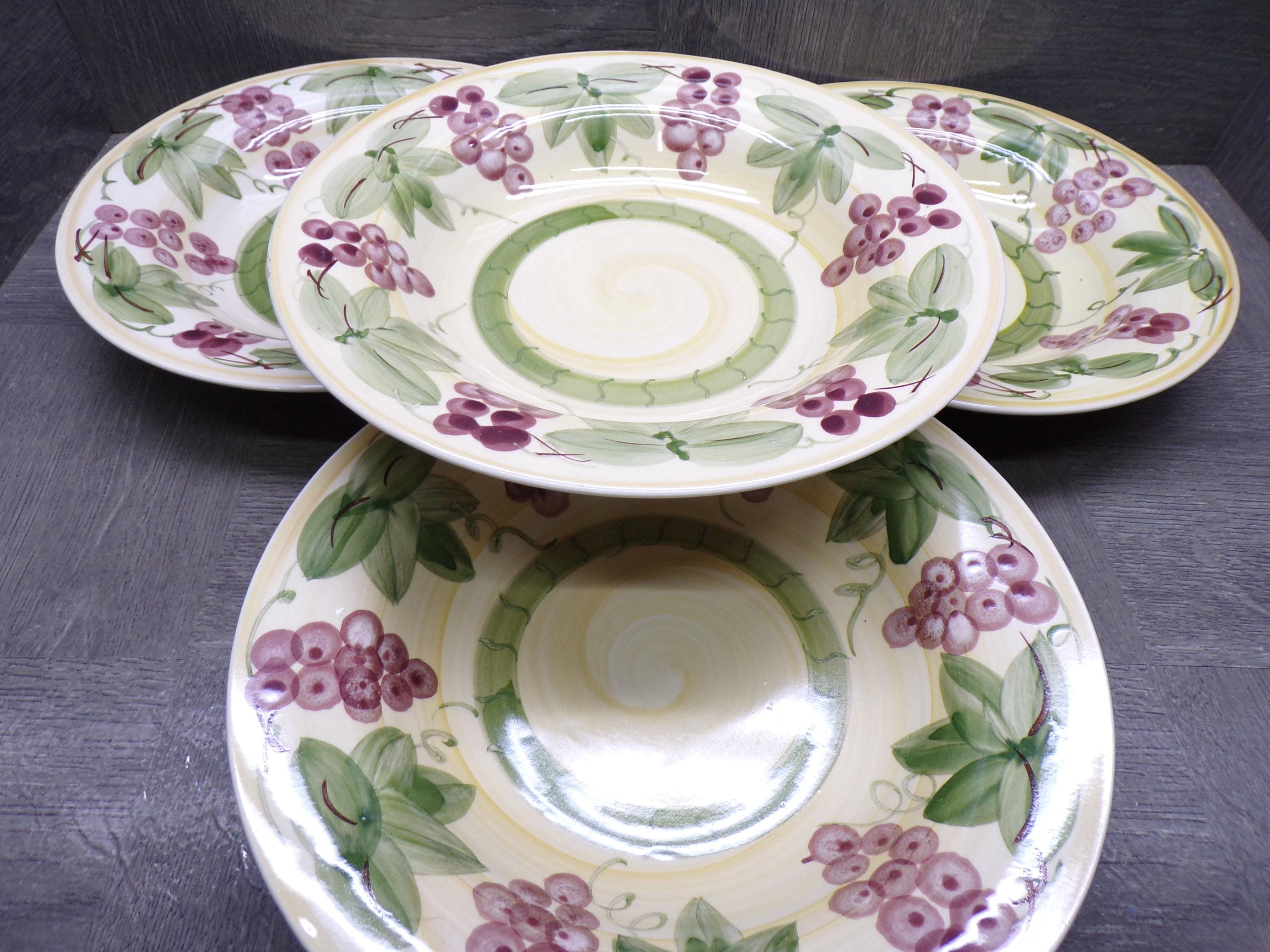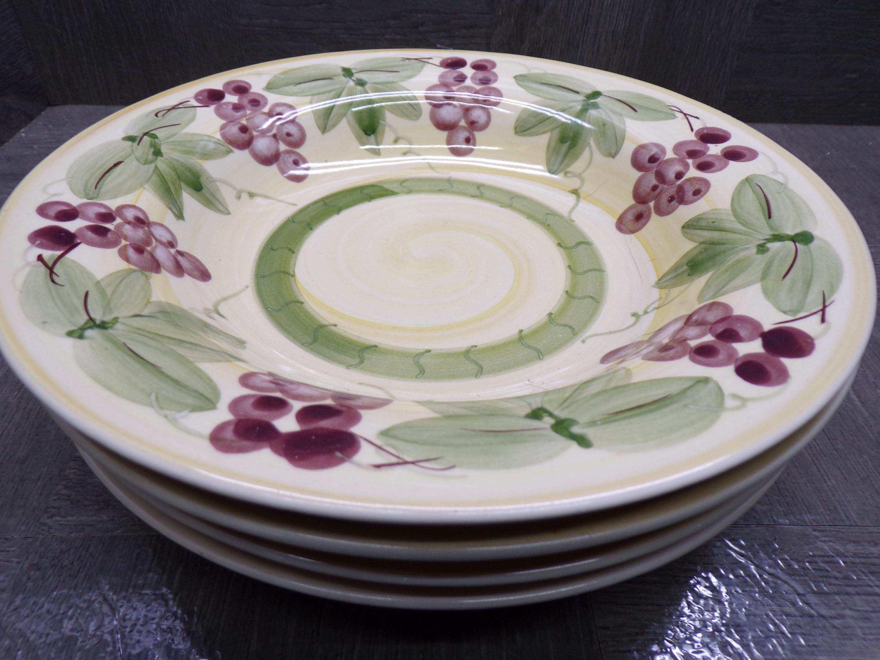 2602 Elegant Dining Grapes & Leaves 9" Stoneware Bowls Set of 4 - Great Condition