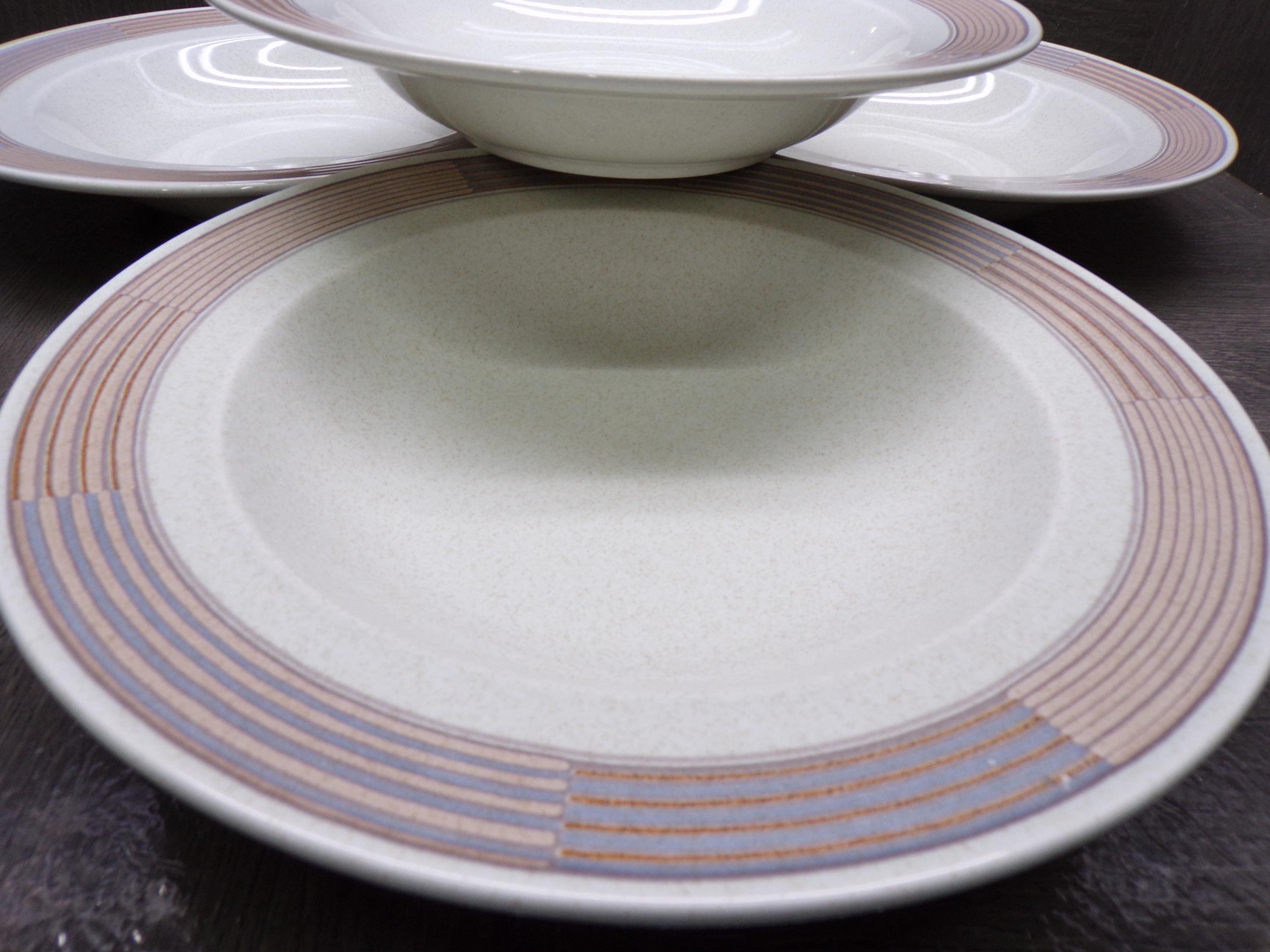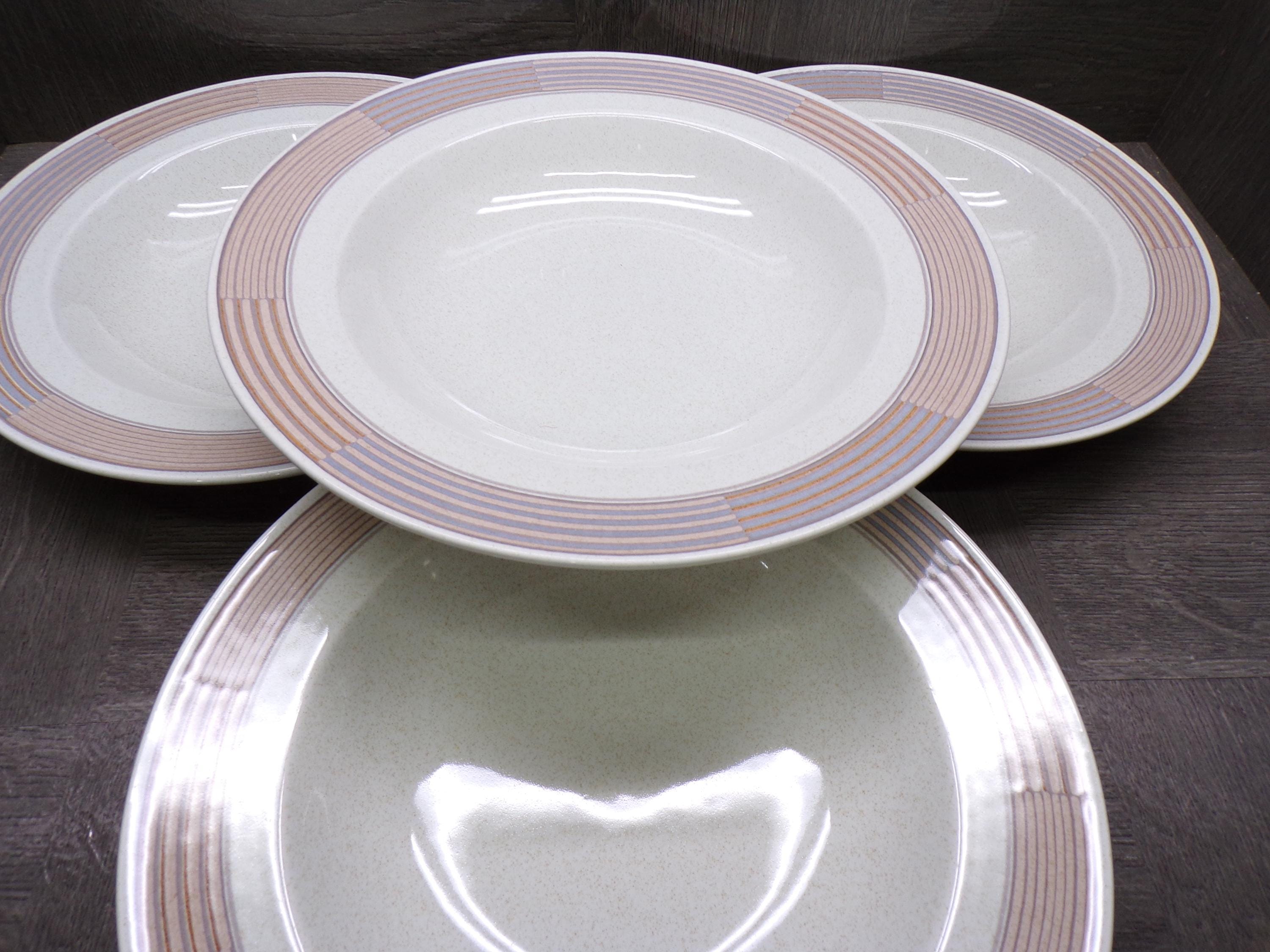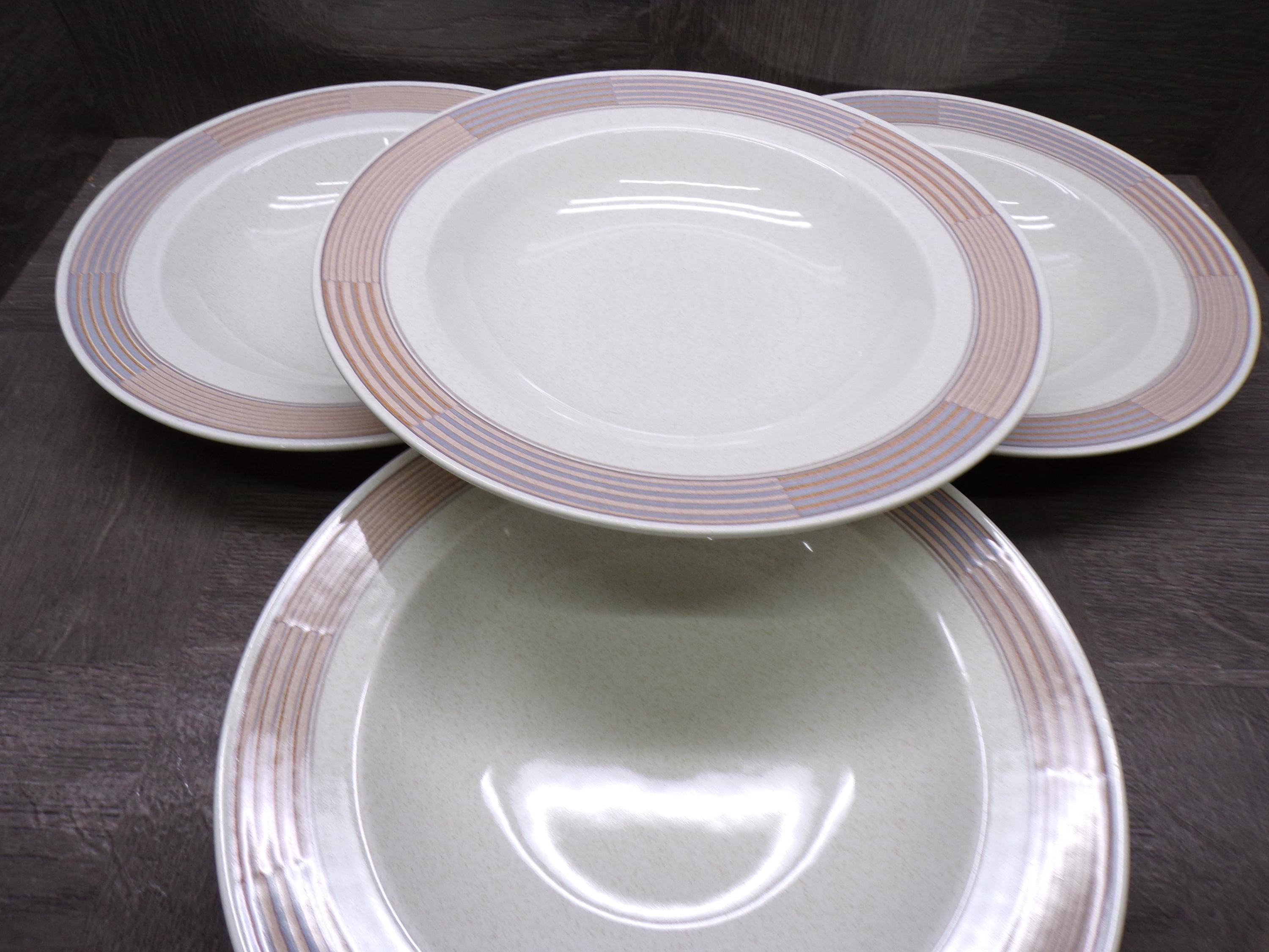 2602 Mikasa Intaglio CAC06 Tracings 9.25" Pasta Bowls Set of 4 Oven to Table Stoneware - Great Condition