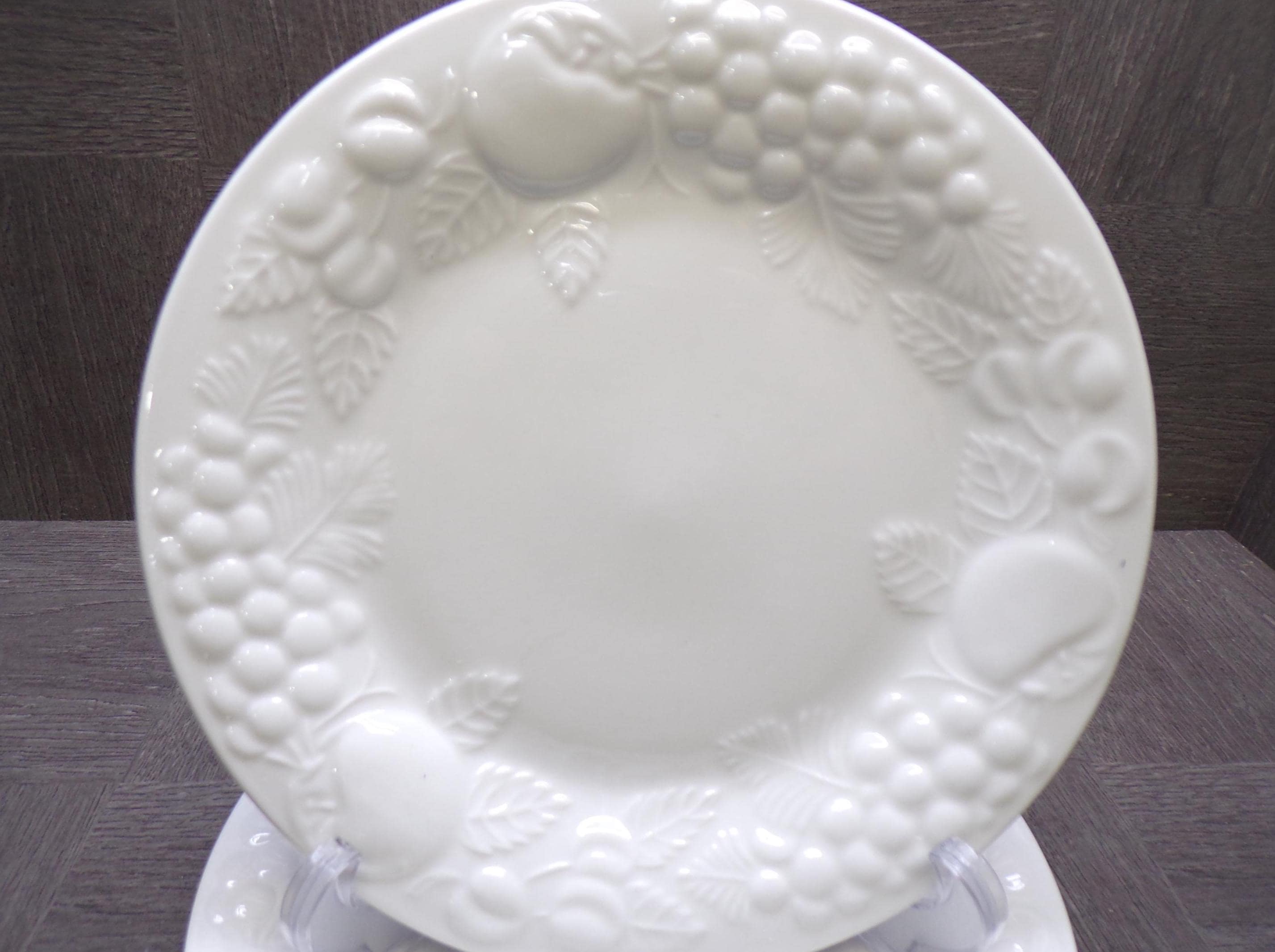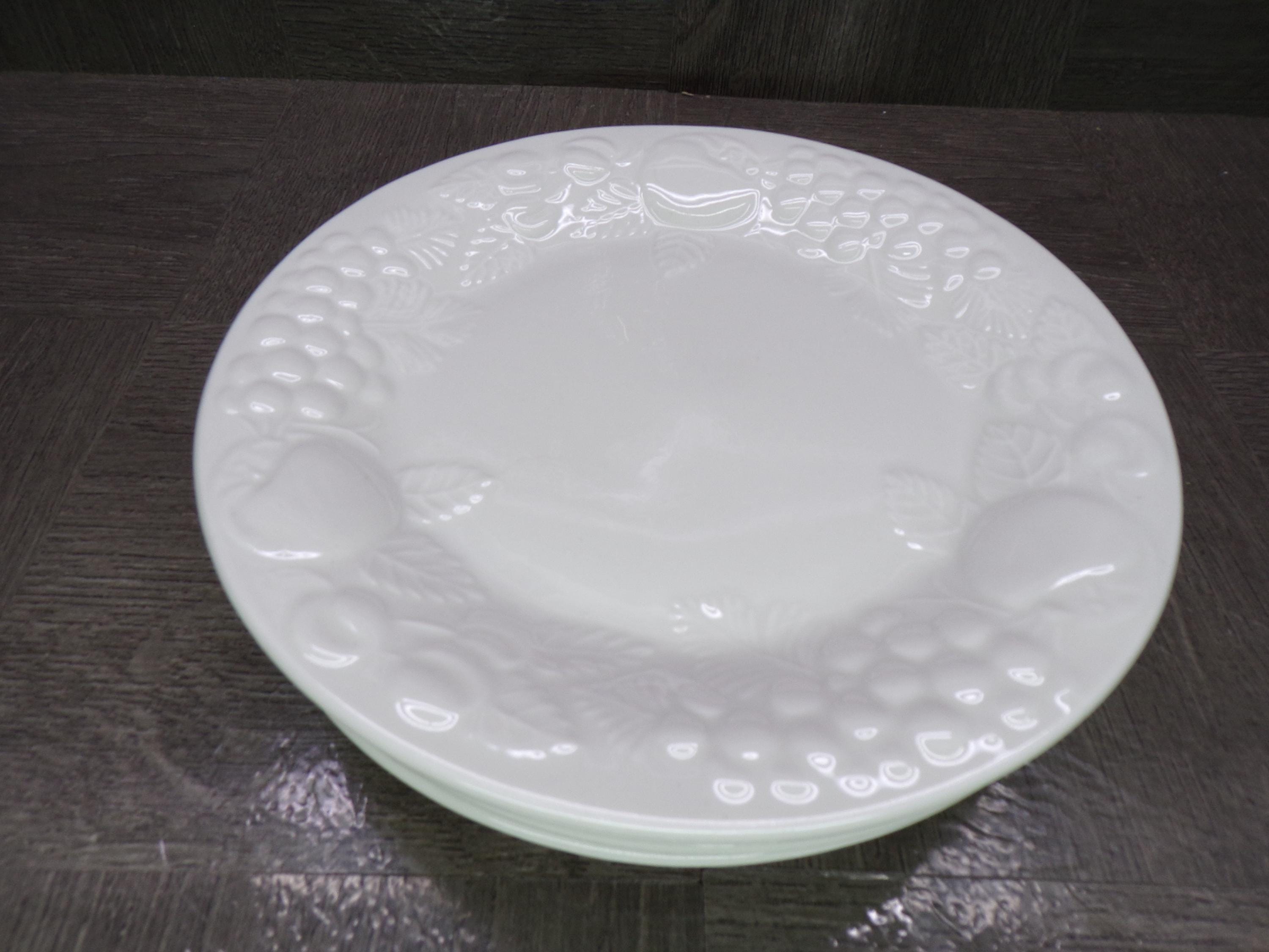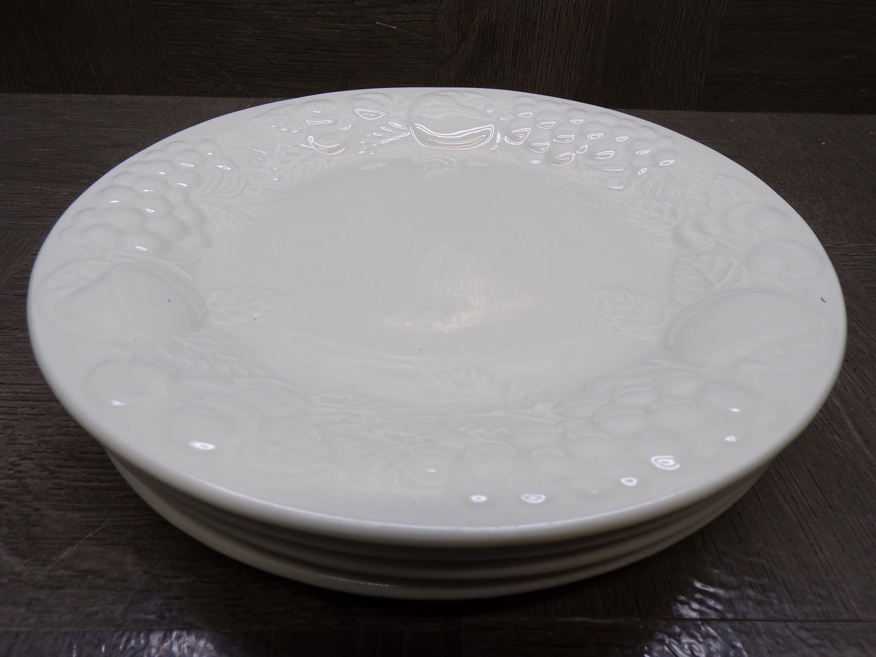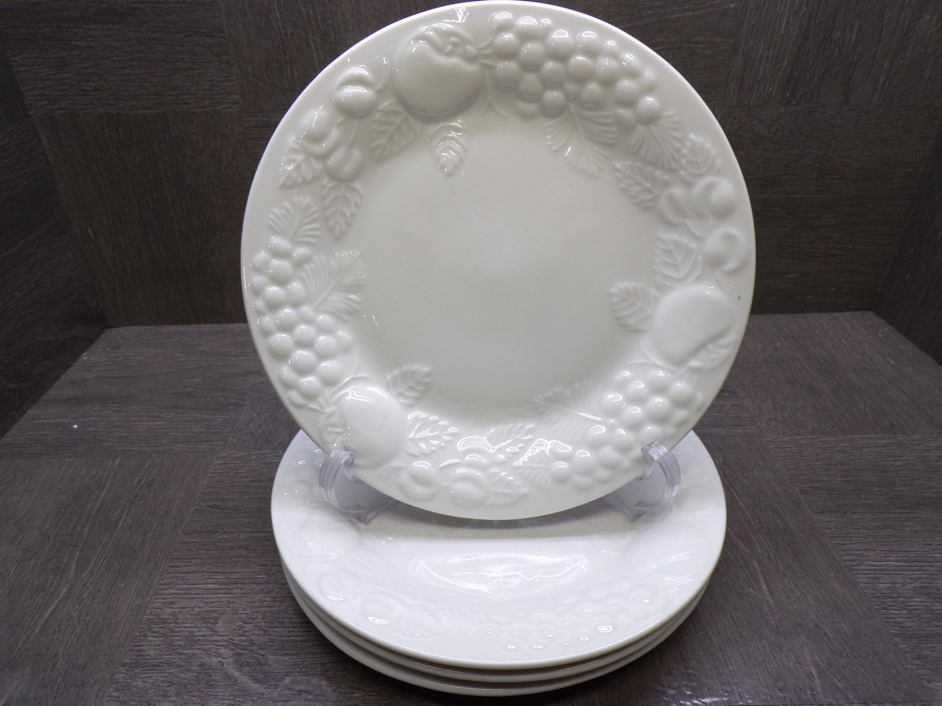 2602 Sauvignon Stoneware Raised Fruit White 7.75" Discontinued Salad / Snack Plates Set of 4- Great Condition