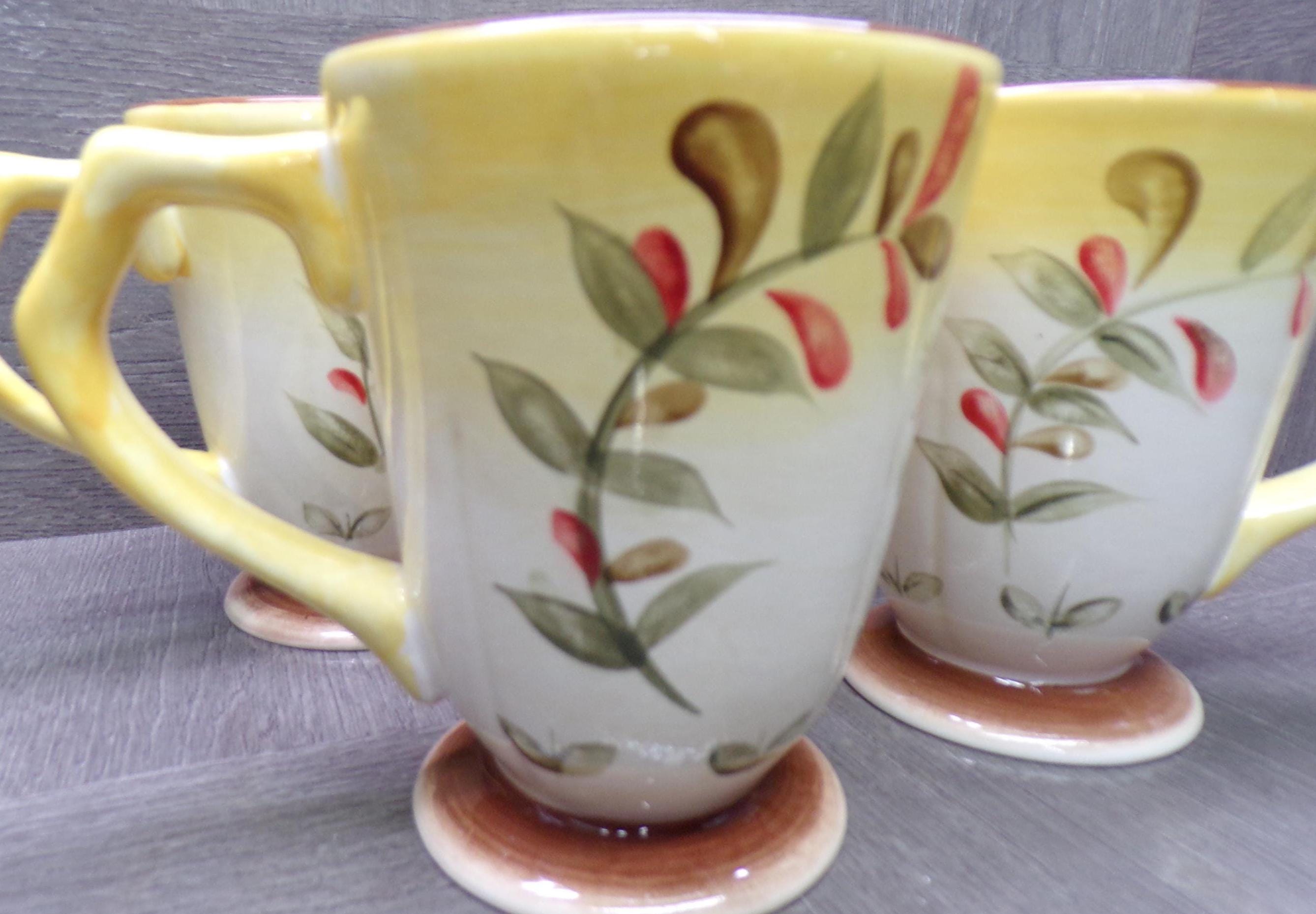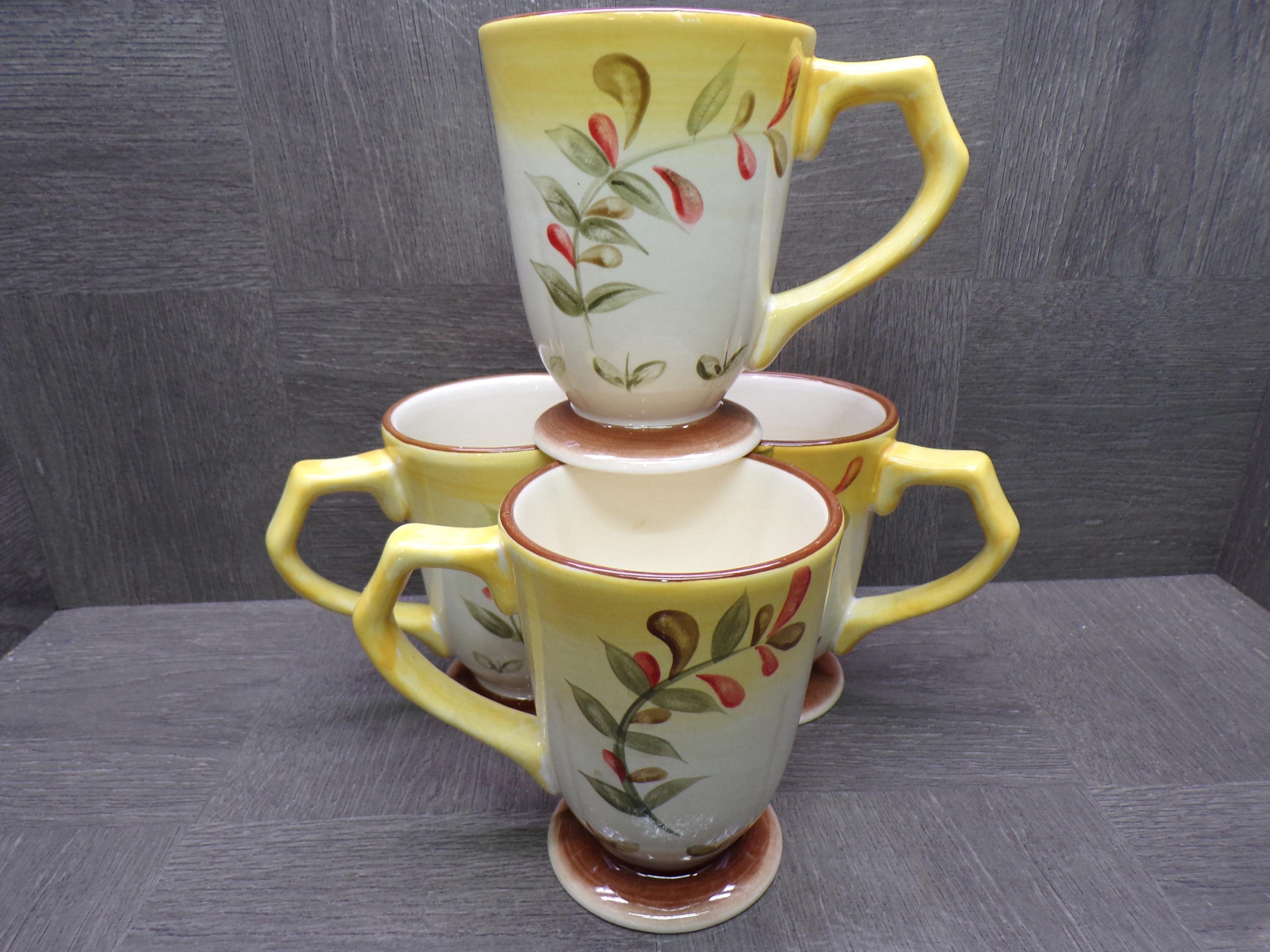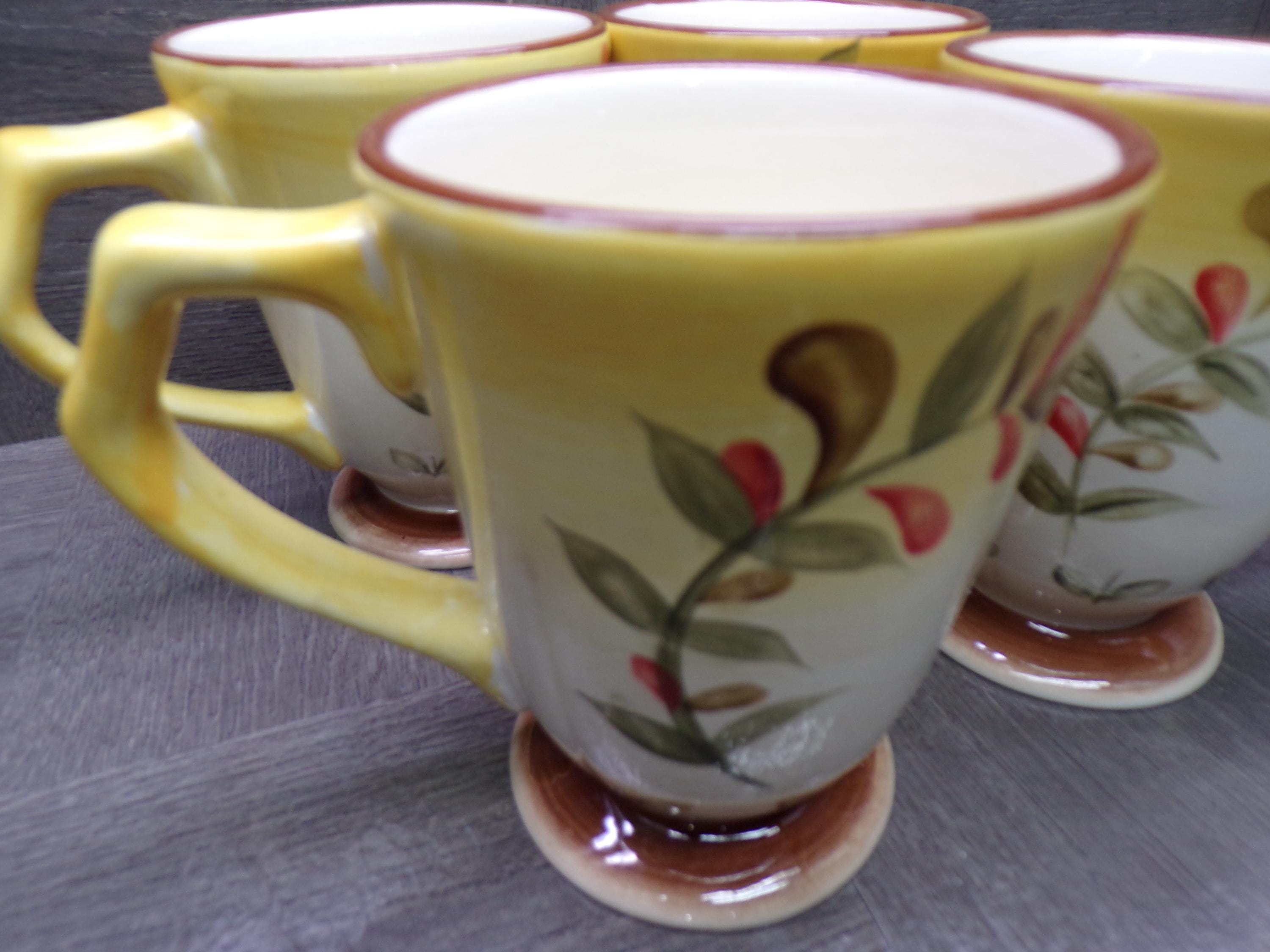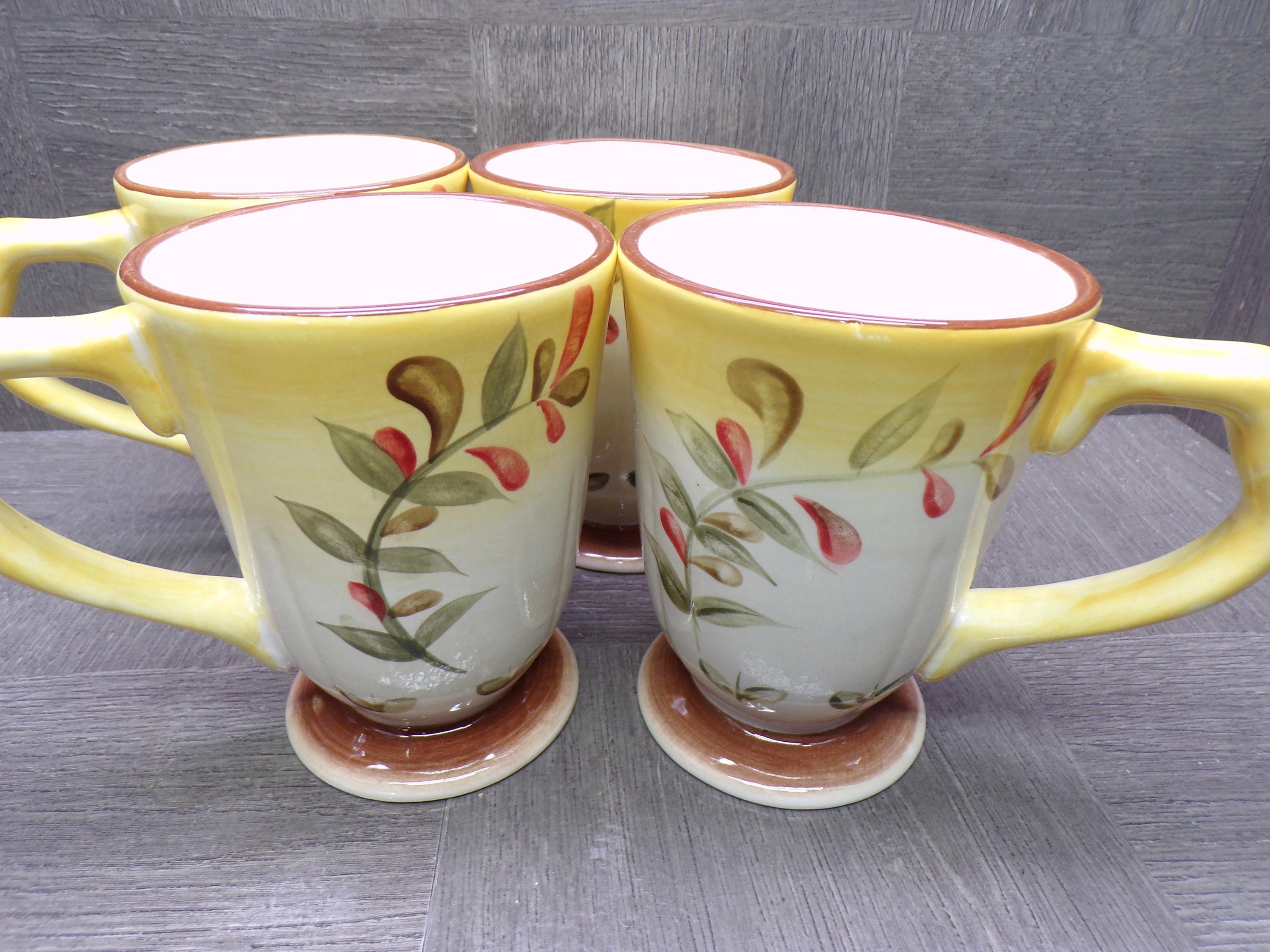 2602 Better Homes and Gardens Tuscan Retreat Discontinued 4.75" 12 oz Footed Coffee Mugs Set of 4- Great Condition
