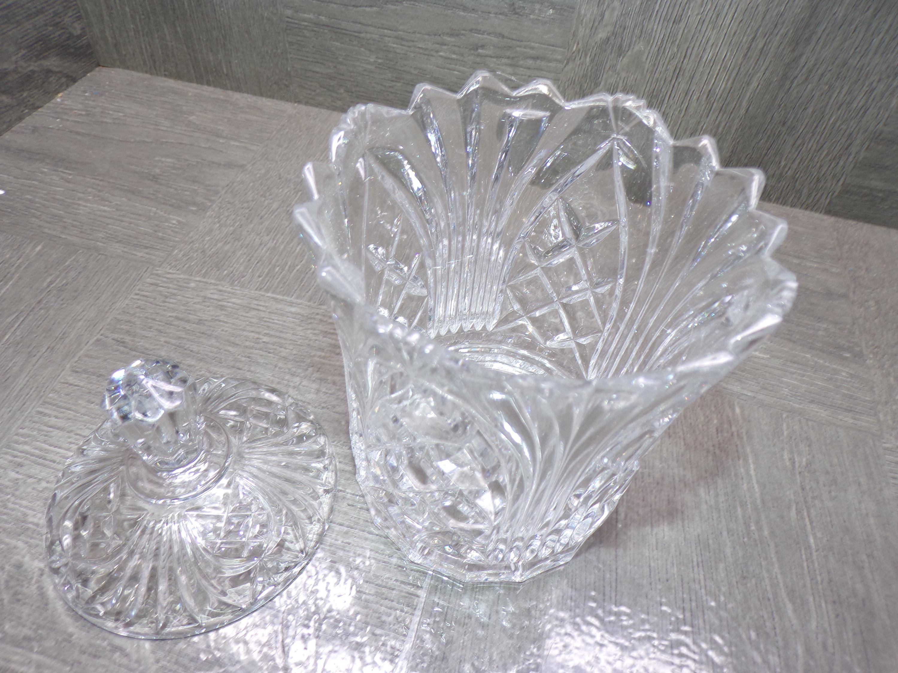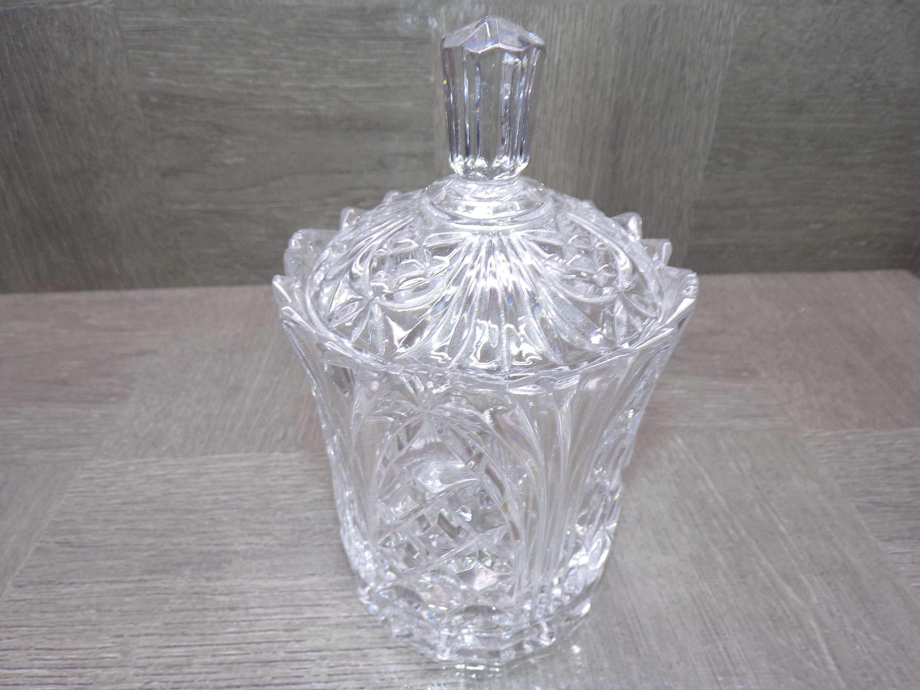 2602 Vintage Lead Crystal 6.5" Tall x 4" Wide Canister Jar with Lid- One Tiny Chip on Underside of Lid