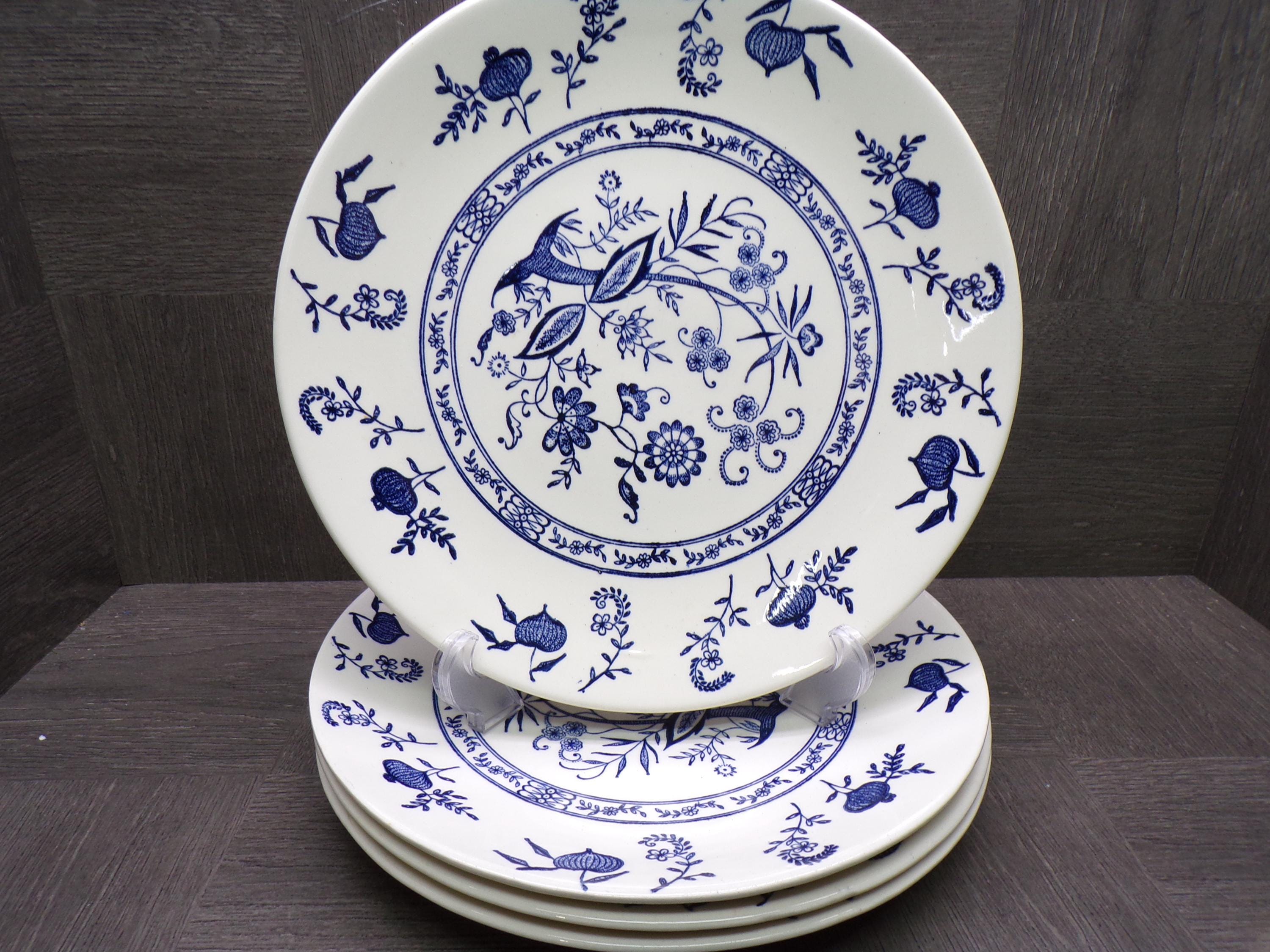 2602 Scio Pottery Old Town Blue Onion Vintage 1950's Ohio, USA 10" Dinner Plates Set of 4 - Great Condition