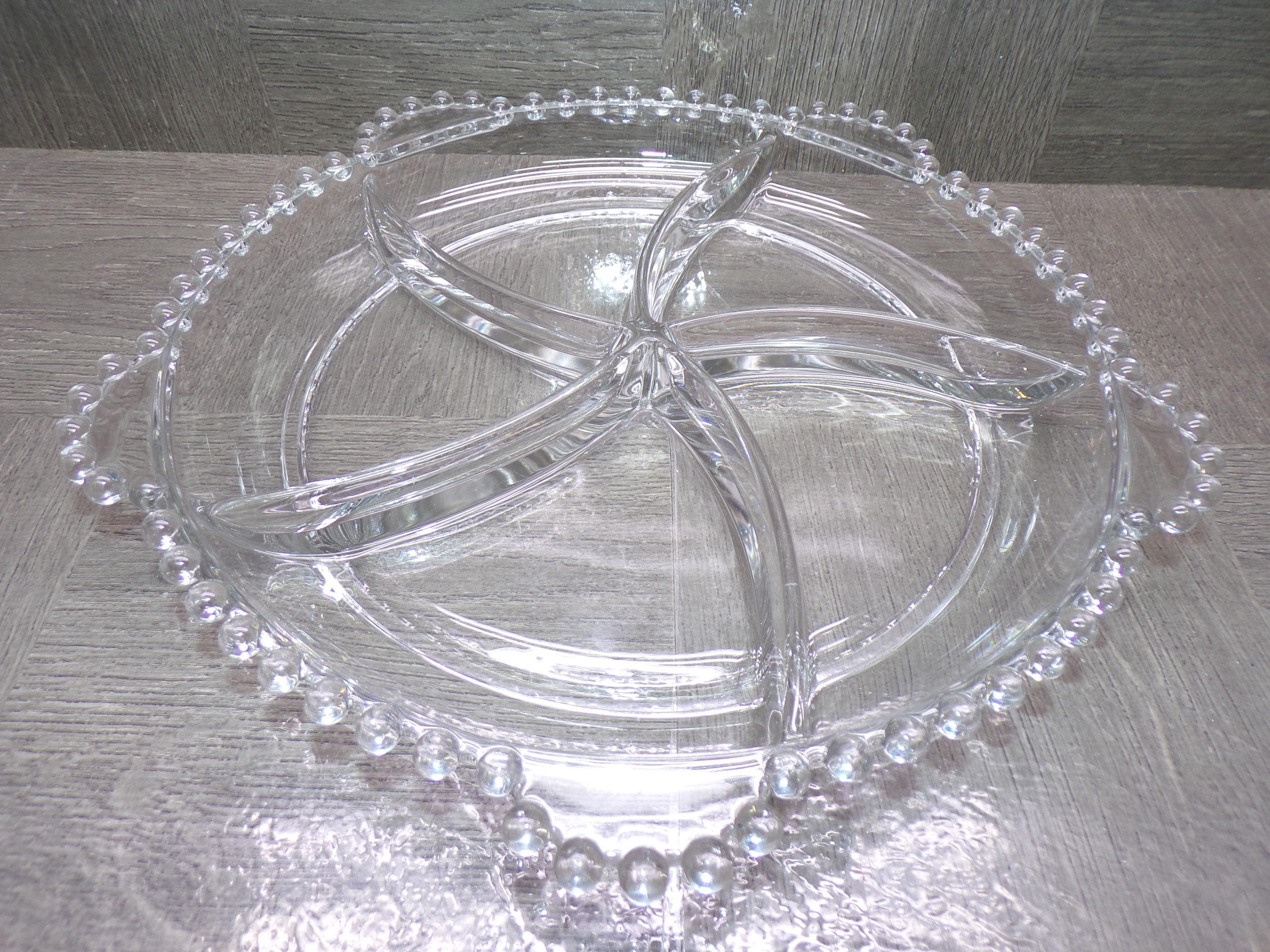 2602 Imperial Glass Candlewick Beaded Rim 11" 5 Section Divided Dish - Great Condition