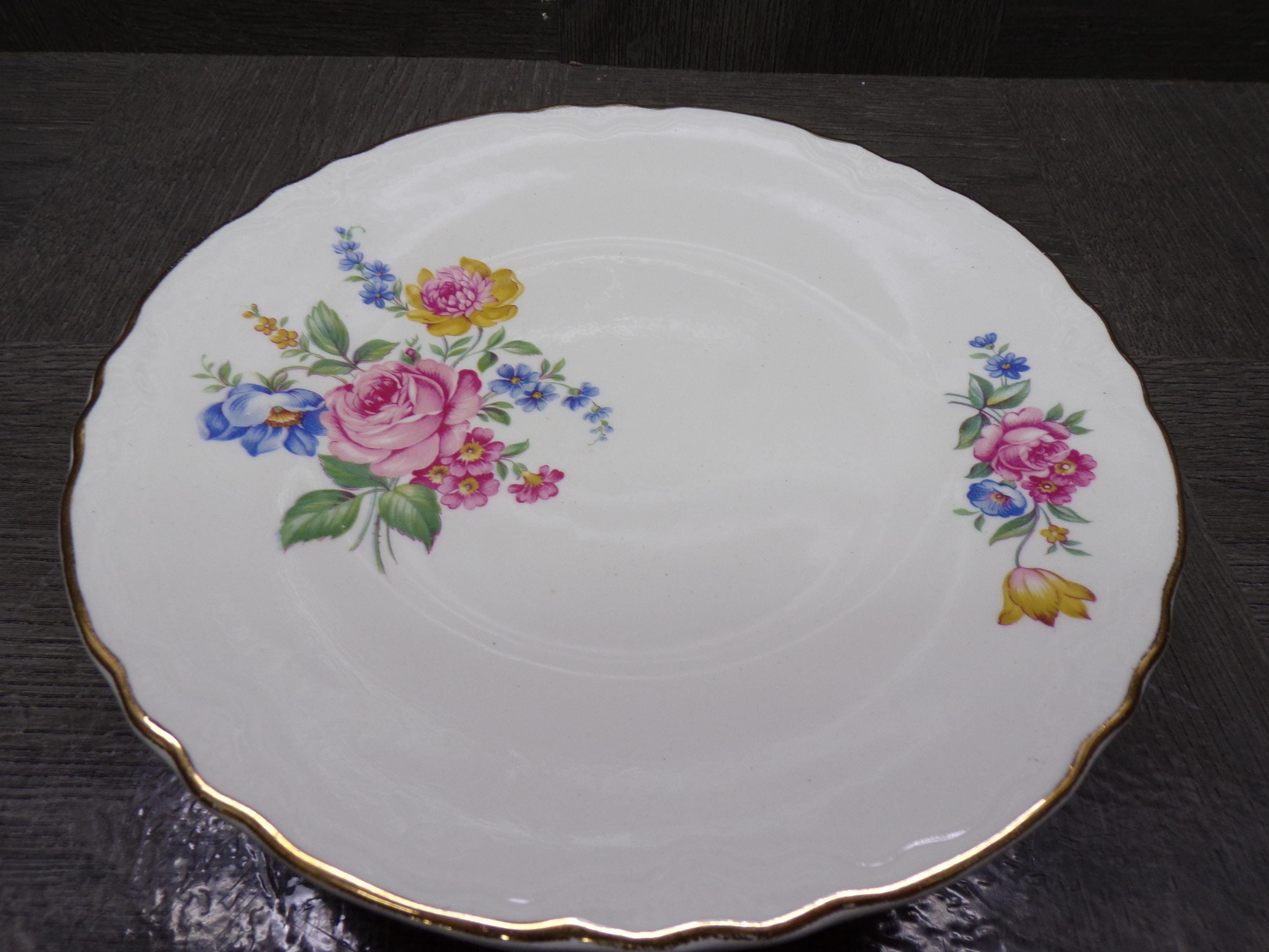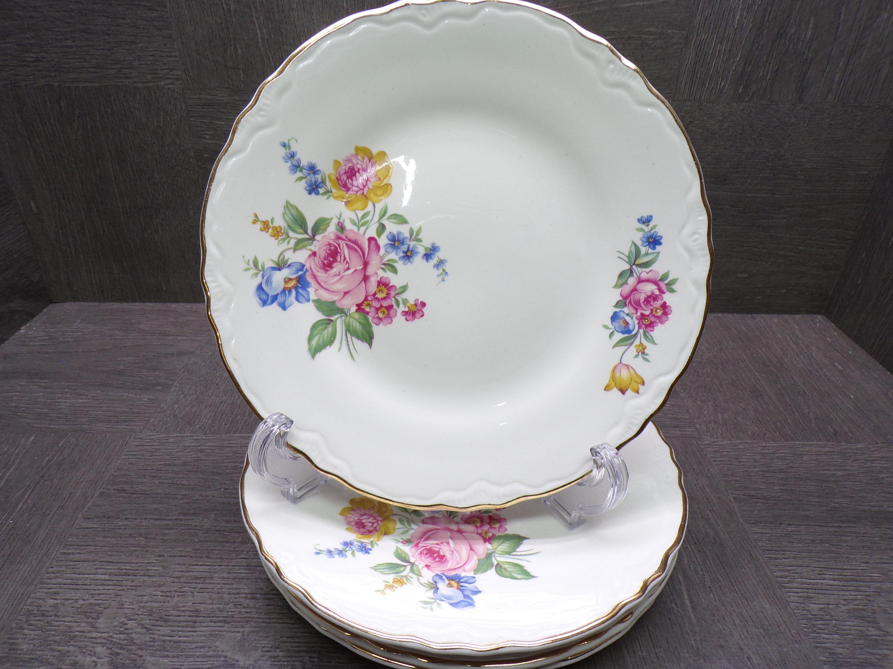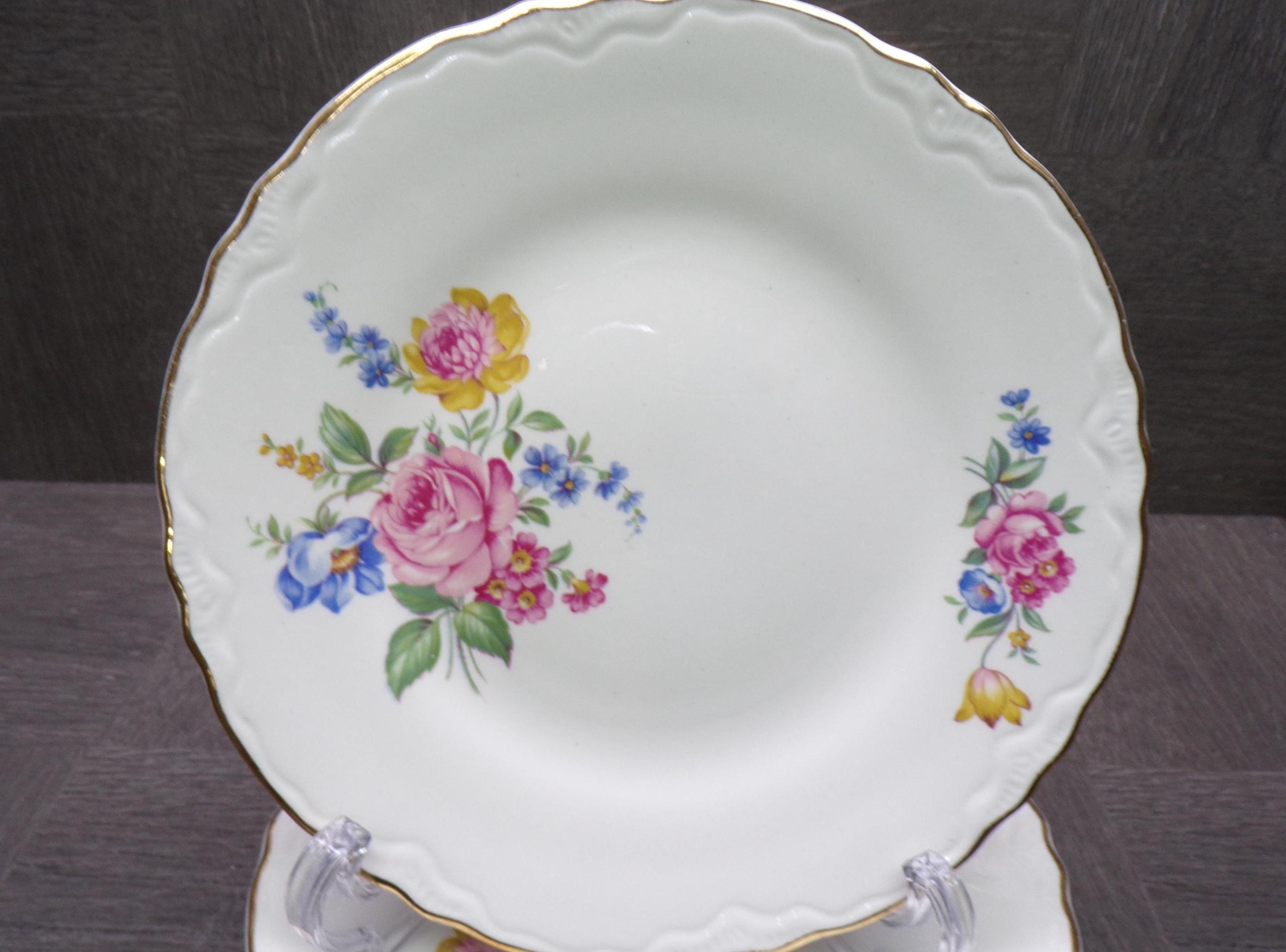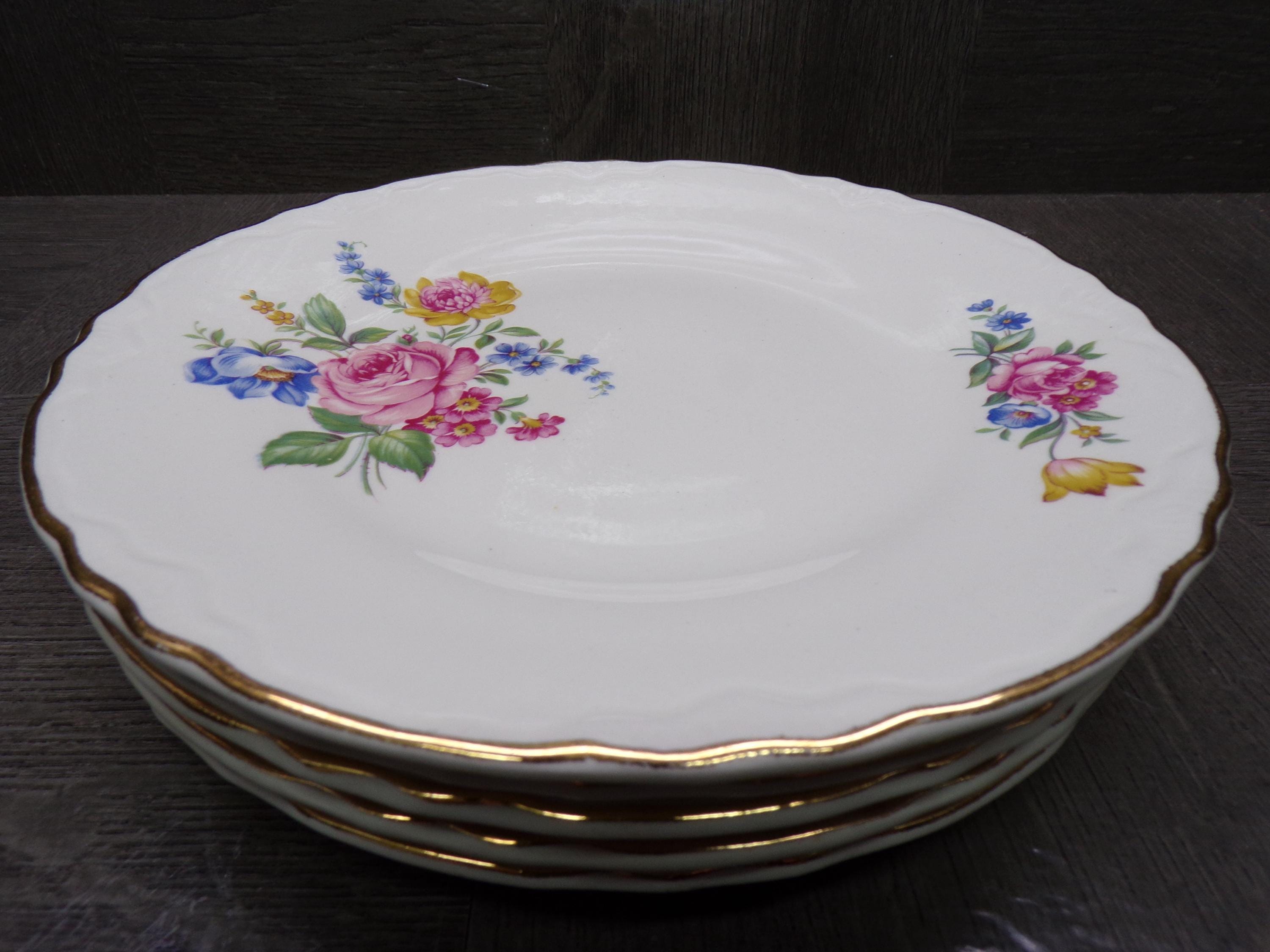 2602 Hazel Pattern Vintage China by Scio Ohio USA 7.25" Salad / Snack Plates Set of 5 Pastel Floral on Cream Gold Rim - Great Condition