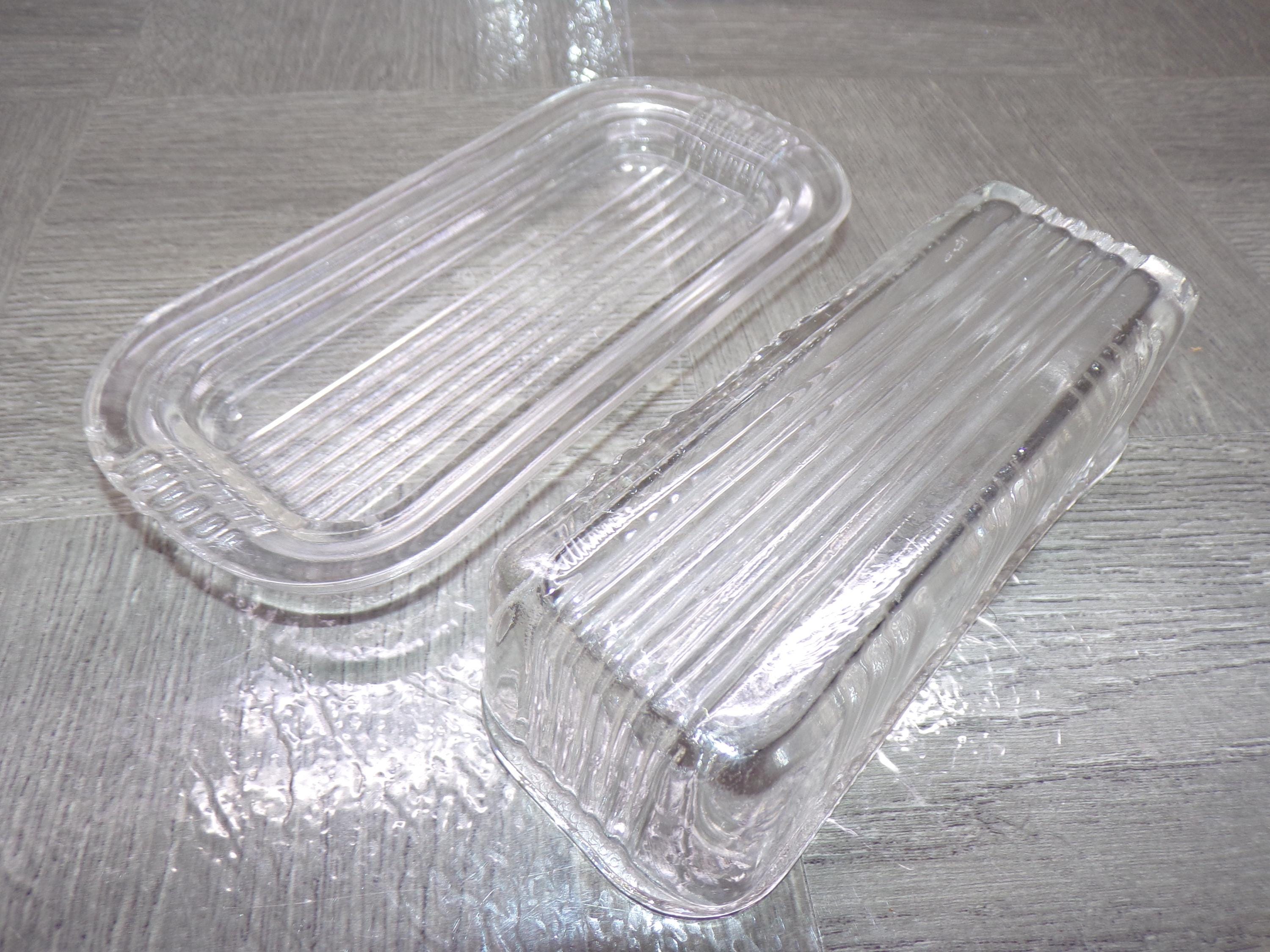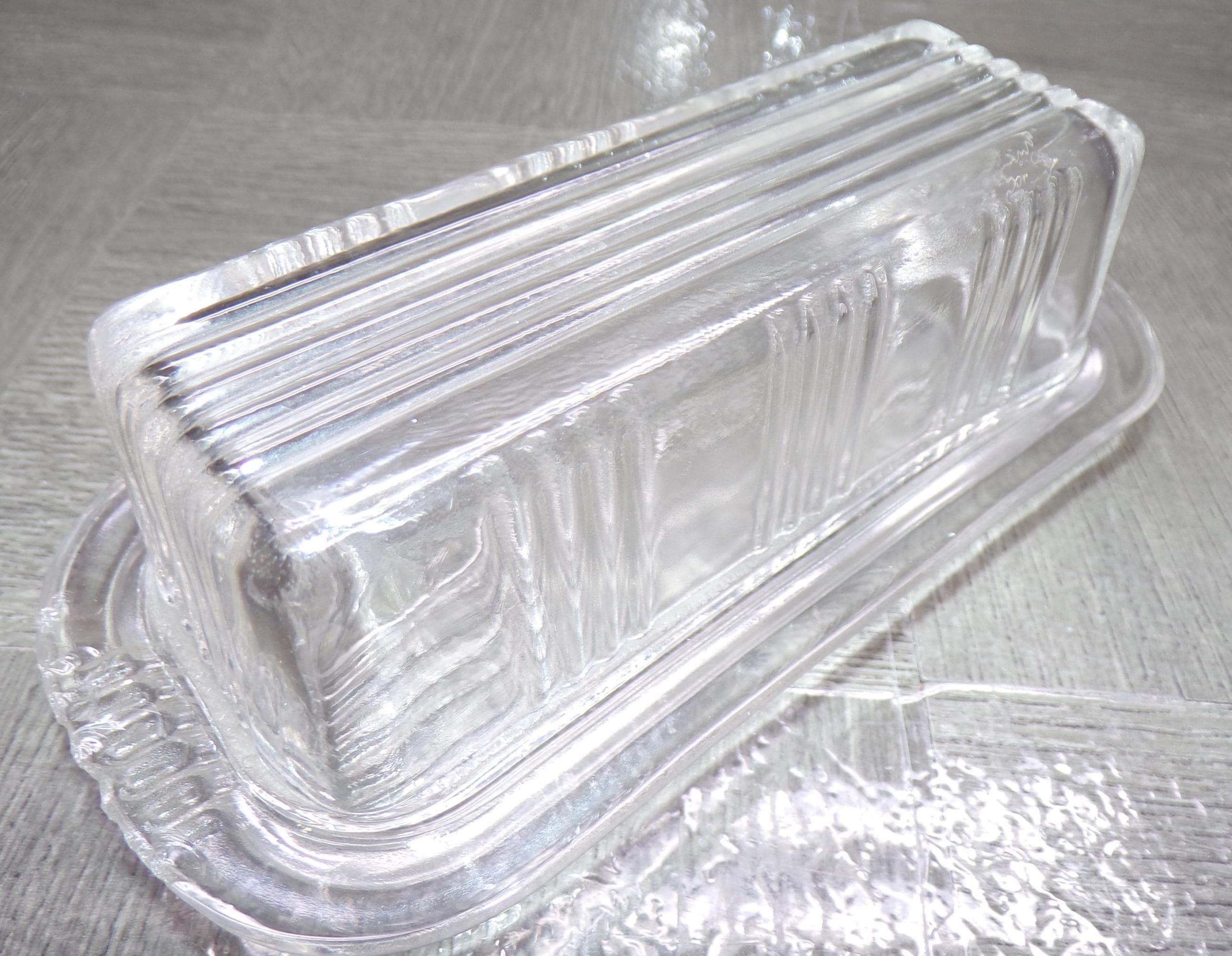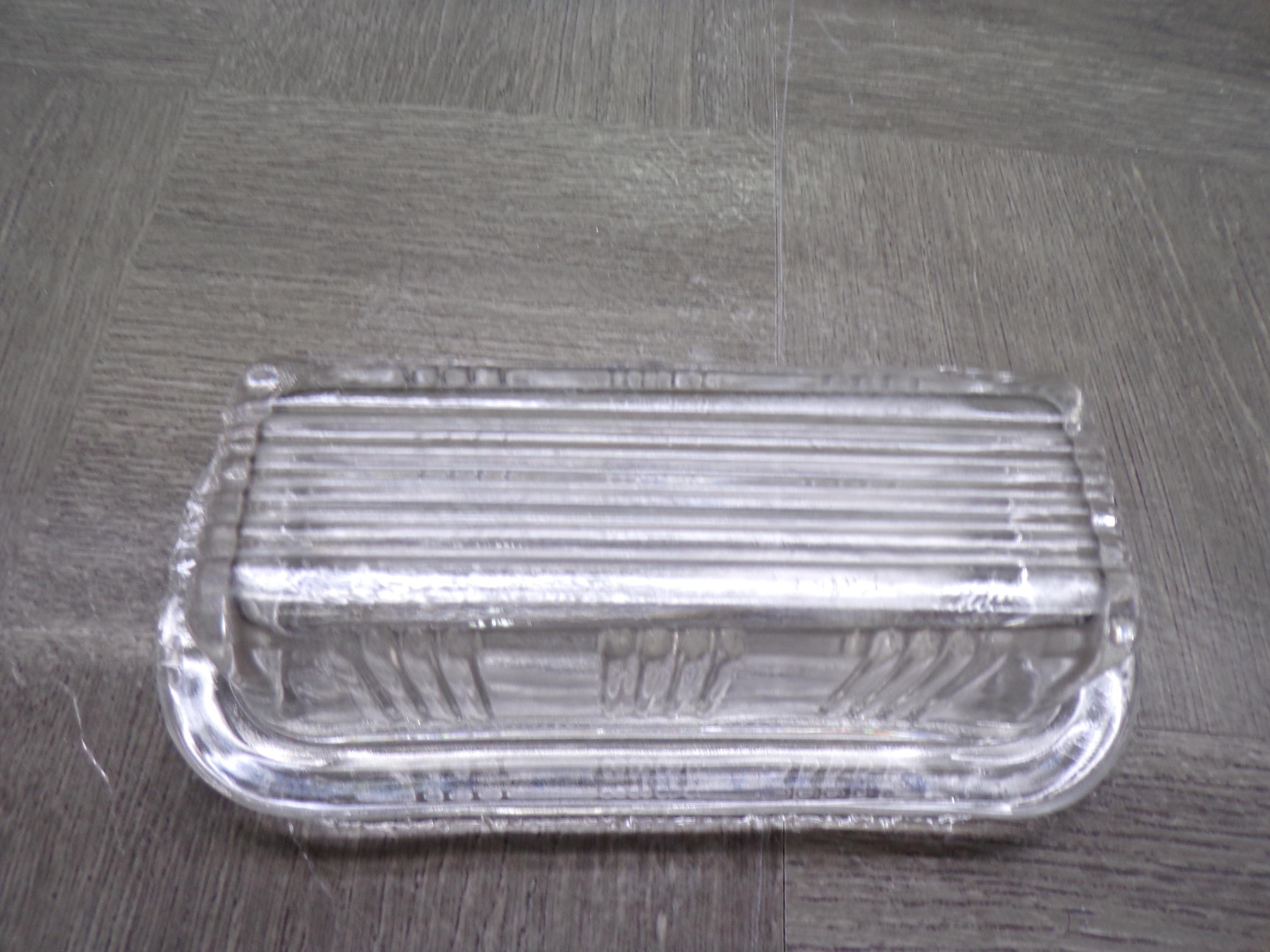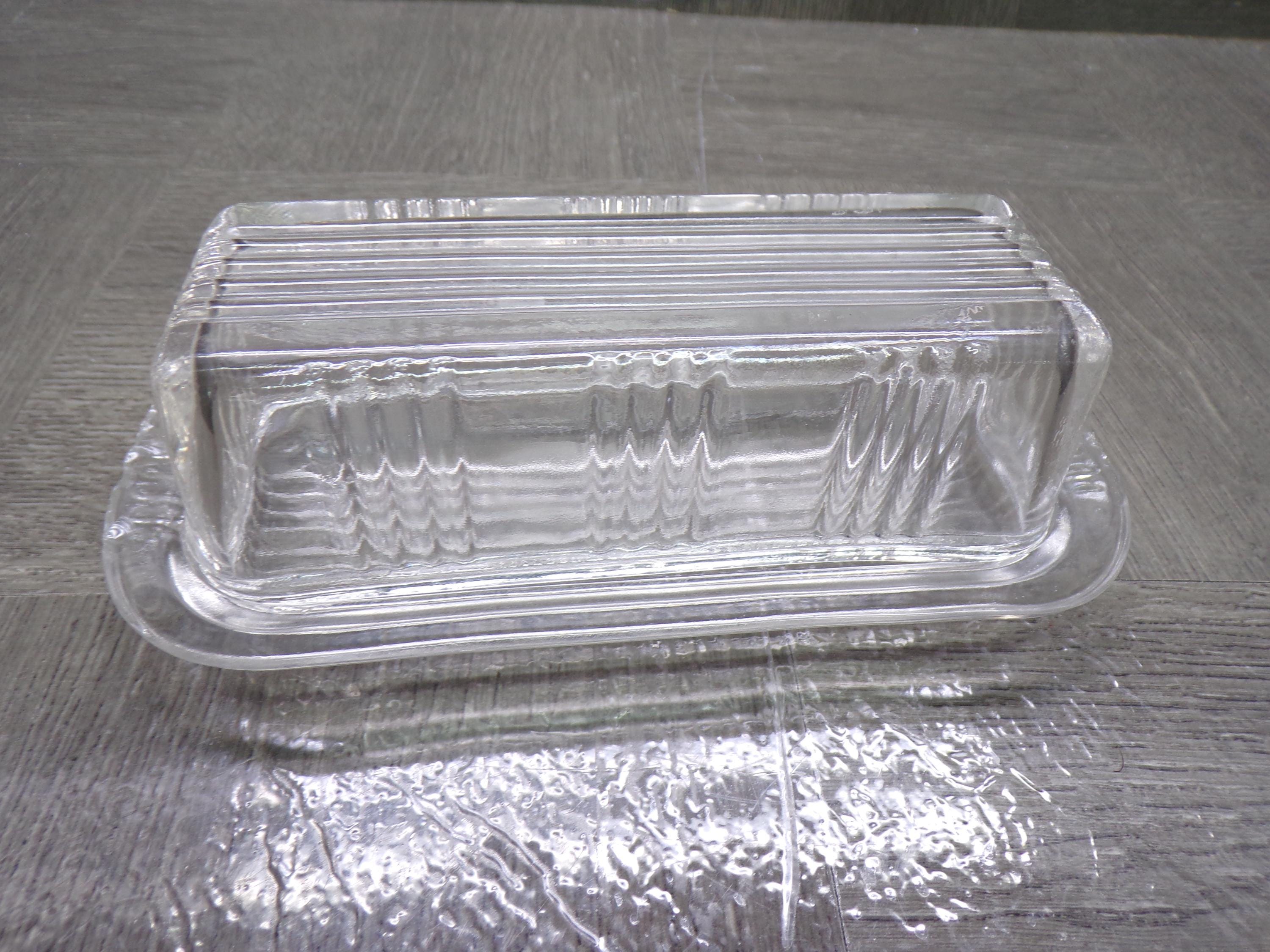 2602 Vintage 2 pc Ribbed Pressed Glass Butter Dish with Cover - Good Condition No Chips