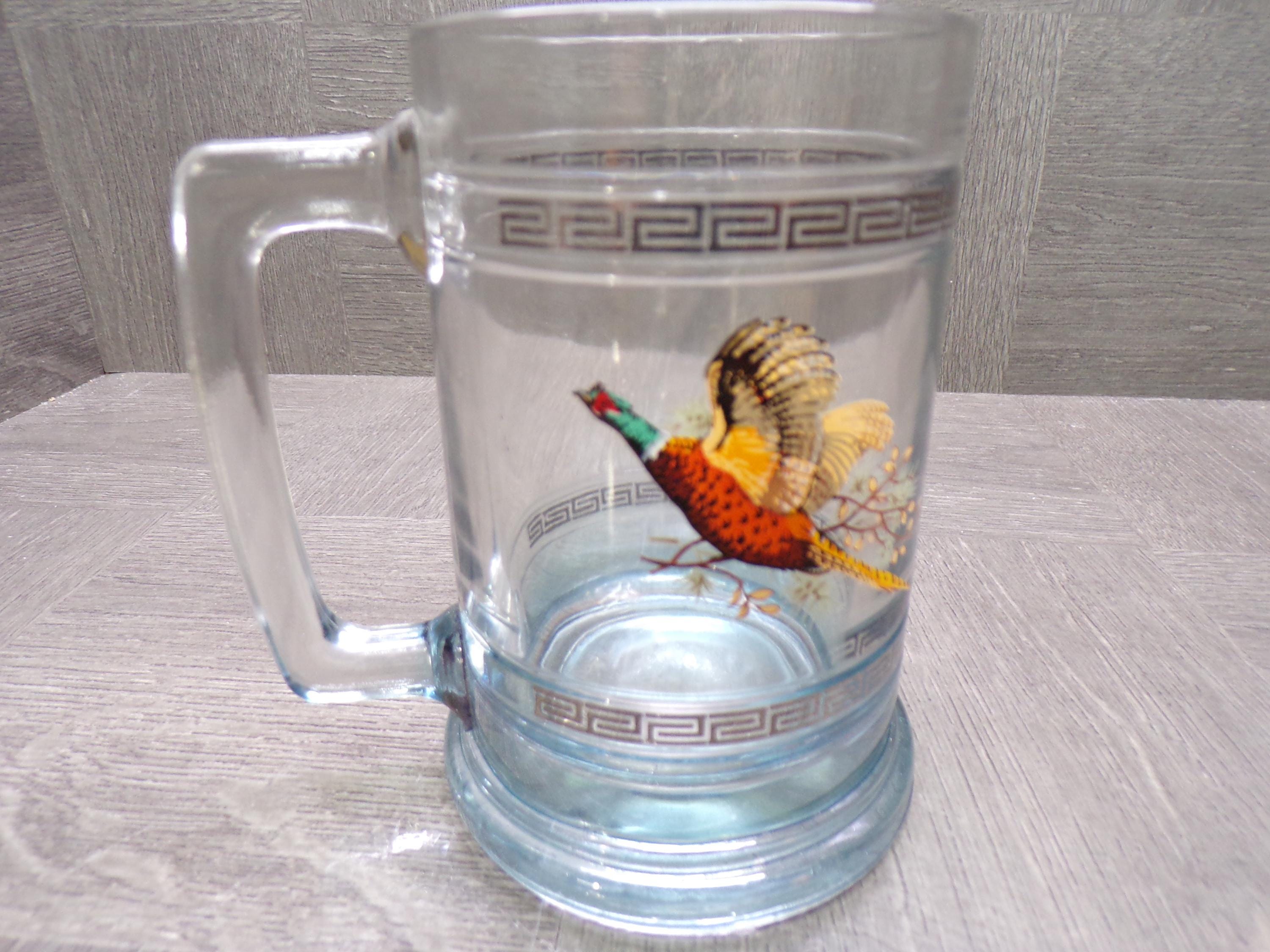 2602 Princess House Pheasant Vintage Collector Mug Blue Tint Glass - Great Condition
