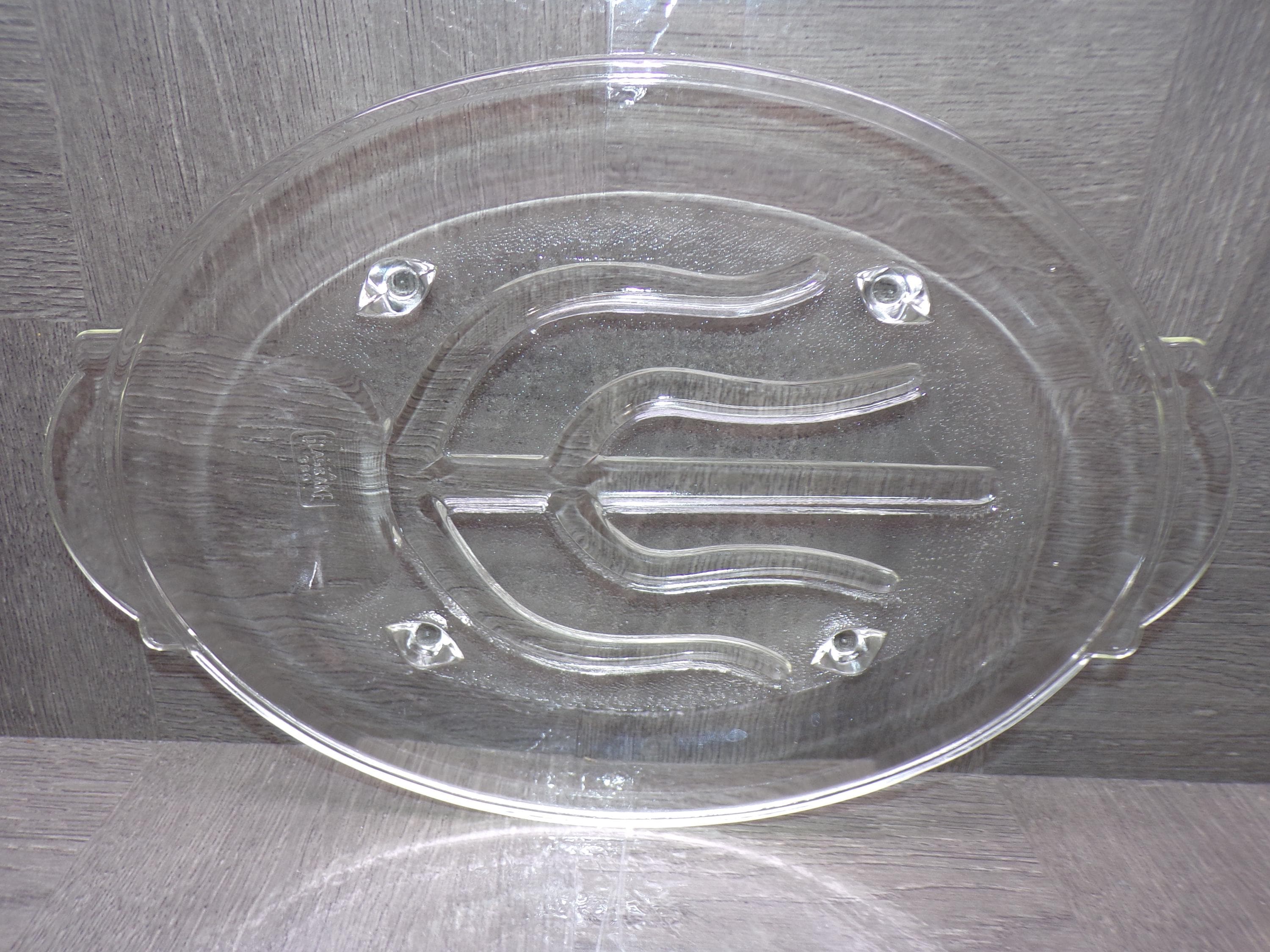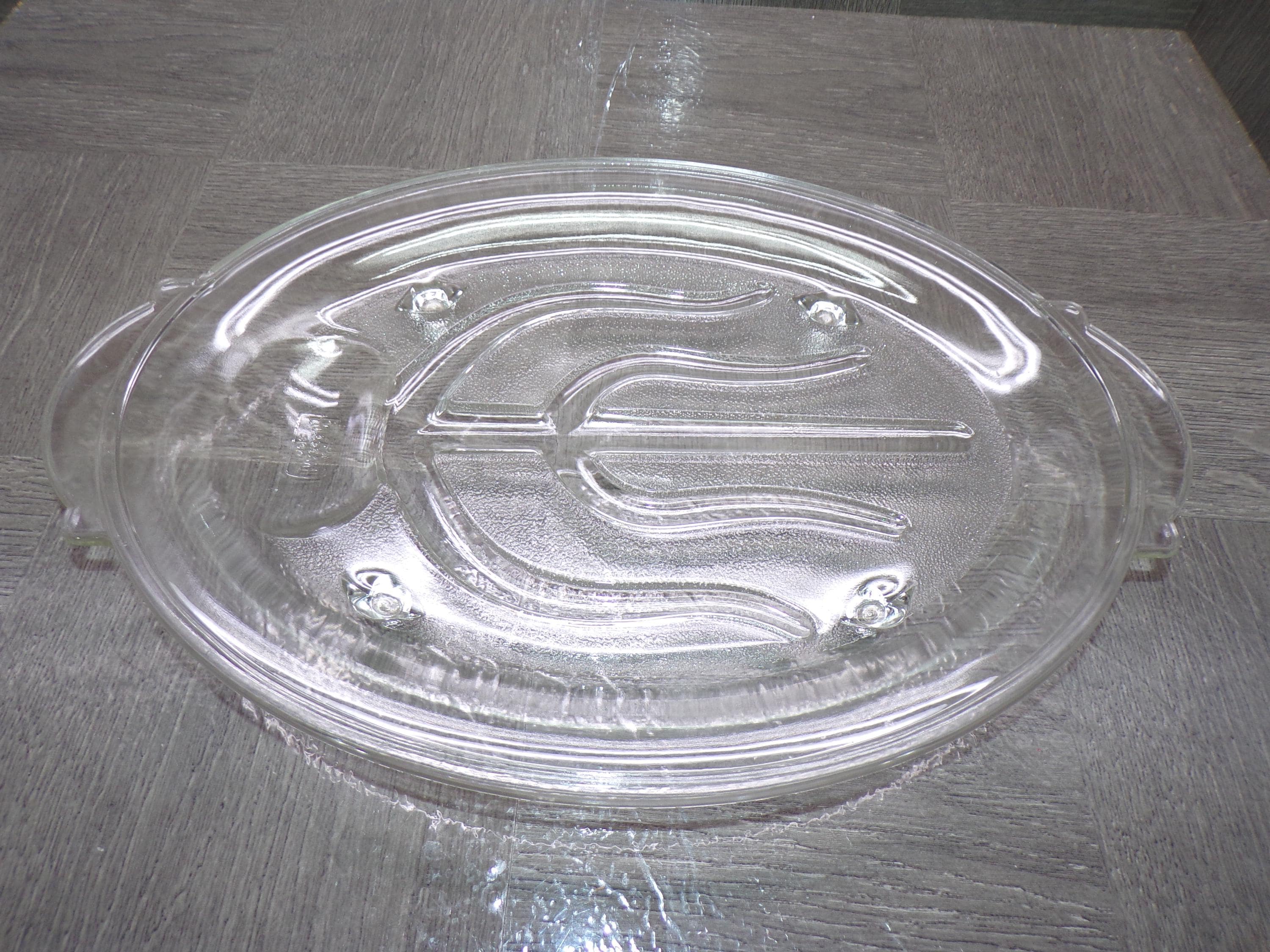 2602 Vintage Glasbake 380 Tree & Well Pattern 13.25" x 9" Clear Glass Oval Serving Platter - Great Condition