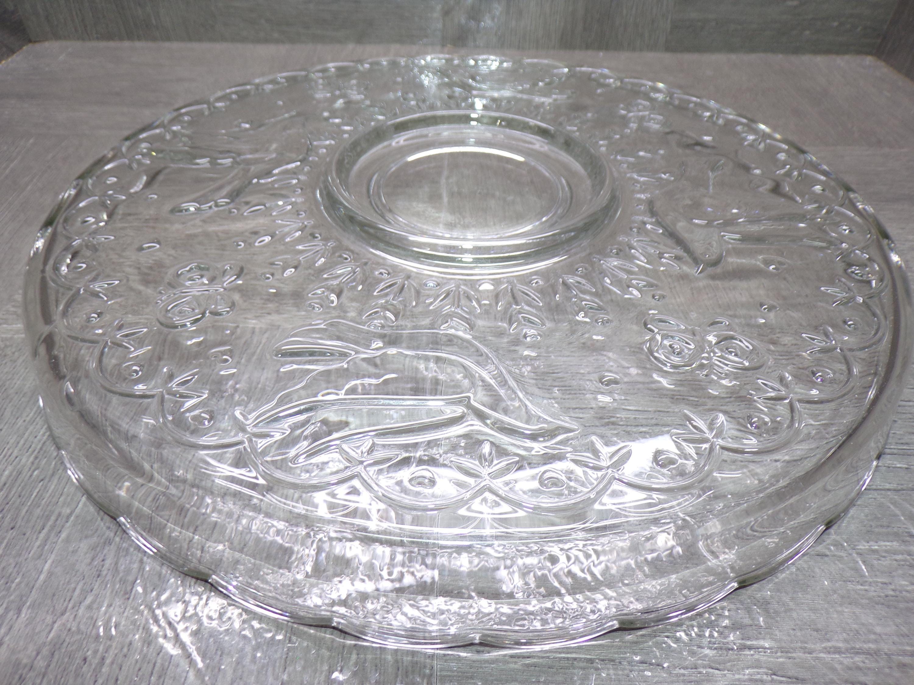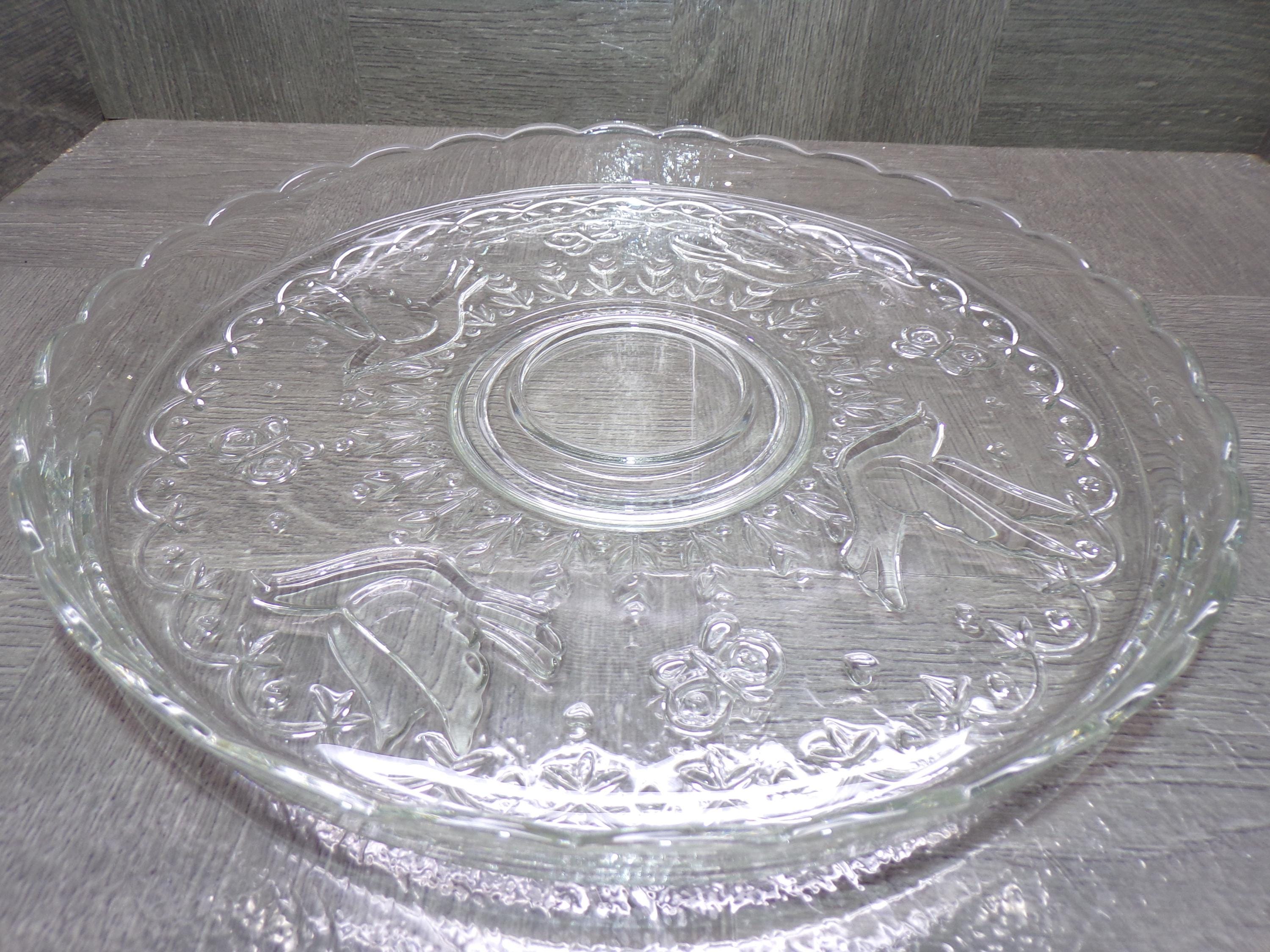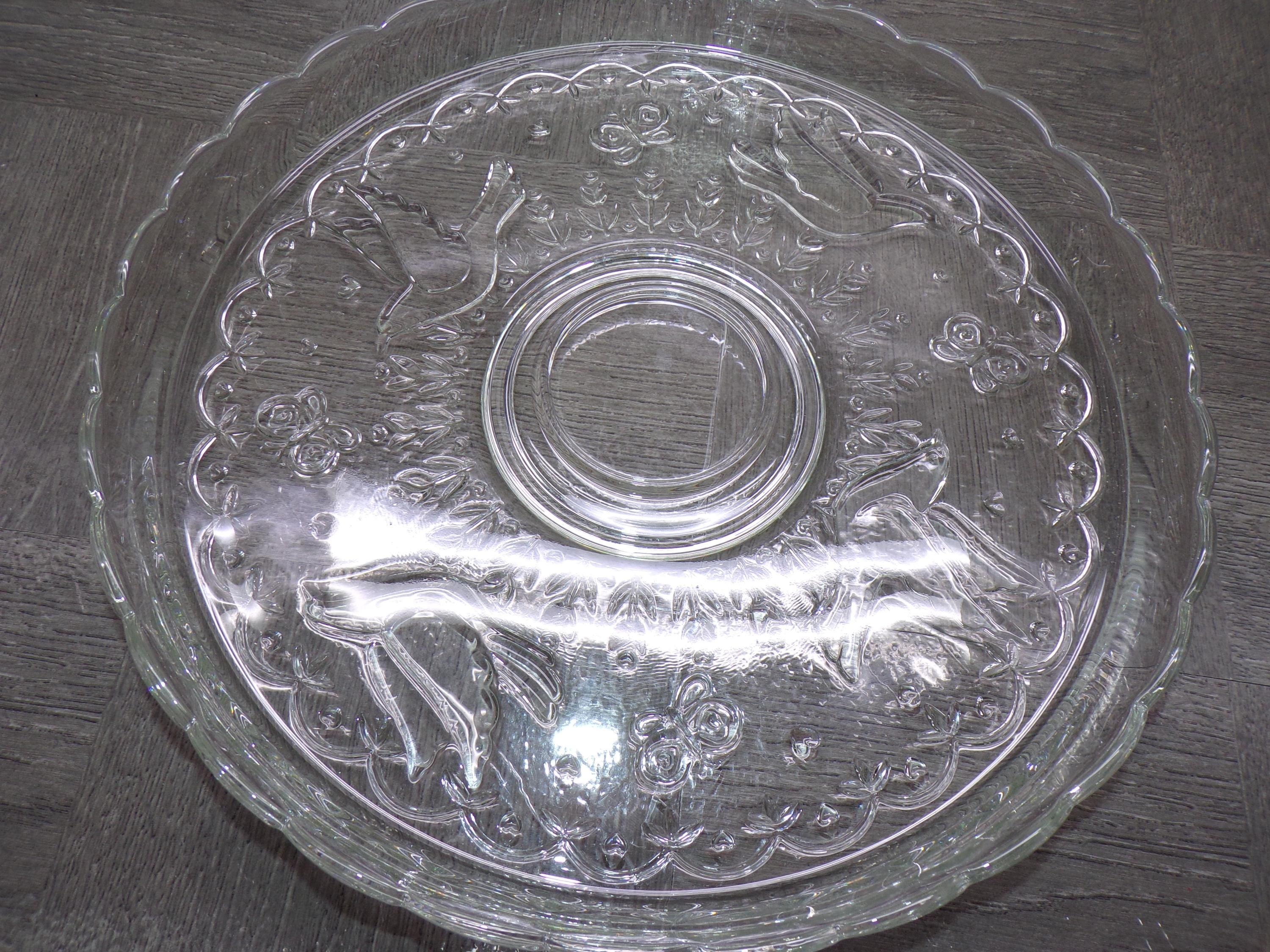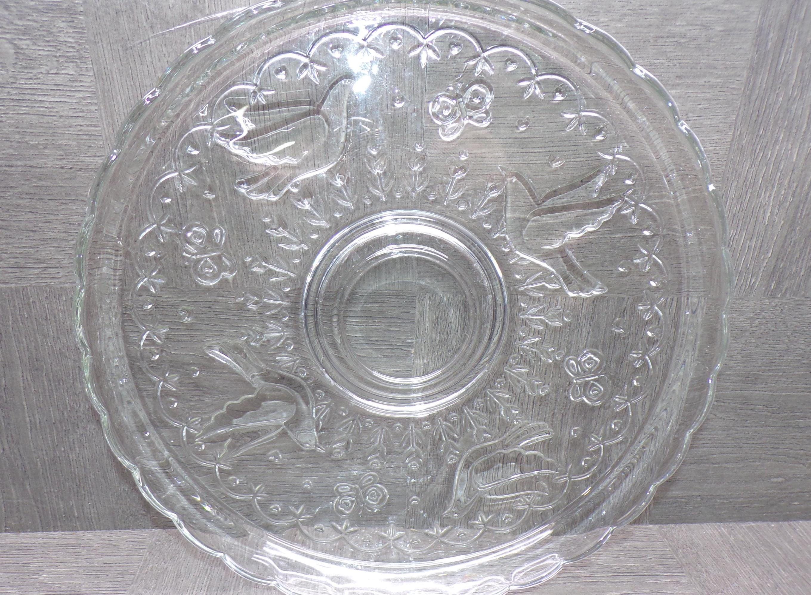 2602 Colony Crafts Vintage Crystal Garden 12" Raised Rim Platter - Embossed Birds, Butterflies, Flowers - Great Condition