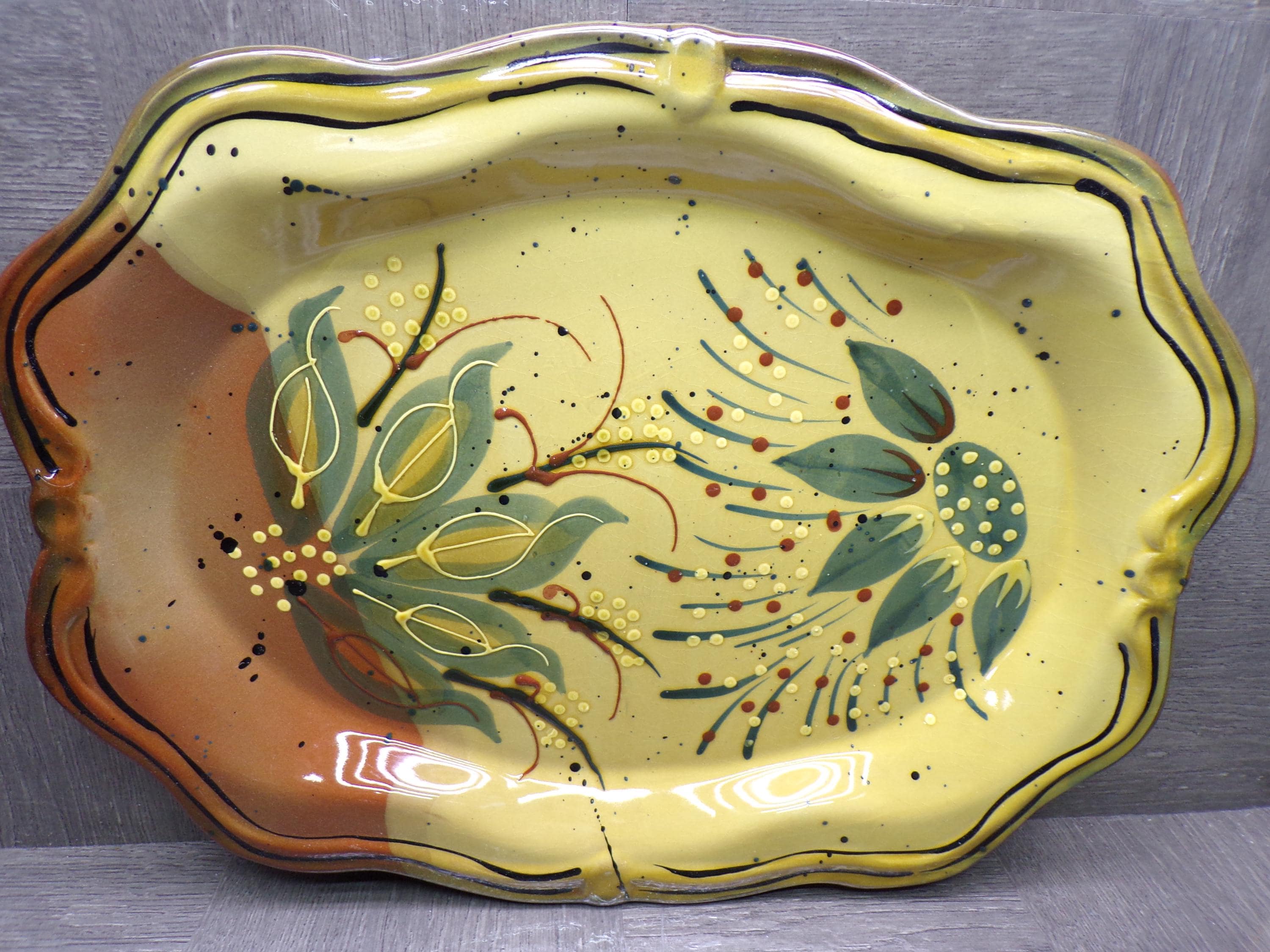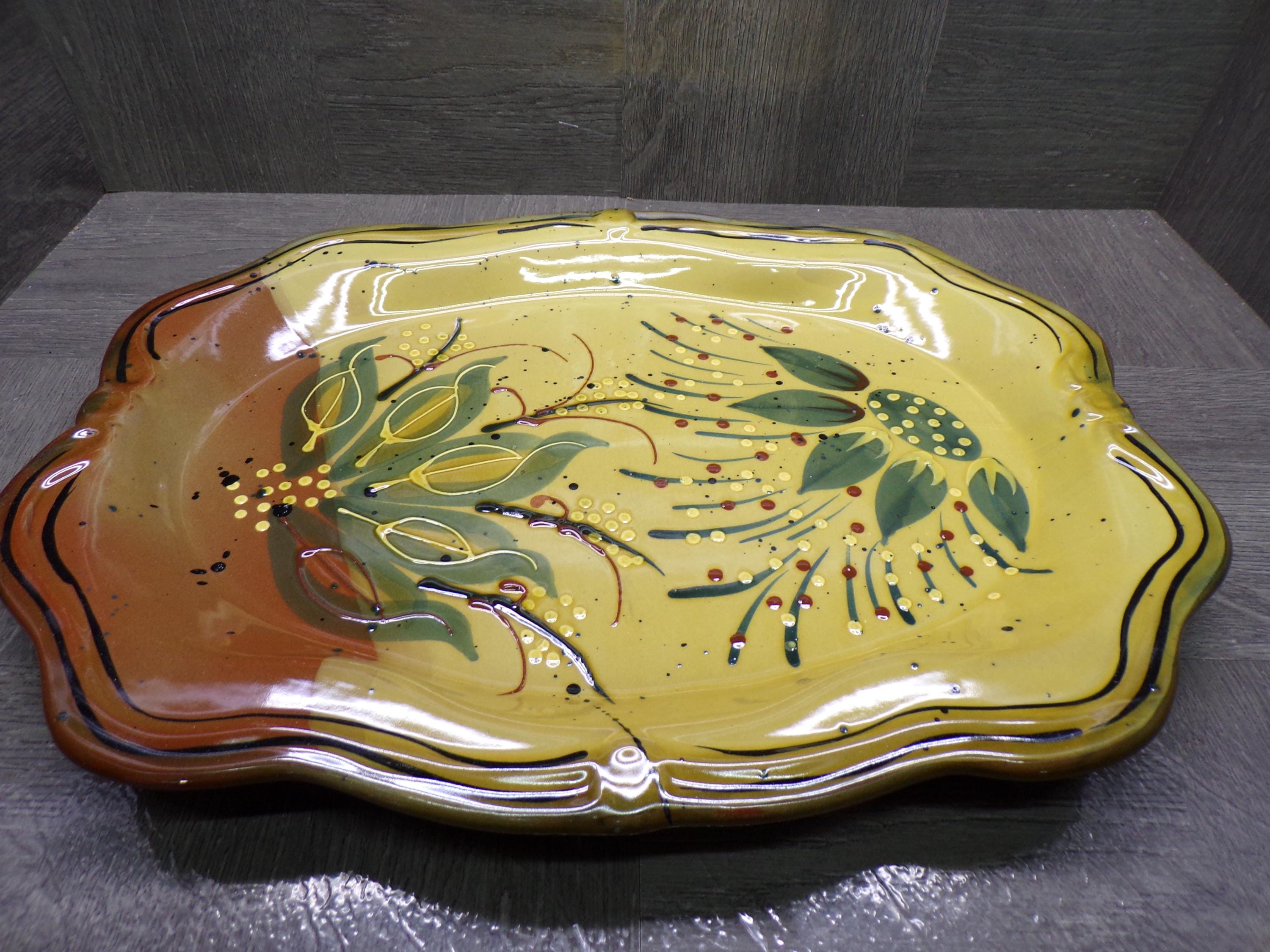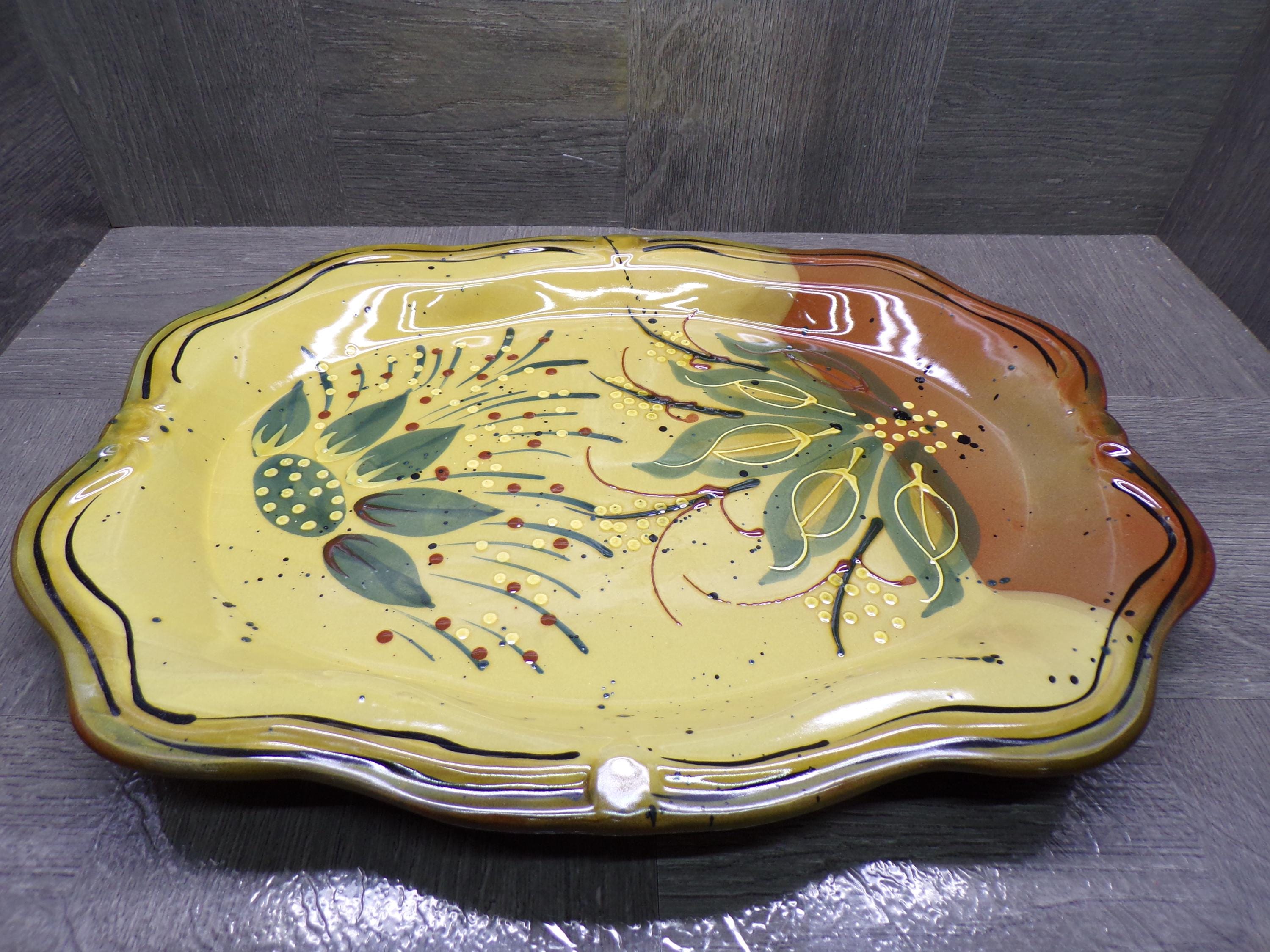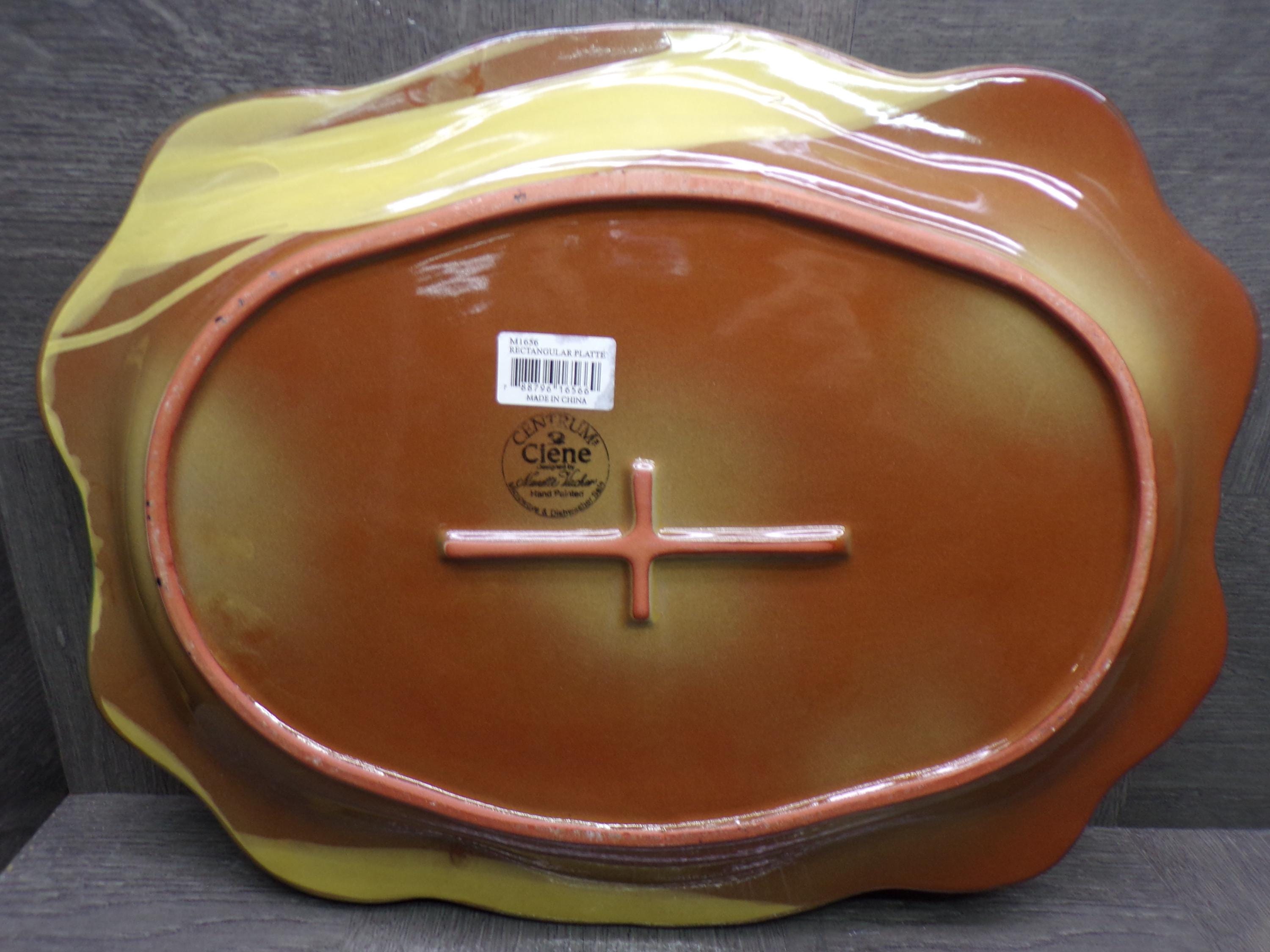 2602 Centrum Ciene Home Decor Gorgeous 15" x 11.5" Hand Painted Serving Platter by Nanette Vacher Tan, Green, Beige, Brown - Excellent Cond.