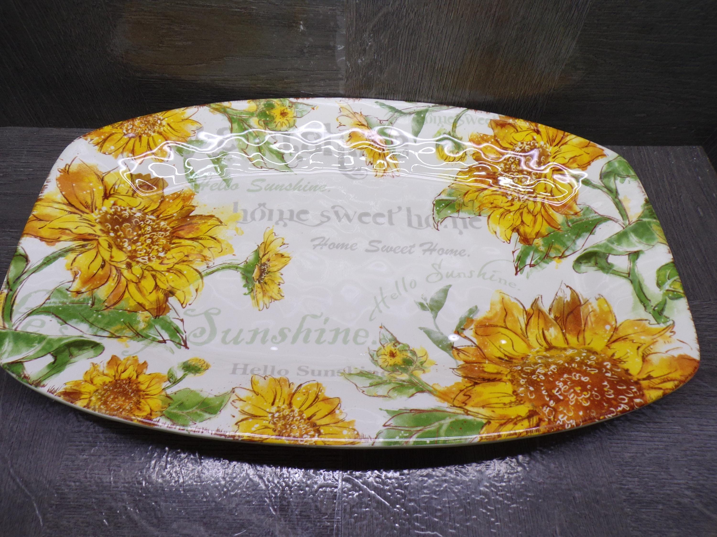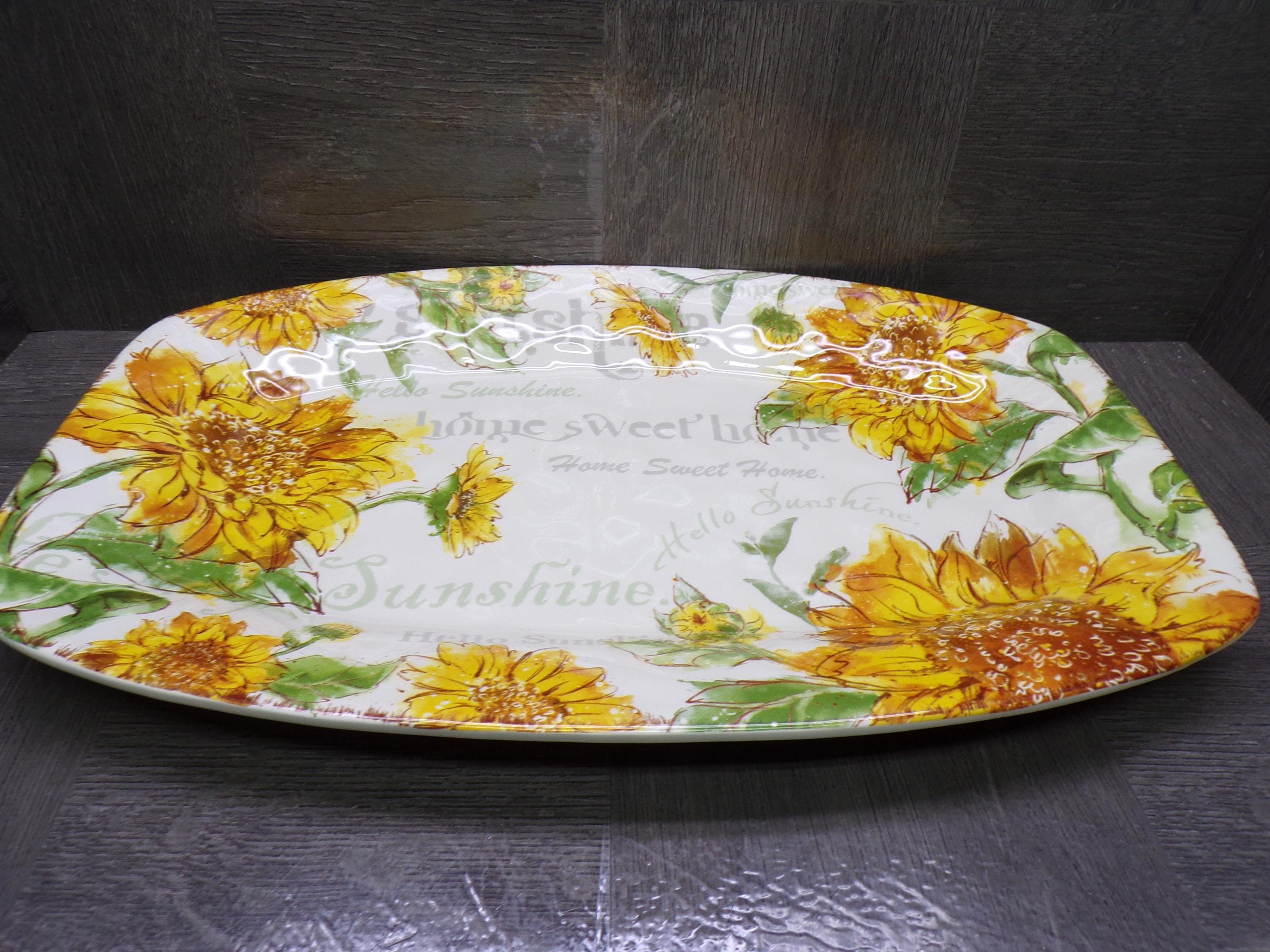 2602 Pier 1 Imports Sunflower Blooms Ironstone 16" x 10" Tray - Great Condition