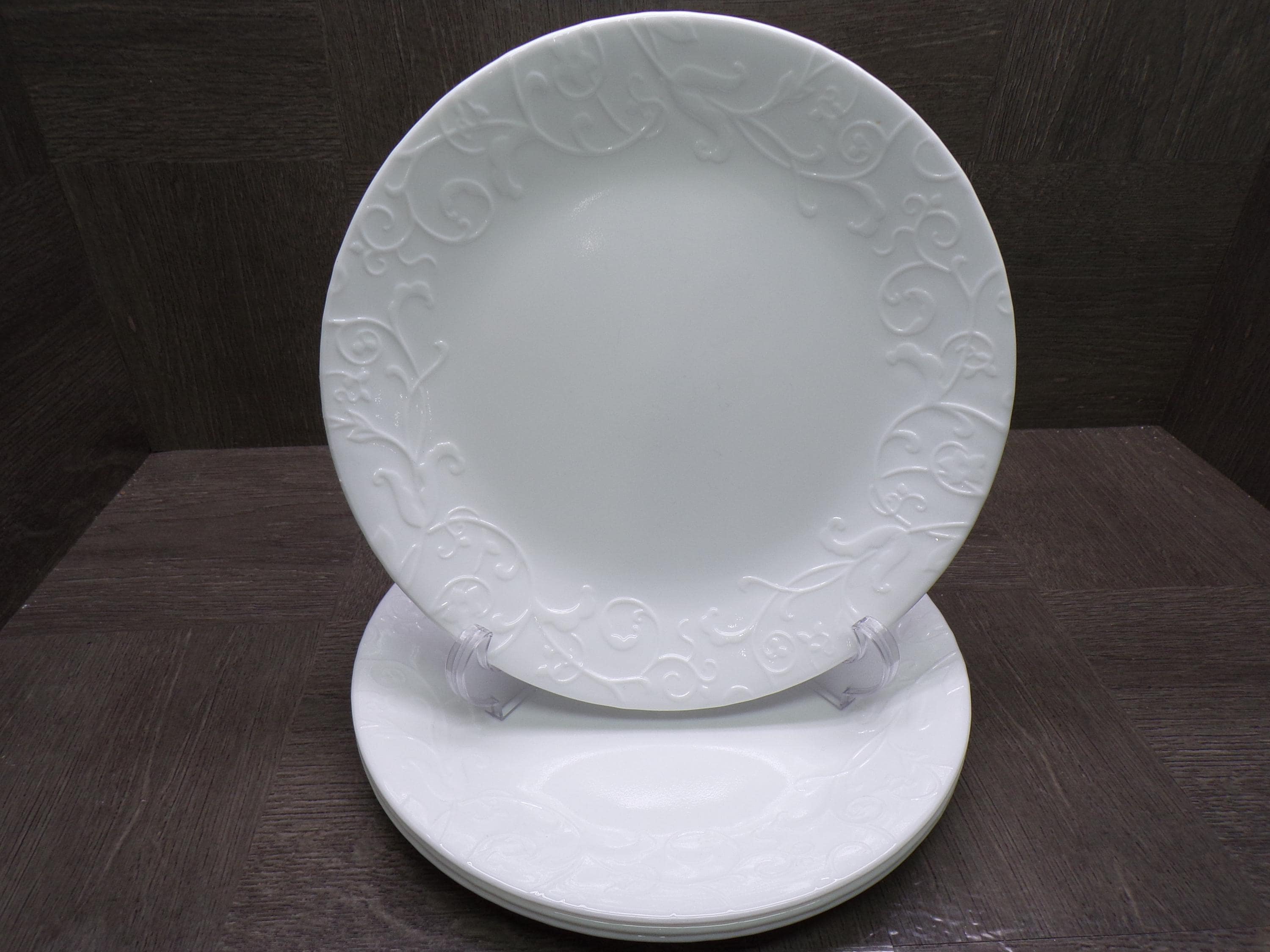 2602 Corelle Vitrelle Cherish Raised Textured Floral 8.5" Lunch / Snack Plates Set of 4 - Great Condition