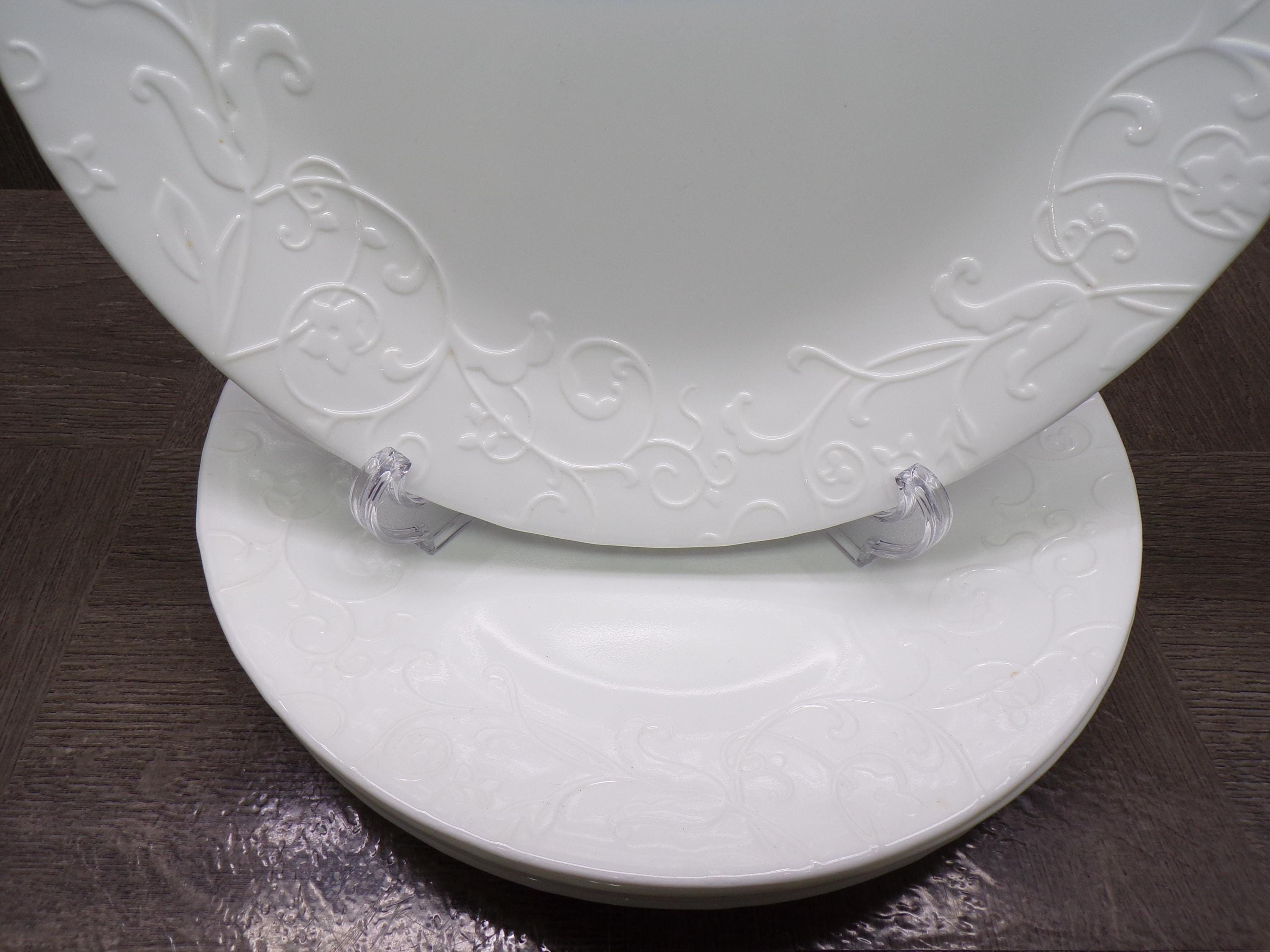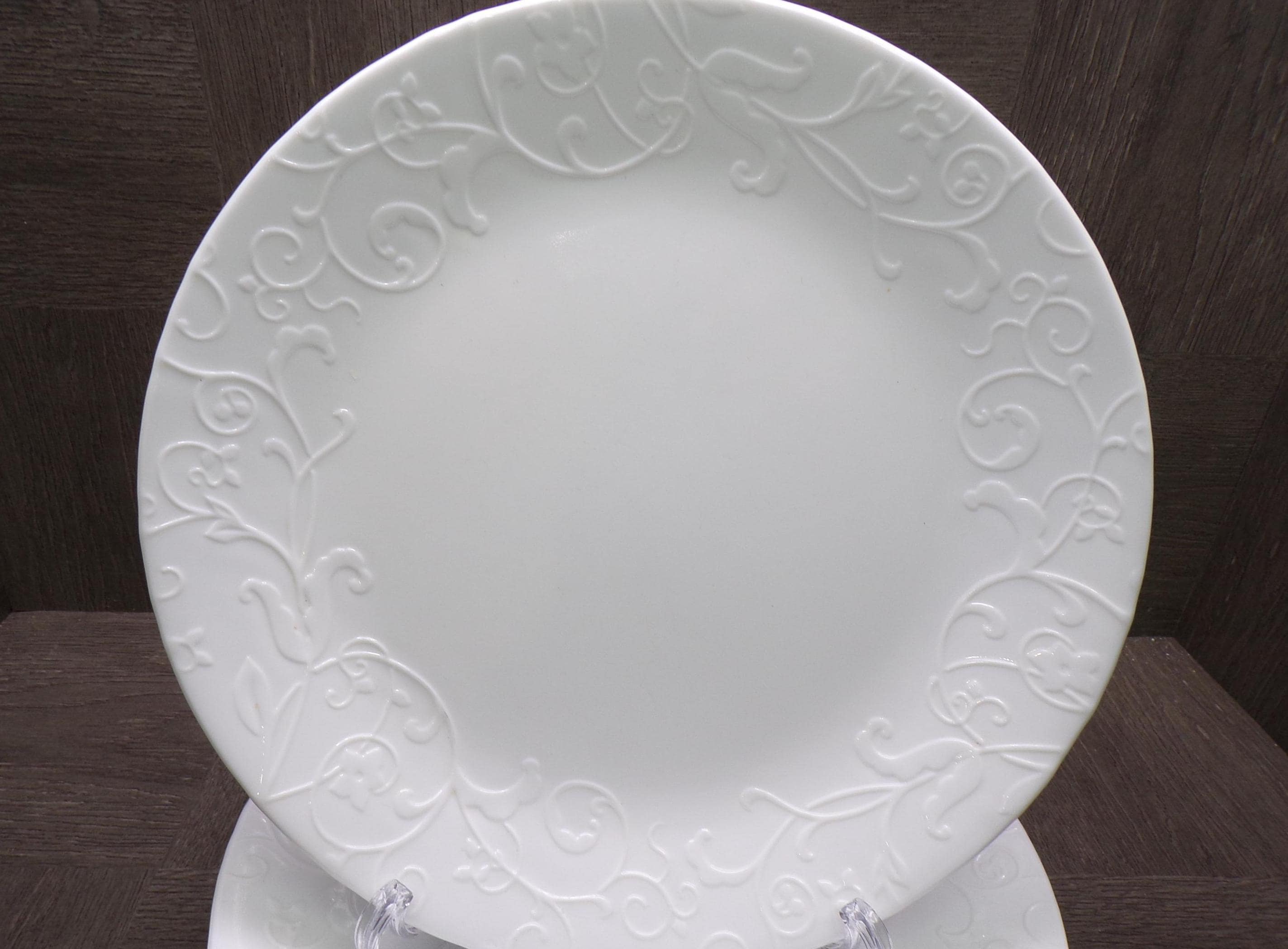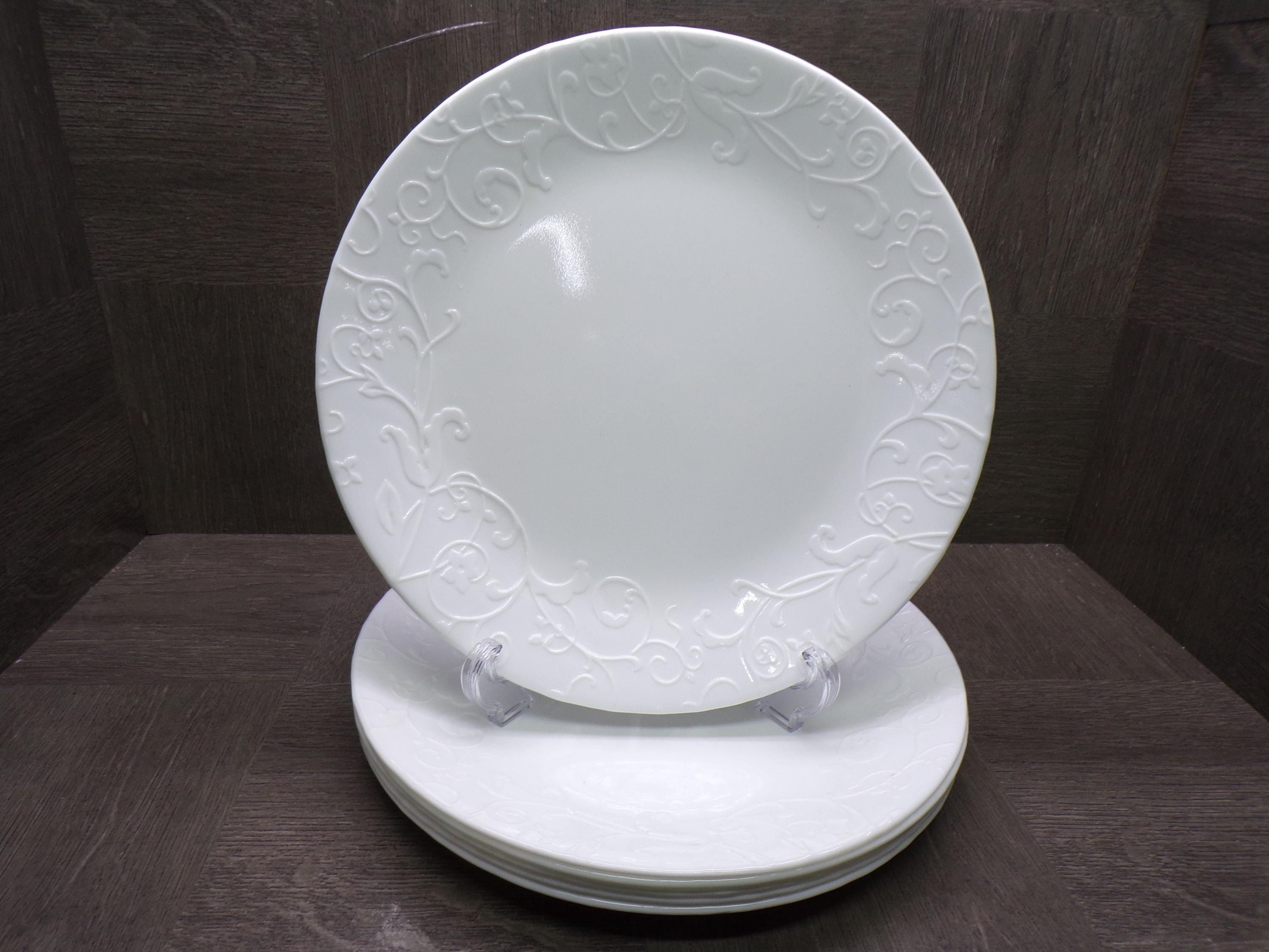 2602 Corelle Vitrelle Cherish Raised Textured Floral 10.25" Dinner Plates Set of 6 - Great Condition