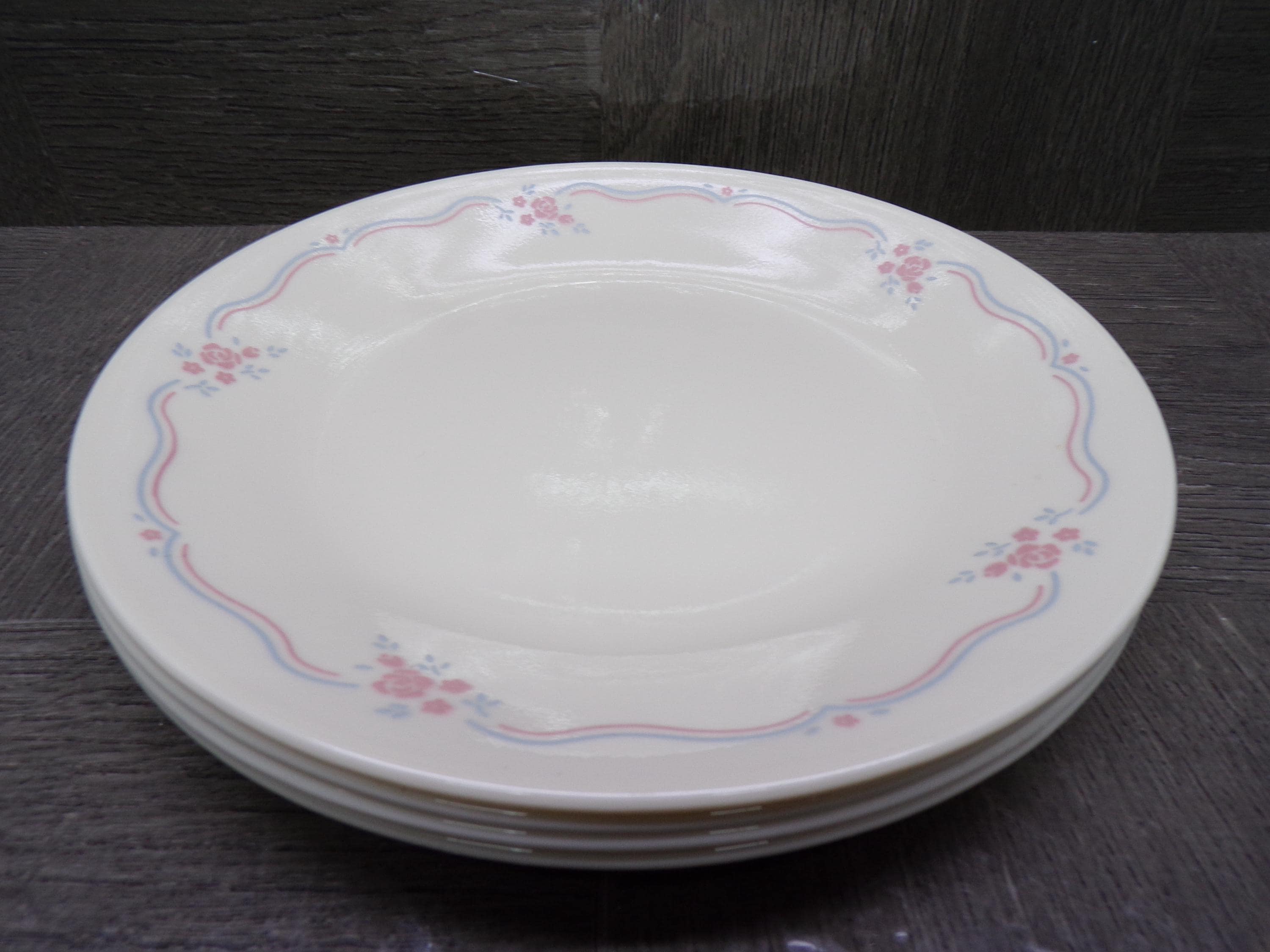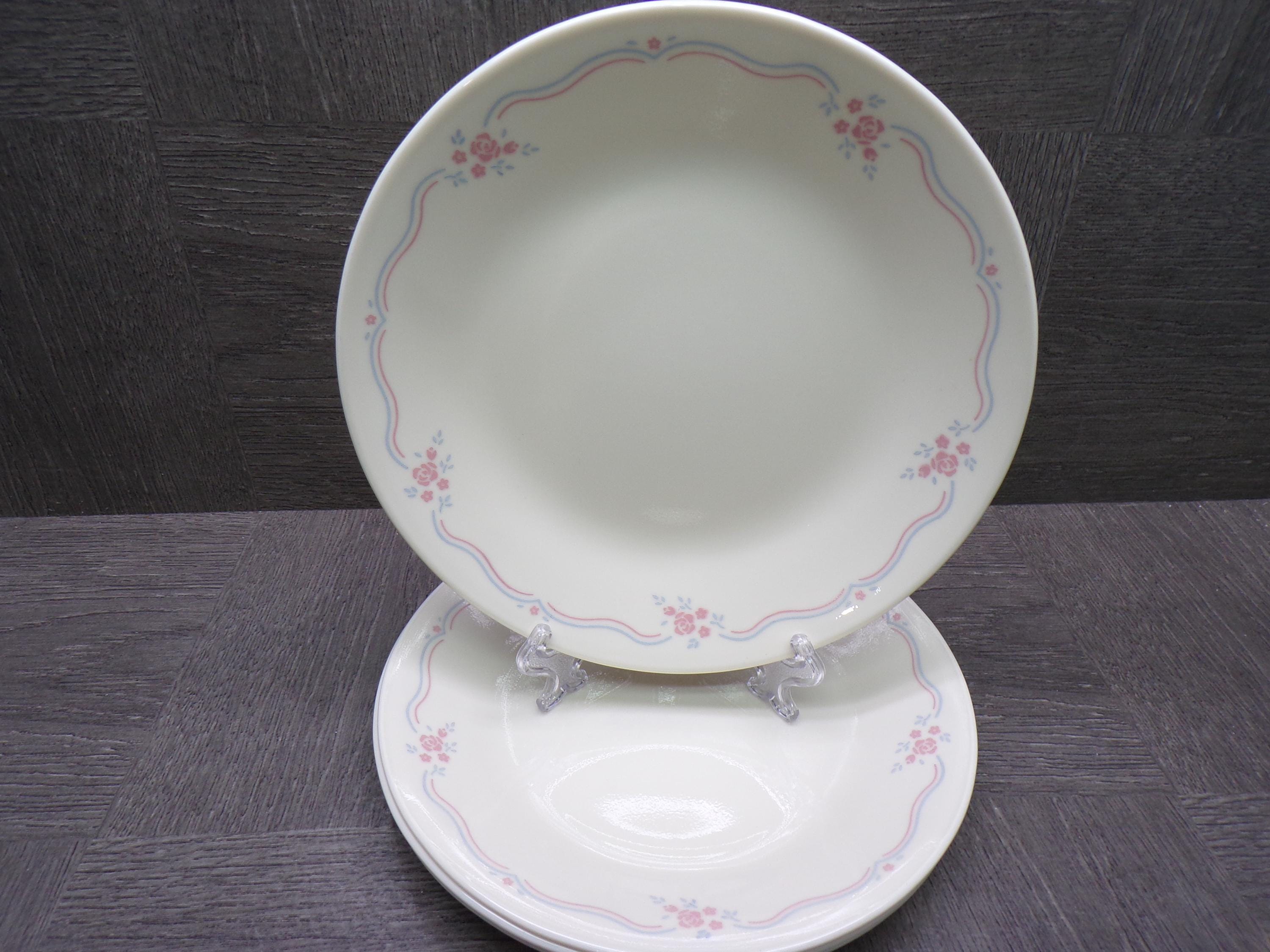 2602 Corelle English Breakfast Vintage 6.75" Bread Plates Set of 4 Pink & Blue Floral on Cream - Great Condition