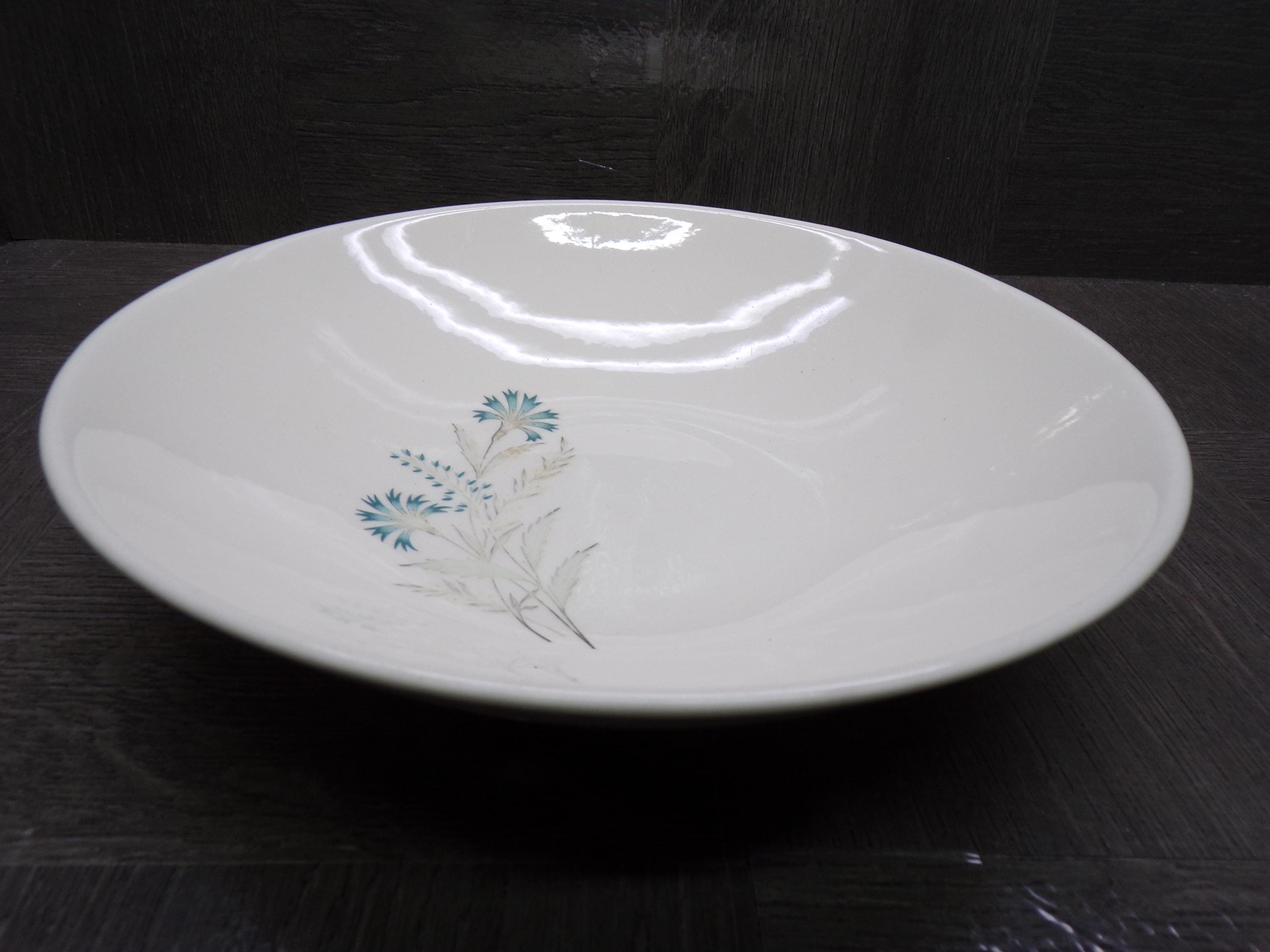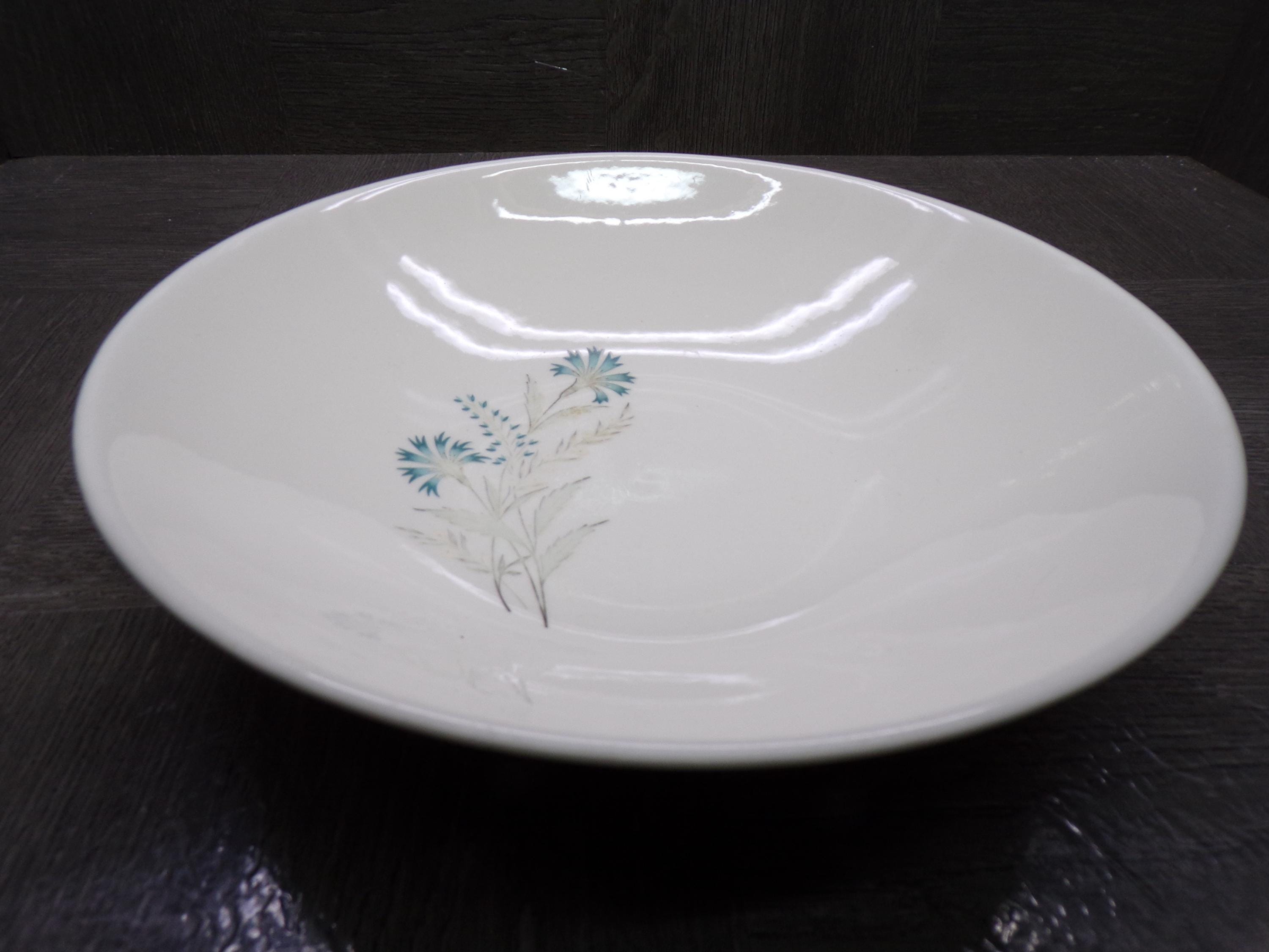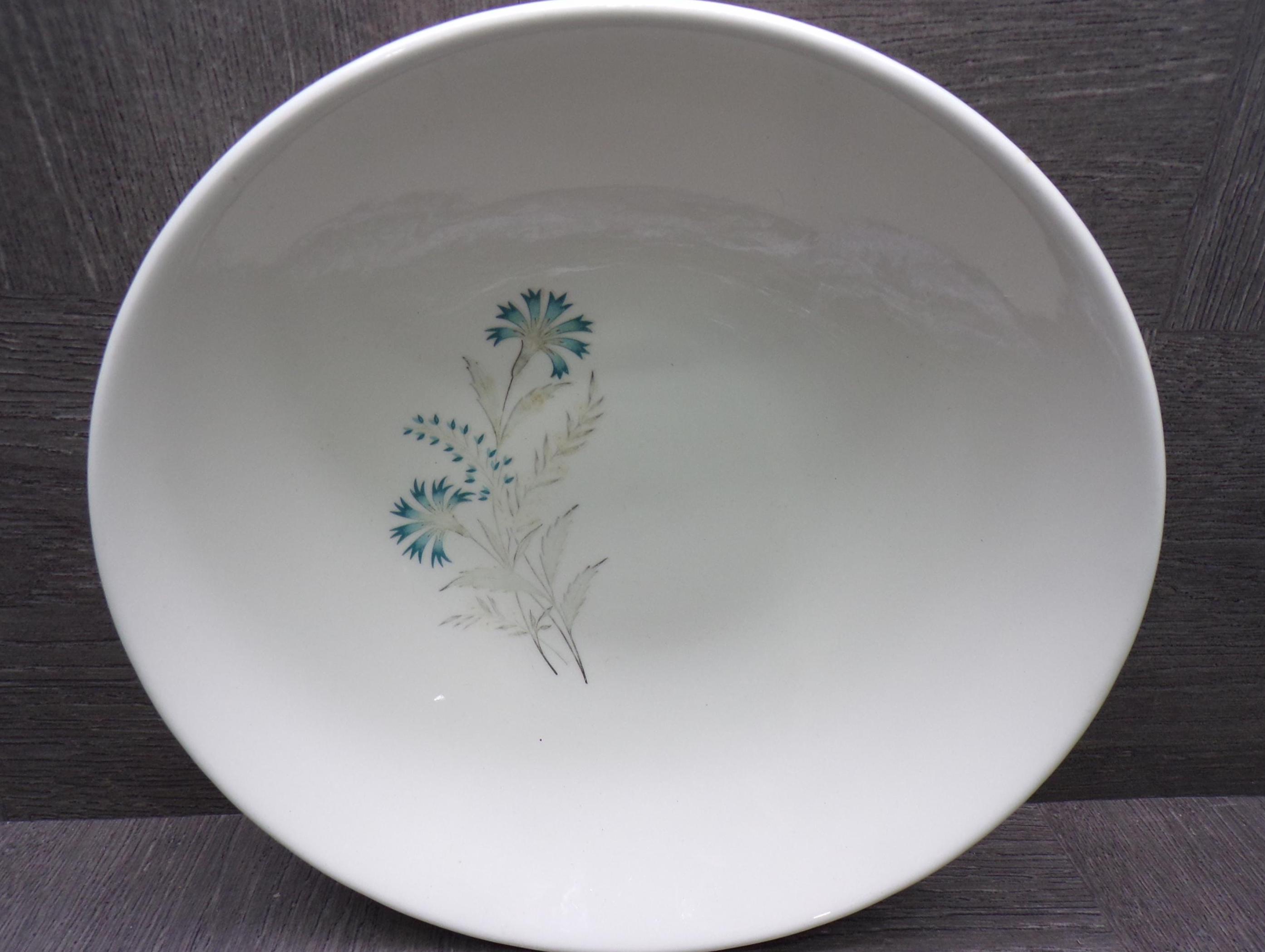 2603 TST Taylor Smith Taylor Bachelor Button Vintage 50's to 60's Ironstone 8.25" Vegetable Serving Bowl Teal/ Grey Floral - Good Condition