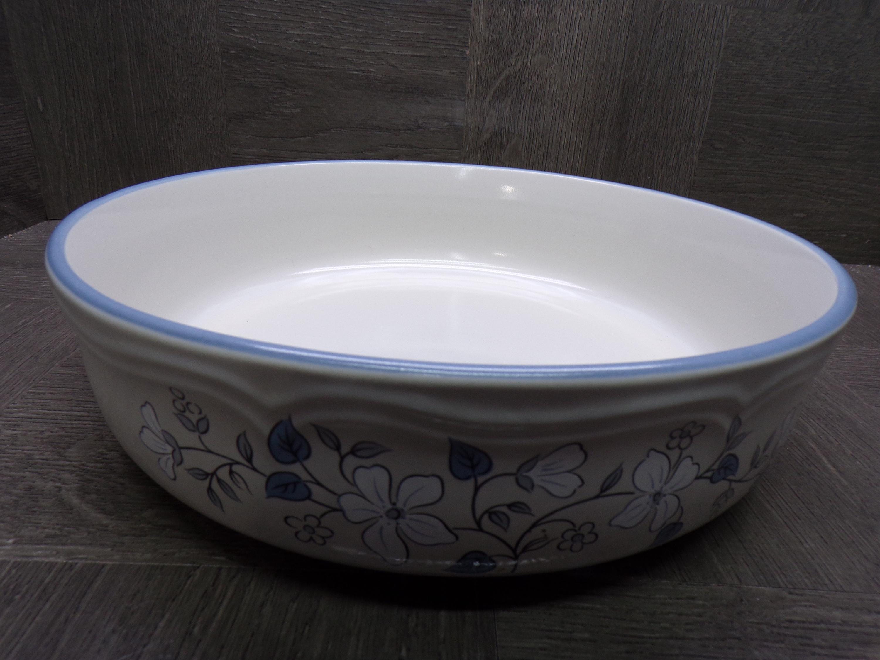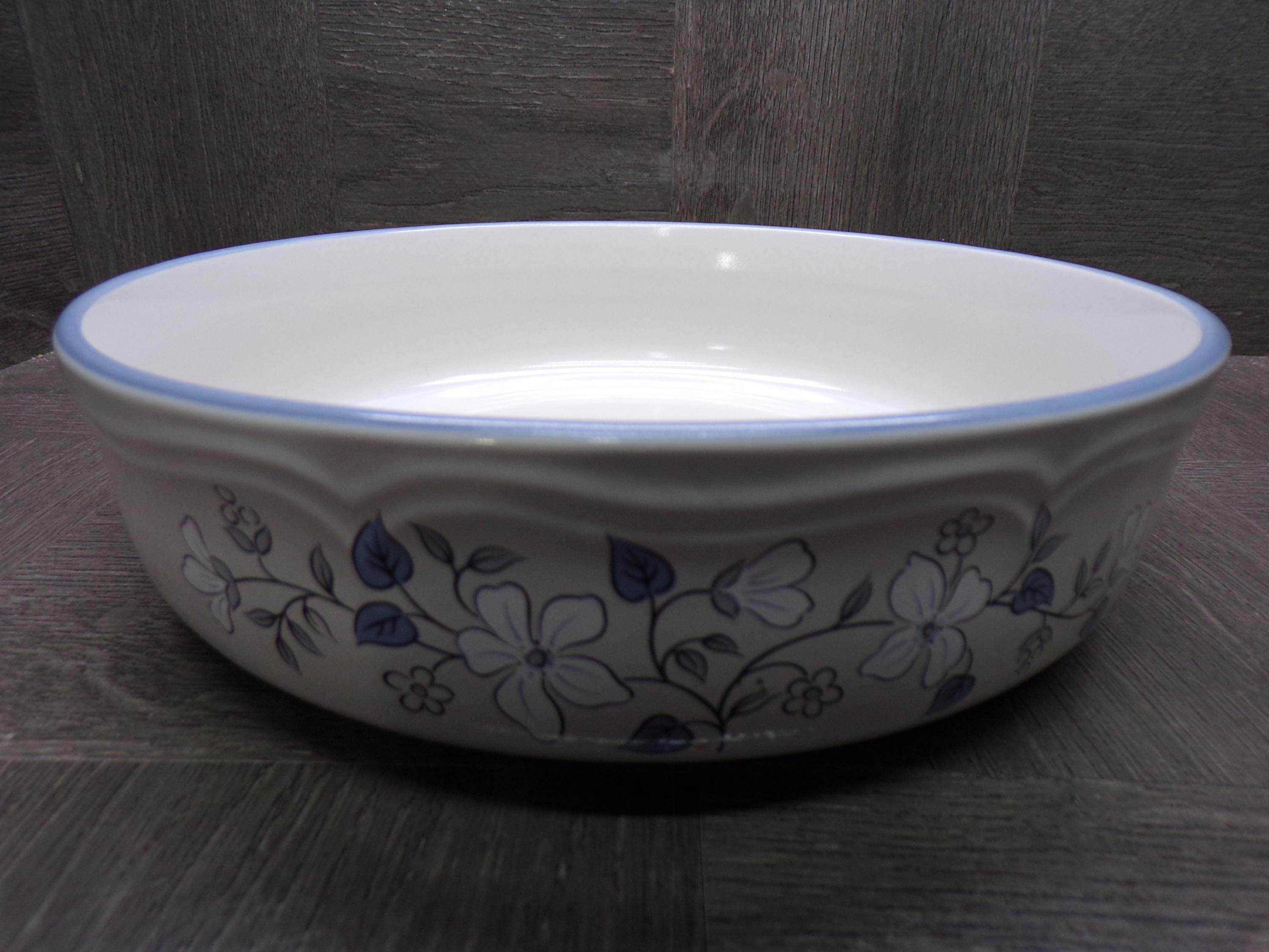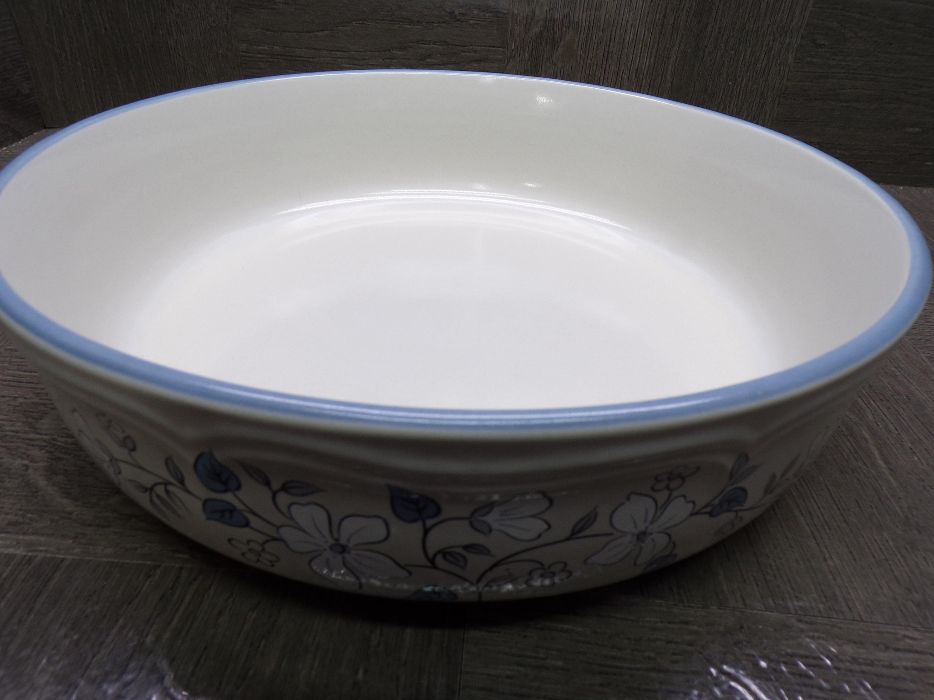 2603 Covington Avondale Stoneware 9" Vegetable Serving Bowl w/ Blue and White Dogwood Flowers- Japan- Great Condition