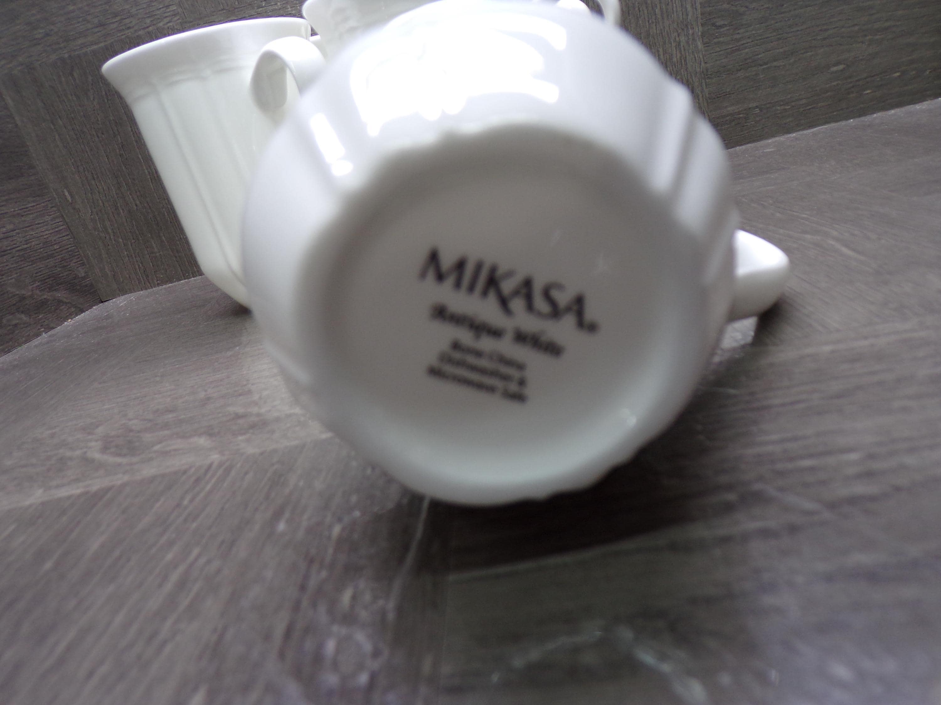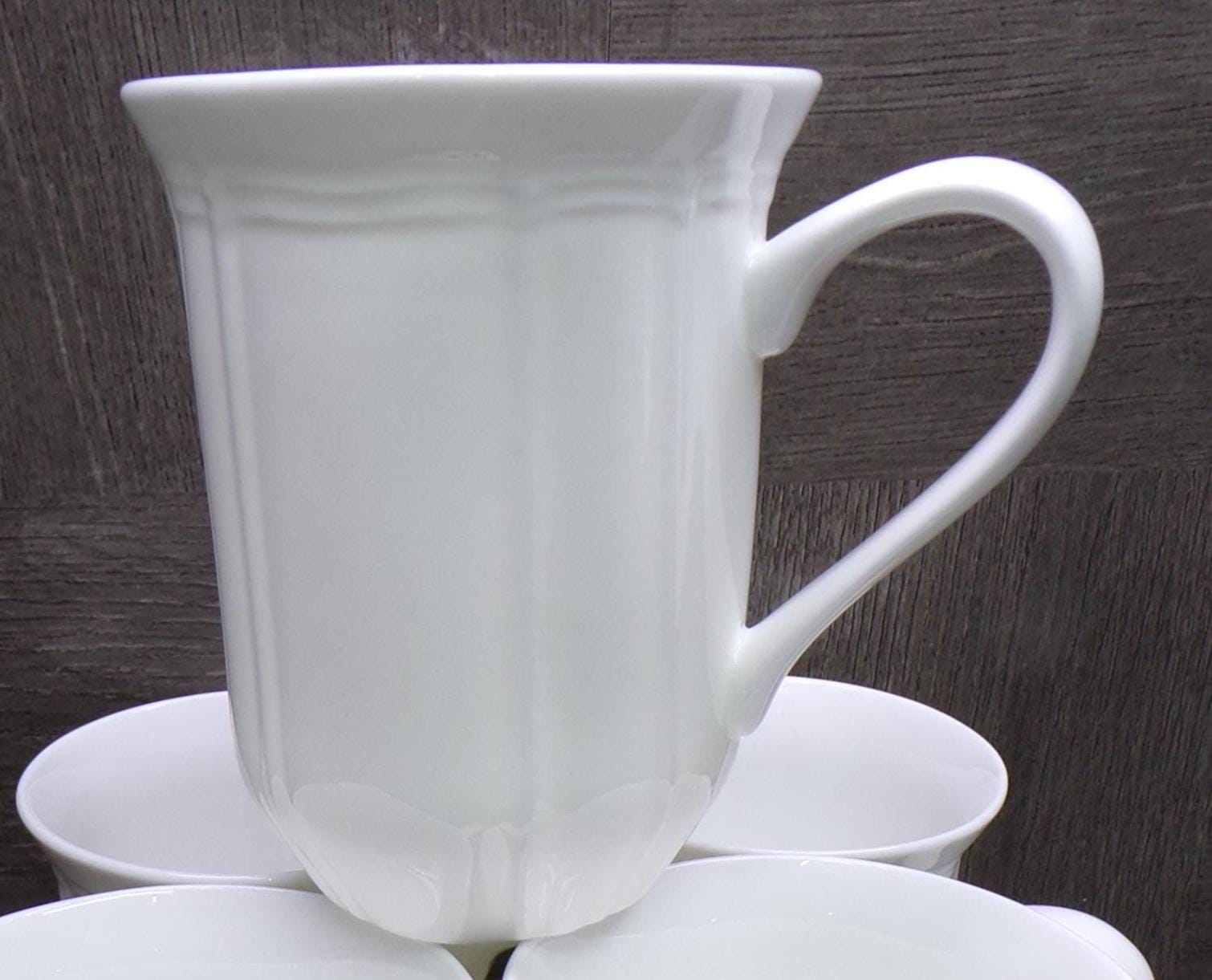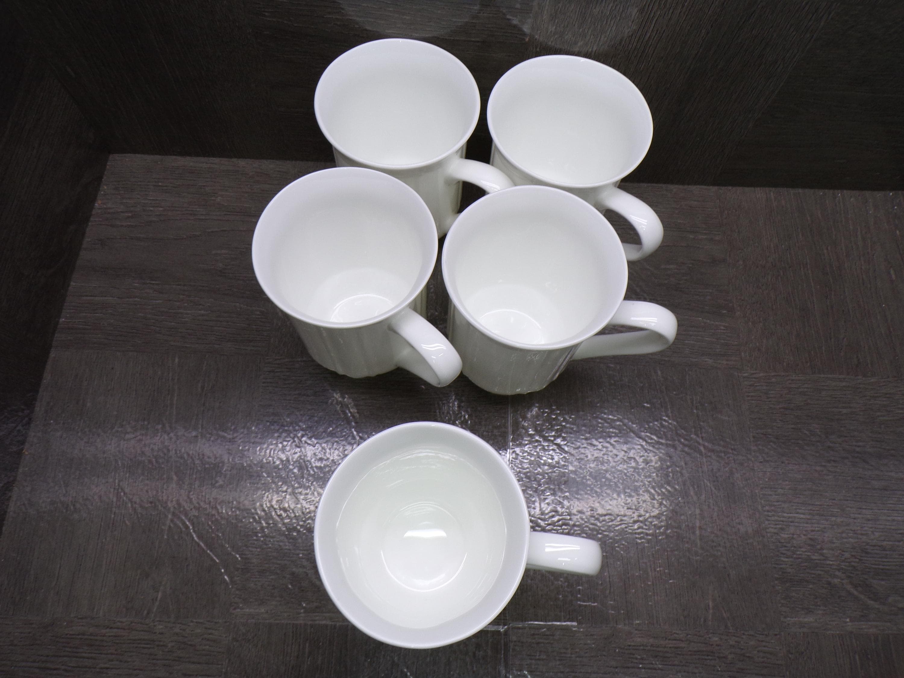 2603 Mikasa Antique White Bone China 4.5" 12 oz Mugs Set of 5 - Excellent Condition