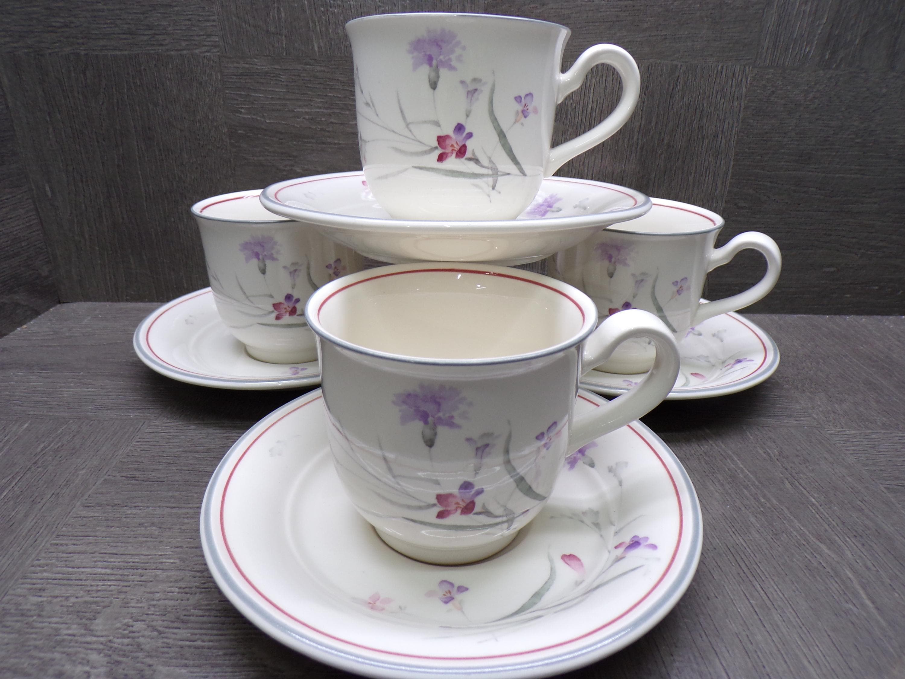 2603 Noritake Keltcraft River Oaks #9161 Vintage 8 pc Set 4 Cups & 4 Saucers Made in Ireland - Great Condition