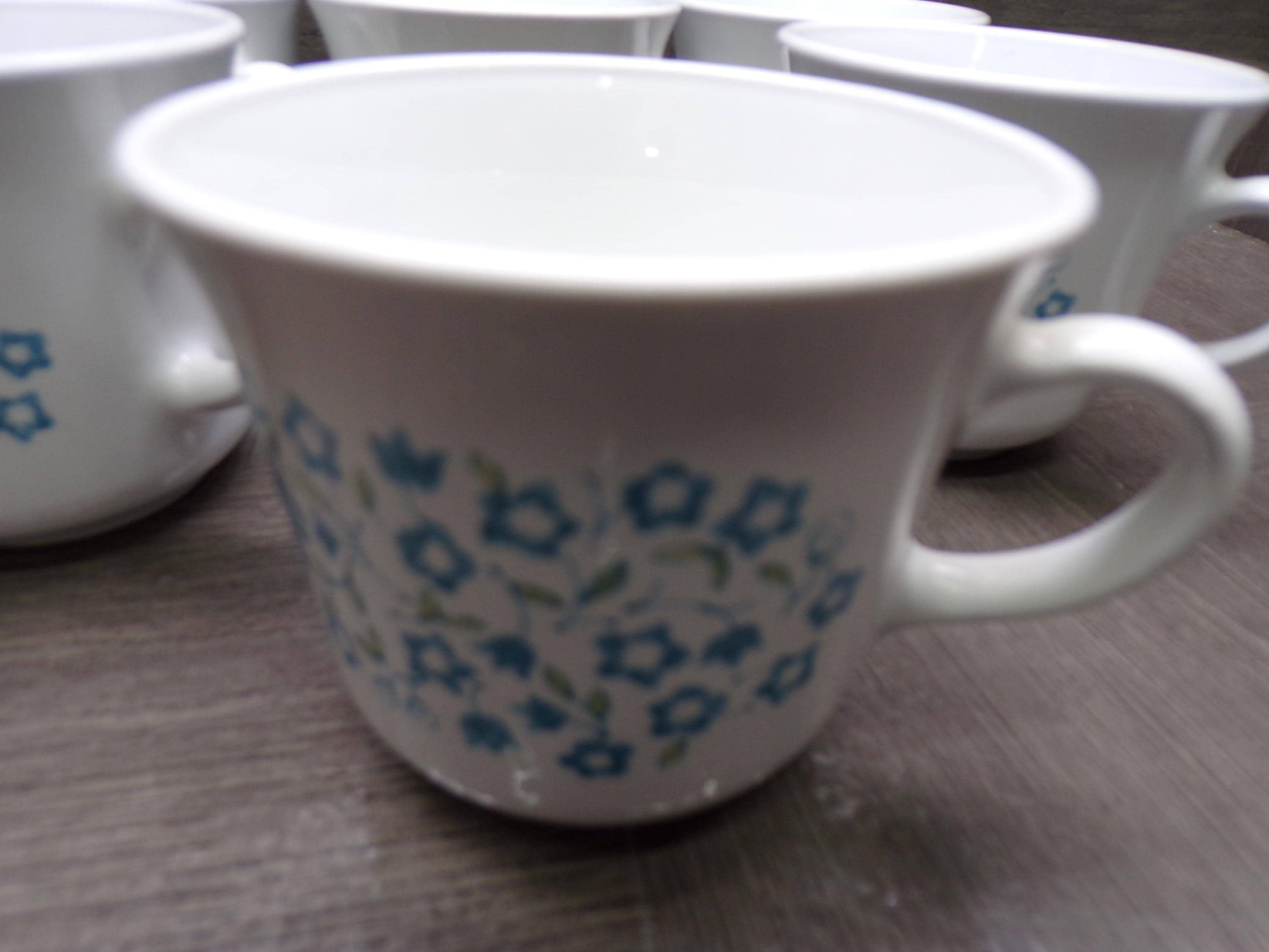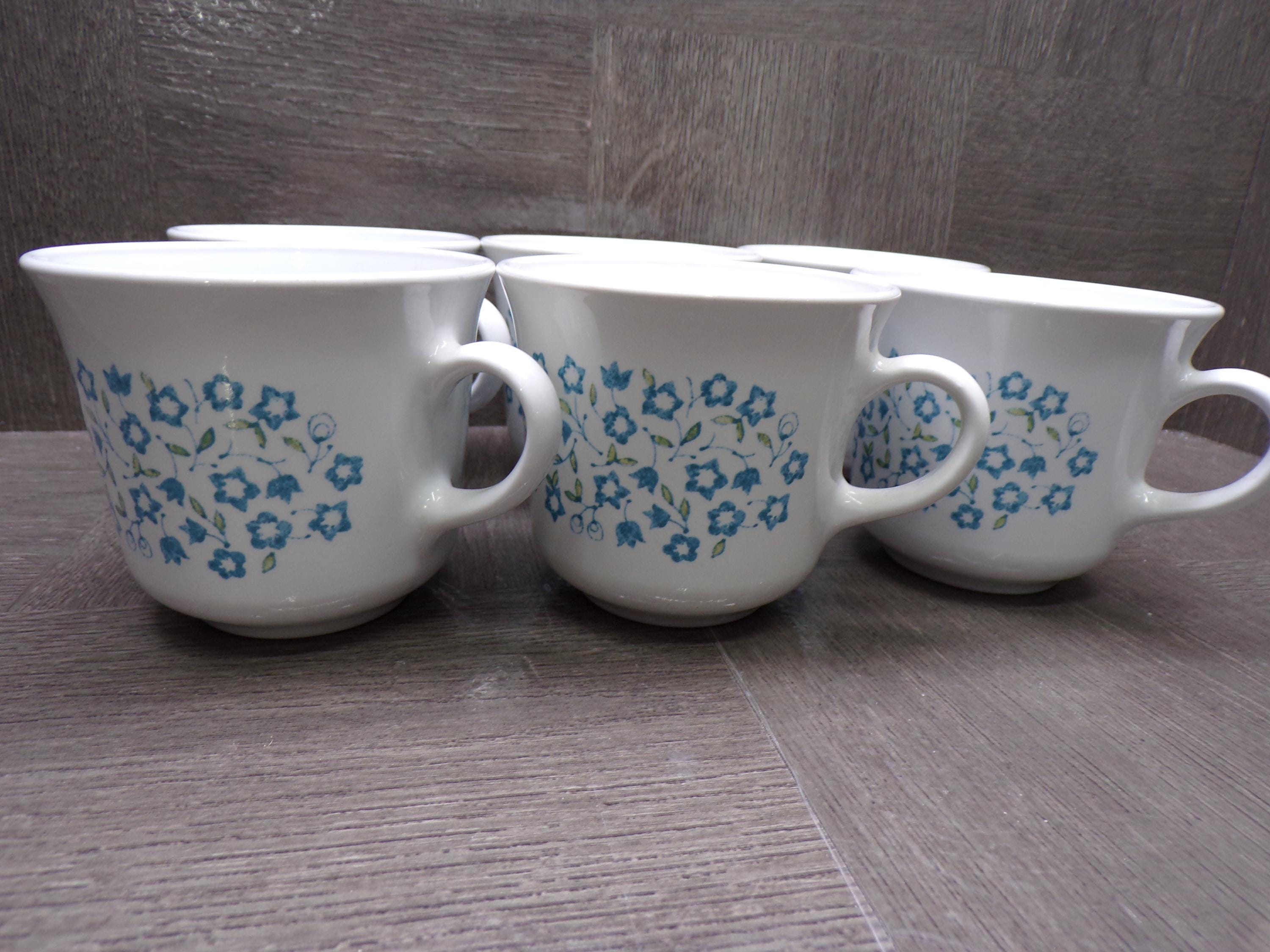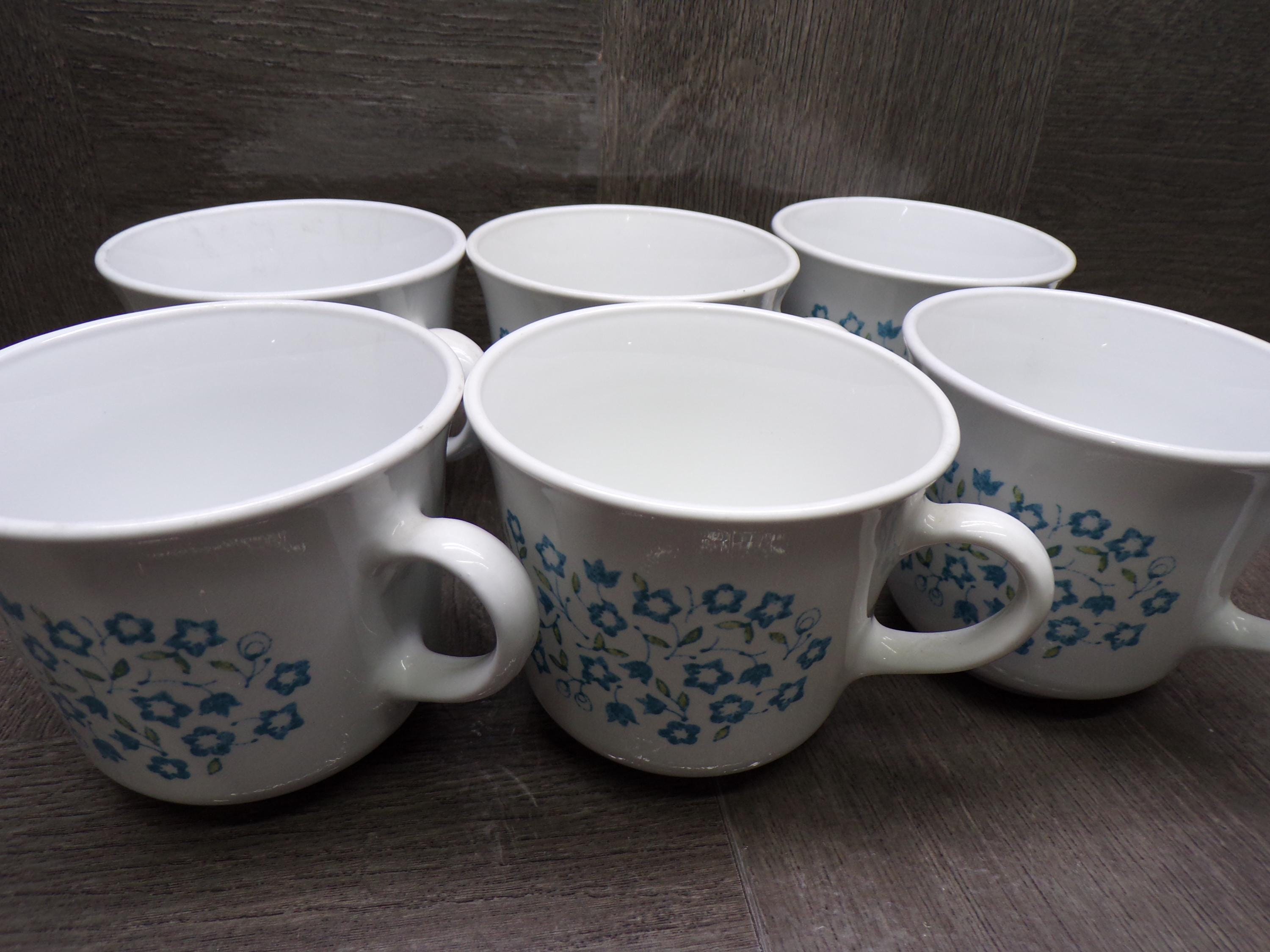 2603 Corelle Blue Heather Vintage Retired 3.5" 6 oz Coffee / Tea Cups Set of 6 Blue Green Floral USA- Great Condition