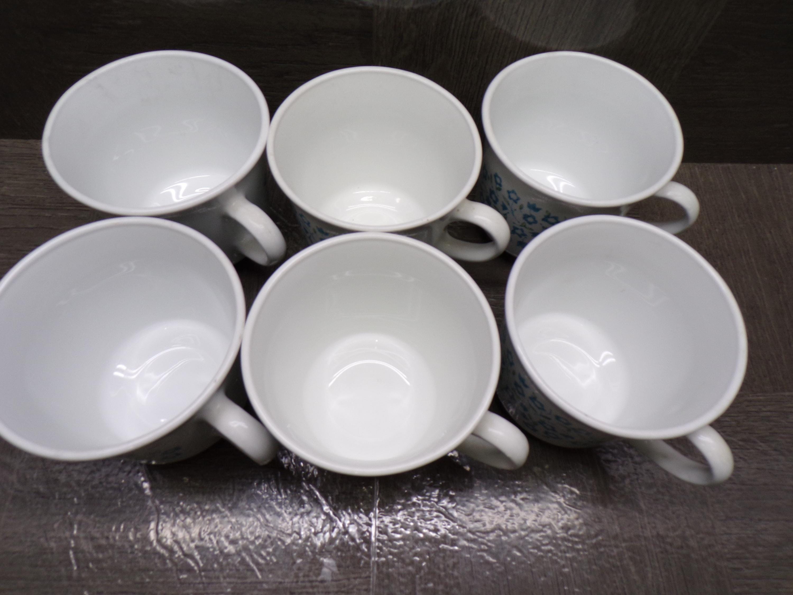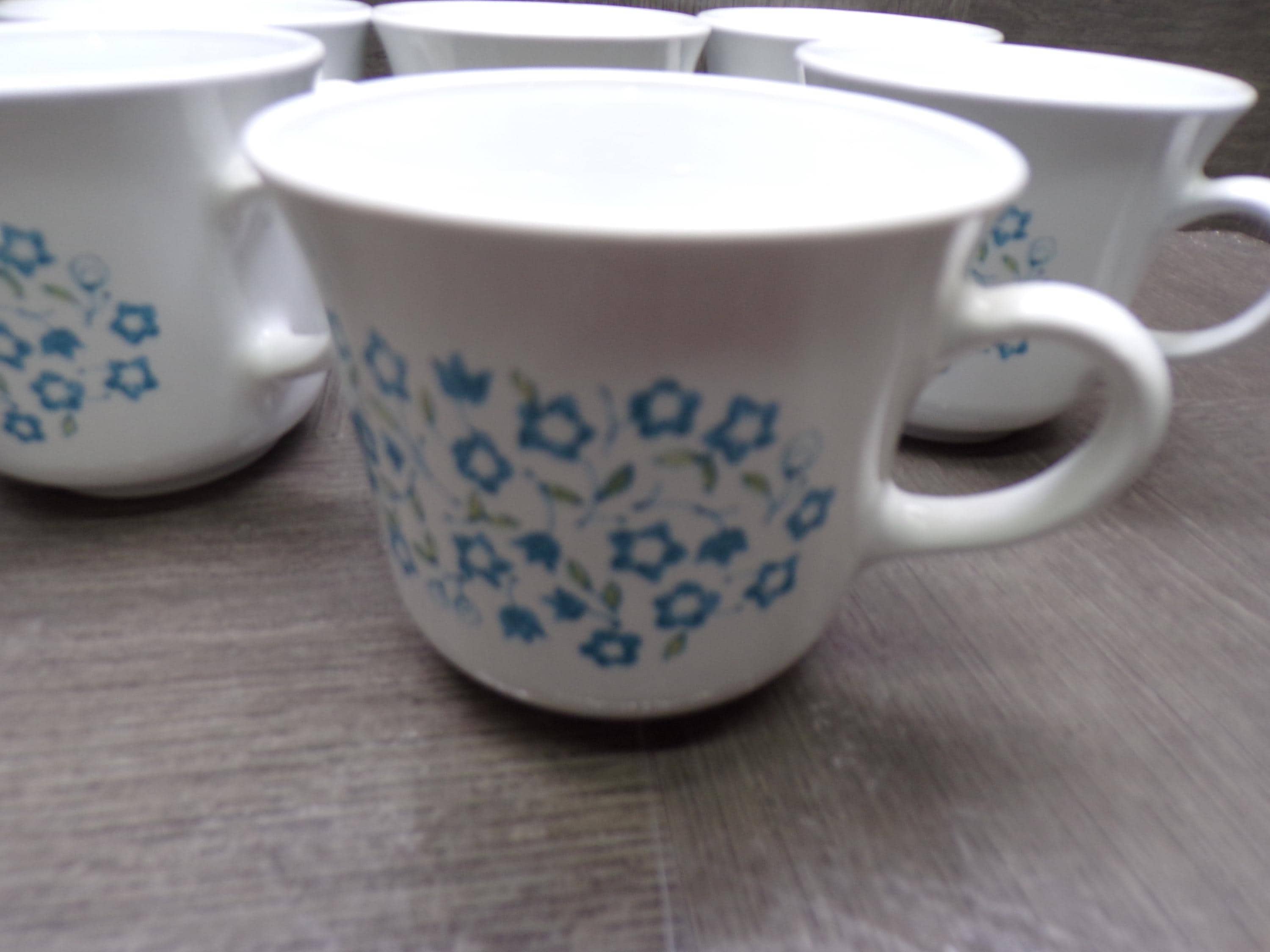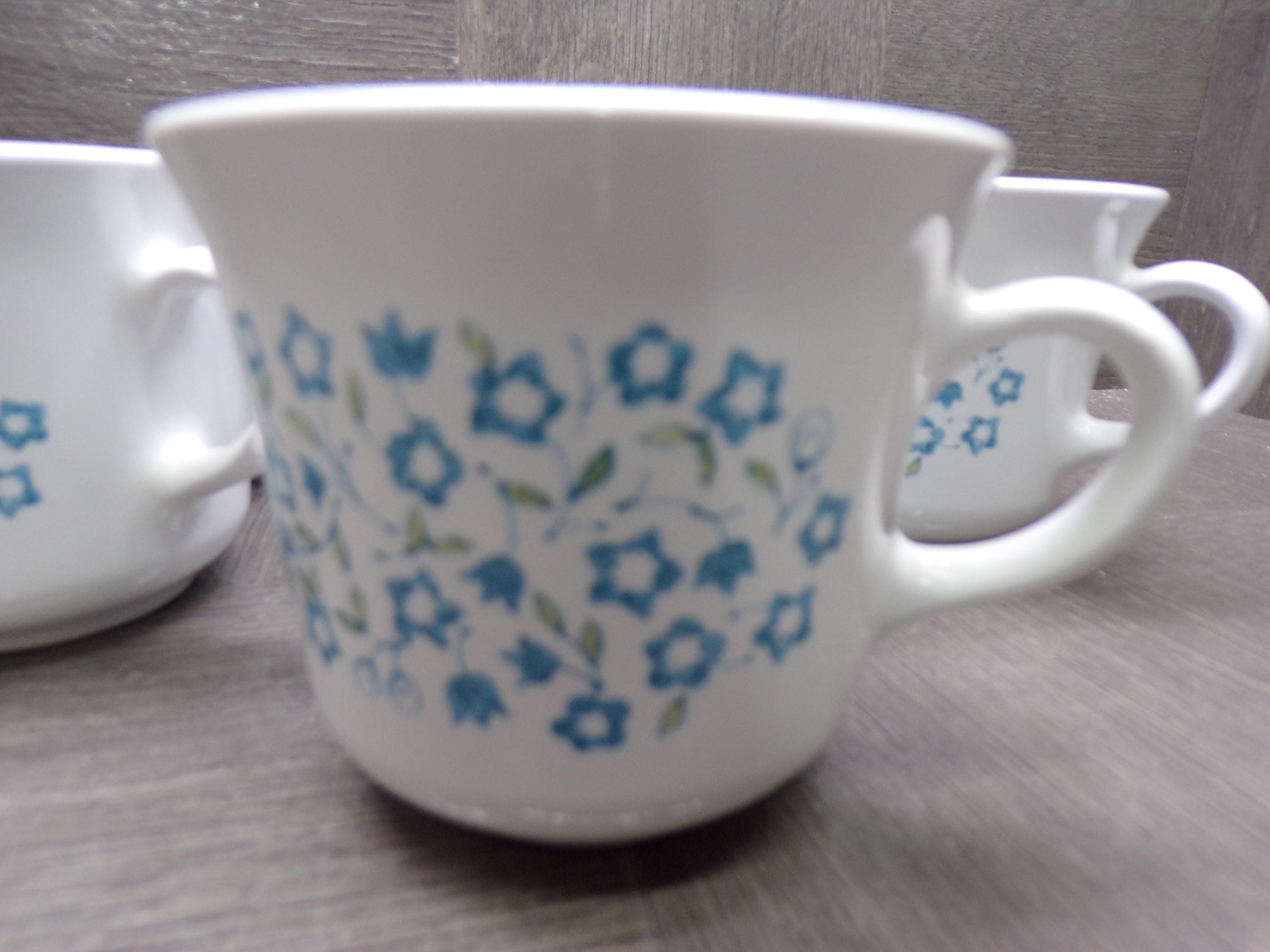 2603 Corelle Blue Heather Vintage Retired 3.5" 6 oz Coffee / Tea Cups Set of 6 Blue Green Floral USA- Great Condition
