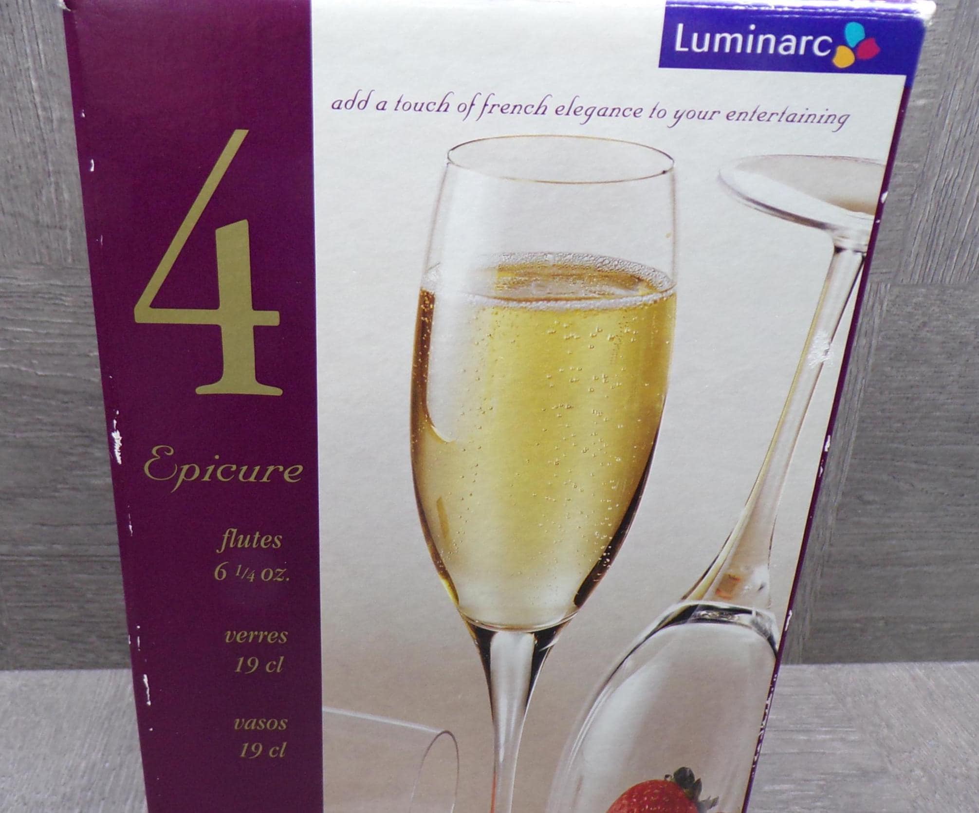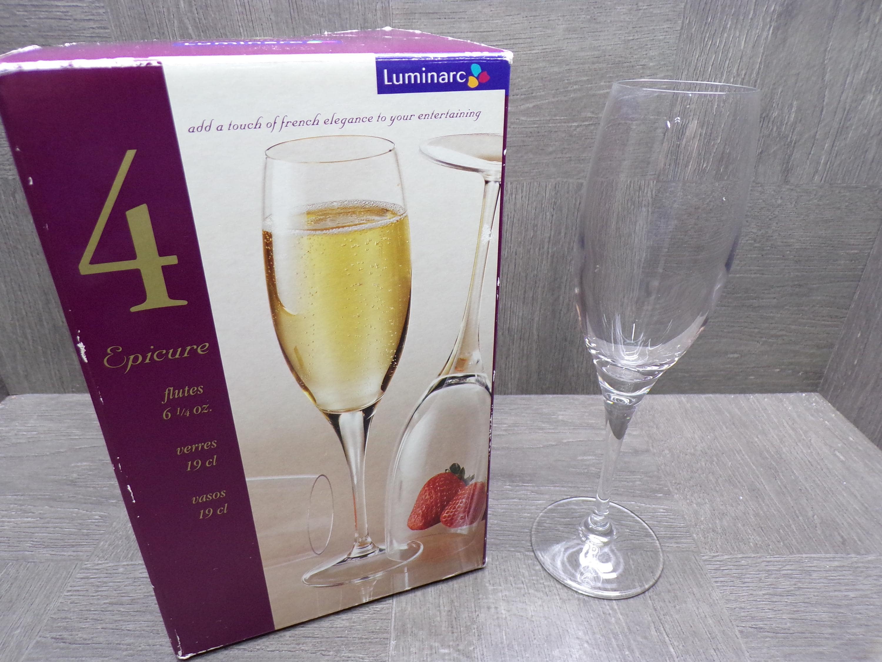 2603 Arcoroc Luminarc Epicure 8.5" 6.25 oz Clear Champagne Flutes Set of 4 by Cristal D'Arques France - Great Condition in Original Box