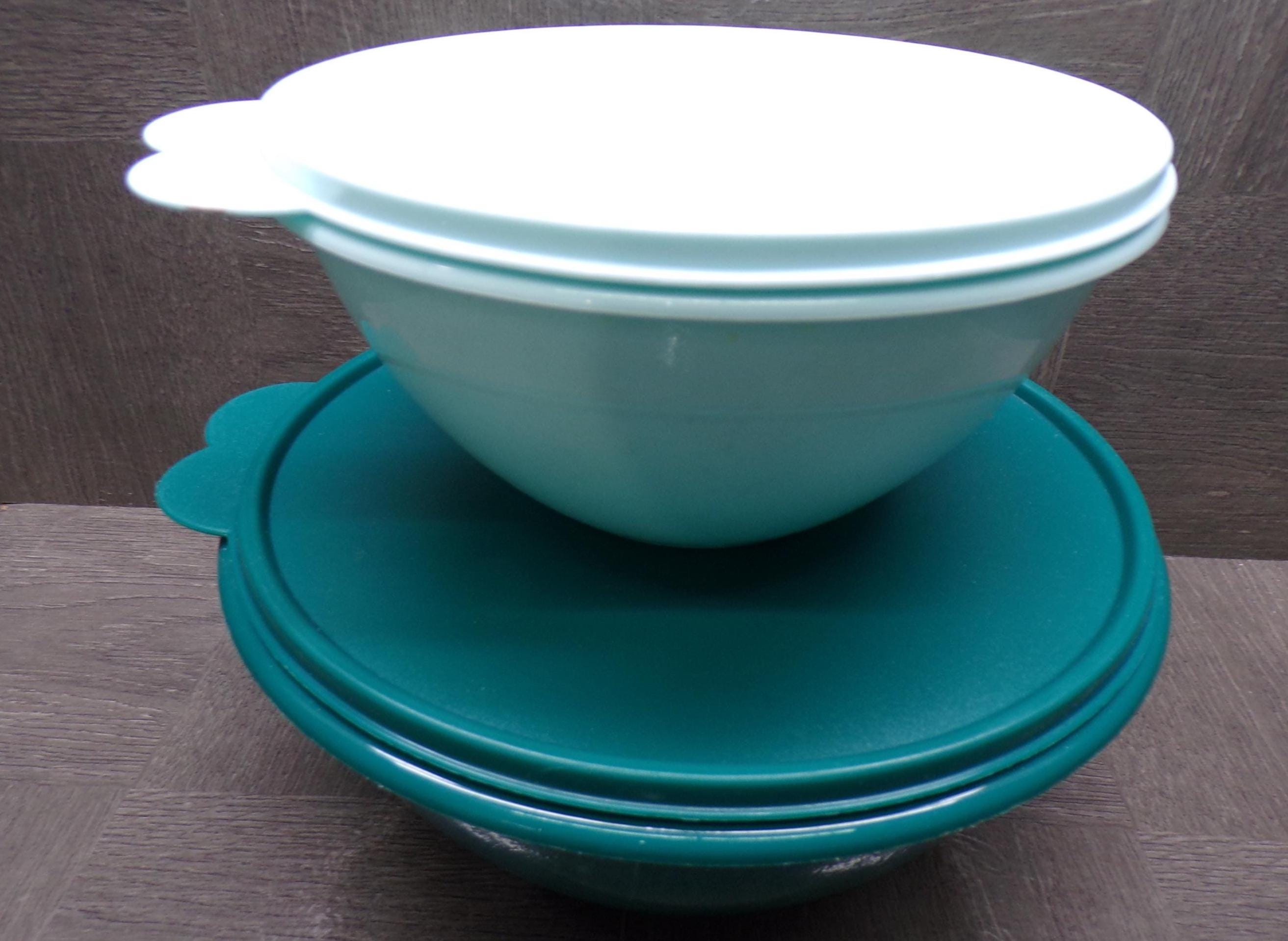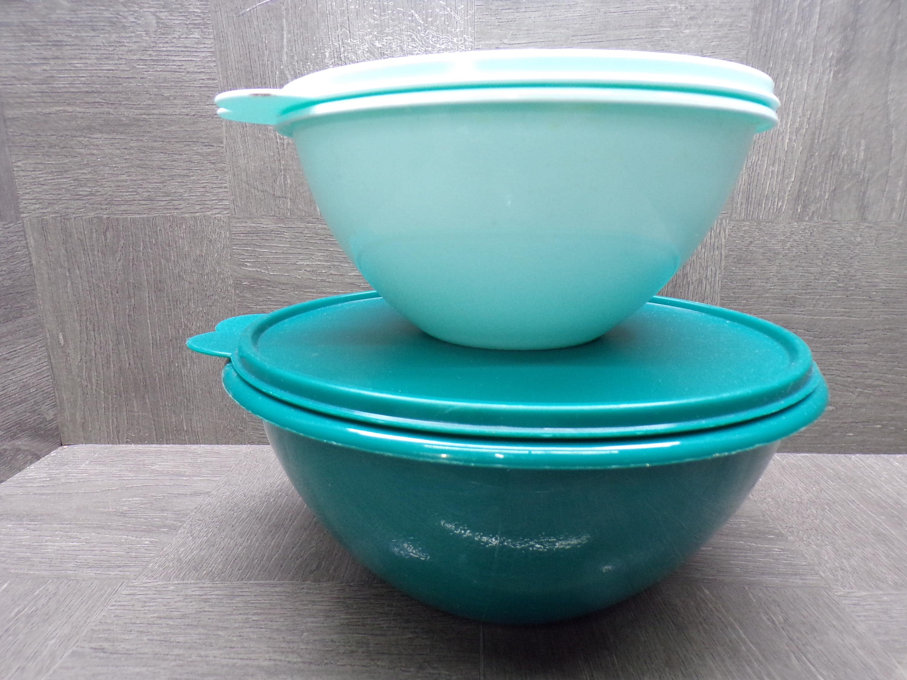 2603 Tupperware Wonderlier Pair of Containers w/ Lids 9" Teal & 7" Light Blue - Great Condition Light Scratches